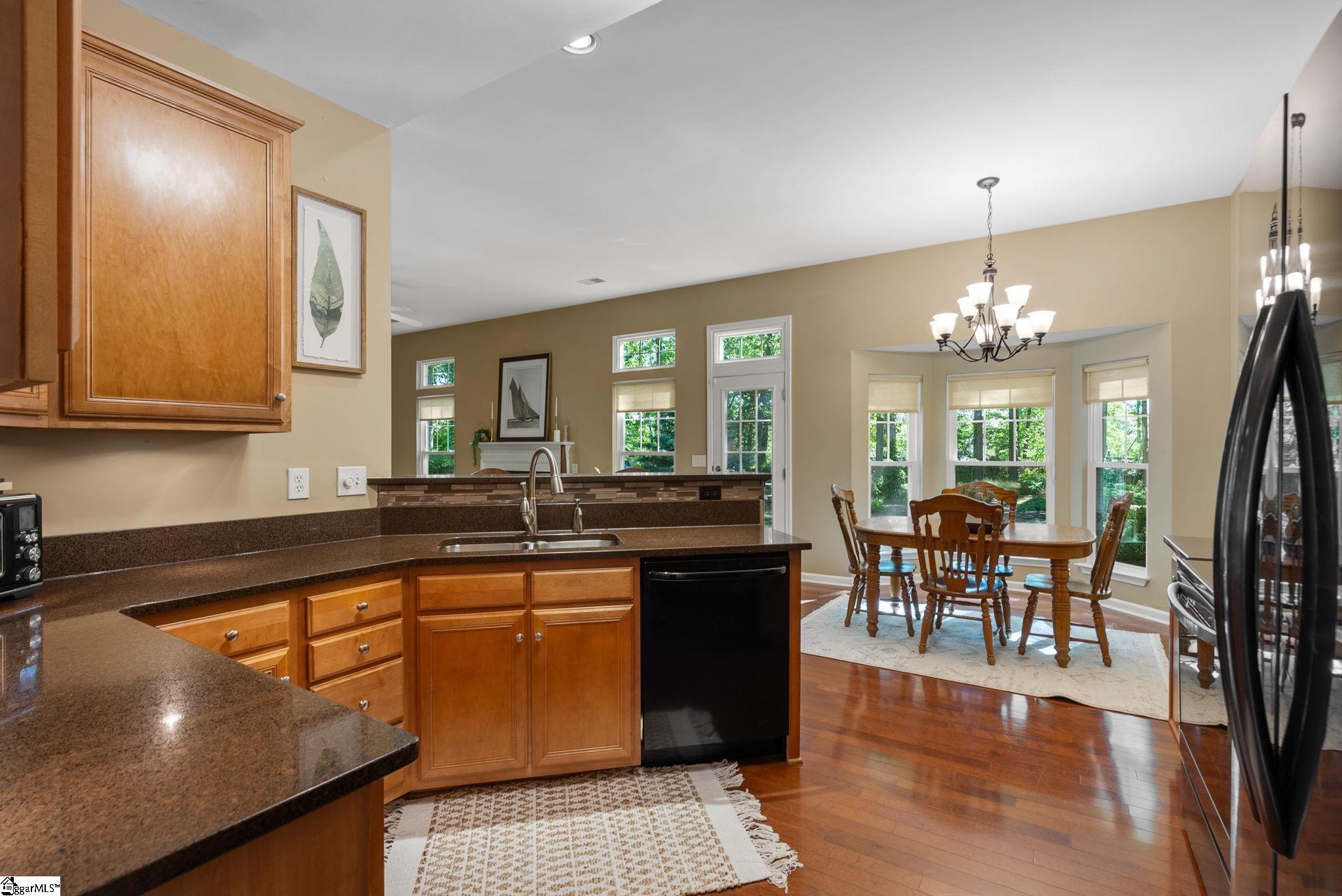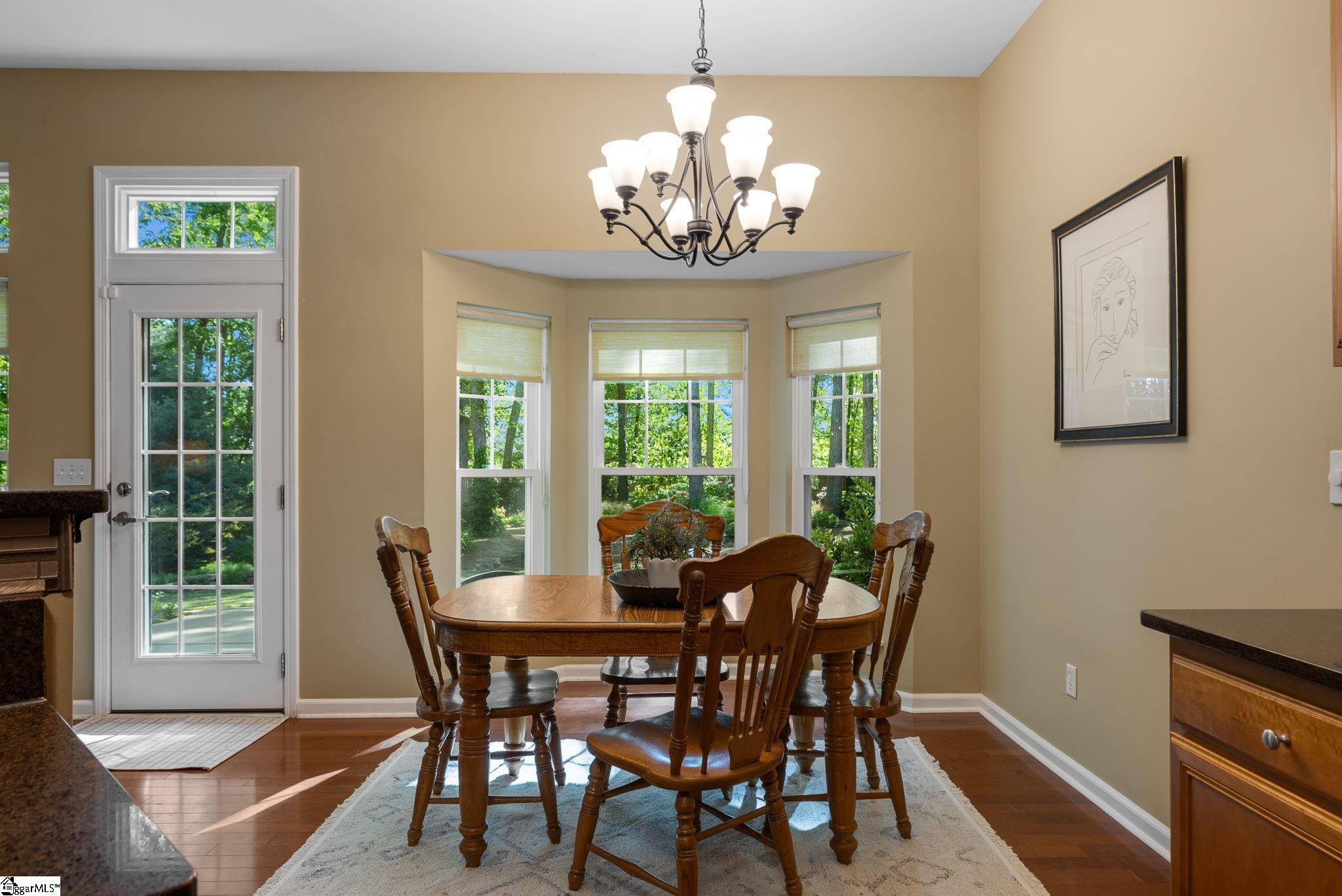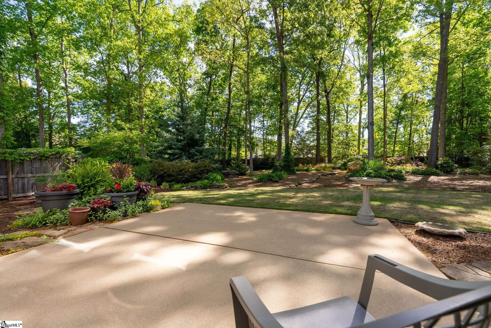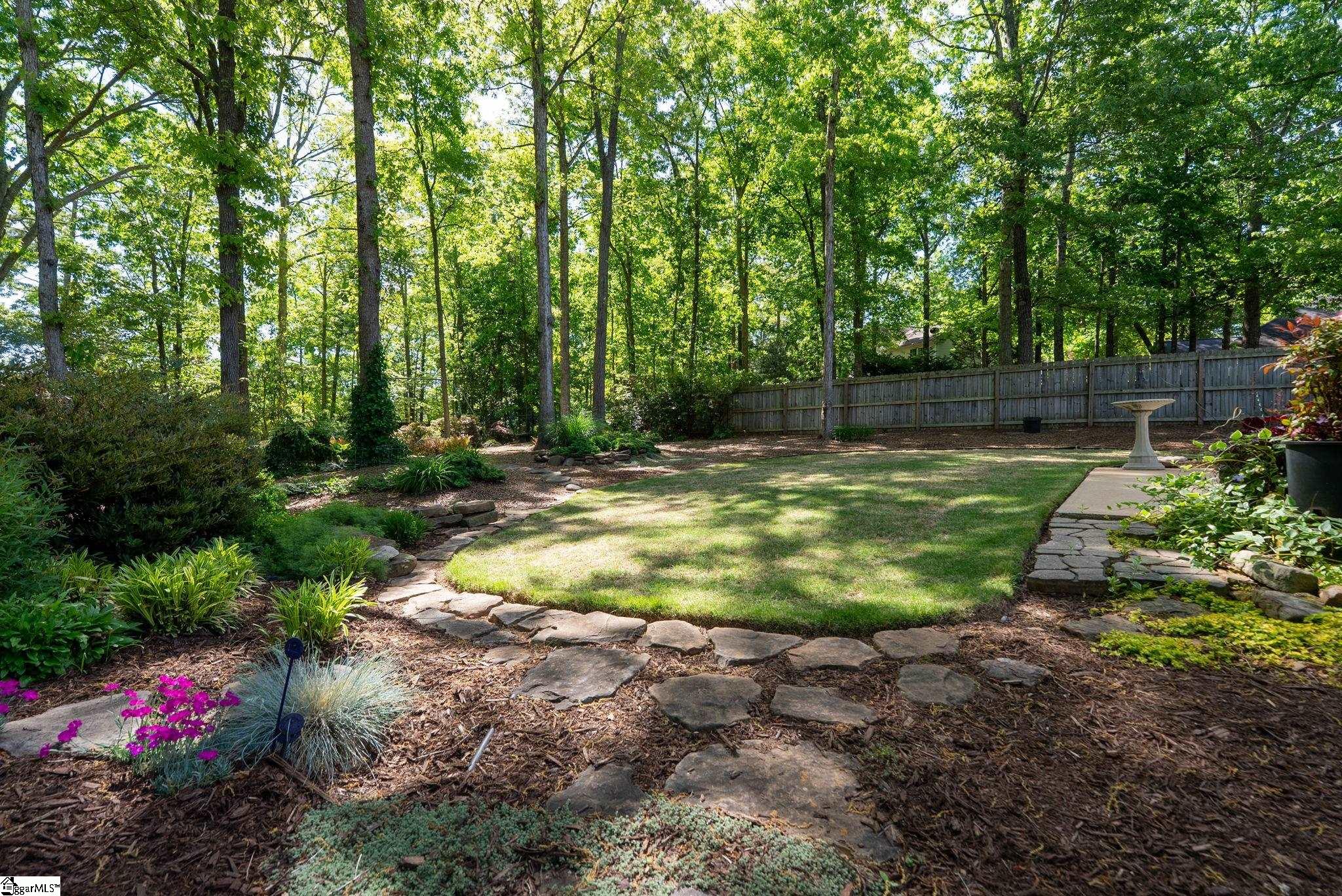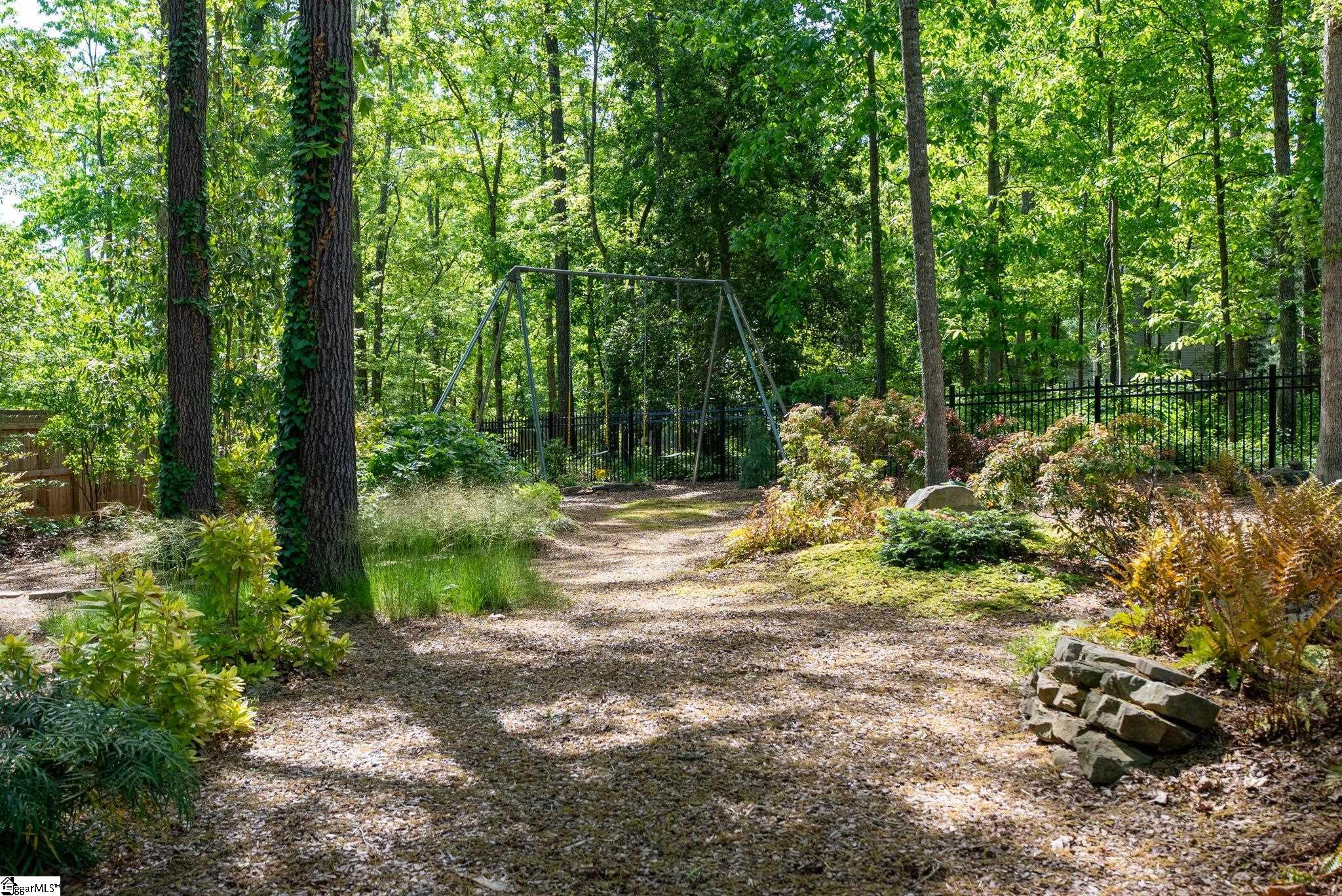 Why go to the park when you can have a park in your own backyard?! Welcome to 107 Moncton Place in the desirable Windsor Forest community in Simpsonville. This meticulously maintained brick one level+bonus home sits on a gorgeous lot with an incredibly designed backyard. Inside, you’ll find a beautiful living area with 10 ft ceilings, a wall of windows crowned with additional transom lighting, gas vented fireplace, and hardwood floors. There’s a large formal dining area with a lovely chandelier, chair rail, and crown molding, and a cozy breakfast nook that overlooks the yard through a canted bay window. The kitchen features granite countertops, maple cabinetry, stainless steel appliances (2025), and stool seating. The kitchen sits with an open view of the surrounding living areas, perfect for hosting, or quiet weekends together at home. There are three bedrooms on the main floor. The spacious primary suite is tucked away and feels like the respite it should be, with a wonderful view of the backyard, garden tub and shower, and sizable walk-in closet. The other two bedrooms have well apportioned closet spaces, and are conveniently located beside the full hall bathroom. Upstairs is a fantastic bonus that would function well as a bedroom, guest room, media space, or take advantage of the built-in recessed desk for your office. The attic space is extensive, with large amounts of shelving and storage, that continues over the garage, with easy access to the tankless gas water heater and furnace. The laundry room has upper cabinets and comes furnished with the washer and dryer. If you aren’t swooning already, you will be when you step onto the patio. The backyard is a stunning retreat, brimming with native plants, boulders, hard-scapes, and blooms. It really is a gardener’s dream and will make those without a ‘green thumb’ reconsider their position on the matter. Fully-fenced, thoughtfully designed, and matured to perfection, this outdoor space has plenty of lawn for playing and a commercial grade swing set that will delight the child in all of us. There’s plenty of room for parking on the concrete driveway (2018) or in the 2 car garage (with workbench!) Seller has made consistent upgrades from windows to HVAC, making this a wonderful opportunity to live with: award-winning schools, convenience to downtown Simpsonville and Five Forks amenities, neighborhood pool, and community recreation trails. Life is for living, and 107 Moncton is an invitation to live well!