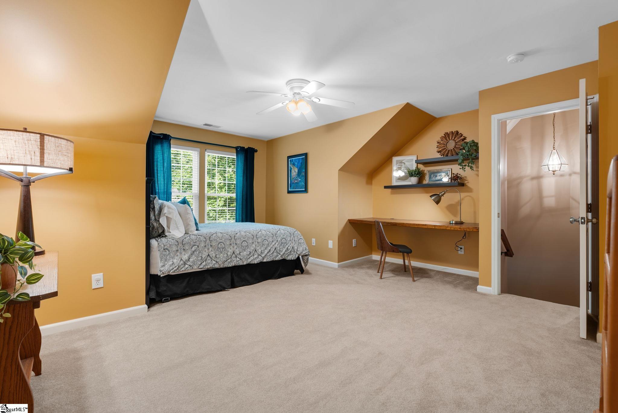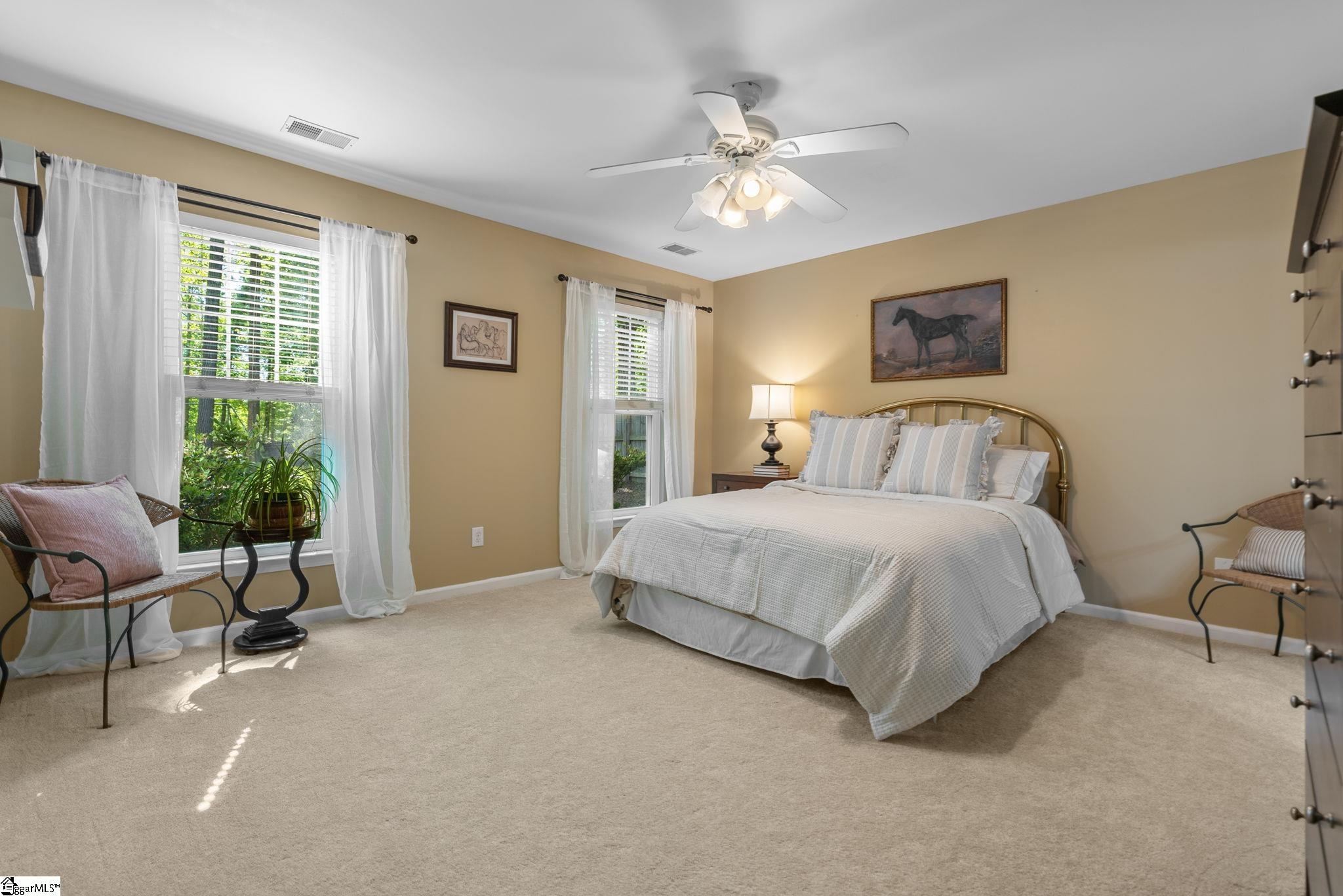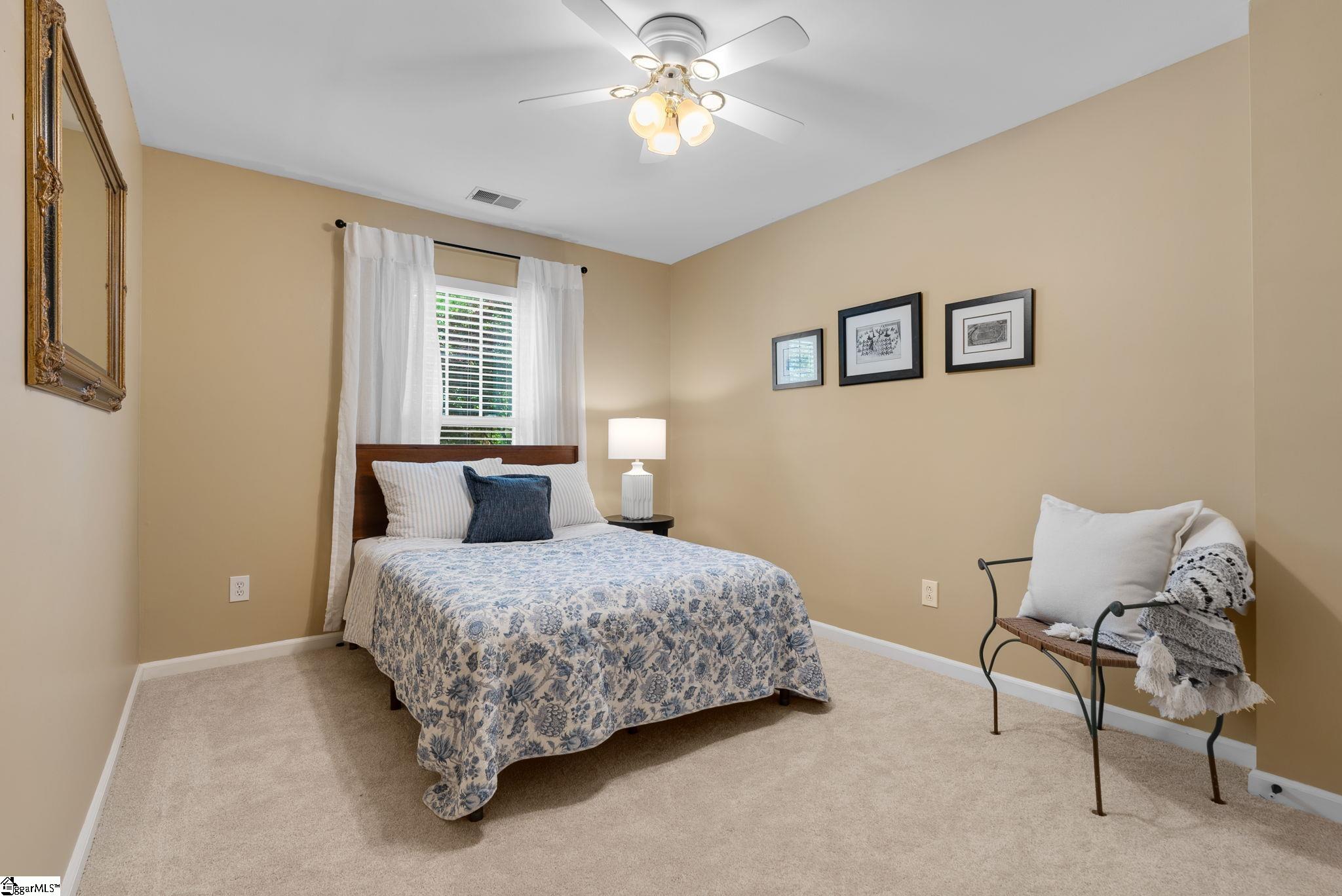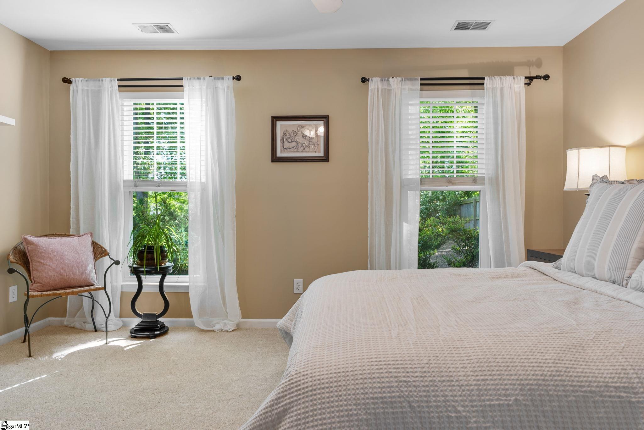 Why go to the park when you can have a park in your own backyard?! Welcome to 107 Moncton Place in the desirable Windsor Forest community in Simpsonville. This meticulously maintained brick one level+bonus home sits on a gorgeous lot with an incredibly designed backyard. Inside, you’ll find a beautiful living area with 10 ft ceilings, a wall of windows crowned with additional transom lighting, gas vented fireplace, and hardwood floors. There’s a large formal dining area with a lovely chandelier, chair rail, and crown molding, and a cozy breakfast nook that overlooks the yard through a canted bay window. The kitchen features granite countertops, maple cabinetry, stainless steel appliances (2025), and stool seating. The kitchen sits with an open view of the surrounding living areas, perfect for hosting, or quiet weekends together at home. There are three bedrooms on the main floor. The spacious primary suite is tucked away and feels like the respite it should be, with a wonderful view of the backyard, garden tub and shower, and sizable walk-in closet. The other two bedrooms have well apportioned closet spaces, and are conveniently located beside the full hall bathroom. Upstairs is a fantastic bonus that would function well as a bedroom, guest room, media space, or take advantage of the built-in recessed desk for your office. The attic space is extensive, with large amounts of shelving and storage, that continues over the garage, with easy access to the tankless gas water heater and furnace. The laundry room has upper cabinets and comes furnished with the washer and dryer. If you aren’t swooning already, you will be when you step onto the patio. The backyard is a stunning retreat, brimming with native plants, boulders, hard-scapes, and blooms. It really is a gardener’s dream and will make those without a ‘green thumb’ reconsider their position on the matter. Fully-fenced, thoughtfully designed, and matured to perfection, this outdoor space has plenty of lawn for playing and a commercial grade swing set that will delight the child in all of us. There’s plenty of room for parking on the concrete driveway (2018) or in the 2 car garage (with workbench!) Seller has made consistent upgrades from windows to HVAC, making this a wonderful opportunity to live with: award-winning schools, convenience to downtown Simpsonville and Five Forks amenities, neighborhood pool, and community recreation trails. Life is for living, and 107 Moncton is an invitation to live well!