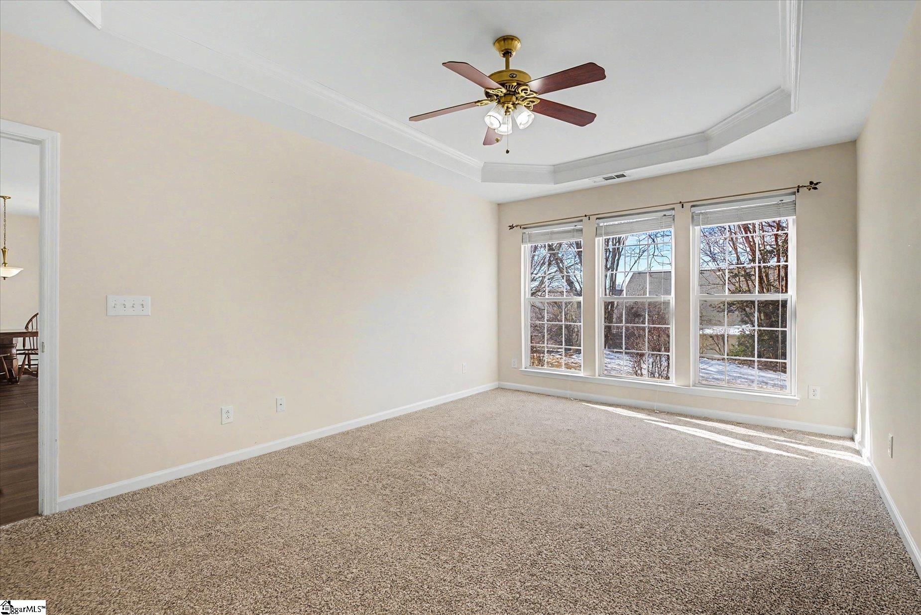 Enjoy low-maintenance living in this elegant one-story home with an open floor plan in St. James Place! Settle down in this very desirable location on Greenville’s east side; conveniently located to the interstate, shopping, restaurants, schools, medical and fitness facilities. This splendid 2BR, 2BA plan has a generous sized office-flex room at the front and a very open spacious family room with a lovely gas-log fireplace, 9 foot ceilings and an abundance of natural light. This home also has a formal dining room, a breakfast area, a walk-in laundry room and a nice sun room overlooking a level, semi-private back yard! The home was originally part of an estate and is now ready to occupy and is being sold As-Is. Book your appointment today…Now only $327,000!