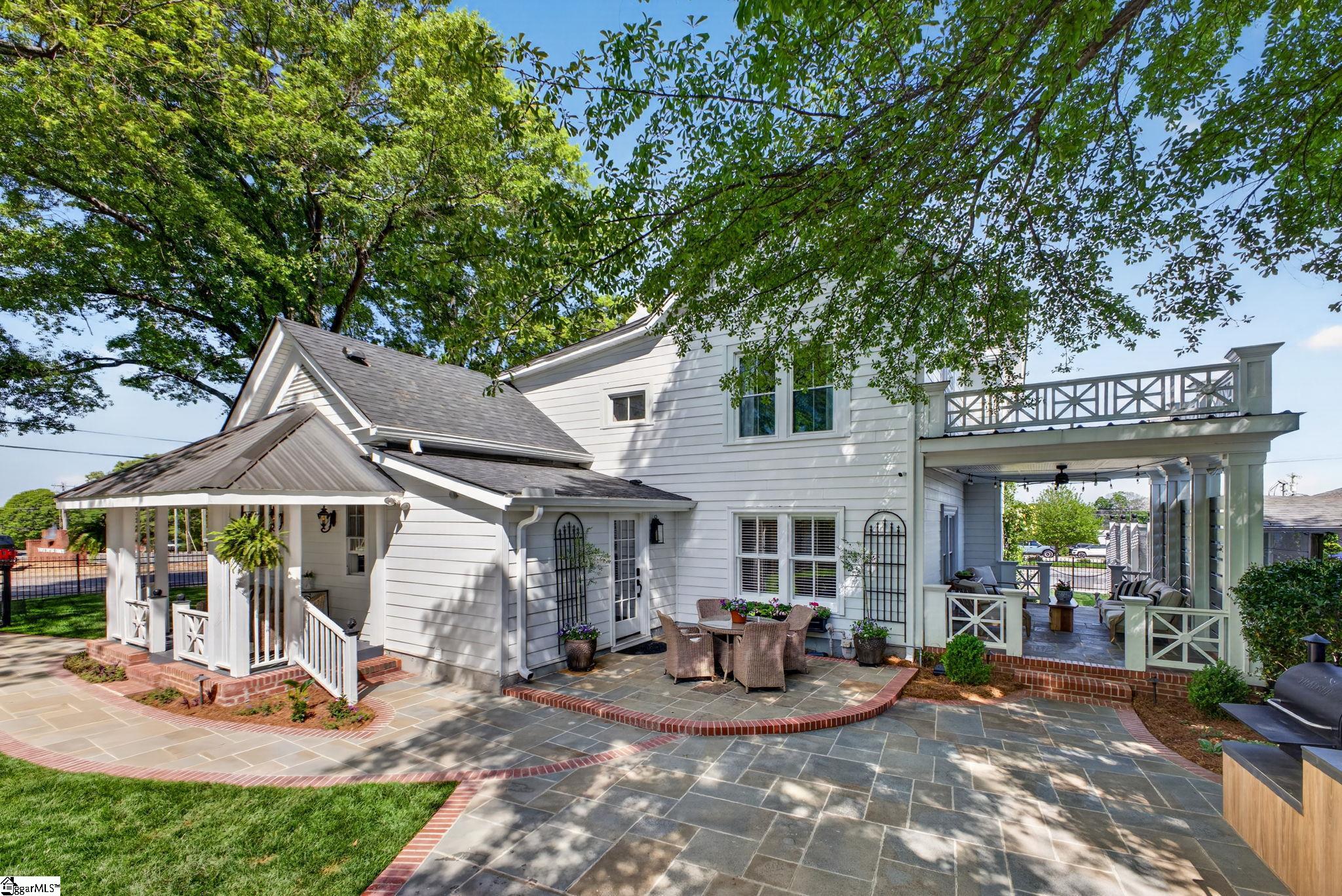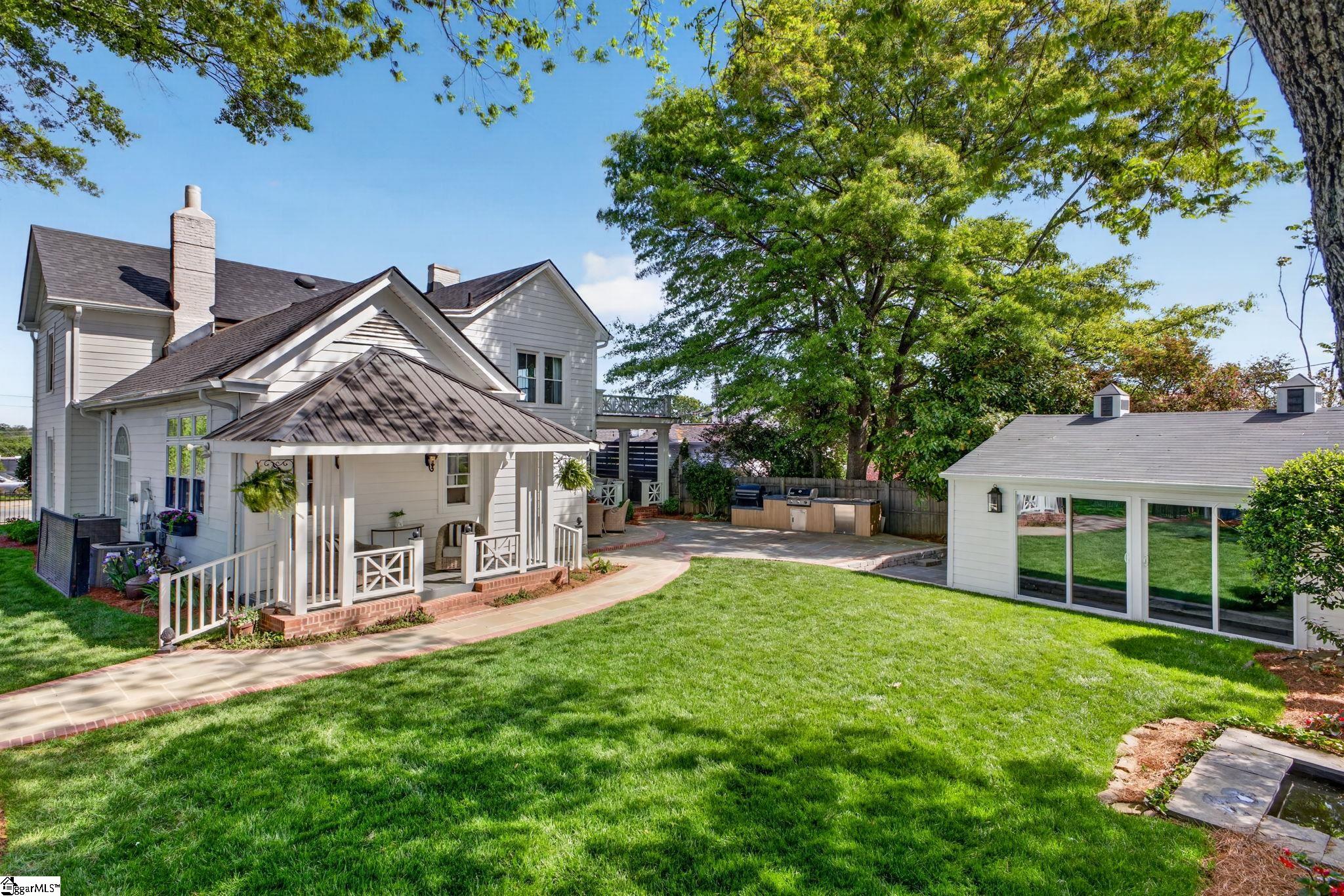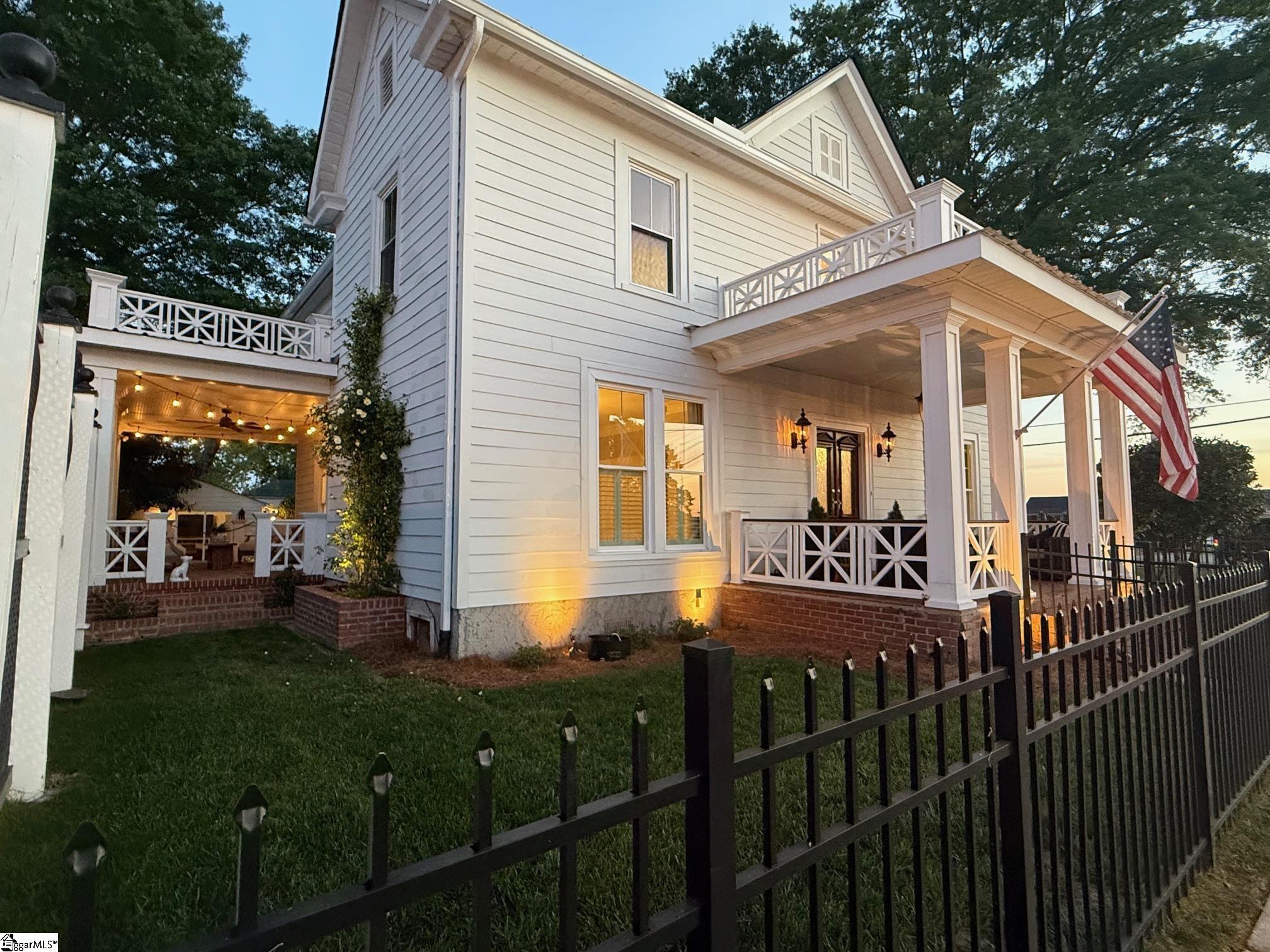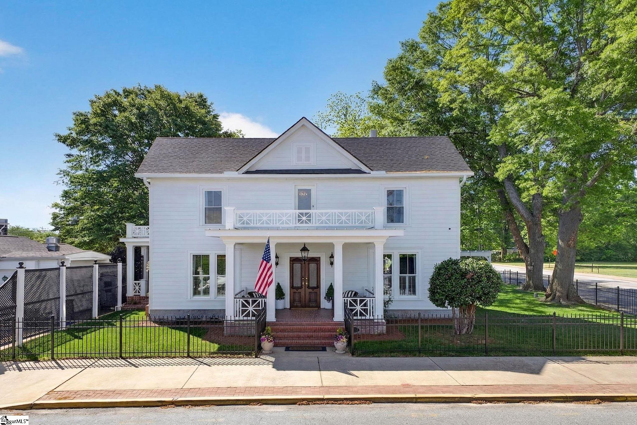 Refined downtown living in a timeless historic property right in the heart of Simpsonville. This exceptional residence offers an elevated lifestyle just steps from the energy, dining, and boutique shopping of vibrant Main Street. Come live your best Hallmark life in this incredible historic home that was lovingly built in 1885, making it the most historic house in downtown Simpsonville. The character and integrity have been carefully preserved throughout the decades of dedicated maintenance and updates. This is truly a one- of a-kind home. The curb appeal of this stately southern beauty can only be outdone by the beauty you’ll find inside…. which will take your breath away. Elegant lighting, brilliant details, rich hardwood floors from the entry through the elegant formal living and dining spaces and into the kitchen, which is both functional and warm, blending historic character with modern convenience. A boutique style laundry area at the courtyard entry adds everyday practicality. A main-level primary suite offers privacy, complete with a beautifully appointed bathroom and overlooks a charming, covered patio. The second level features one bedroom and full bathroom at the top of the stairs plus two additional bedrooms that share a stunning full bathroom along with a finished storage closet. A loft area opens to a balcony with views of downtown. Step outside to discover a surprisingly private, fenced courtyard with storybook charm… surrounded by a lush lawn and sets a new bar for landscaping. An additional 400-square-foot detached structure, fully heated and cooled, provides endless possibilities for a guest suite, art studio, or home office. The outdoor kitchen is a true highlight, complete with built-in Traeger and Weber Grill. This unique residence is grandfathered in as residential use in the heart of downtown and you have the flexibility to convert to commercial or live/ work mixed use since its zoned “Business urban.” Historically known as the Greene- Lewis house, this property has some stories to tell. The house has played a key role in the history of downtown Simpsonville. The original telephone switchboard and the original water tower were once on this property. It’s modernized in every way with electrical, plumbing, crawlspace, HVAC, tankless water heater and more! The owners have added a finished storage closet as well as an abundance of floored attic storage. A two-car covered carport has an attached garden shed and you can find plenty of guest parking on the street or in the free parking lot across the street as well. It’s an easy walk or golf cart ride to College Park and Gracely Park which feature brand new pickle ball courts for your enjoyment. Simpsonville Parks & Recreation has so much to offer for all ages. There are so many activities within walking distance including youth sports, movies in the park, holiday events, and festivals, The Simpsonville Senior Center is within walking distance and features a lounge, pool tables, exercise equipment, line dancing, Tai chi, bingo and more. Downtown living +Historic charm + Unbeatable walkability.