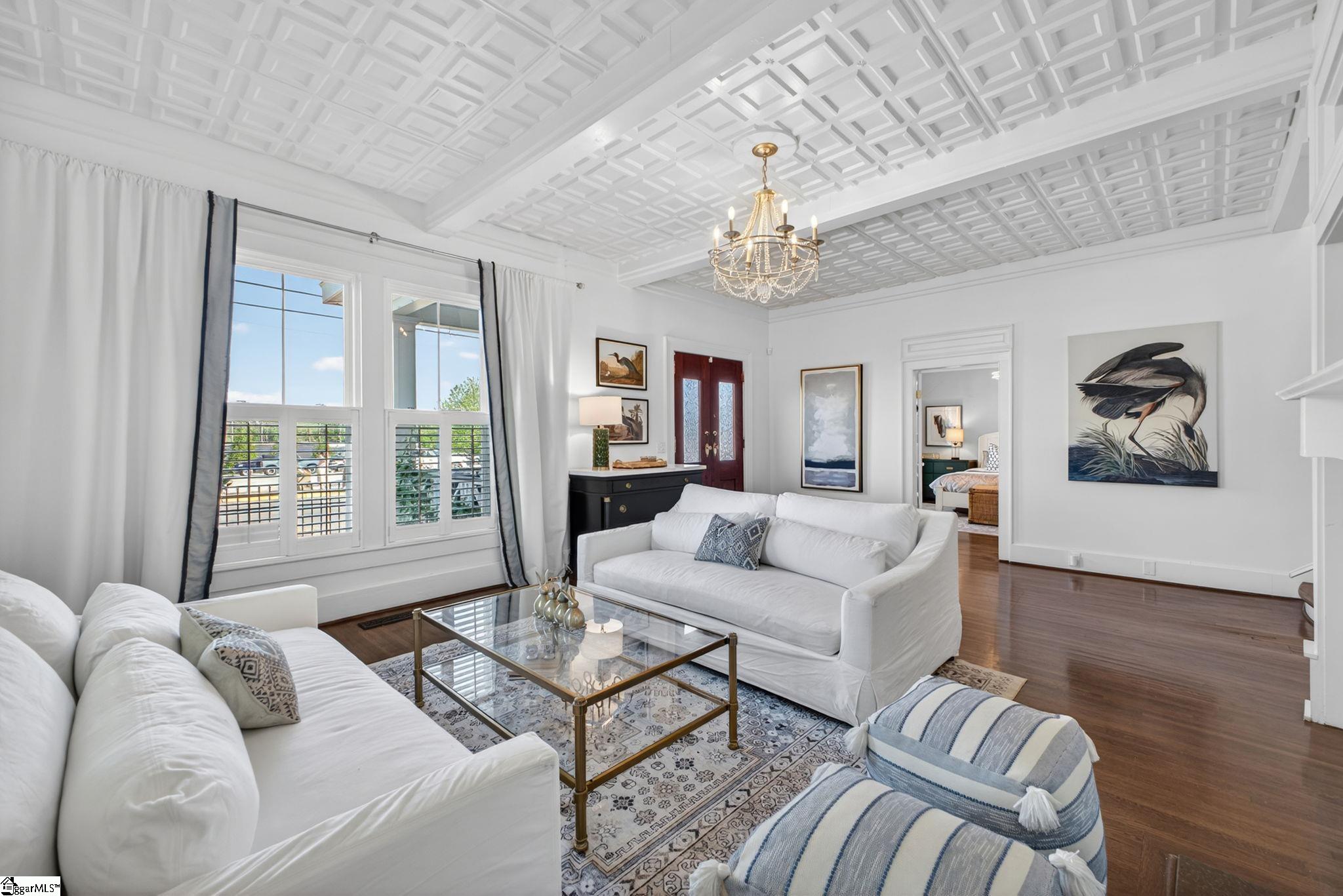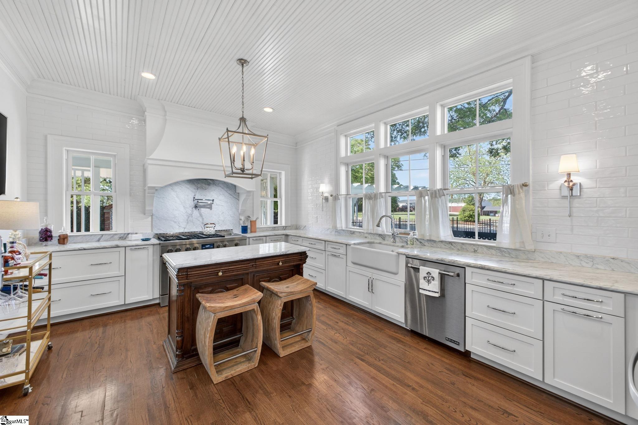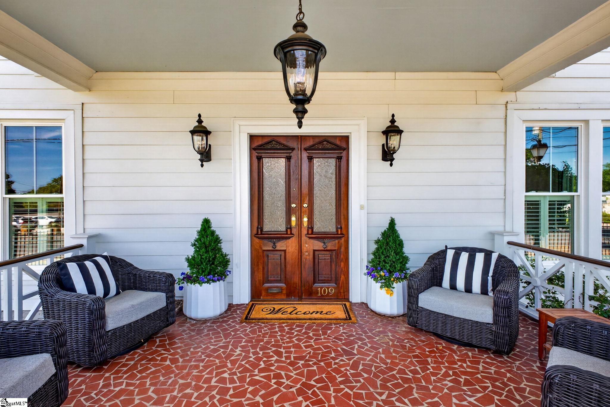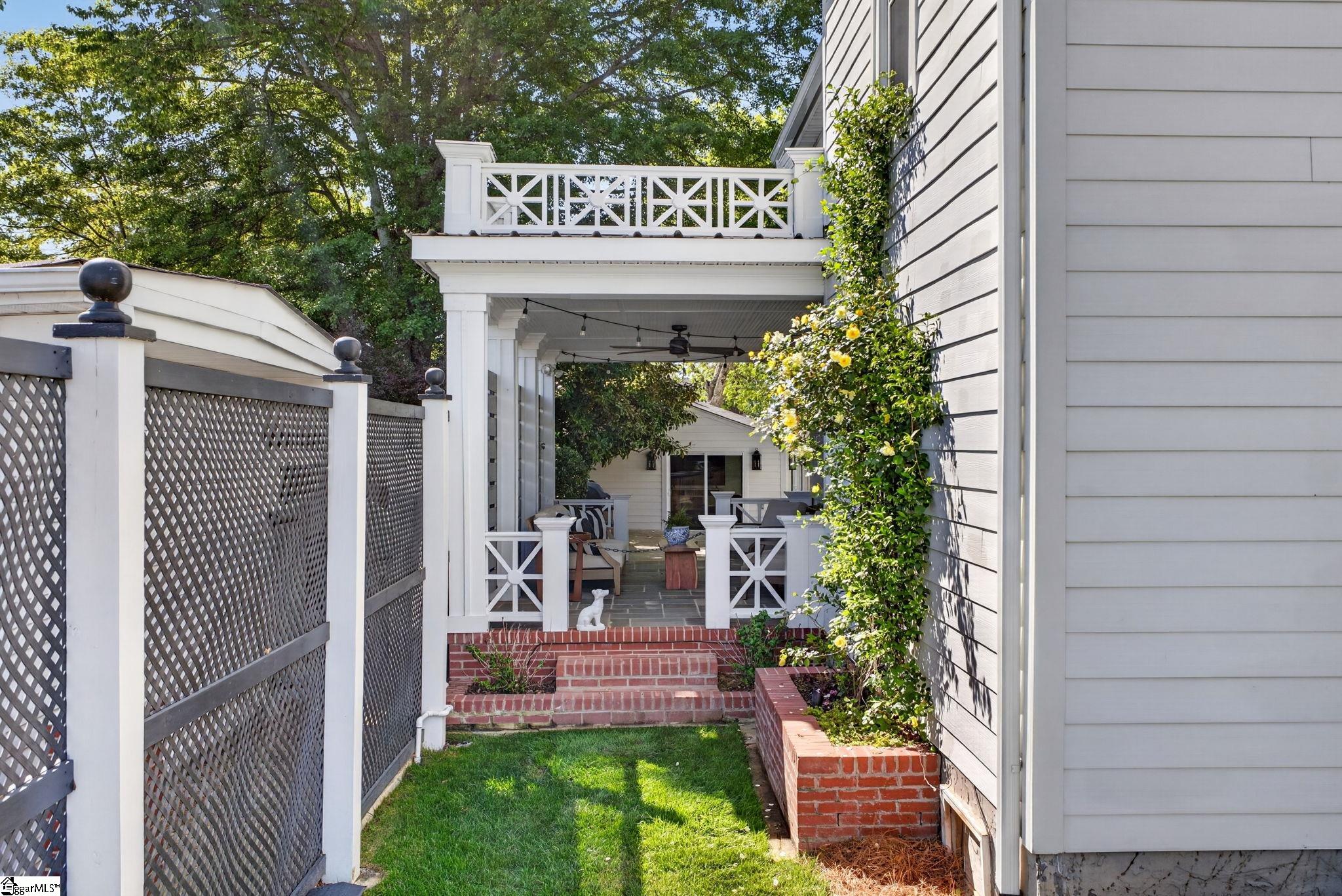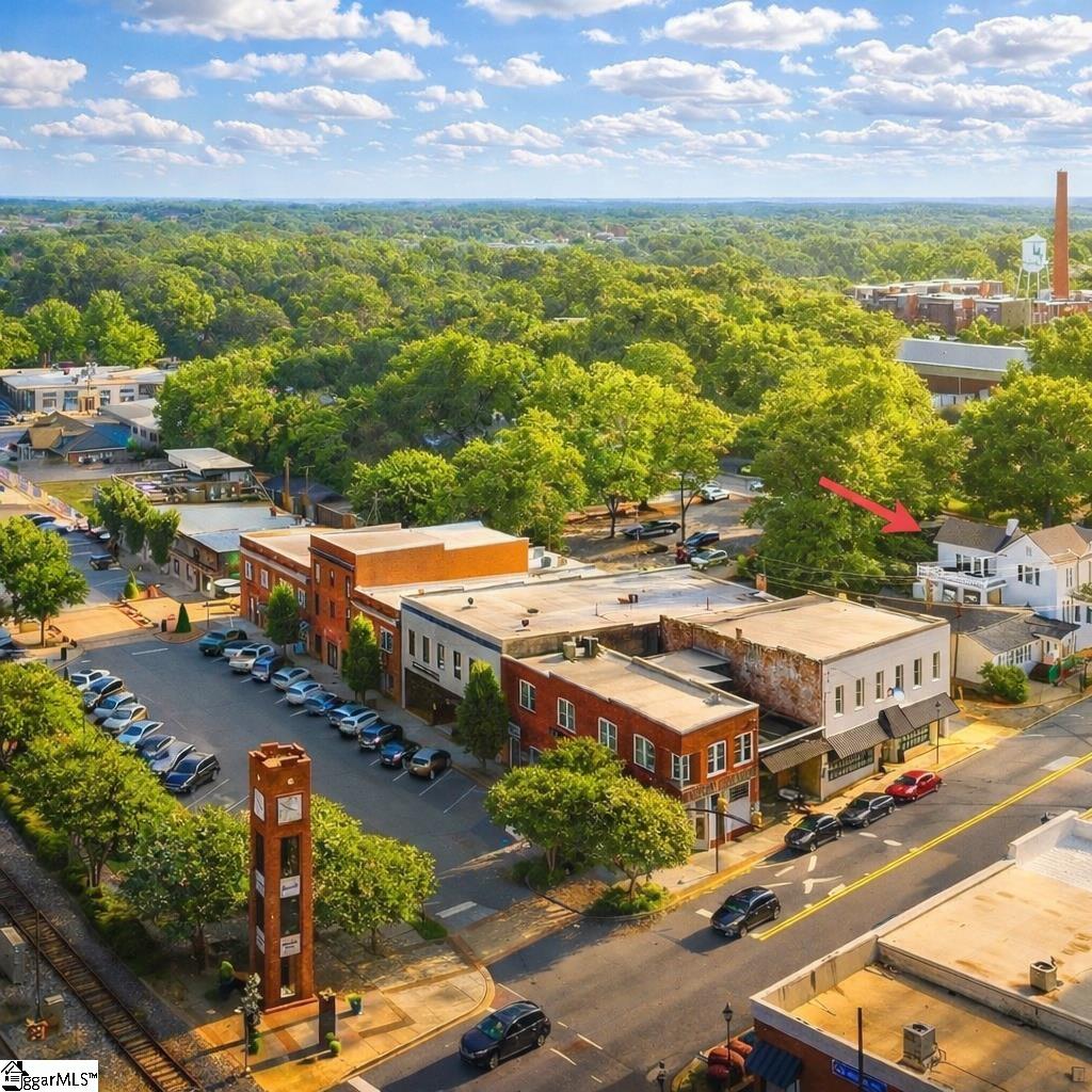 Refined downtown living in a timeless historic property right in the heart of Simpsonville. This exceptional residence offers an elevated lifestyle just steps from the energy, dining, and boutique shopping of vibrant Main Street. Come live your best Hallmark life in this incredible historic home that was lovingly built in 1885, making it the most historic house in downtown Simpsonville. The character and integrity have been carefully preserved throughout the decades of dedicated maintenance and updates. This is truly a one- of a-kind home. The curb appeal of this stately southern beauty can only be outdone by the beauty you’ll find inside…. which will take your breath away. Elegant lighting, brilliant details, rich hardwood floors from the entry through the elegant formal living and dining spaces and into the kitchen, which is both functional and warm, blending historic character with modern convenience. A boutique style laundry area at the courtyard entry adds everyday practicality. A main-level primary suite offers privacy, complete with a beautifully appointed bathroom and overlooks a charming, covered patio. The second level features one bedroom and full bathroom at the top of the stairs plus two additional bedrooms that share a stunning full bathroom along with a finished storage closet. A loft area opens to a balcony with views of downtown. Step outside to discover a surprisingly private, fenced courtyard with storybook charm… surrounded by a lush lawn and sets a new bar for landscaping. An additional 400-square-foot detached structure, fully heated and cooled, provides endless possibilities for a guest suite, art studio, or home office. The outdoor kitchen is a true highlight, complete with built-in Traeger and Weber Grill. This unique residence is grandfathered in as residential use in the heart of downtown and you have the flexibility to convert to commercial or live/ work mixed use since its zoned “Business urban.” Historically known as the Greene- Lewis house, this property has some stories to tell. The house has played a key role in the history of downtown Simpsonville. The original telephone switchboard and the original water tower were once on this property. It’s modernized in every way with electrical, plumbing, crawlspace, HVAC, tankless water heater and more! The owners have added a finished storage closet as well as an abundance of floored attic storage. A two-car covered carport has an attached garden shed and you can find plenty of guest parking on the street or in the free parking lot across the street as well. It’s an easy walk or golf cart ride to College Park and Gracely Park which feature brand new pickle ball courts for your enjoyment. Simpsonville Parks & Recreation has so much to offer for all ages. There are so many activities within walking distance including youth sports, movies in the park, holiday events, and festivals, The Simpsonville Senior Center is within walking distance and features a lounge, pool tables, exercise equipment, line dancing, Tai chi, bingo and more. Downtown living +Historic charm + Unbeatable walkability.