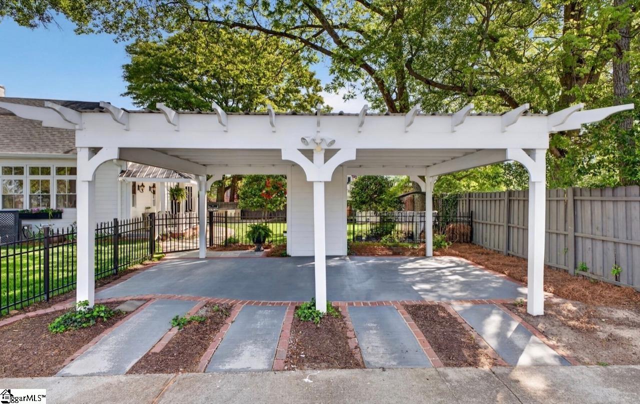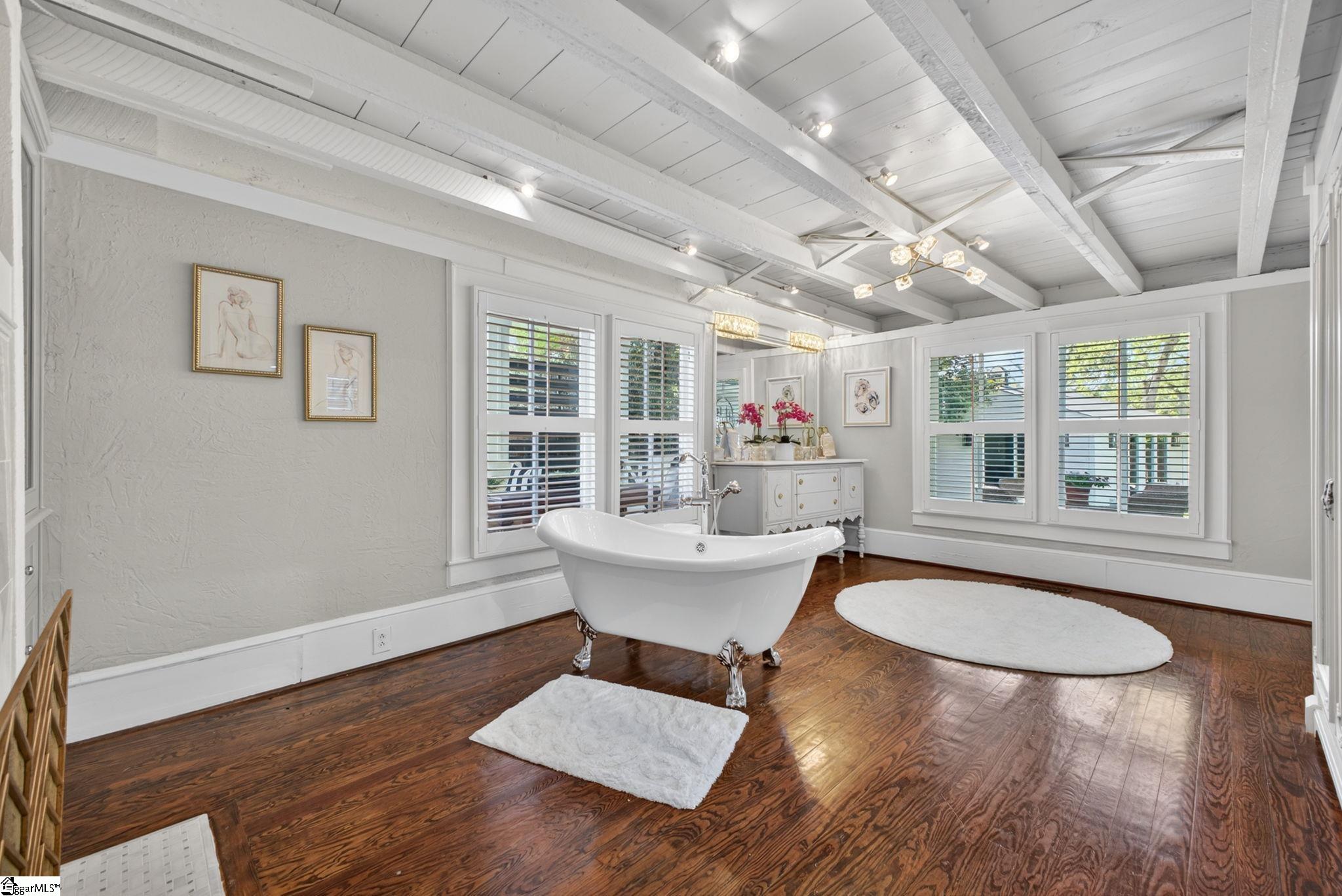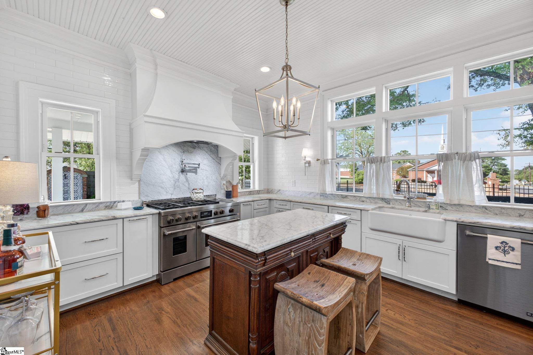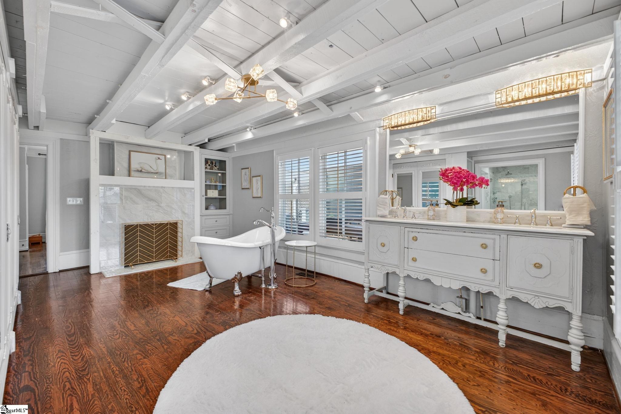 Refined downtown living in a timeless historic property right in the heart of Simpsonville. This exceptional residence offers an elevated lifestyle just steps from the energy, dining, and boutique shopping of vibrant Main Street. Come live your best Hallmark life in this incredible historic home that was lovingly built in 1885, making it the most historic house in downtown Simpsonville. The character and integrity have been carefully preserved throughout the decades of dedicated maintenance and updates. This is truly a one- of a-kind home. The curb appeal of this stately southern beauty can only be outdone by the beauty you’ll find inside…. which will take your breath away. Elegant lighting, brilliant details, rich hardwood floors from the entry through the elegant formal living and dining spaces and into the kitchen, which is both functional and warm, blending historic character with modern convenience. A boutique style laundry area at the courtyard entry adds everyday practicality. A main-level primary suite offers privacy, complete with a beautifully appointed bathroom and overlooks a charming, covered patio. The second level features one bedroom and full bathroom at the top of the stairs plus two additional bedrooms that share a stunning full bathroom along with a finished storage closet. A loft area opens to a balcony with views of downtown. Step outside to discover a surprisingly private, fenced courtyard with storybook charm… surrounded by a lush lawn and sets a new bar for landscaping. An additional 400-square-foot detached structure, fully heated and cooled, provides endless possibilities for a guest suite, art studio, or home office. The outdoor kitchen is a true highlight, complete with built-in Traeger and Weber Grill. This unique residence is grandfathered in as residential use in the heart of downtown and you have the flexibility to convert to commercial or live/ work mixed use since its zoned “Business urban.” Historically known as the Greene- Lewis house, this property has some stories to tell. The house has played a key role in the history of downtown Simpsonville. The original telephone switchboard and the original water tower were once on this property. It’s modernized in every way with electrical, plumbing, crawlspace, HVAC, tankless water heater and more! The owners have added a finished storage closet as well as an abundance of floored attic storage. A two-car covered carport has an attached garden shed and you can find plenty of guest parking on the street or in the free parking lot across the street as well. It’s an easy walk or golf cart ride to College Park and Gracely Park which feature brand new pickle ball courts for your enjoyment. Simpsonville Parks & Recreation has so much to offer for all ages. There are so many activities within walking distance including youth sports, movies in the park, holiday events, and festivals, The Simpsonville Senior Center is within walking distance and features a lounge, pool tables, exercise equipment, line dancing, Tai chi, bingo and more. Downtown living +Historic charm + Unbeatable walkability.