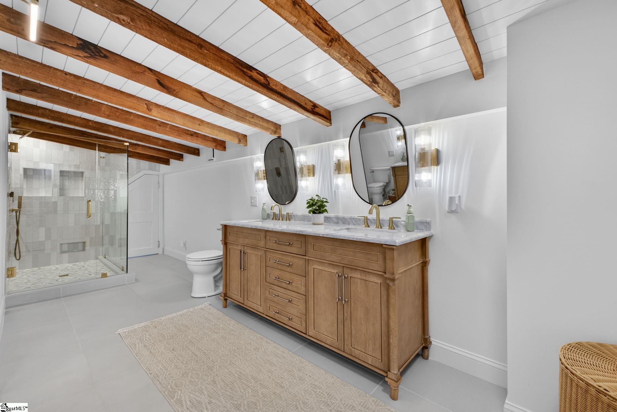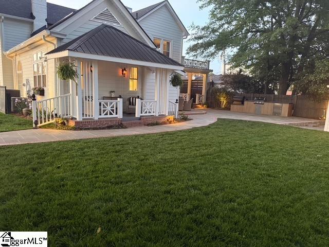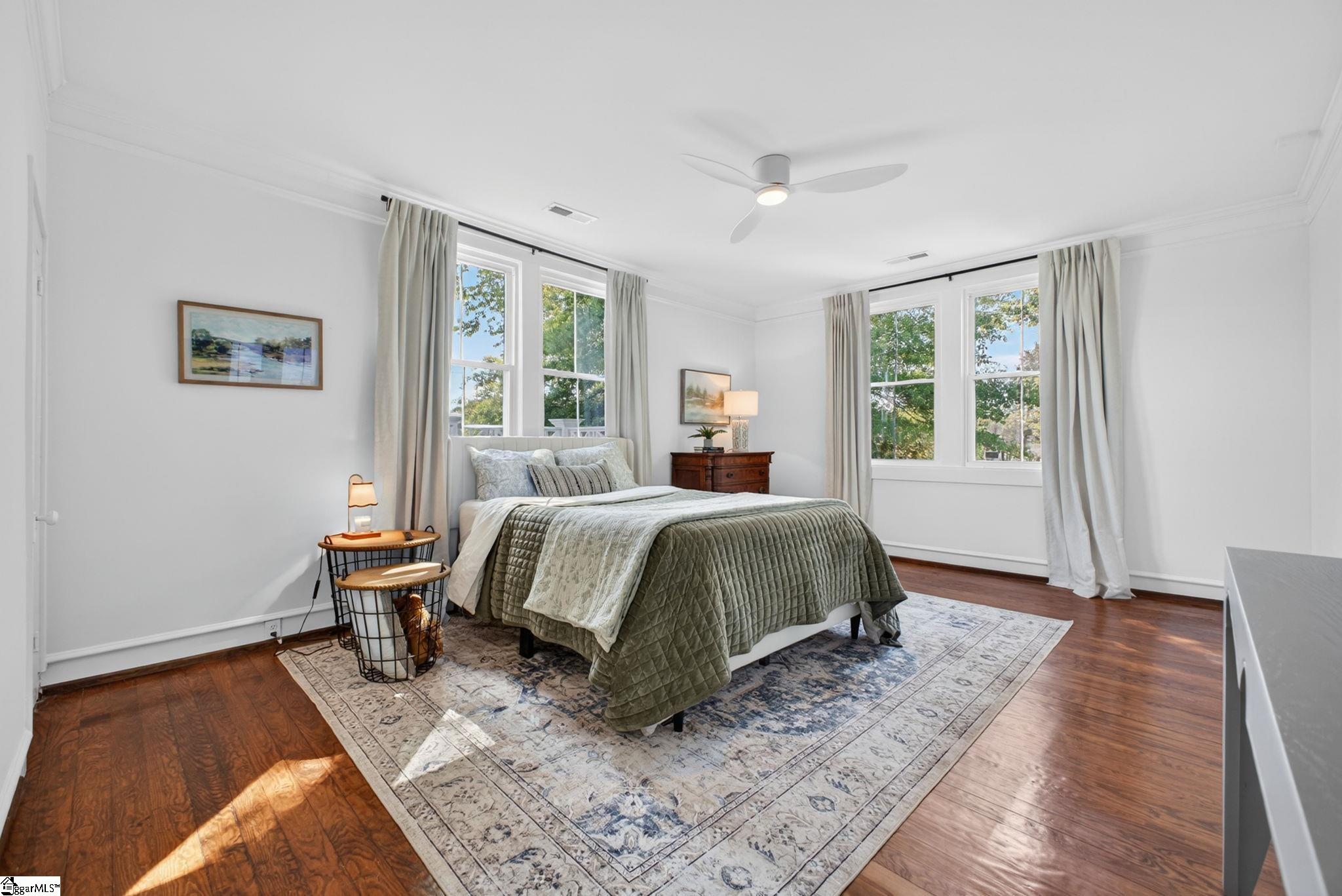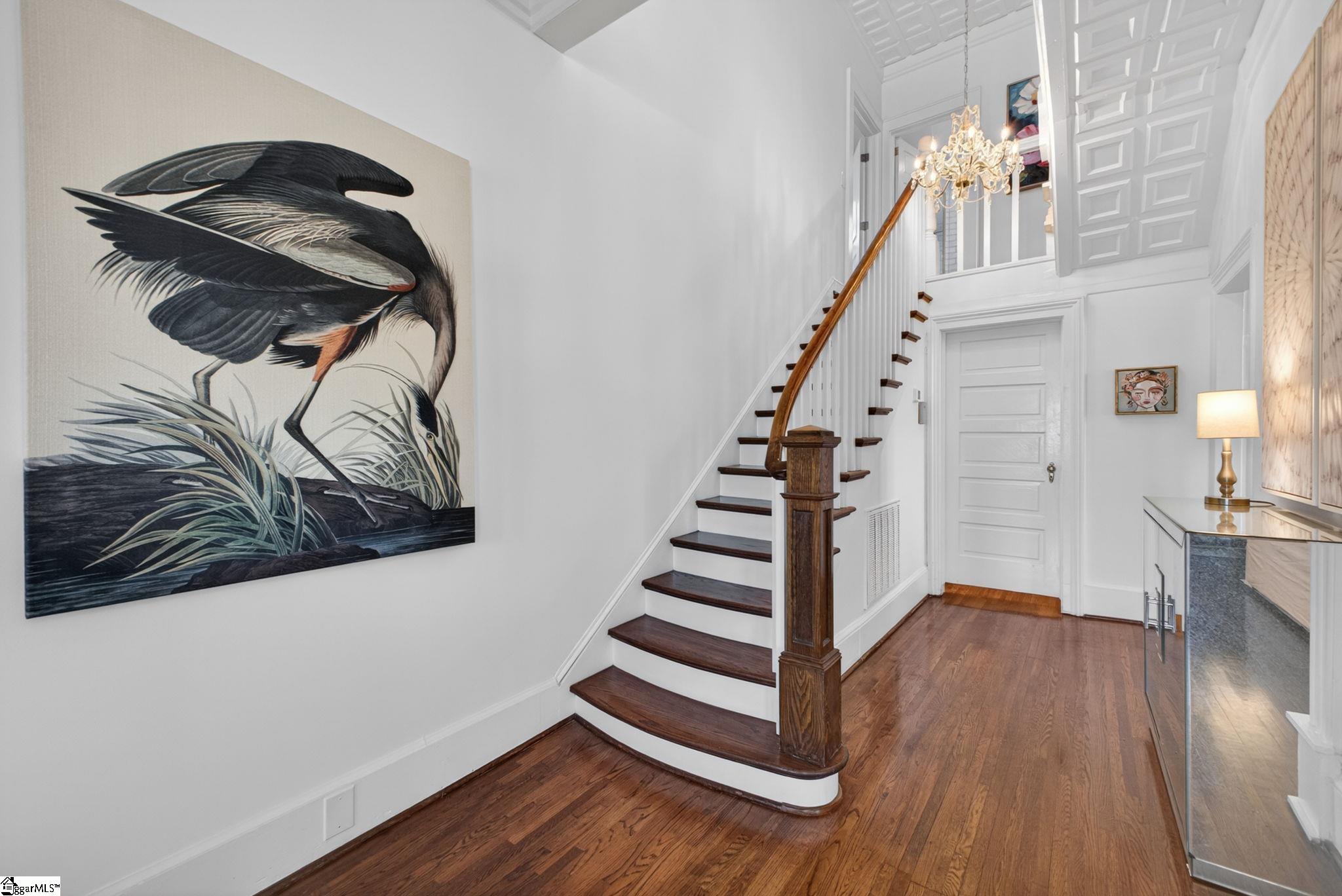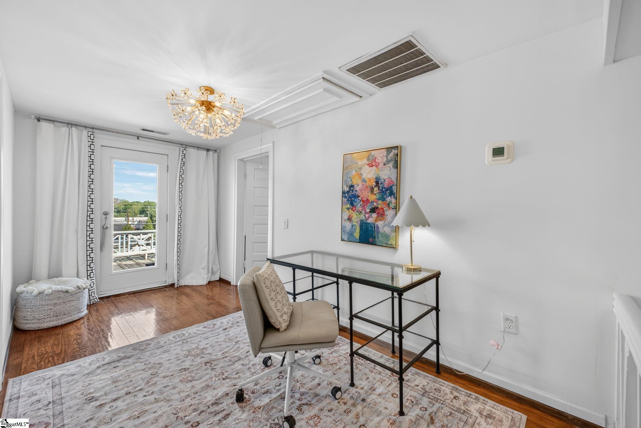 Refined downtown living in a timeless historic property right in the heart of Simpsonville. This exceptional residence offers an elevated lifestyle just steps from the energy, dining, and boutique shopping of vibrant Main Street. Come live your best Hallmark life in this incredible historic home that was lovingly built in 1885, making it the most historic house in downtown Simpsonville. The character and integrity have been carefully preserved throughout the decades of dedicated maintenance and updates. This is truly a one- of a-kind home. The curb appeal of this stately southern beauty can only be outdone by the beauty you’ll find inside…. which will take your breath away. Elegant lighting, brilliant details, rich hardwood floors from the entry through the elegant formal living and dining spaces and into the kitchen, which is both functional and warm, blending historic character with modern convenience. A boutique style laundry area at the courtyard entry adds everyday practicality. A main-level primary suite offers privacy, complete with a beautifully appointed bathroom and overlooks a charming, covered patio. The second level features one bedroom and full bathroom at the top of the stairs plus two additional bedrooms that share a stunning full bathroom along with a finished storage closet. A loft area opens to a balcony with views of downtown. Step outside to discover a surprisingly private, fenced courtyard with storybook charm… surrounded by a lush lawn and sets a new bar for landscaping. An additional 400-square-foot detached structure, fully heated and cooled, provides endless possibilities for a guest suite, art studio, or home office. The outdoor kitchen is a true highlight, complete with built-in Traeger and Weber Grill. This unique residence is grandfathered in as residential use in the heart of downtown and you have the flexibility to convert to commercial or live/ work mixed use since its zoned “Business urban.” Historically known as the Greene- Lewis house, this property has some stories to tell. The house has played a key role in the history of downtown Simpsonville. The original telephone switchboard and the original water tower were once on this property. It’s modernized in every way with electrical, plumbing, crawlspace, HVAC, tankless water heater and more! The owners have added a finished storage closet as well as an abundance of floored attic storage. A two-car covered carport has an attached garden shed and you can find plenty of guest parking on the street or in the free parking lot across the street as well. It’s an easy walk or golf cart ride to College Park and Gracely Park which feature brand new pickle ball courts for your enjoyment. Simpsonville Parks & Recreation has so much to offer for all ages. There are so many activities within walking distance including youth sports, movies in the park, holiday events, and festivals, The Simpsonville Senior Center is within walking distance and features a lounge, pool tables, exercise equipment, line dancing, Tai chi, bingo and more. Downtown living +Historic charm + Unbeatable walkability.