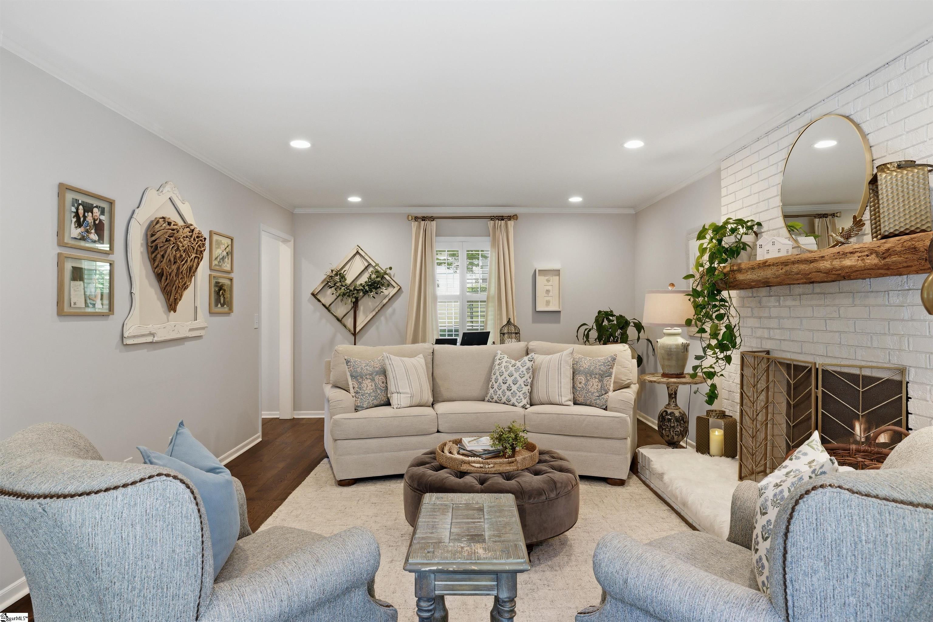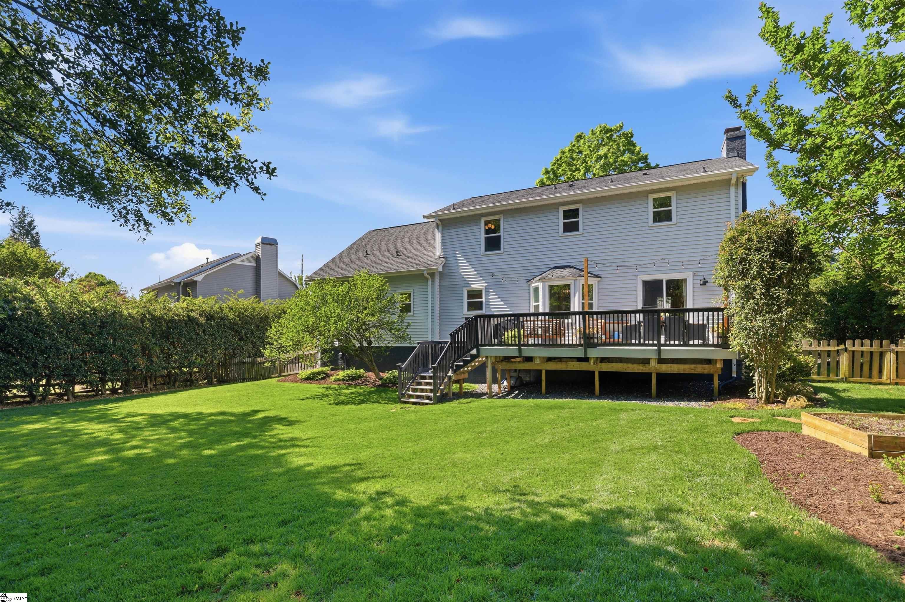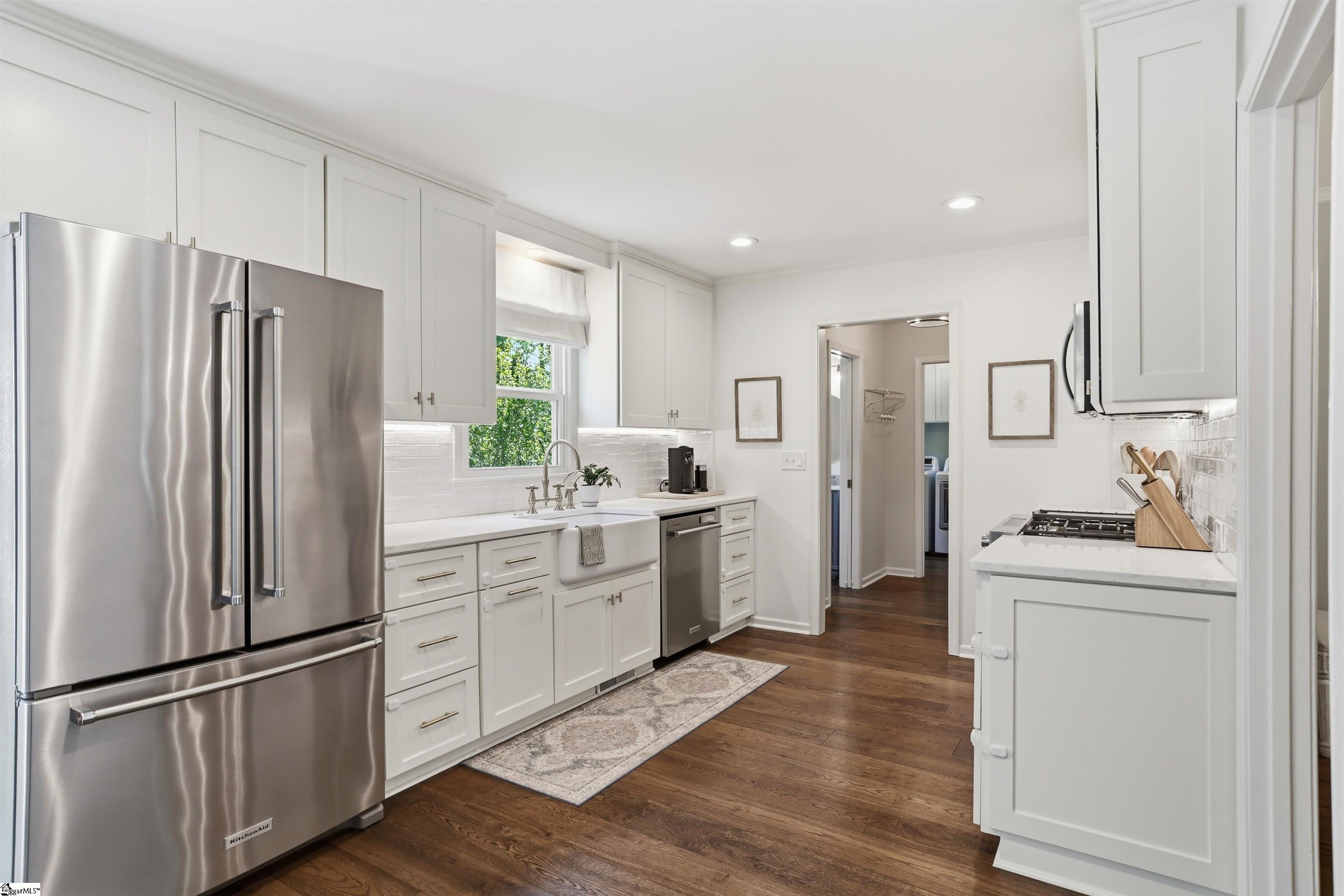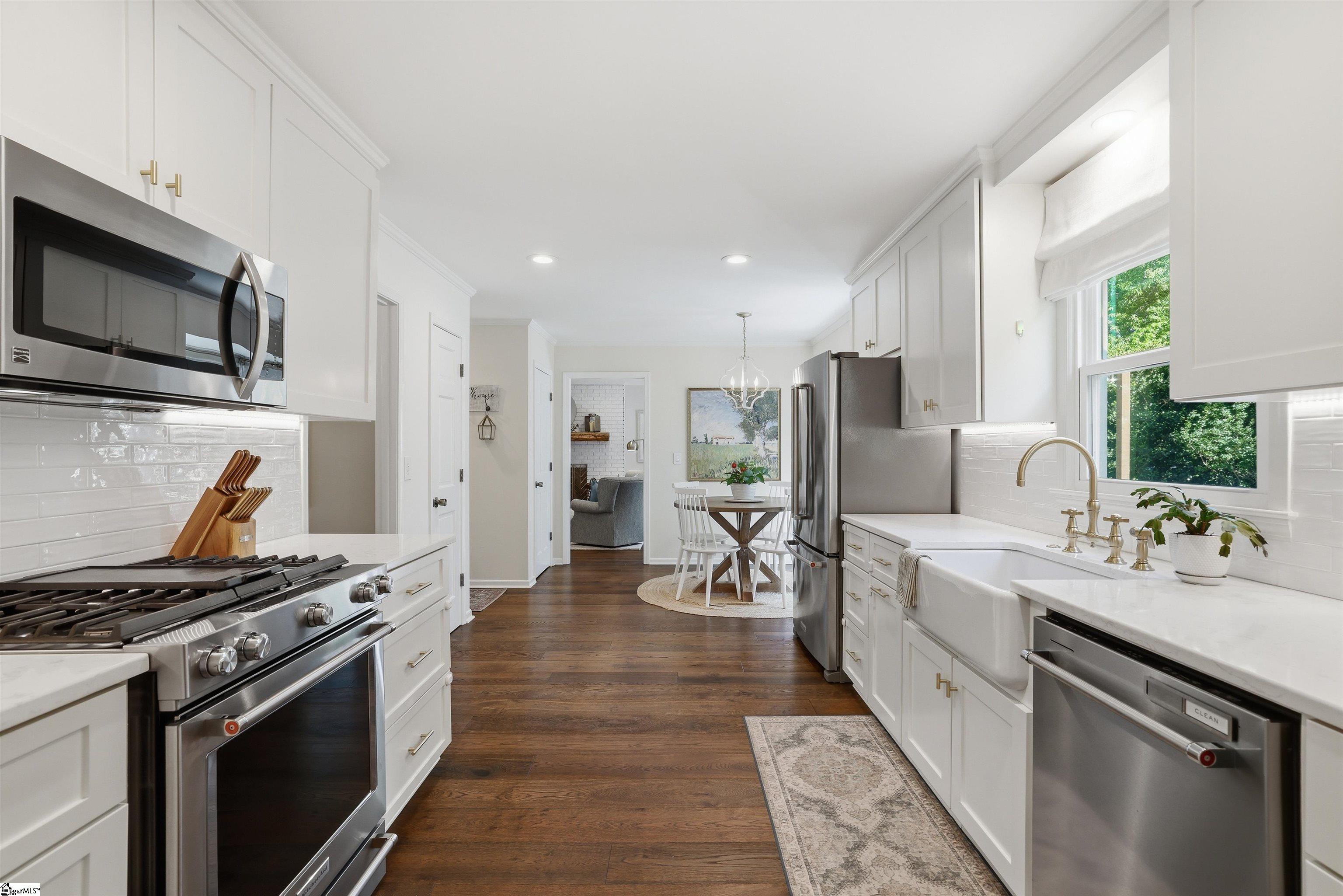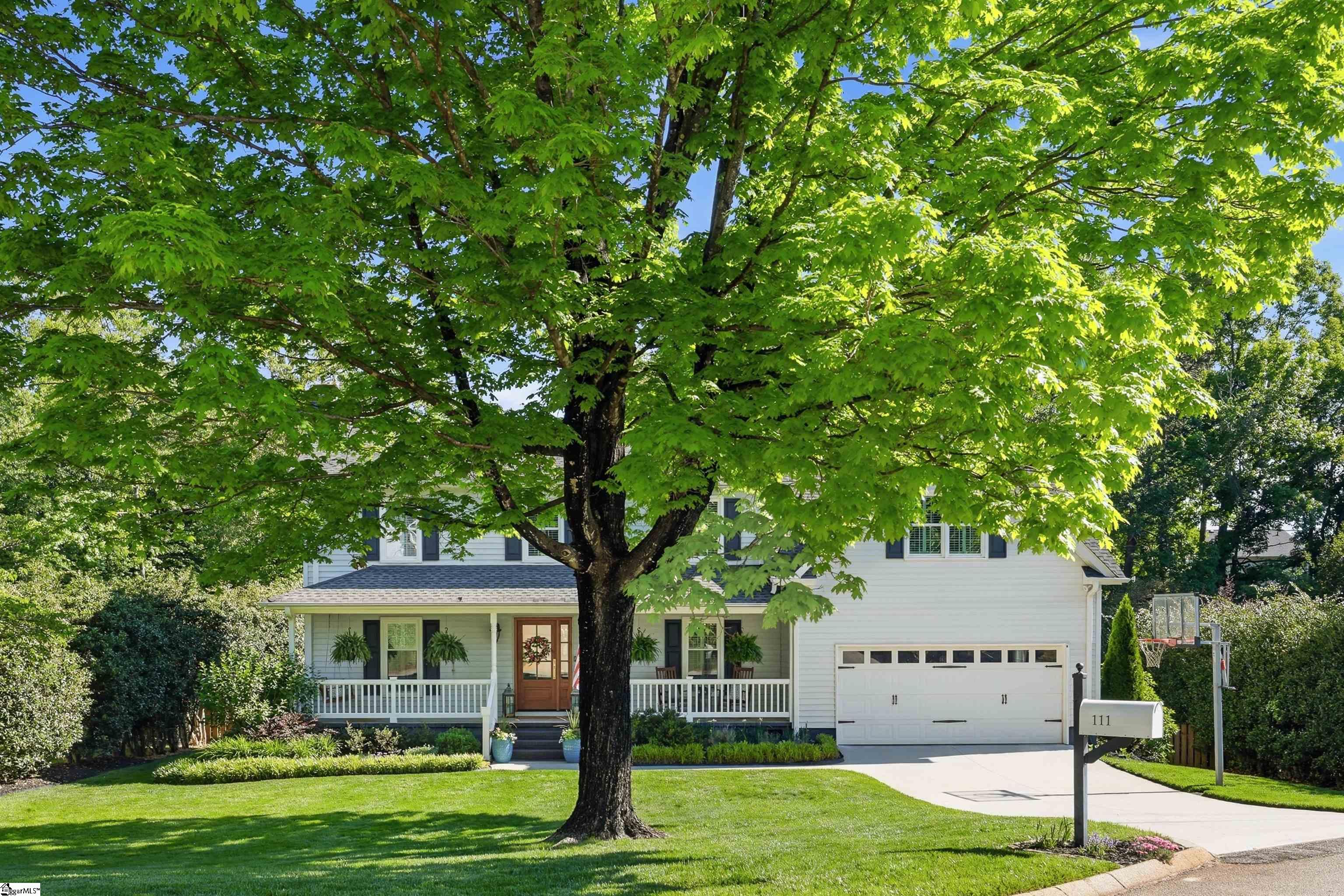 Welcome to your new home at 111 Devenridge Drive! Tucked away on a peaceful cul-de-sac in the heart of Greenville’s Eastside, this fully renovated 3 bed 2.5 bath home with bonus room offers more than just beautiful spaces, It offers a way of living. Mornings begin with soft natural light pouring across the rich Pennsylvania brick engineered hardwood floors, coffee in hand from your stunning chef’s kitchen, complete with quartz countertops, tile backsplash, under cabinet lighting, premium KitchenAid appliances, a gas range, and a classic “Shaws Original” farmhouse sink that feels both timeless and elevated. The home flows effortlessly, inviting connection whether it’s quiet evenings by the gas fireplace with its historic mantle from a 1850’s cabin or lively gatherings with friends and family. Every space has been thoughtfully designed to make daily life easier and more enjoyable, from the custom storage systems throughout to the serene primary suite that feels like a private retreat. Unwind in a spa-like bathroom with a seamless glass shower and custom details that bring both luxury and function into your everyday routine. Step outside and you’ll find where this home truly shines. A Trex deck overlooks a beautifully landscaped, fenced backyard framed by peaceful woods offering rare privacy and a calming, natural backdrop. It’s the perfect setting for slow mornings, weekend barbecues, or simply enjoying the quiet. Set on a generous 0.33-acre lot in one of Greenville’s most desirable areas, this home blends thoughtful design, modern comfort, and a sense of retreat all just minutes from everything you need. You will love all of the custom closet systems throughout the home including in the pantry, laundry, and all other closets in the home. All major systems throughout the home have all been recently updated/replaced including the roof, HVAC, and water heater. This isn’t just a place to live, it’s a place to settle in, recharge, and truly feel at home.