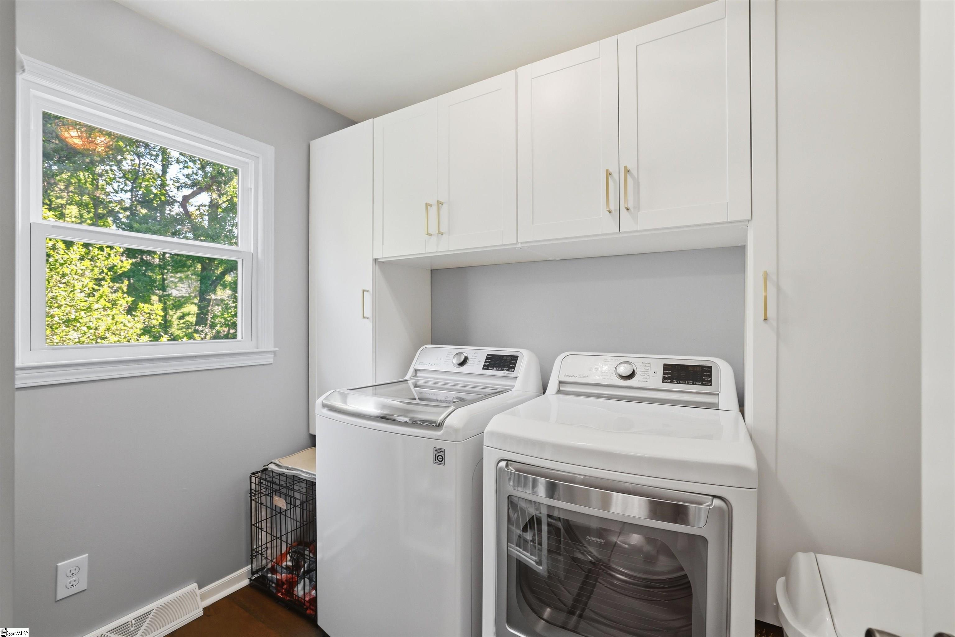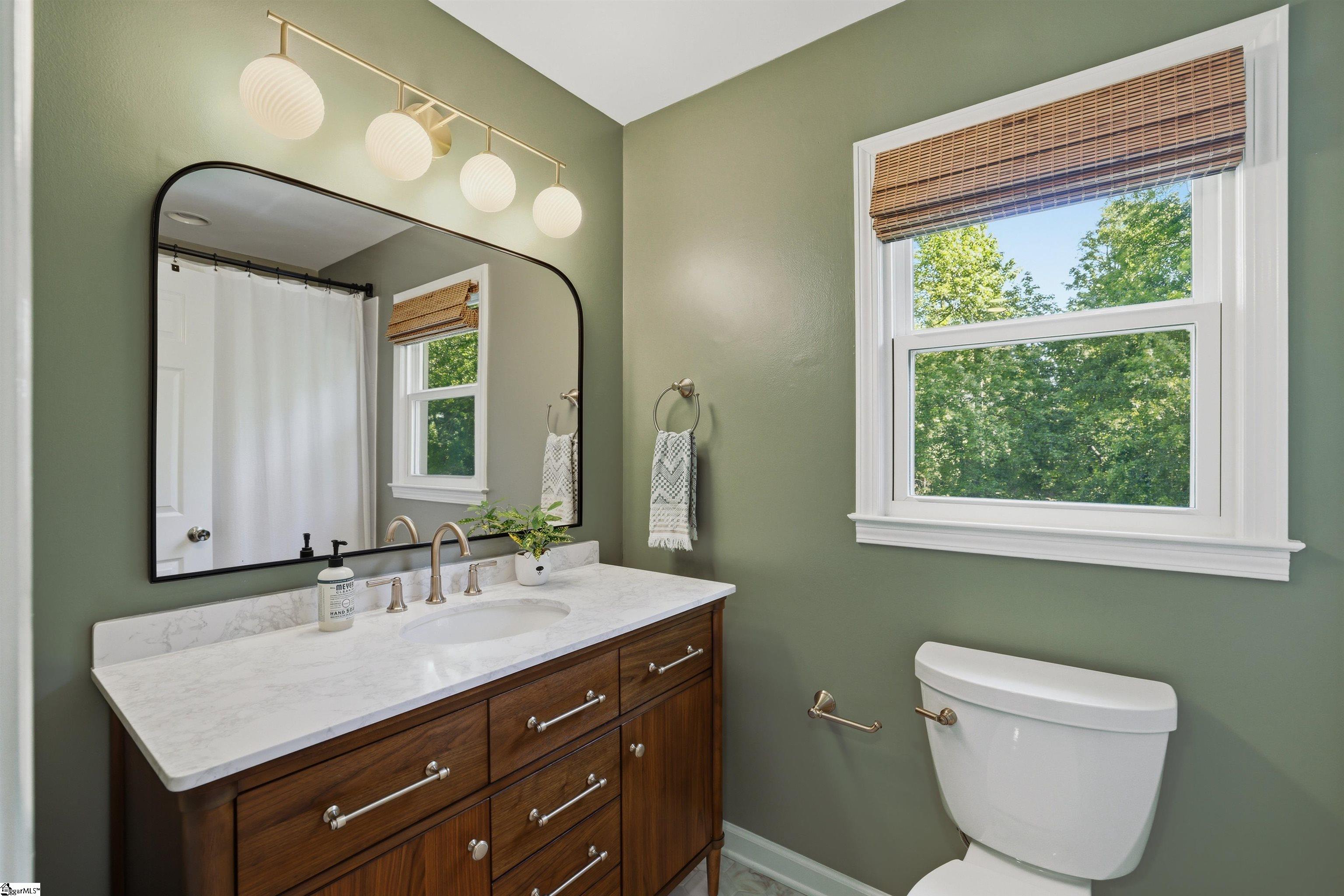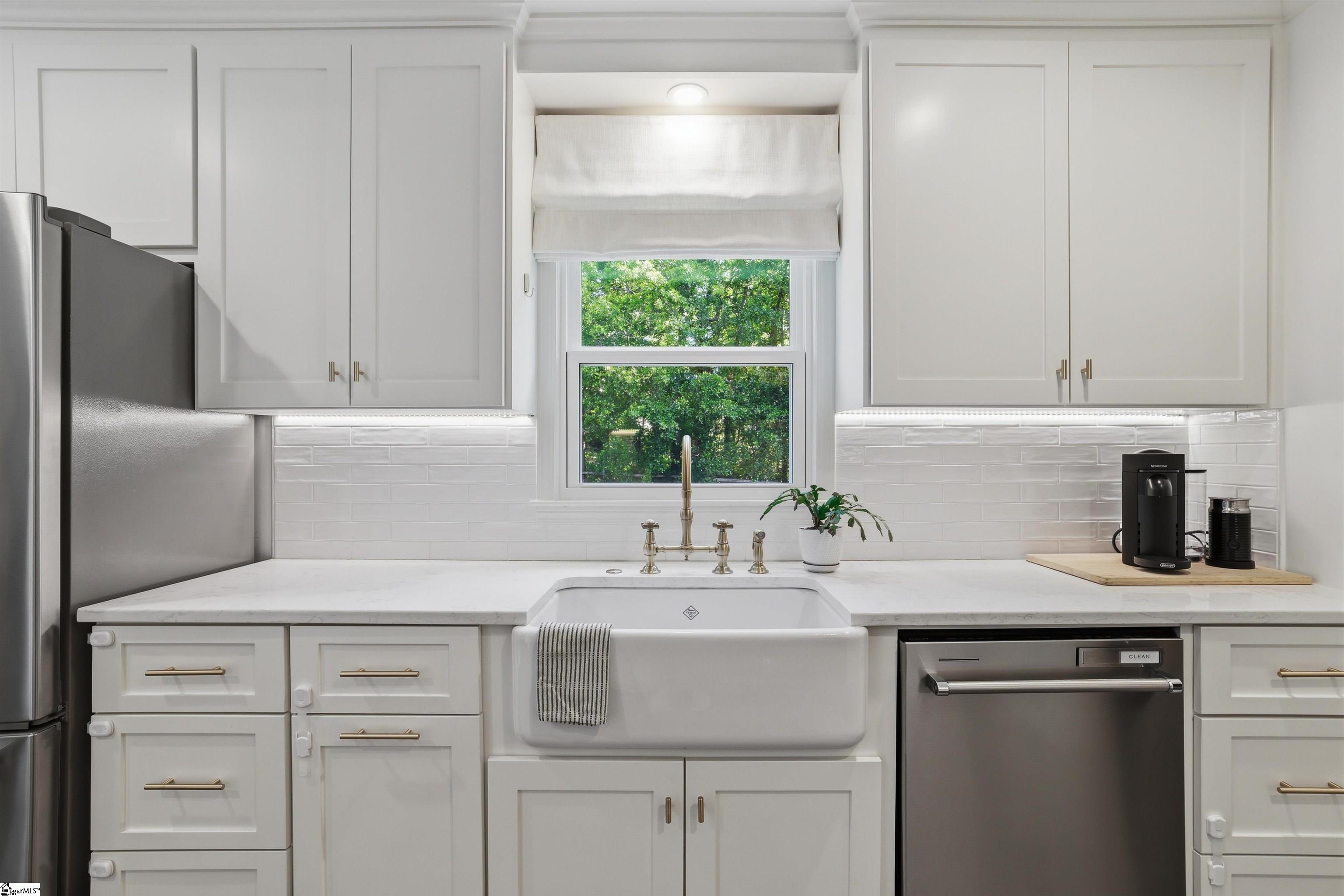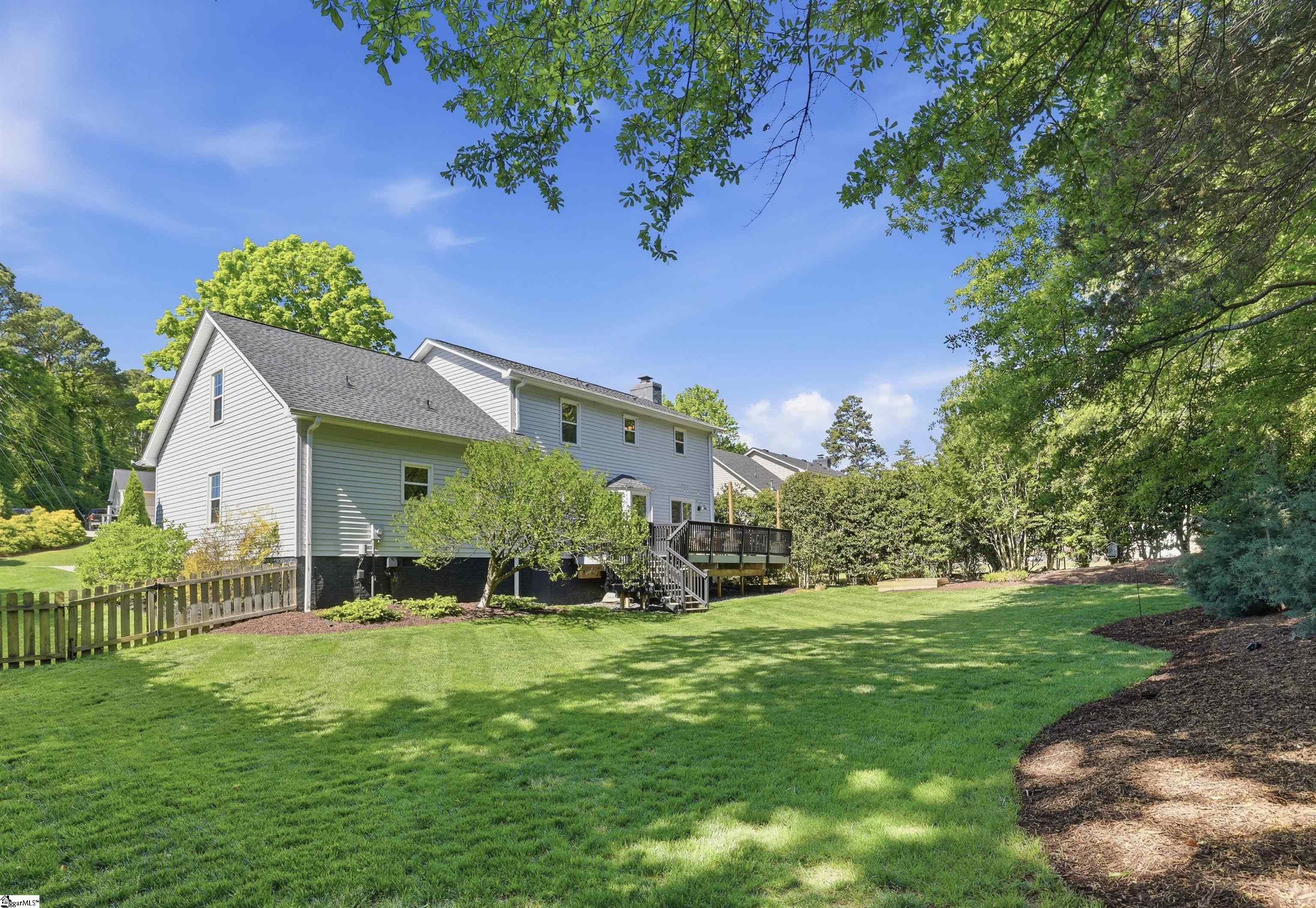 Welcome to your new home at 111 Devenridge Drive! Tucked away on a peaceful cul-de-sac in the heart of Greenville’s Eastside, this fully renovated 3 bed 2.5 bath home with bonus room offers more than just beautiful spaces, It offers a way of living. Mornings begin with soft natural light pouring across the rich Pennsylvania brick engineered hardwood floors, coffee in hand from your stunning chef’s kitchen, complete with quartz countertops, tile backsplash, under cabinet lighting, premium KitchenAid appliances, a gas range, and a classic “Shaws Original” farmhouse sink that feels both timeless and elevated. The home flows effortlessly, inviting connection whether it’s quiet evenings by the gas fireplace with its historic mantle from a 1850’s cabin or lively gatherings with friends and family. Every space has been thoughtfully designed to make daily life easier and more enjoyable, from the custom storage systems throughout to the serene primary suite that feels like a private retreat. Unwind in a spa-like bathroom with a seamless glass shower and custom details that bring both luxury and function into your everyday routine. Step outside and you’ll find where this home truly shines. A Trex deck overlooks a beautifully landscaped, fenced backyard framed by peaceful woods offering rare privacy and a calming, natural backdrop. It’s the perfect setting for slow mornings, weekend barbecues, or simply enjoying the quiet. Set on a generous 0.33-acre lot in one of Greenville’s most desirable areas, this home blends thoughtful design, modern comfort, and a sense of retreat all just minutes from everything you need. You will love all of the custom closet systems throughout the home including in the pantry, laundry, and all other closets in the home. All major systems throughout the home have all been recently updated/replaced including the roof, HVAC, and water heater. This isn’t just a place to live, it’s a place to settle in, recharge, and truly feel at home.