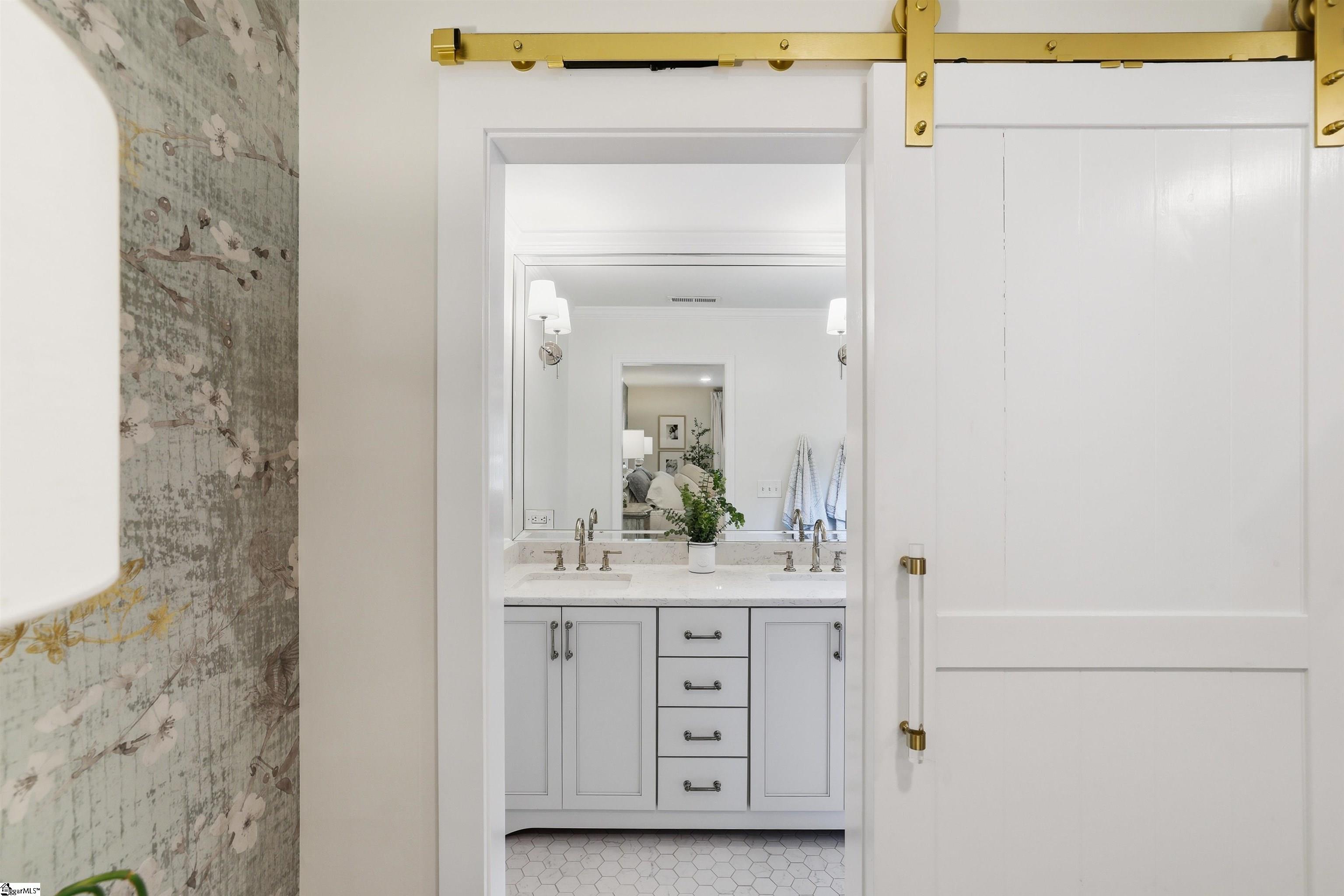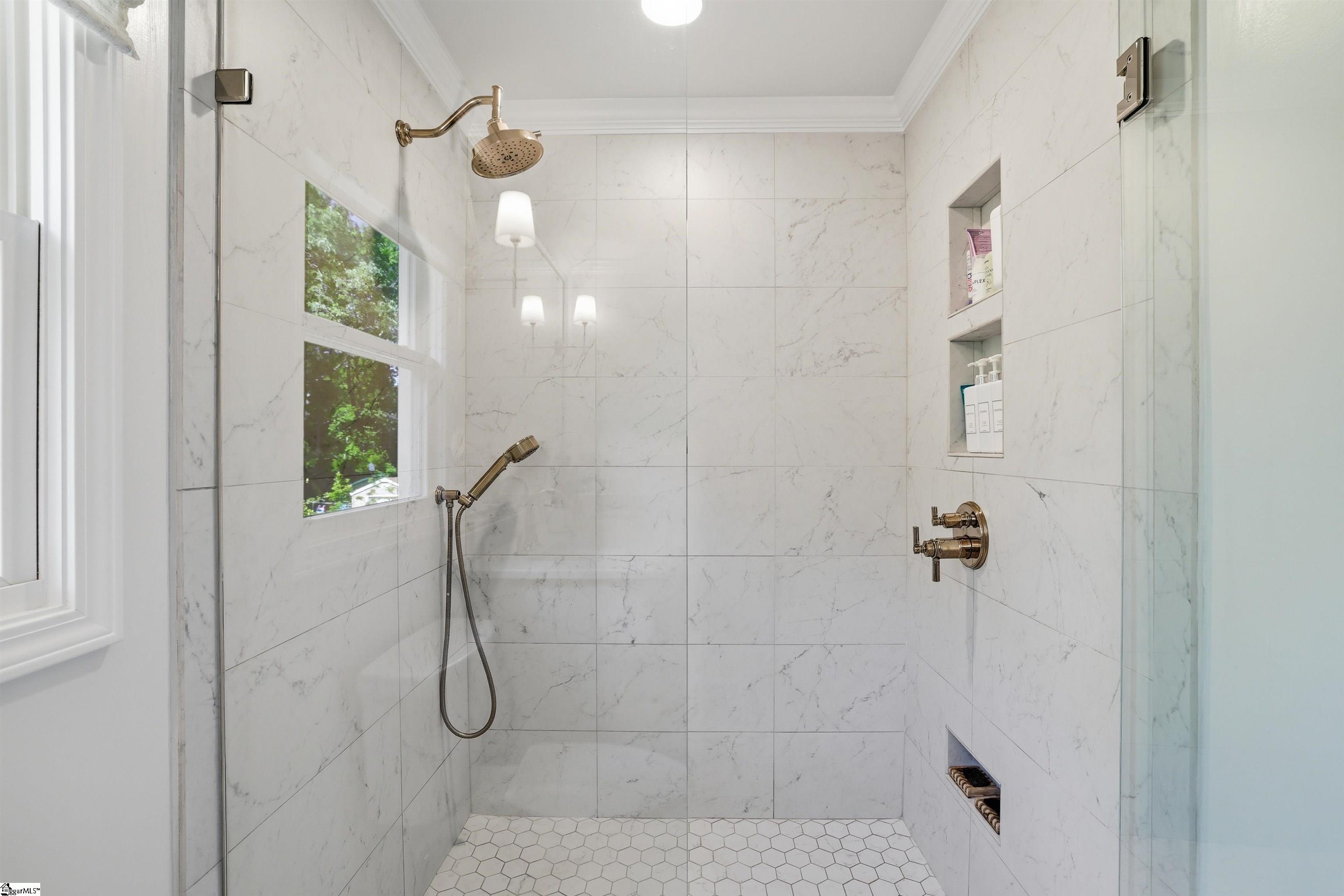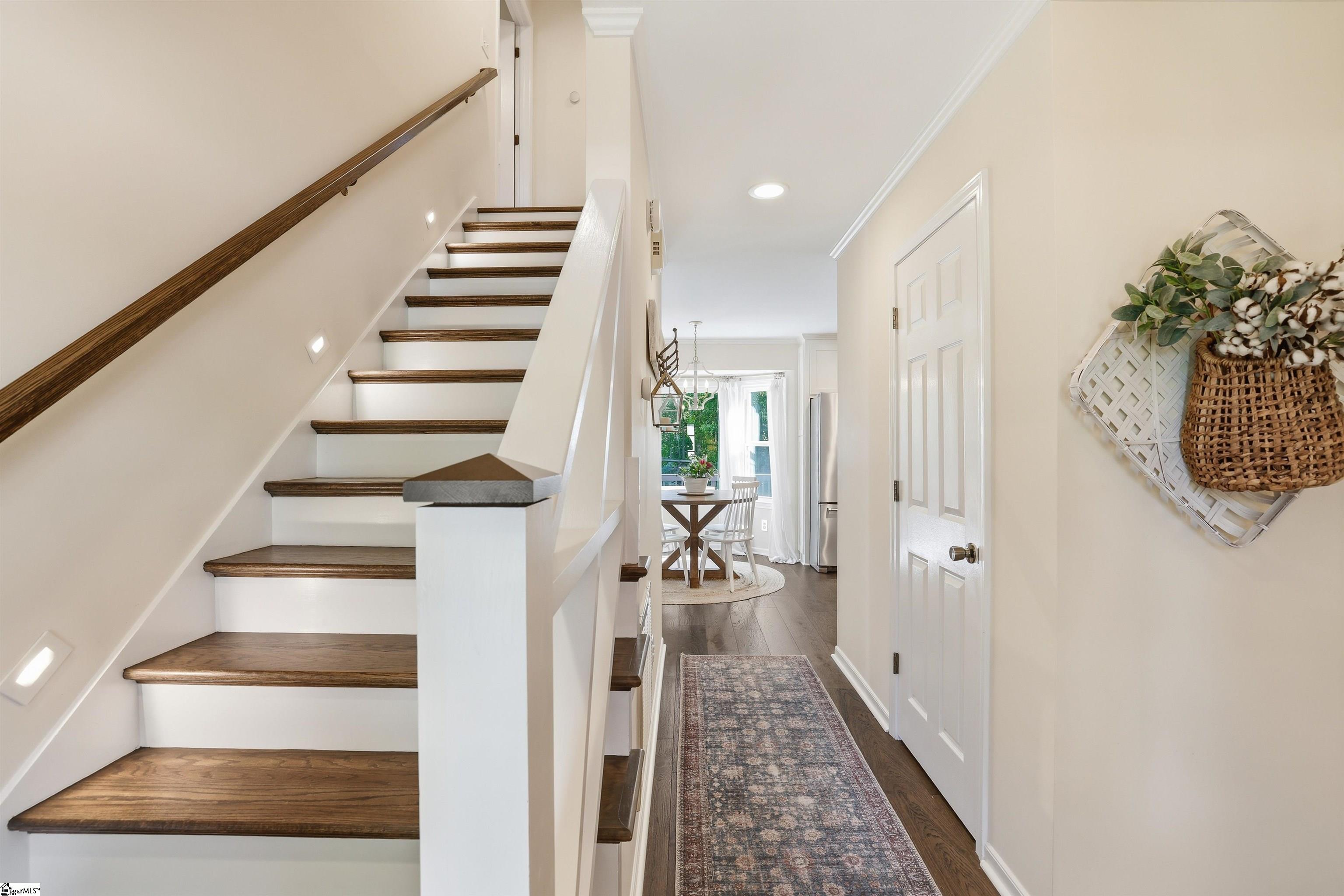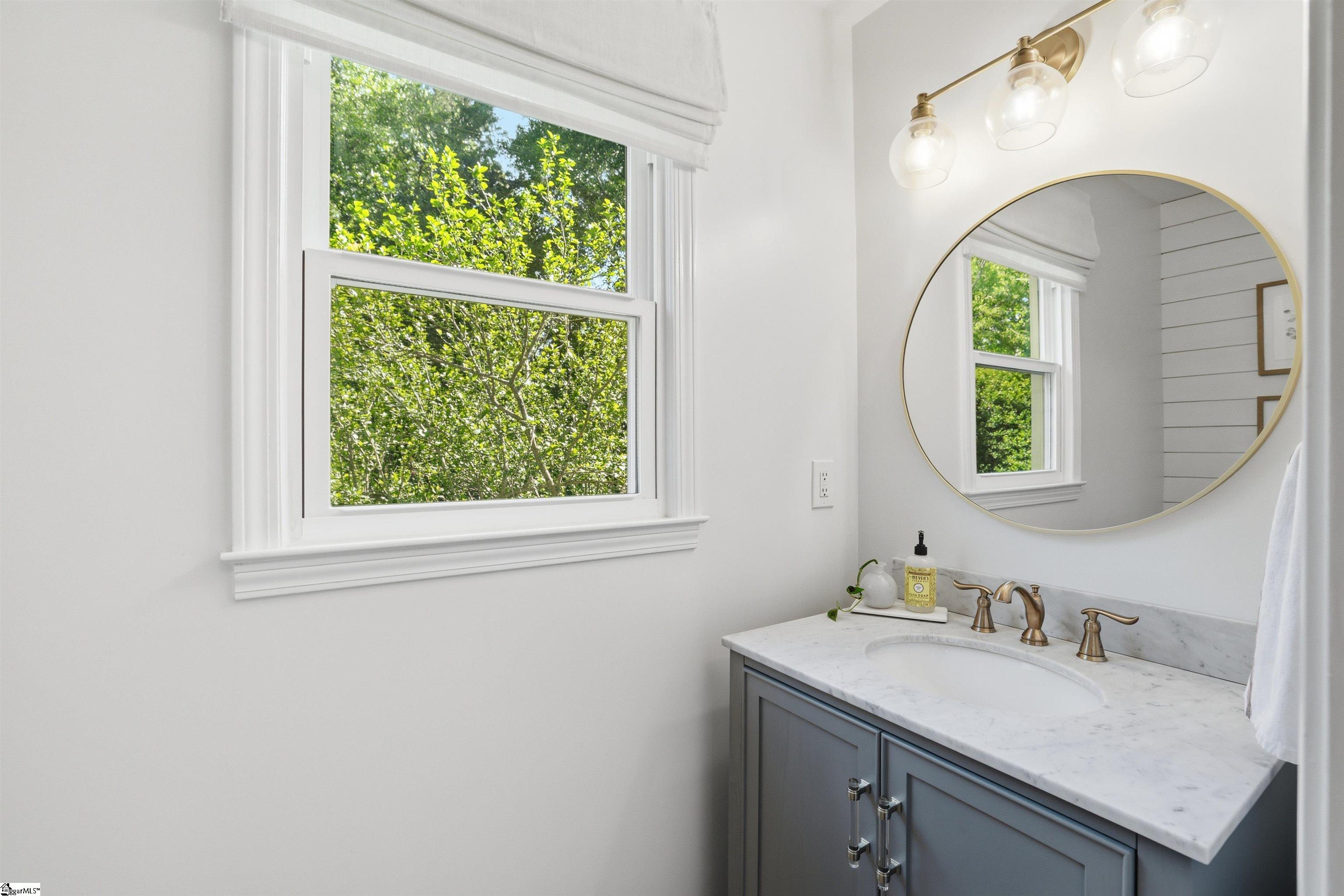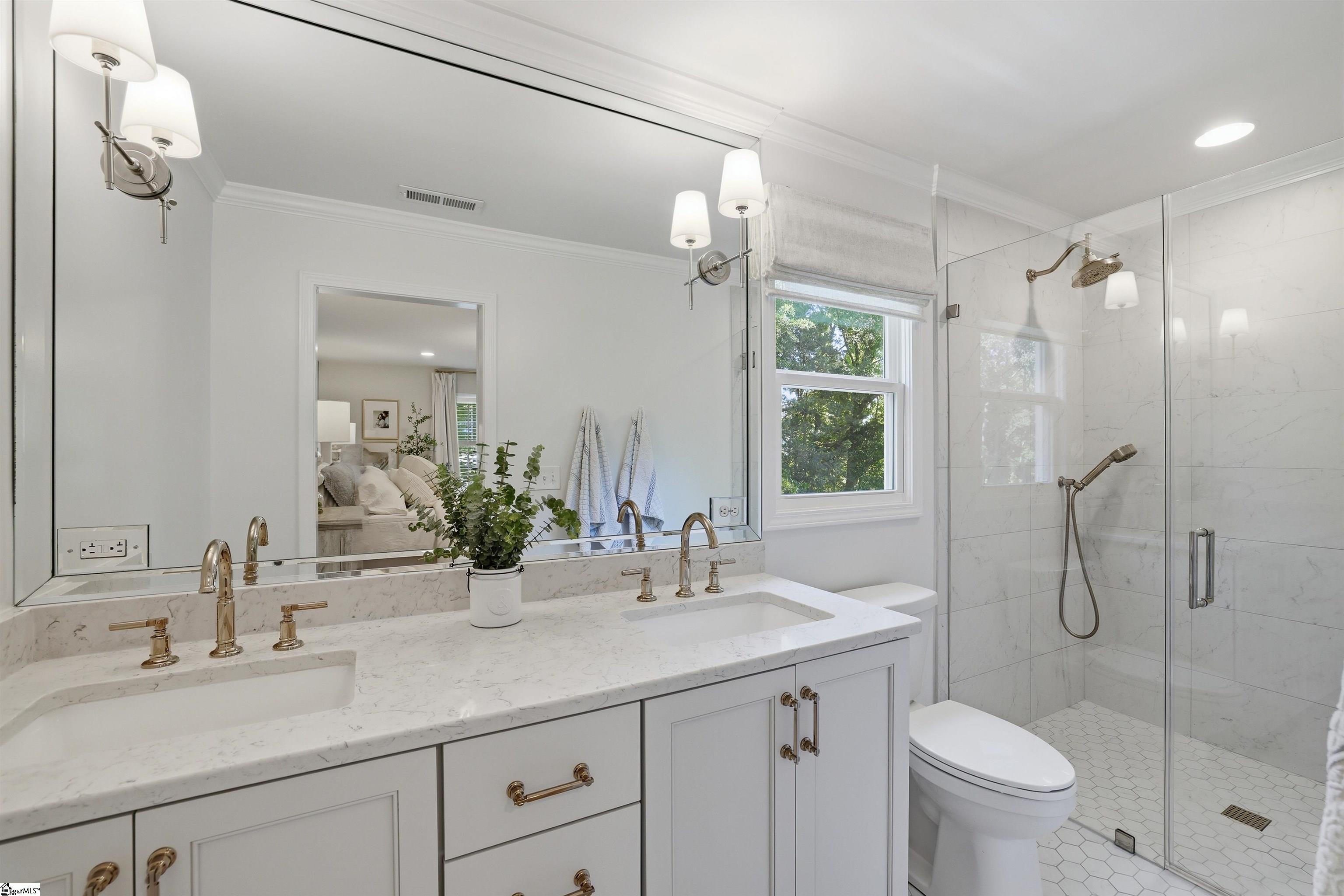 Welcome to your new home at 111 Devenridge Drive! Tucked away on a peaceful cul-de-sac in the heart of Greenville’s Eastside, this fully renovated 3 bed 2.5 bath home with bonus room offers more than just beautiful spaces, It offers a way of living. Mornings begin with soft natural light pouring across the rich Pennsylvania brick engineered hardwood floors, coffee in hand from your stunning chef’s kitchen, complete with quartz countertops, tile backsplash, under cabinet lighting, premium KitchenAid appliances, a gas range, and a classic “Shaws Original” farmhouse sink that feels both timeless and elevated. The home flows effortlessly, inviting connection whether it’s quiet evenings by the gas fireplace with its historic mantle from a 1850’s cabin or lively gatherings with friends and family. Every space has been thoughtfully designed to make daily life easier and more enjoyable, from the custom storage systems throughout to the serene primary suite that feels like a private retreat. Unwind in a spa-like bathroom with a seamless glass shower and custom details that bring both luxury and function into your everyday routine. Step outside and you’ll find where this home truly shines. A Trex deck overlooks a beautifully landscaped, fenced backyard framed by peaceful woods offering rare privacy and a calming, natural backdrop. It’s the perfect setting for slow mornings, weekend barbecues, or simply enjoying the quiet. Set on a generous 0.33-acre lot in one of Greenville’s most desirable areas, this home blends thoughtful design, modern comfort, and a sense of retreat all just minutes from everything you need. You will love all of the custom closet systems throughout the home including in the pantry, laundry, and all other closets in the home. All major systems throughout the home have all been recently updated/replaced including the roof, HVAC, and water heater. This isn’t just a place to live, it’s a place to settle in, recharge, and truly feel at home.