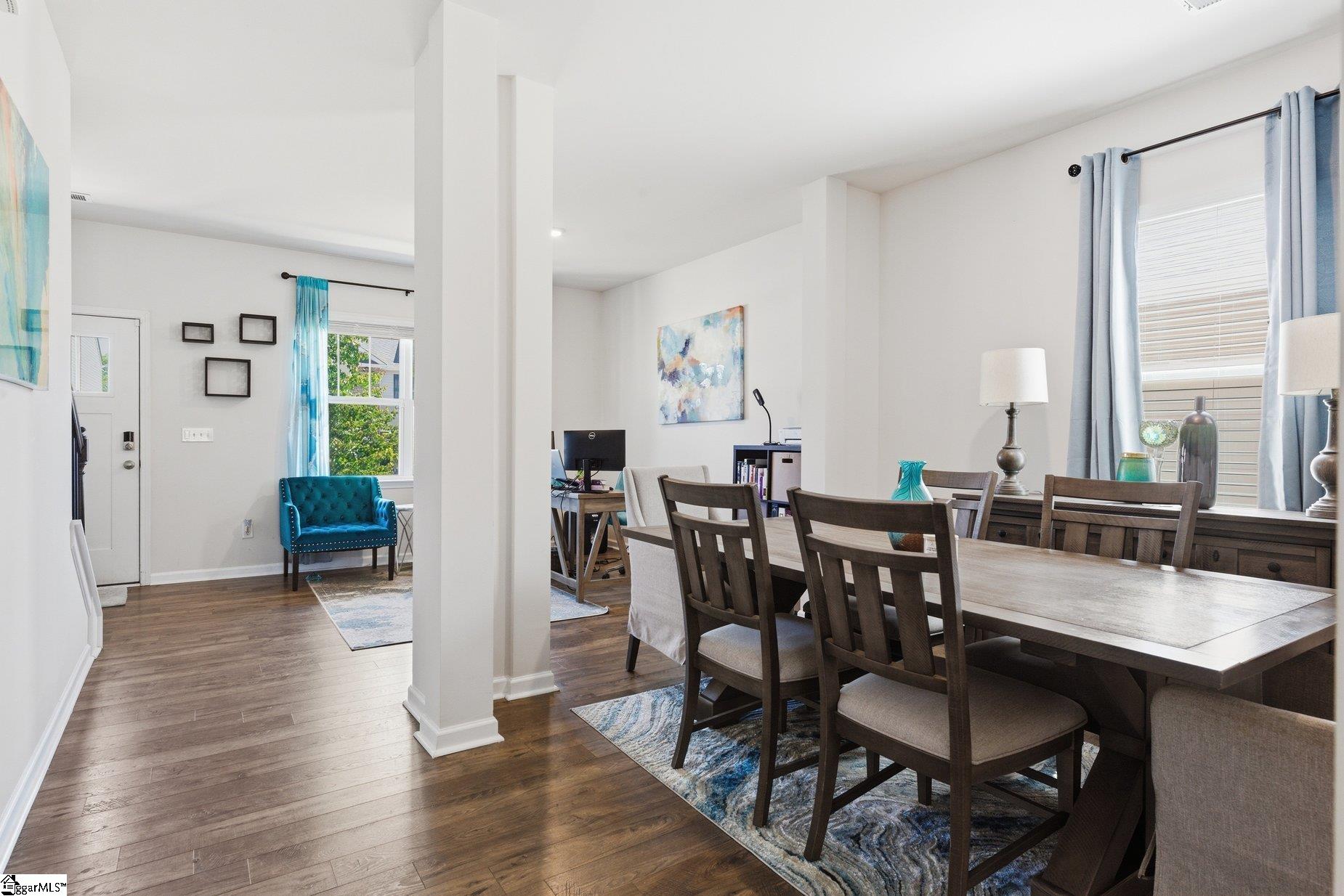 Welcome to 111 Riverport, a beautifully designed two-story home that perfectly blends comfort, style, and everyday functionality. Offering approximately 2,500–2,600+ square feet, this thoughtfully laid-out home features 4 bedrooms, 2.5 bathrooms, and a 2-car garage—providing plenty of space to live, relax, and grow. From the moment you step inside, you’ll feel right at home. The welcoming entry opens to a versatile flex room—ideal for a home office, cozy sitting area, or formal dining space. As you move through the home, you’re greeted by a bright and open living area where the kitchen, breakfast nook, and family room come together seamlessly—creating the perfect space for both quiet mornings and gathering with family and friends. The kitchen is truly the heart of the home, complete with a large island, ample cabinetry, and room to enjoy cooking and connecting. Upstairs, the spacious primary suite offers a peaceful retreat at the end of the day, featuring a private en suite bath with dual vanities, a walk-in shower, and a generous walk-in closet. Three additional bedrooms, a full bathroom, and a flexible loft space provide room for everyone—whether it’s guests, hobbies, or a second living area. Thoughtful details and modern finishes shine throughout, including 10-foot ceilings on the main level, granite or quartz countertops, stainless steel appliances, and a clean, timeless design. This home offers not just space—but a place to truly settle in, unwind, and make lasting memories.