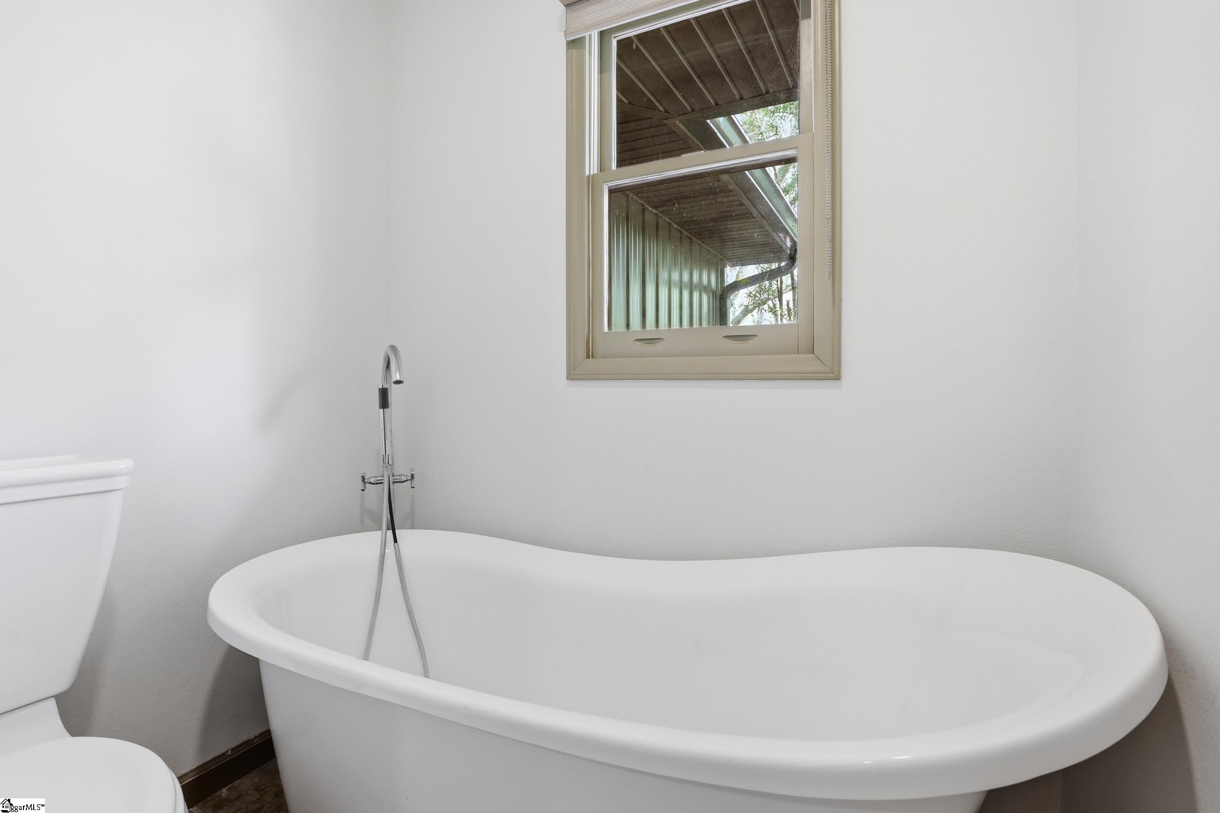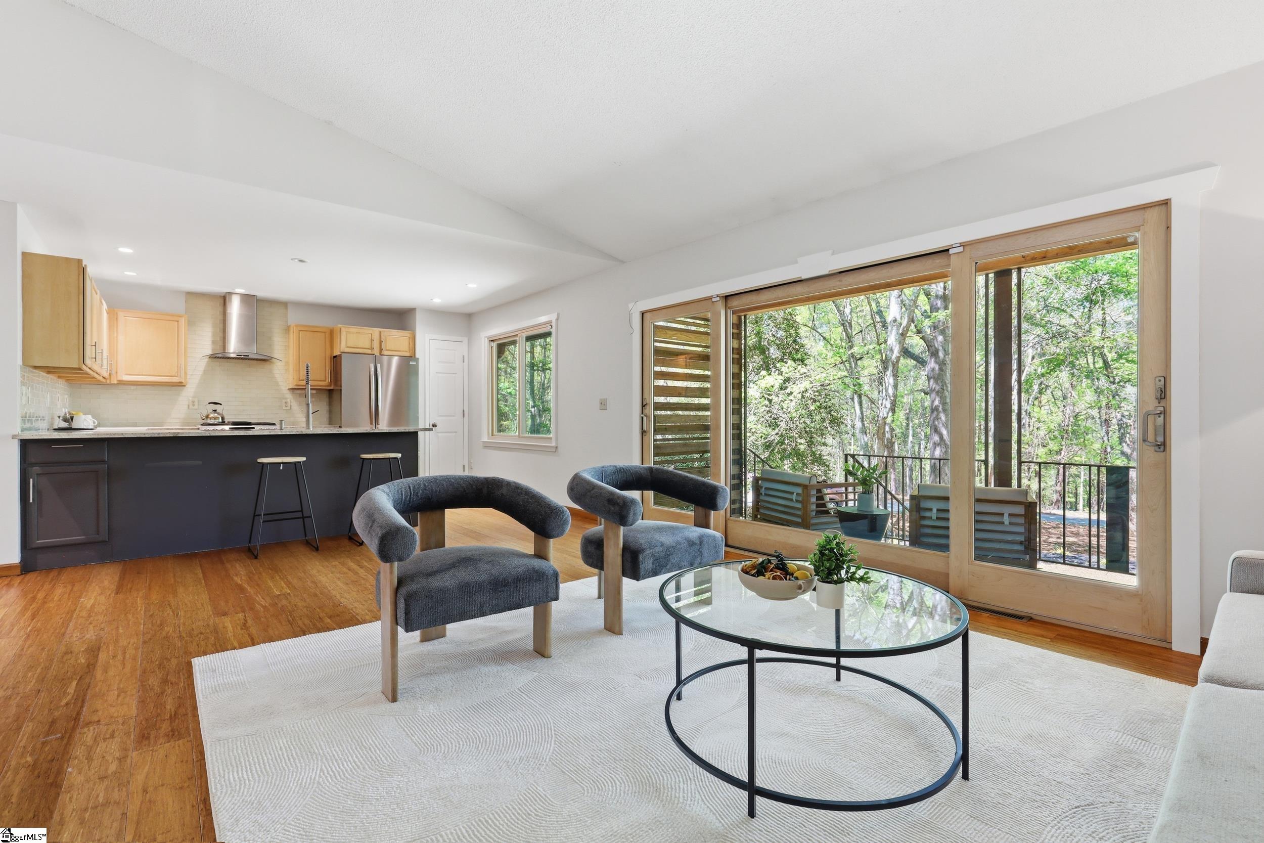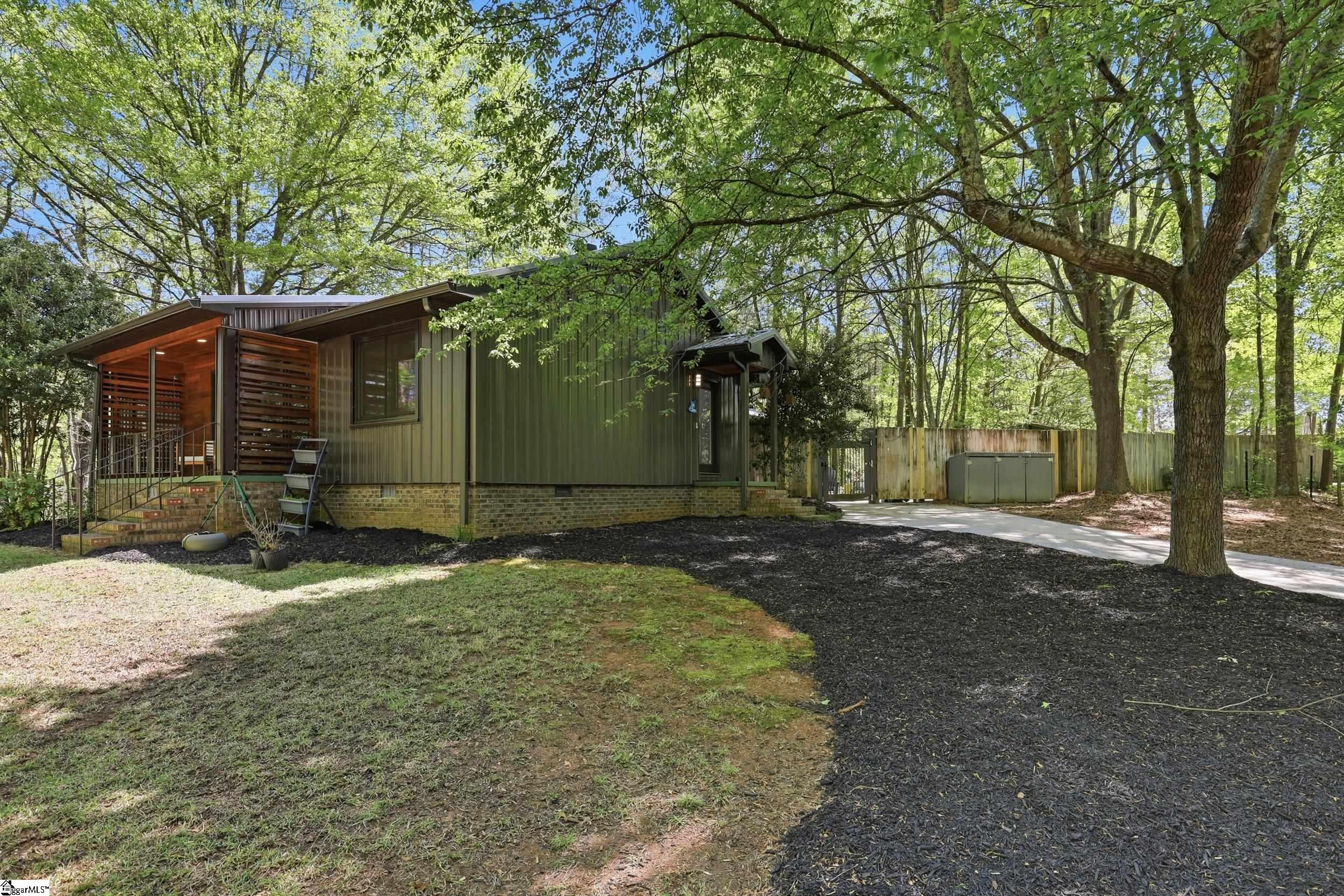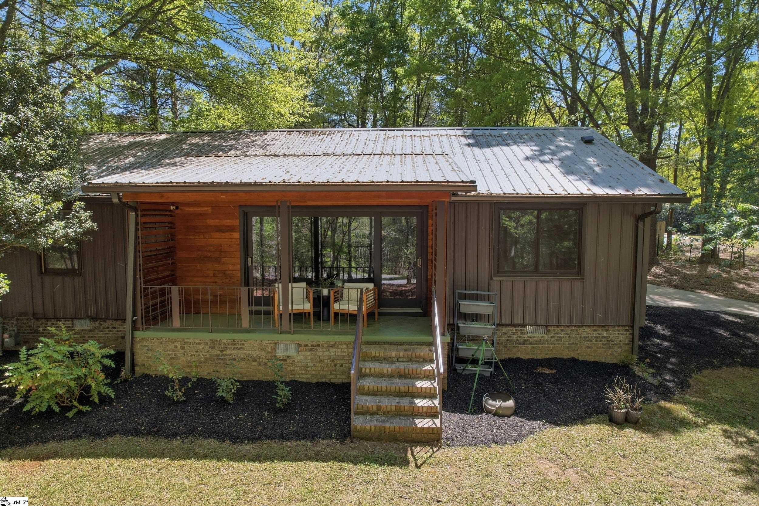 Tucked away on a 1.5 acre lot, this single level home welcomes you to a private oasis in the Central/Clemson area. The home was remodeled in 2022 complete with a new metal roof, new kitchen cabinets, new siding, quartz countertops, and bamboo flooring throughout. Featuring an open main living area, the split bedroom plan offers functionality for families and guests. The oversized primary suite is tucked away on the right side of the home. The vaulted ceiling enhances the primary suite, providing enough room for a seating area or a small home office desk. The primary en suite bath features a soaking tub and a stand-alone shower. The covered porch off the primary suite is the perfect place to enjoy that first cup of coffee each morning while listening to the water feature just off the porch. An in ground saltwater pool is the focal point of the outdoor area, with plenty of space between the house and the pool for several entertaining areas. The yard is fenced for any four-legged family members. The natural setting and remaining trees provide ultimate privacy. With no HOA in place and outside the city limits of Central, this is truly a one of a kind property in the Central/Clemson area. Owner is related to the listing agent.