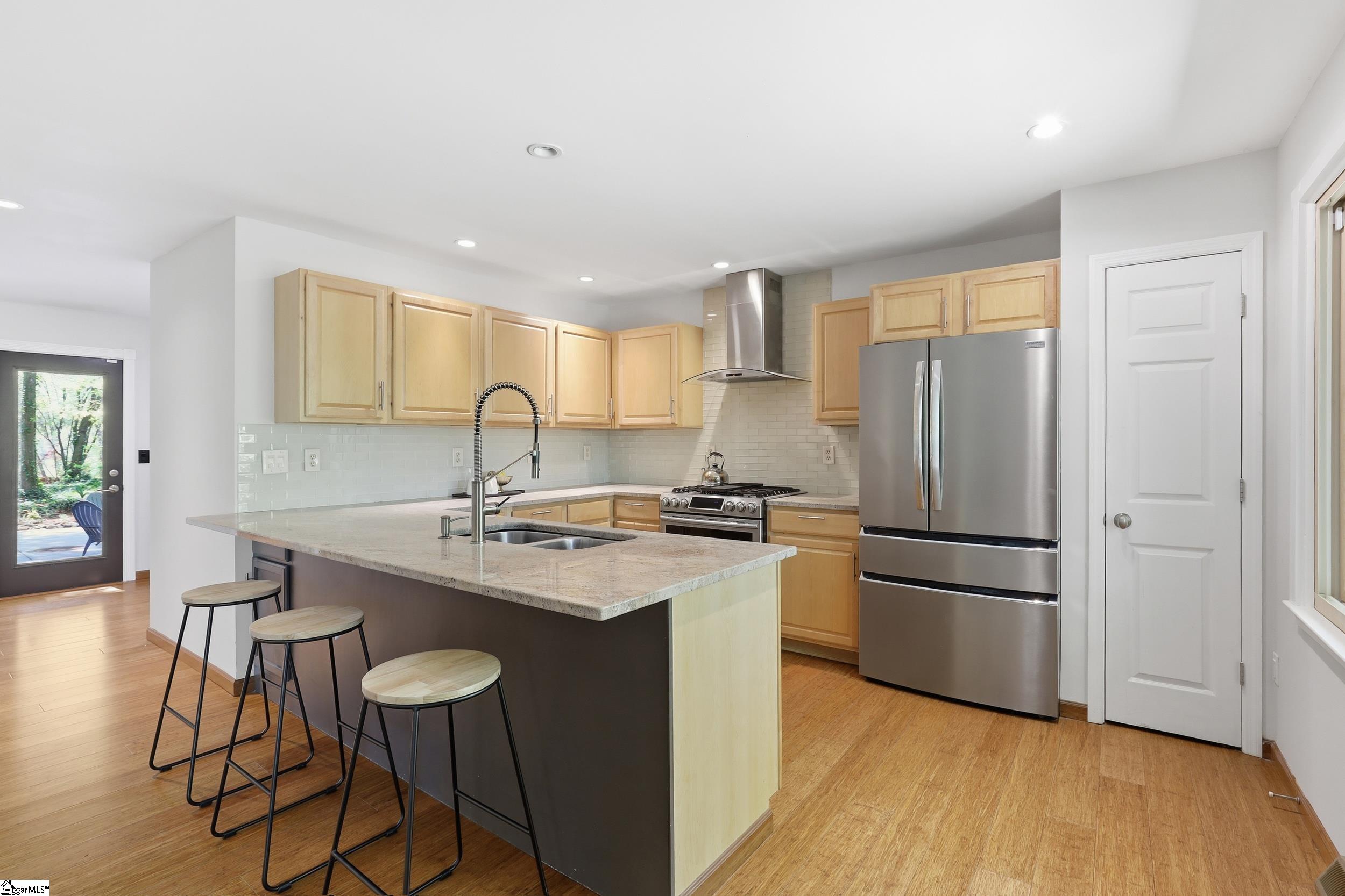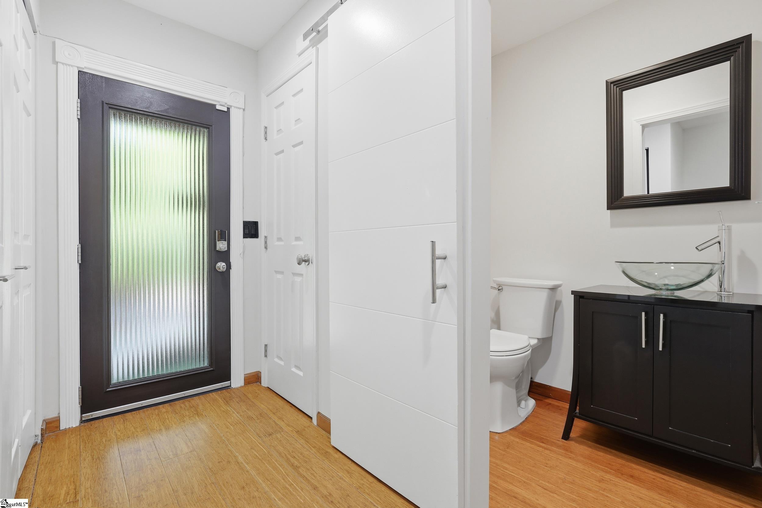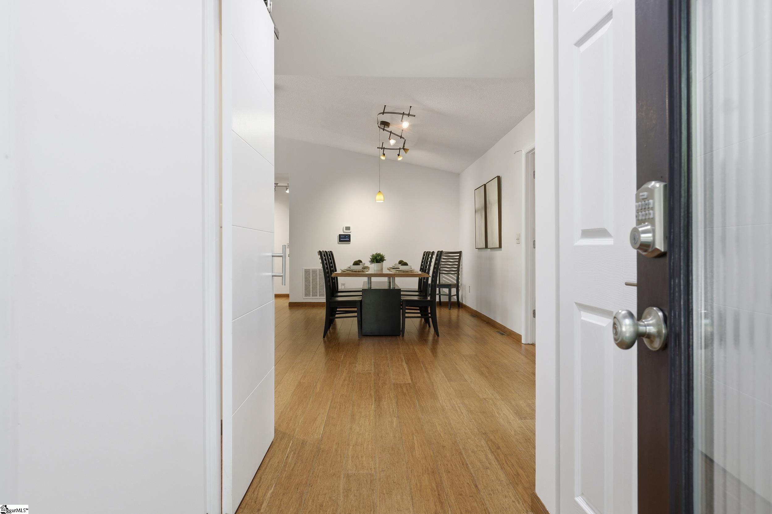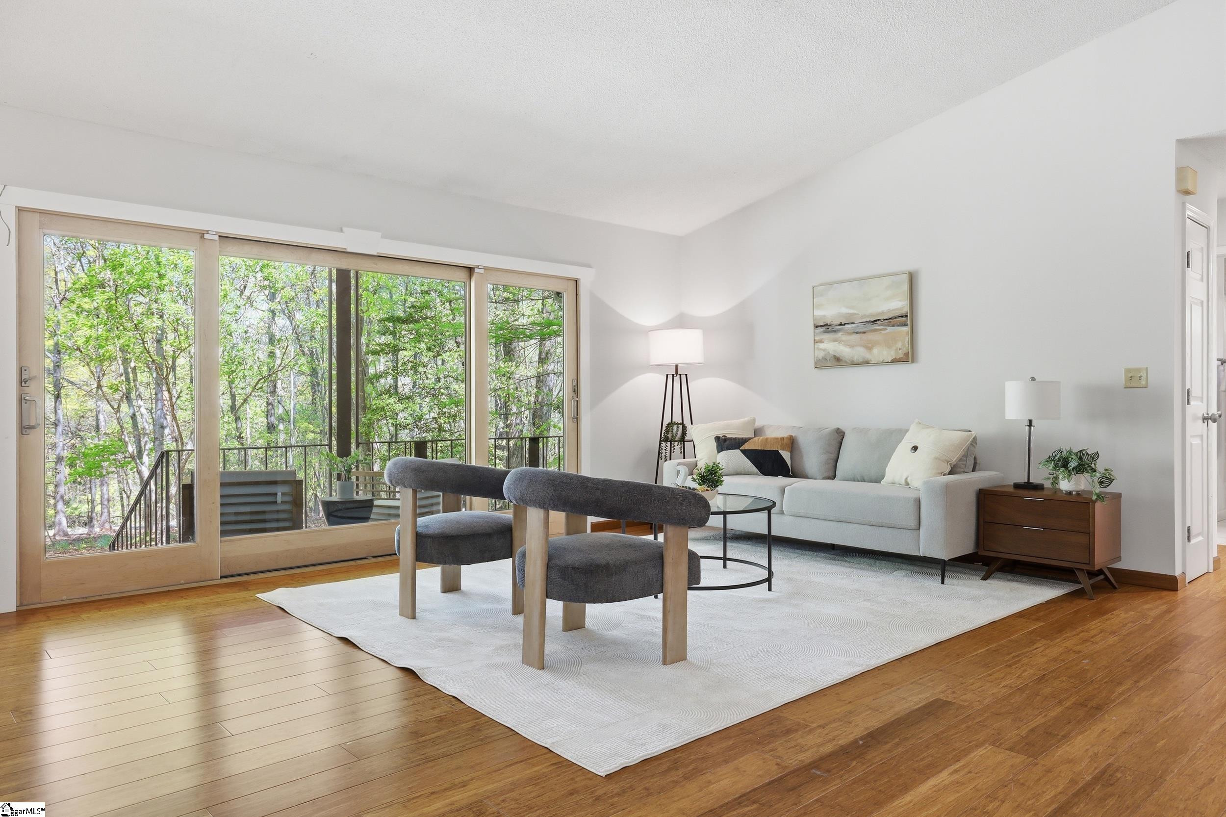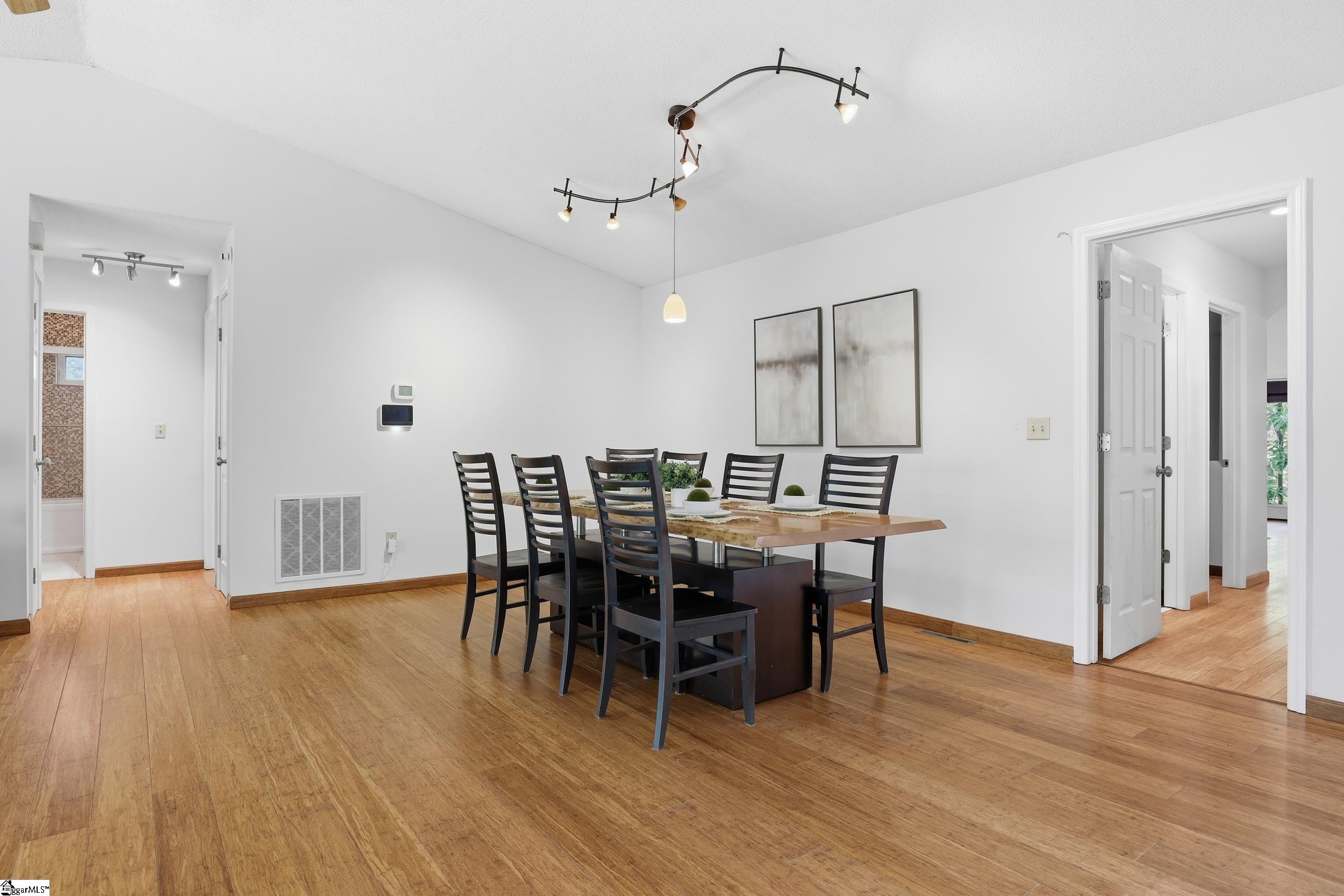 Tucked away on a 1.5 acre lot, this single level home welcomes you to a private oasis in the Central/Clemson area. The home was remodeled in 2022 complete with a new metal roof, new kitchen cabinets, new siding, quartz countertops, and bamboo flooring throughout. Featuring an open main living area, the split bedroom plan offers functionality for families and guests. The oversized primary suite is tucked away on the right side of the home. The vaulted ceiling enhances the primary suite, providing enough room for a seating area or a small home office desk. The primary en suite bath features a soaking tub and a stand-alone shower. The covered porch off the primary suite is the perfect place to enjoy that first cup of coffee each morning while listening to the water feature just off the porch. An in ground saltwater pool is the focal point of the outdoor area, with plenty of space between the house and the pool for several entertaining areas. The yard is fenced for any four-legged family members. The natural setting and remaining trees provide ultimate privacy. With no HOA in place and outside the city limits of Central, this is truly a one of a kind property in the Central/Clemson area. Owner is related to the listing agent.