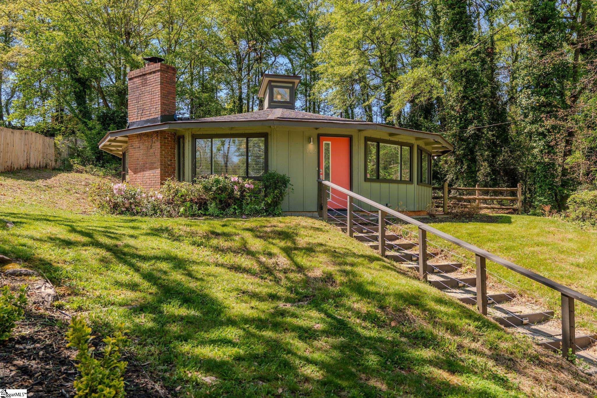 Welcome to your dream home nestled in the enchanting community of Sherwood Forest, where modern design meets tranquil living. This unique quindecagon-shaped house with new roof in 2025 boasts two spacious bedrooms and 2.5 baths, each thoughtfully designed for comfort and convenience. As you step inside, you’re greeted by an abundance of natural light pouring in through windows that surround the home, creating an inviting atmosphere that feels warm and alive. The heart of the home is a generous living room that flows effortlessly into an open eat-in kitchen, perfect for both entertaining and everyday living. Imagine hosting gatherings with family and friends, or enjoying quiet meals bathed in sunlight. The clerestory in the middle of the home is a striking architectural feature, allowing light to cascade down, enhancing the vibrant energy throughout. Each bedroom comes with its own ensuite bathroom, providing privacy and ease for you and your guests. Both rooms include personal laundry, eliminating the hassle of shared spaces and maximizing convenience. The primary bedroom is a serene retreat, offering direct access to your own private backyard oasis. Step outside to discover a deck and patio area that beckons you to unwind in nature. Whether sipping your morning coffee or savoring evening sunsets, this outdoor space is your personal sanctuary. A separate den provides the perfect spot for cozy movie nights or quiet reading sessions, adding versatility to the home’s layout. With a design that balances openness and privacy, this residence truly caters to your lifestyle needs. Location is key, and this home doesn’t disappoint. Situated just moments away from downtown Greenville, you’ll have access to a plethora of restaurants, charming shops, and convenient interstates, making commuting a breeze. Enjoy the best of both worlds—peaceful suburban living with the vibrant energy of city life at your fingertips. Don’t miss your chance to make this captivating house your forever home. Schedule a showing today and let your new adventure begin!
