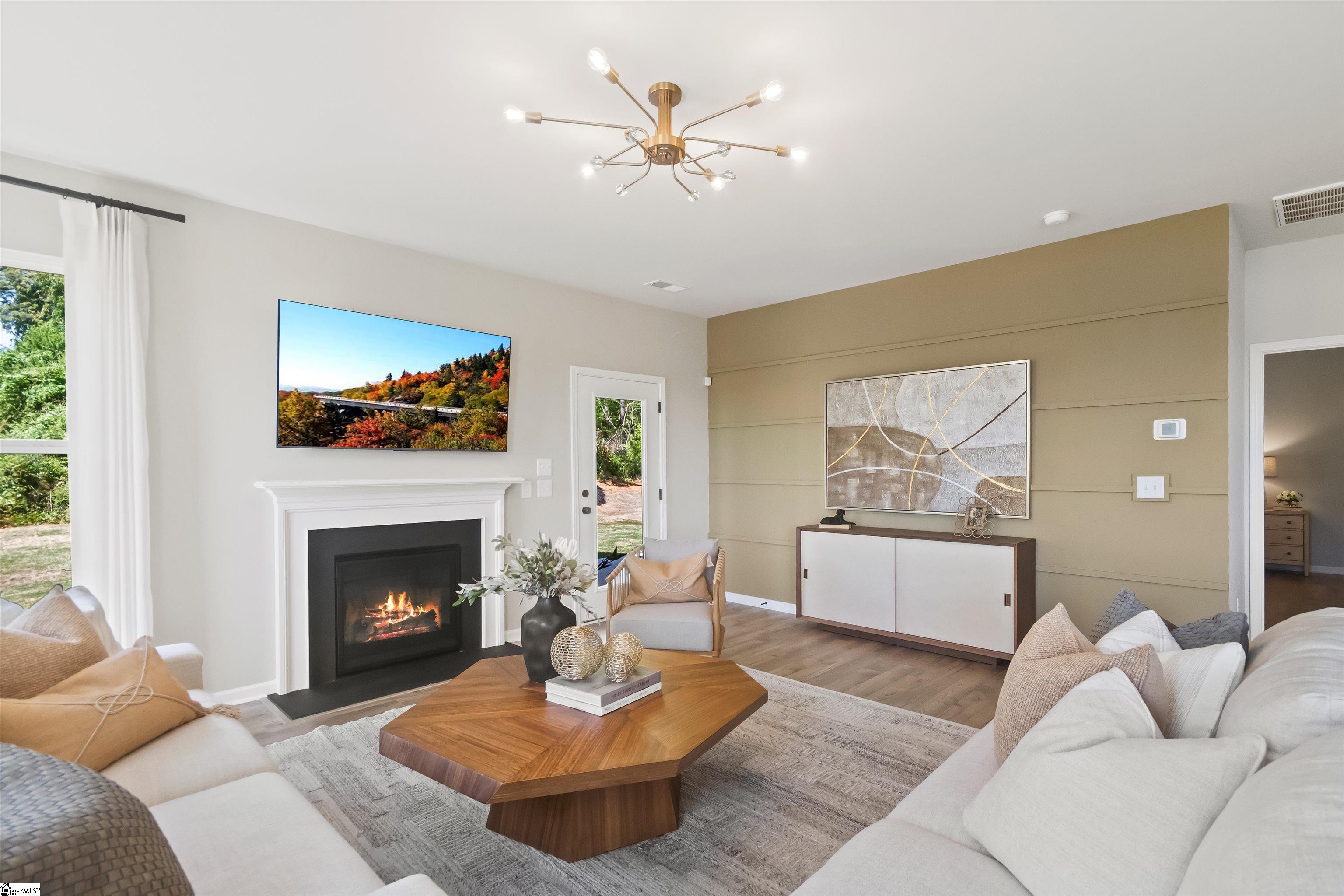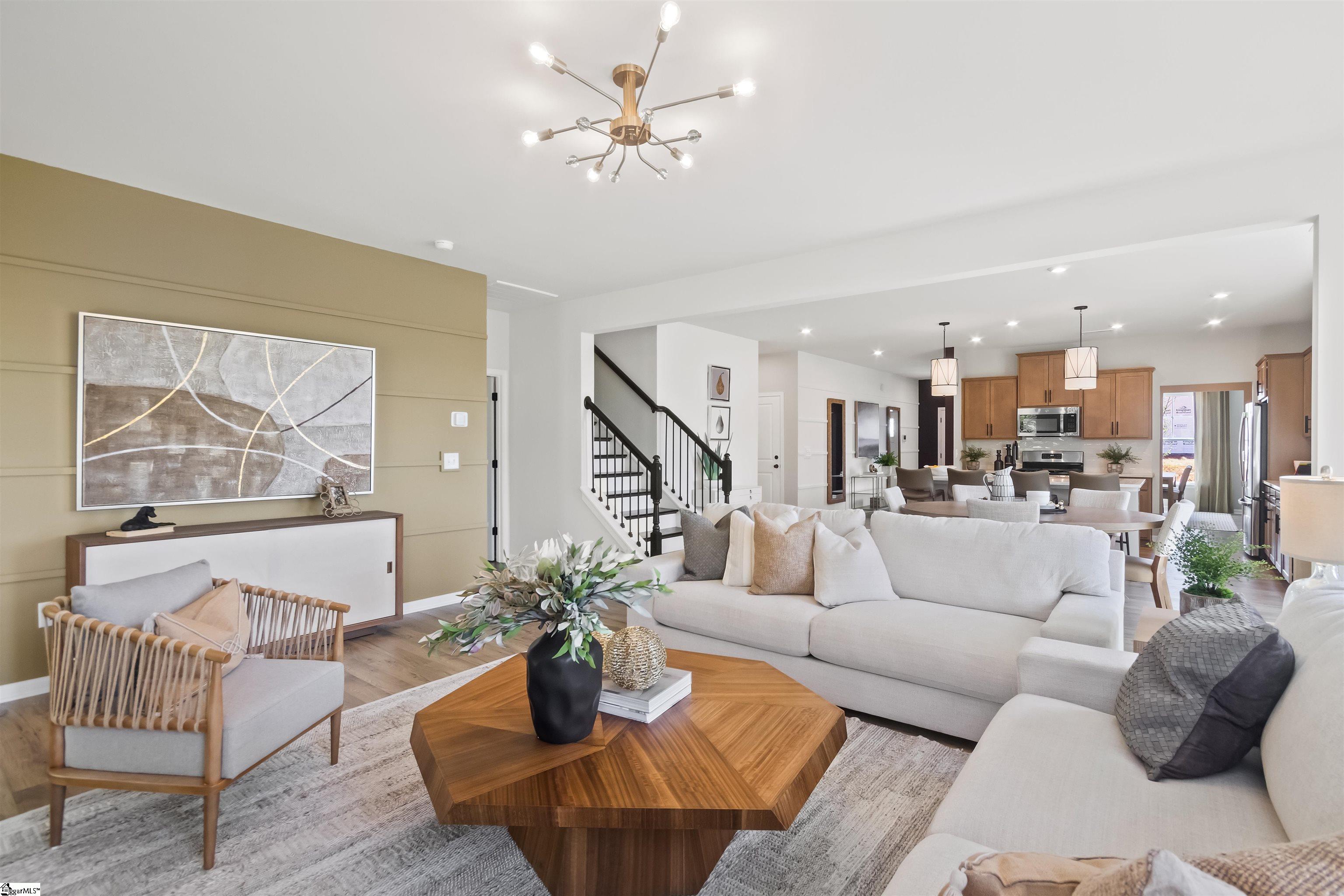 Welcome home to The Hamptons, a brand-new neighborhood in Fountain Inn designed for modern living and everyday comfort. This beautiful new construction sits on an oversized lot, offering extra space to enjoy both indoors and out. The main level is thoughtfully designed with refined finishes throughout and spacious living areas perfect for entertaining or relaxing. The gourmet kitchen is a true centerpiece, featuring ample cabinetry, generous counter space, double ovens, and a walk-in pantry to keep everything organized. Just off the kitchen, the inviting living room showcases a cozy fireplace, creating the perfect gathering spot. Step outside to a covered back patio, ideal for morning coffee or evening unwinding. A main-level bedroom and full bathroom add flexibility for guests, a home office, or multigenerational living. Upstairs, you’ll find a versatile flex loft space that can be tailored to your lifestyle: media room, playroom, or second living area! The primary suite is a true retreat, highlighted by a tray ceiling, a spa-like ensuite bathroom, and a massive walk-in closet. Two additional bedrooms each feature walk-in closets and share a well-appointed full hallway bathroom. A walk-in laundry room upstairs adds everyday convenience right where you need it. The Hamptons community enhances your overall lifestyle even more, offering pickleball courts and a playground for residents to enjoy. Perfectly situated just minutes from Downtown Fountain Inn, Downtown Simpsonville, Fairview Road shopping, and I-385, this home provides easy access to local shopping and dining, as well as Greenville, I-85, and GSP, making commuting and weekend plans effortless. This is your opportunity to enjoy brand-new living in a prime Fountain Inn location—don’t miss it!