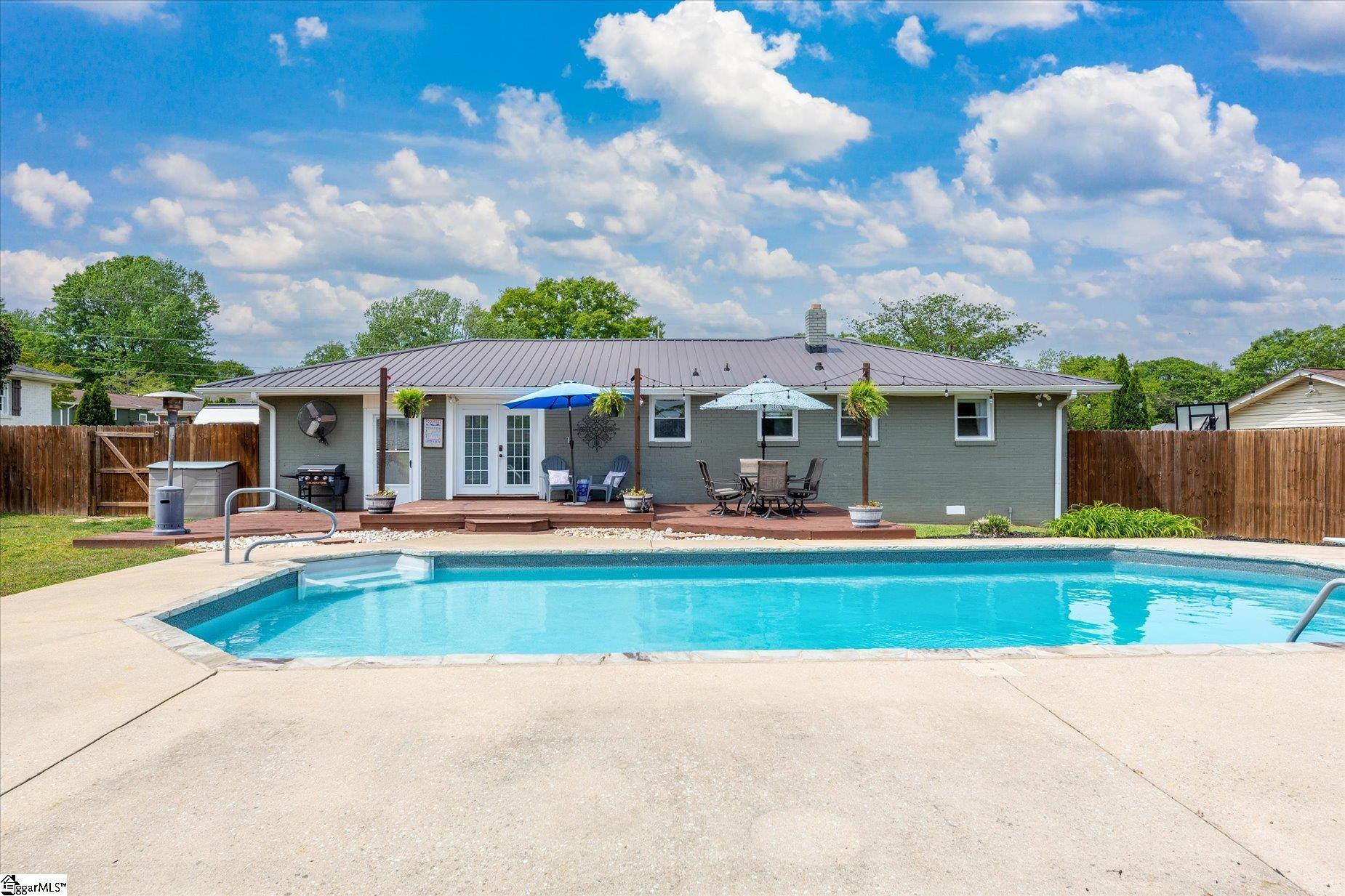 Welcome to 114 Cherrylane Drive—where classic charm meets inviting outdoor living in a quiet, well-established neighborhood. This lovely brick ranch offers 3 bedrooms and 1.5 bathrooms, featuring original hardwood floors that bring warmth and timeless character throughout the home’s main living spaces. Step outside and experience your own private retreat. The expansive backyard is designed for both relaxation and entertaining, complete with three spacious decks, a sparkling pool, and a cozy fire pit—perfect for gathering with friends or enjoying peaceful evenings at home. Thoughtfully designed landscaping surrounds the property, with elegant front lighting on a timer creating a welcoming ambiance day and night. Ideally located, this home offers the perfect balance of comfort and convenience—just minutes from Travelers Rest, downtown Greenville’s shopping and dining, Falls Park, local hospitals and medical offices, and within an easy drive to nearby lake destinations. Don’t miss the opportunity to make this charming home with exceptional outdoor living your own. **This house is eligible for 100% financing with the DREAM Loan**