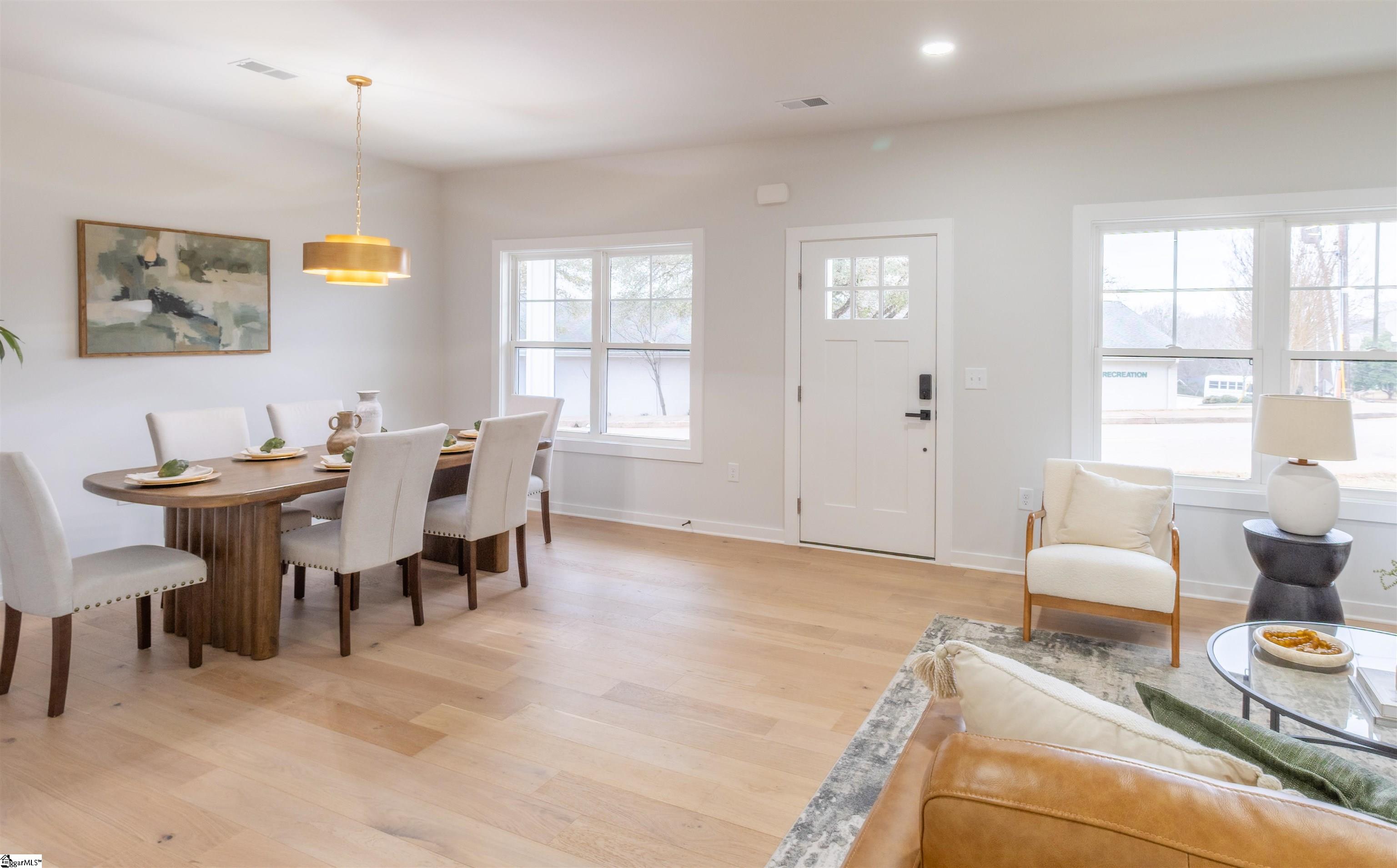 Experience the perfect blend of high-end design and strategic location. Situated in a rapidly evolving corridor where the City of Greenville is heavily investing in infrastructure and community growth, this 3-bedroom, 2.5-bathroom house is more than a homeāit’s a lifestyle investment. The exterior has a crisp white fiber cement board siding, black window frames, and a welcoming front door. This home offers an effortless flow between its sophisticated living spaces, featuring light-filled rooms, wide-plank flooring, and beautiful finishes that create a serene, contemporary atmosphere throughout. The designer kitchen that balances bold style with premium functionality, featuring sage-green cabinetry, brushed gold hardware, and a massive center island that seats four comfortably. The open-concept main floor transitions seamlessly from the gourmet kitchen to a spacious dining area and a living room bathed in natural light. For those seeking a quiet escape, the screened-in back porch provides a private sanctuary with views of the private fenced-in yard, perfect for year-round relaxation and outdoor entertaining. The second floor is intelligently designed for modern living, featuring all three bedrooms and a conveniently located upstairs laundry room to simplify your daily routine. The primary suite is a true retreat, highlighted by a tray ceiling and a spa-like ensuite bathroom with a double quartz vanity, gold fixtures, and a glass-enclosed walk-in shower. With East North Streetās local dining within walking distance, this home offers the rare opportunity to enjoy a peaceful, high-design retreat without sacrificing immediate proximity to Greenvilleās best amenities. Ask about seller-paid concessions! Seller may contribute toward closing costs or a temporary/permanent interest rate buy-down with acceptable terms. Call your favorite local agent for a private showing.