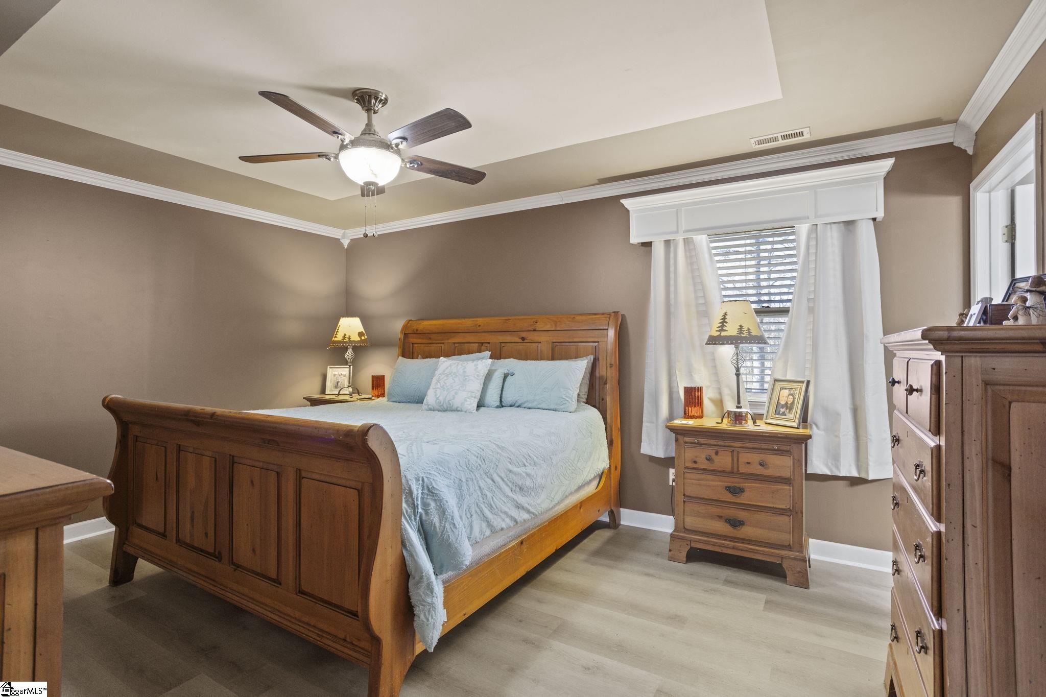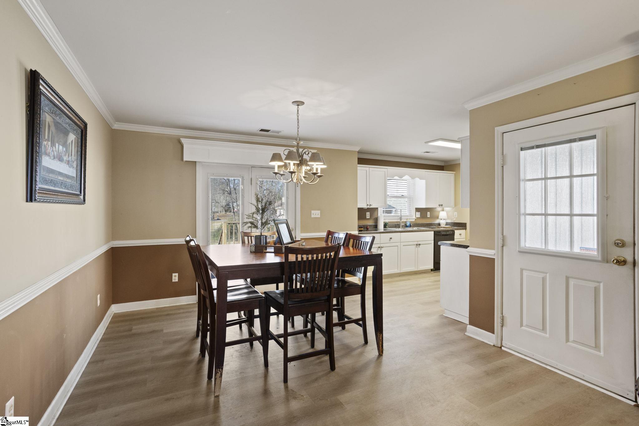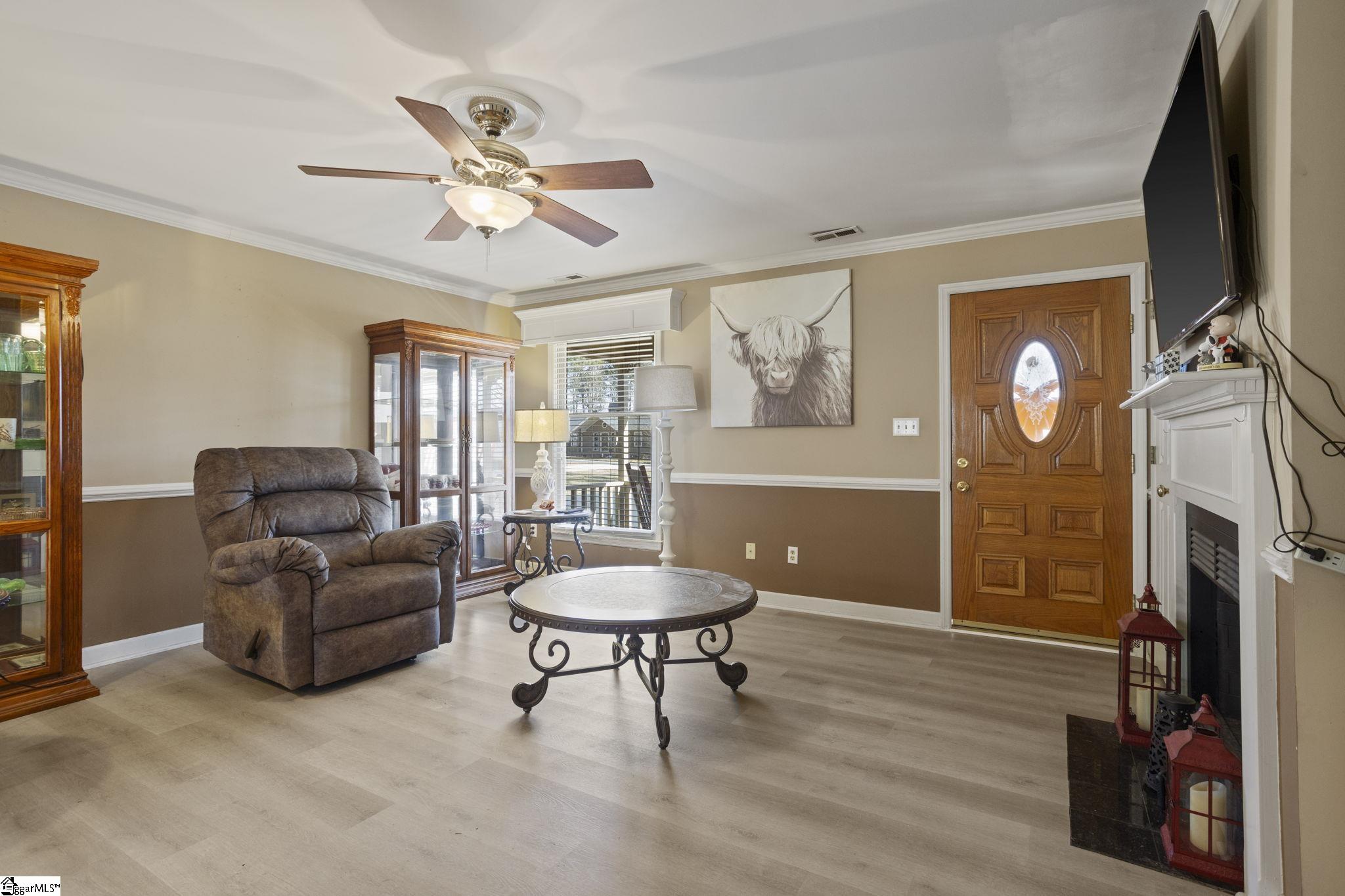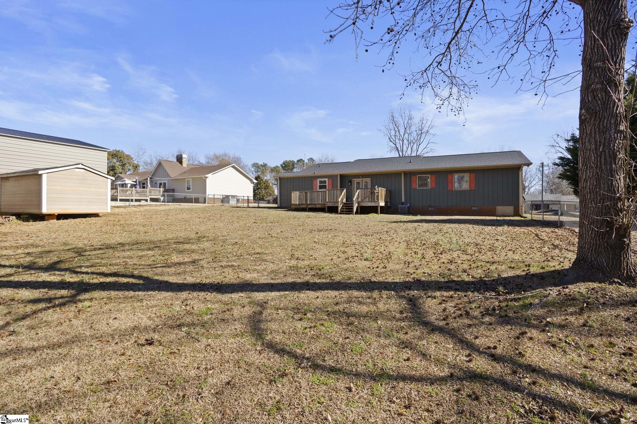 This charming one-level ranch home sits on an over half-acre lot and offers comfortable living with thoughtful updates throughout. The open floor plan features new flooring and smooth ceilings, creating a bright and inviting atmosphere. The spacious great room showcases a cozy fireplace with built-ins and flows seamlessly into the kitchen, which offers laminate countertops and ample workspace—ideal for everyday living and entertaining. The primary suite includes a full private bath and two walk-in closets, providing both comfort and functionality. Additional features include a one-car attached carport and a rear deck perfect for grilling and outdoor enjoyment. The fully fenced backyard is ideal for pets, and a small outbuilding conveys, offering convenient extra storage. Recent updates include a roof installed in 2020, new gutters in 2024, HVAC replaced approximately in 2023, and a water heater replaced around 2024. Conveniently located near schools, shopping, major interstates, and GSP Airport, this home combines space, updates, andlocation—making it a great opportunity in Moore, SC.