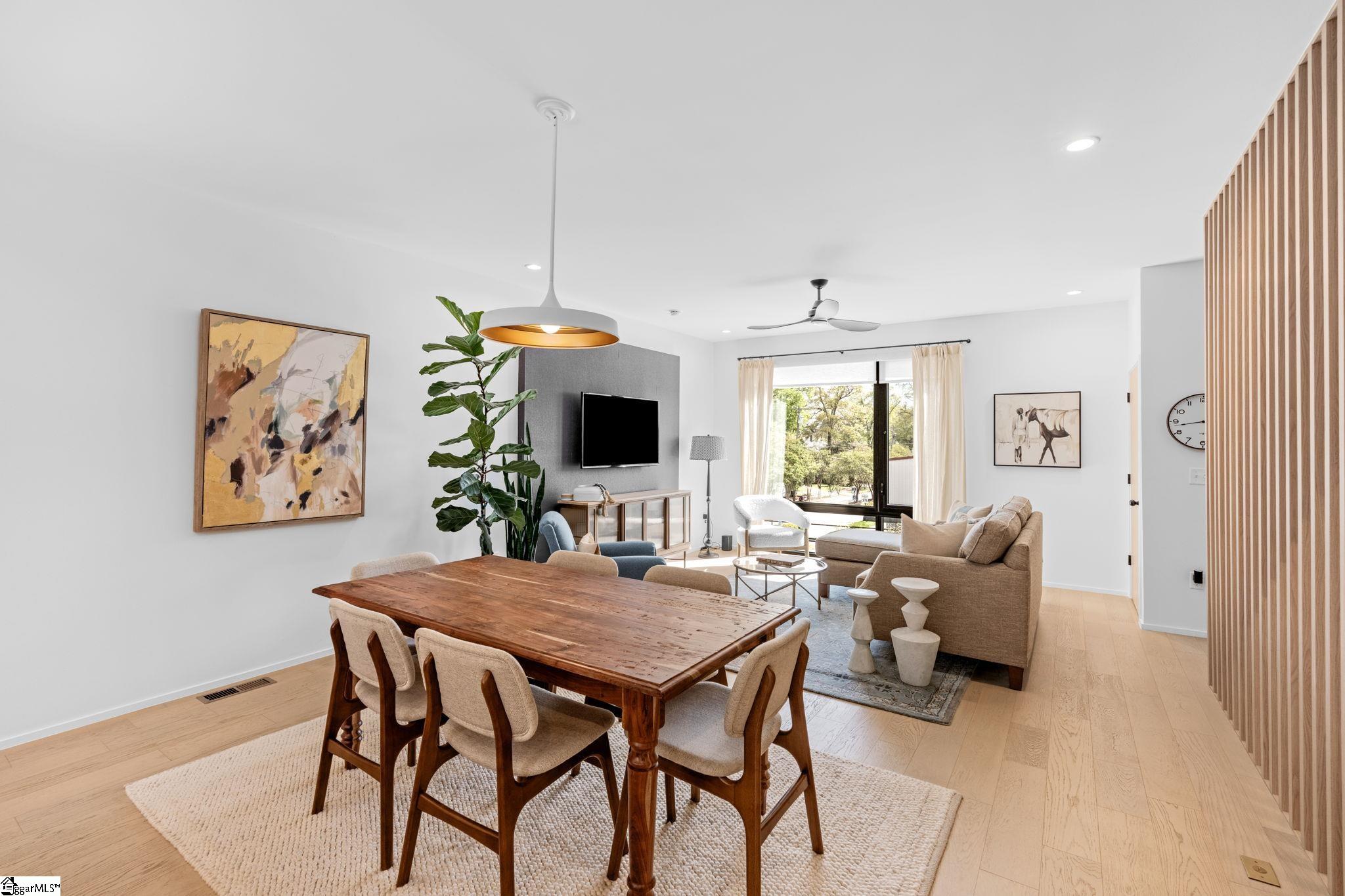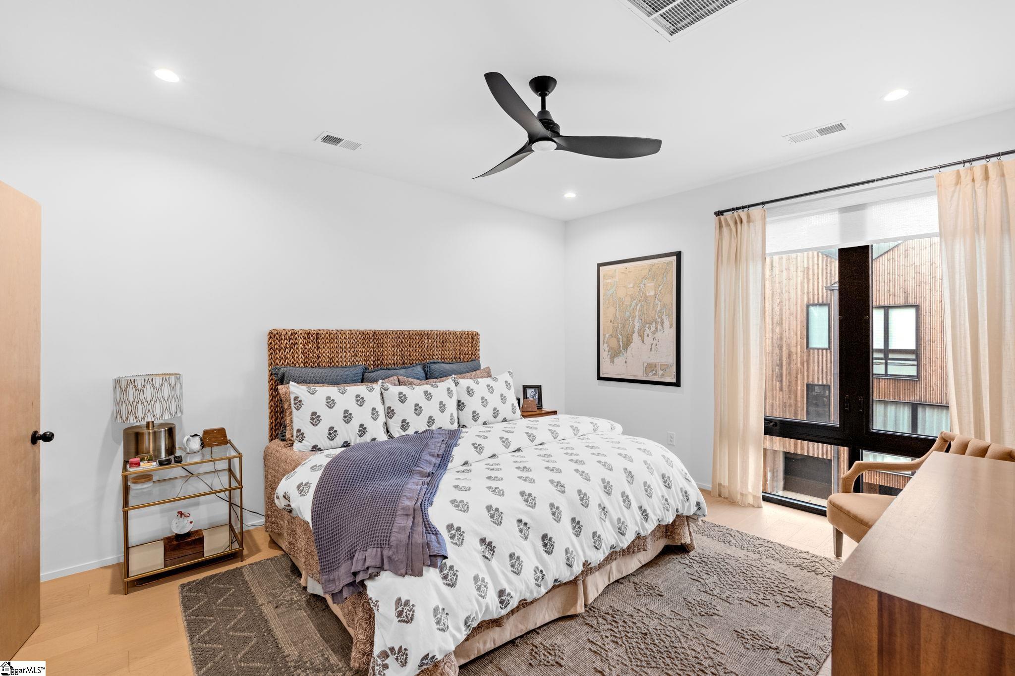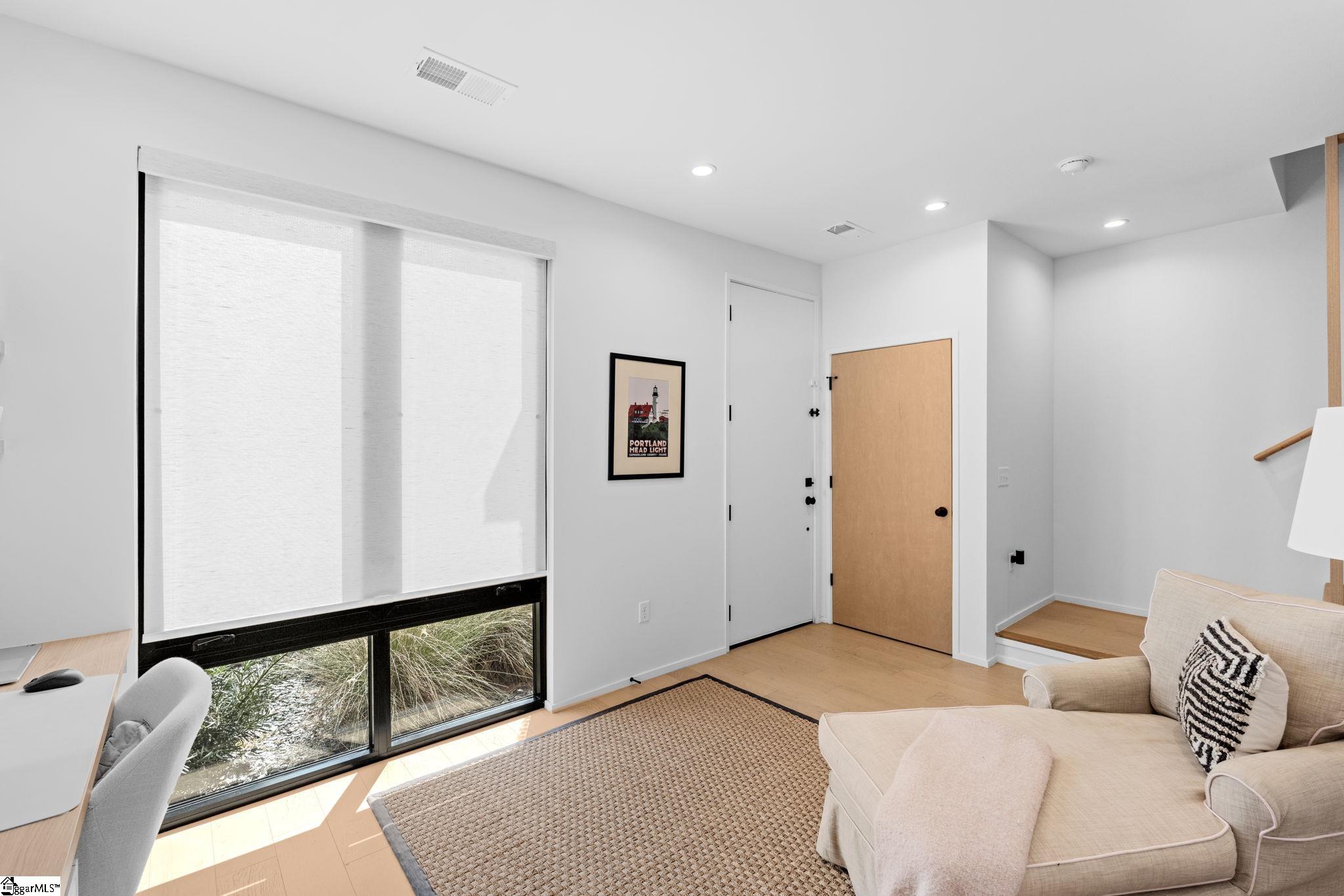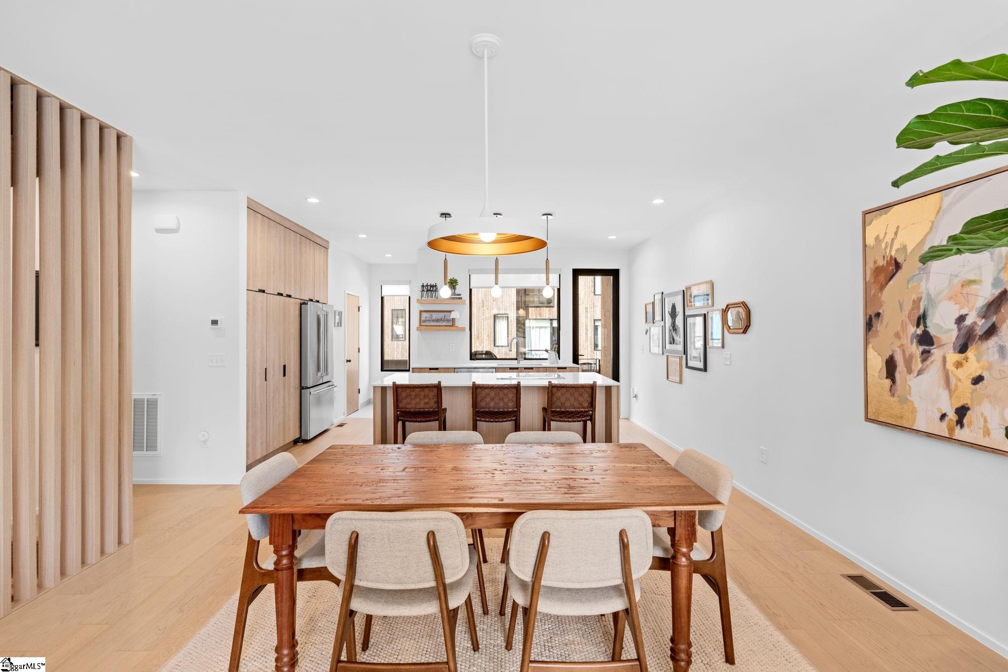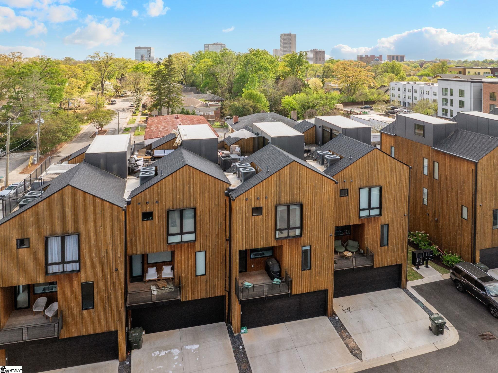 Do you want to live where the city comes alive? This contemporary 3 bedroom, 3.5 bathroom home puts you in the center of everything people love about our award winning Downtown Greenville. Open your front door and you’ll find more than 5 restaurants, a local brewery, coffee spots all within a few steps. This is true walkability. Downtown on demand! Inside, the design embraces a Scandinavian inspired aesthetic that feels clean, calm, and elevated. Light filled spaces, thoughtful finishes, and a floor plan that lives as beautifully as it looks. On the first floor, a full bedroom and bathroom offer flexibility for guests. The space could also serve as a private office or a recreation room. The kitchen and living room flow naturally together, making the main living space feel open and connected. Upstairs, you’ll find two additional bedrooms, each with its own private bathroom, giving everyone comfort and privacy. When it is time to entertain, the rooftop terrace delivers. It is your go to space for hosting, relaxing, and enjoying the energy of the neighborhood from above. Looking ahead, the home is built with flexibility in mind. Select closet spaces have been designed to allow for a future elevator installation, giving you the ability to evolve the home with ease. And the functionality is just as strong as the lifestyle. A two-car garage and ample storage throughout. This home would also make an incredible investment opportunity, thanks to its prime location, modern appearance, and access to Greenville’s best dining, shopping and entertainment.