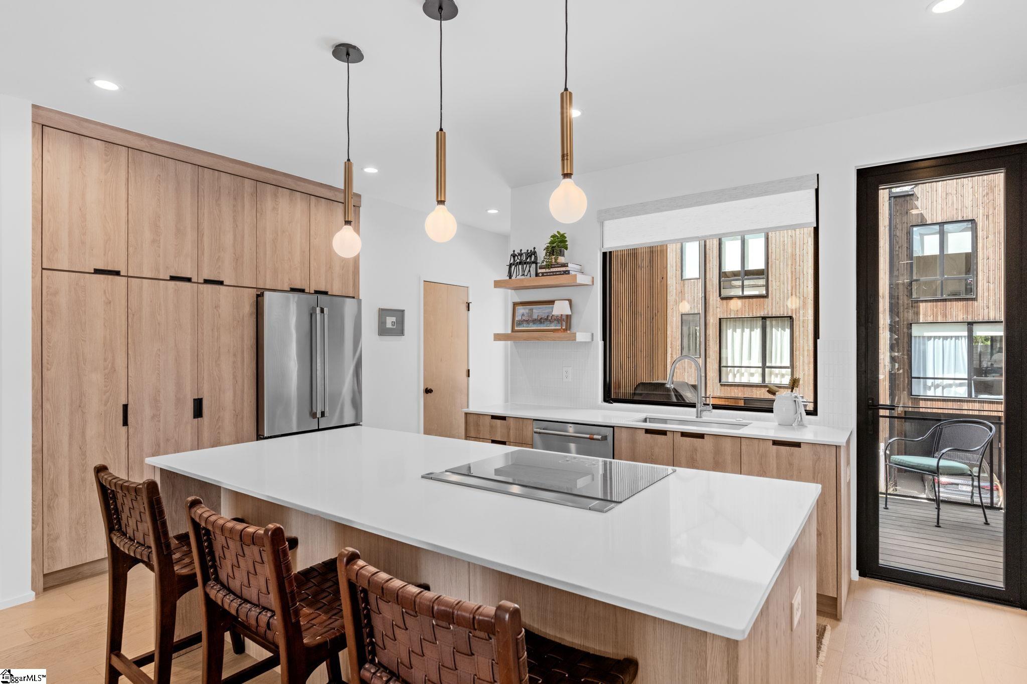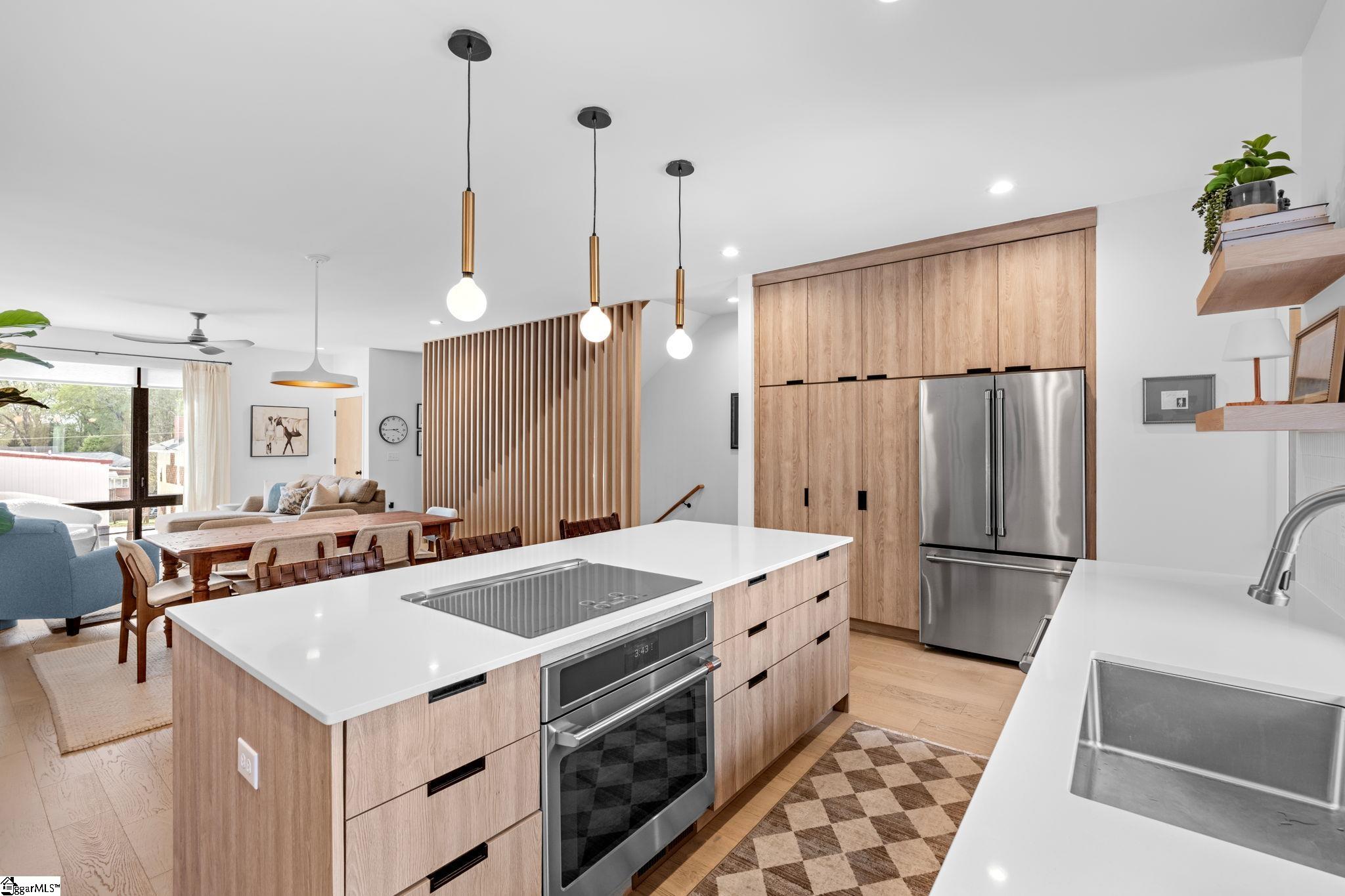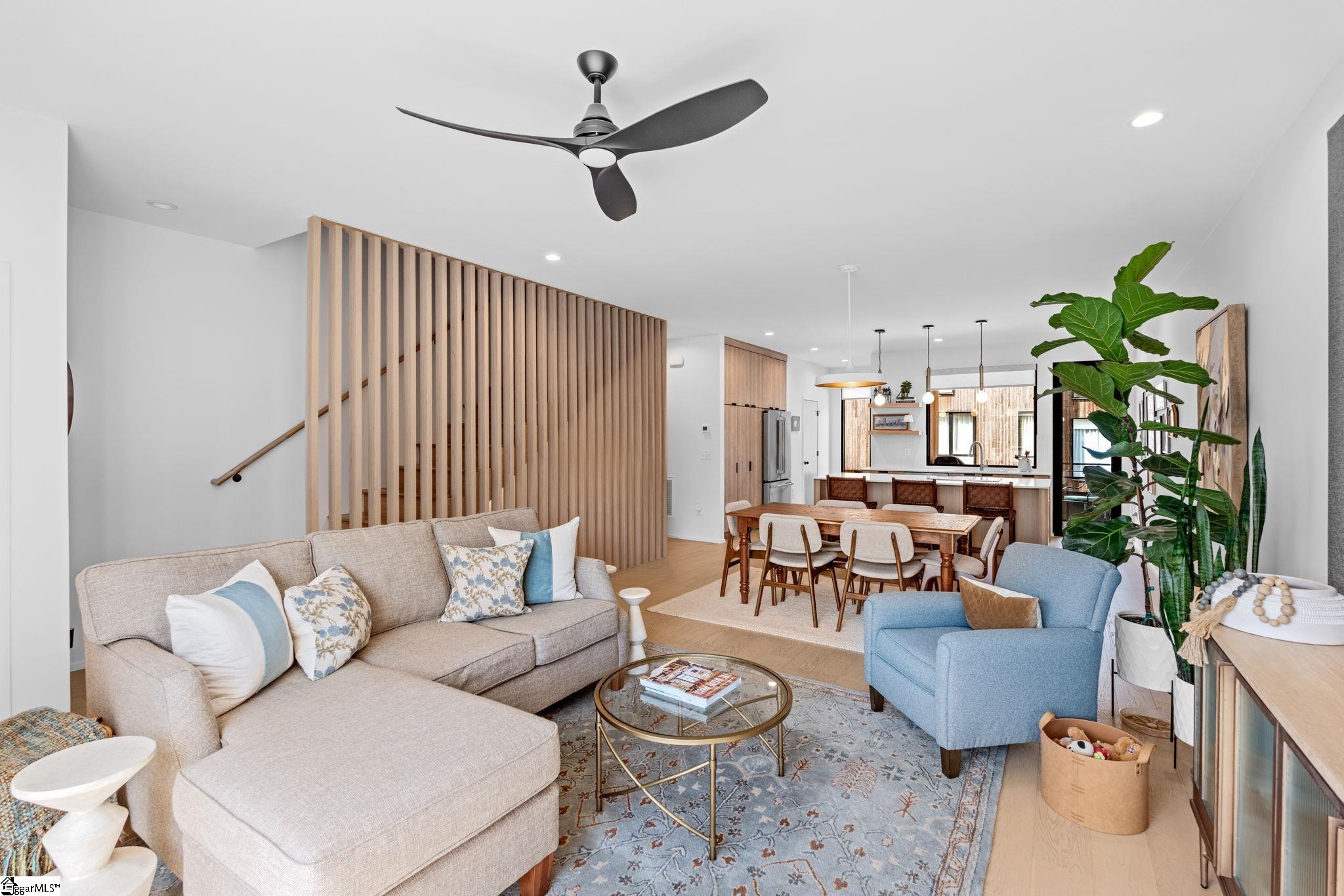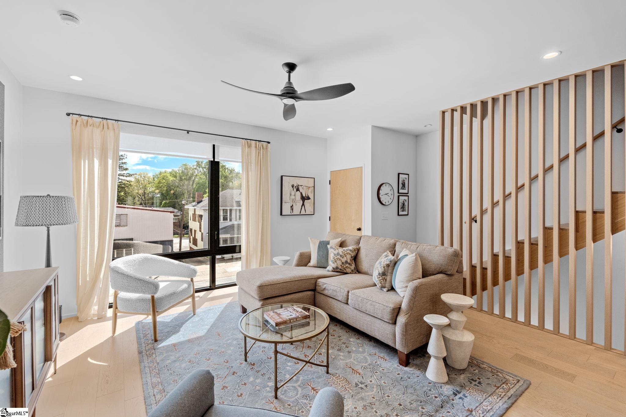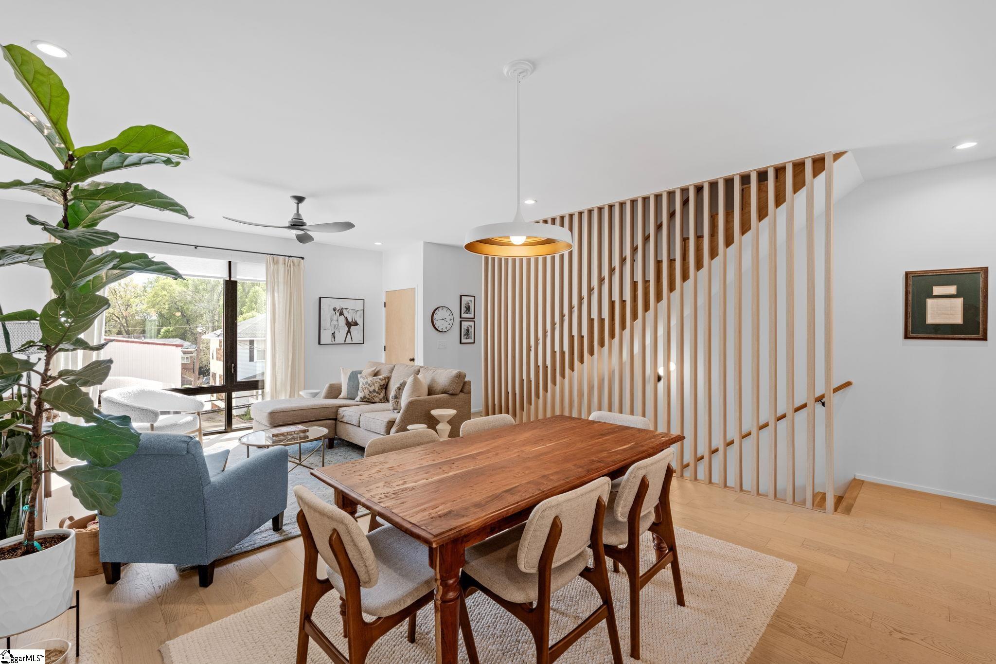 Do you want to live where the city comes alive? This contemporary 3 bedroom, 3.5 bathroom home puts you in the center of everything people love about our award winning Downtown Greenville. Open your front door and you’ll find more than 5 restaurants, a local brewery, coffee spots all within a few steps. This is true walkability. Downtown on demand! Inside, the design embraces a Scandinavian inspired aesthetic that feels clean, calm, and elevated. Light filled spaces, thoughtful finishes, and a floor plan that lives as beautifully as it looks. On the first floor, a full bedroom and bathroom offer flexibility for guests. The space could also serve as a private office or a recreation room. The kitchen and living room flow naturally together, making the main living space feel open and connected. Upstairs, you’ll find two additional bedrooms, each with its own private bathroom, giving everyone comfort and privacy. When it is time to entertain, the rooftop terrace delivers. It is your go to space for hosting, relaxing, and enjoying the energy of the neighborhood from above. Looking ahead, the home is built with flexibility in mind. Select closet spaces have been designed to allow for a future elevator installation, giving you the ability to evolve the home with ease. And the functionality is just as strong as the lifestyle. A two-car garage and ample storage throughout. This home would also make an incredible investment opportunity, thanks to its prime location, modern appearance, and access to Greenville’s best dining, shopping and entertainment.