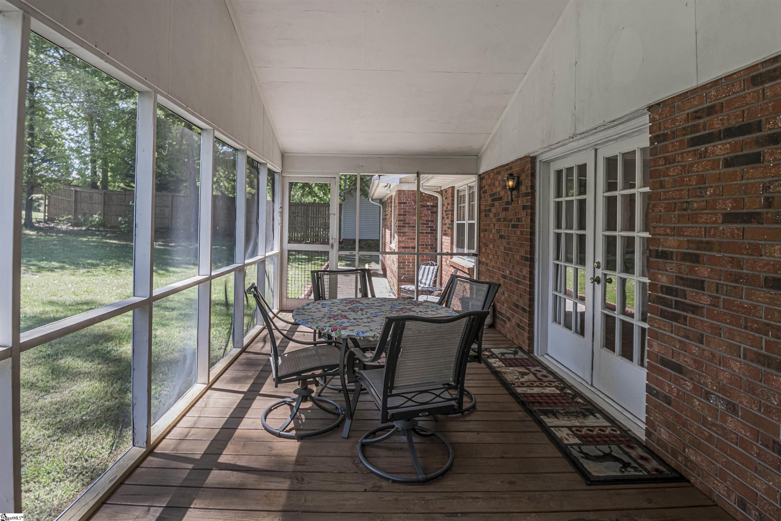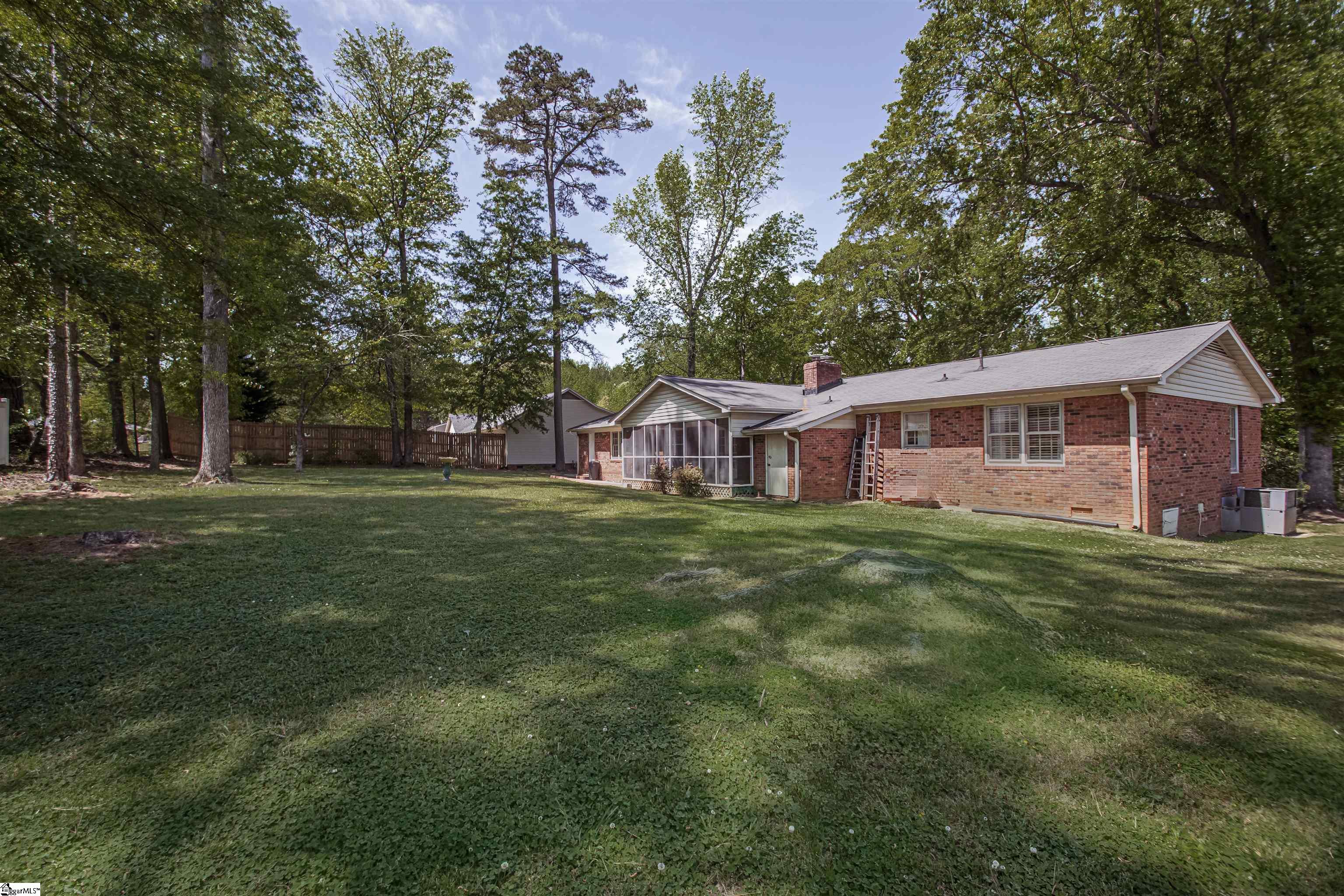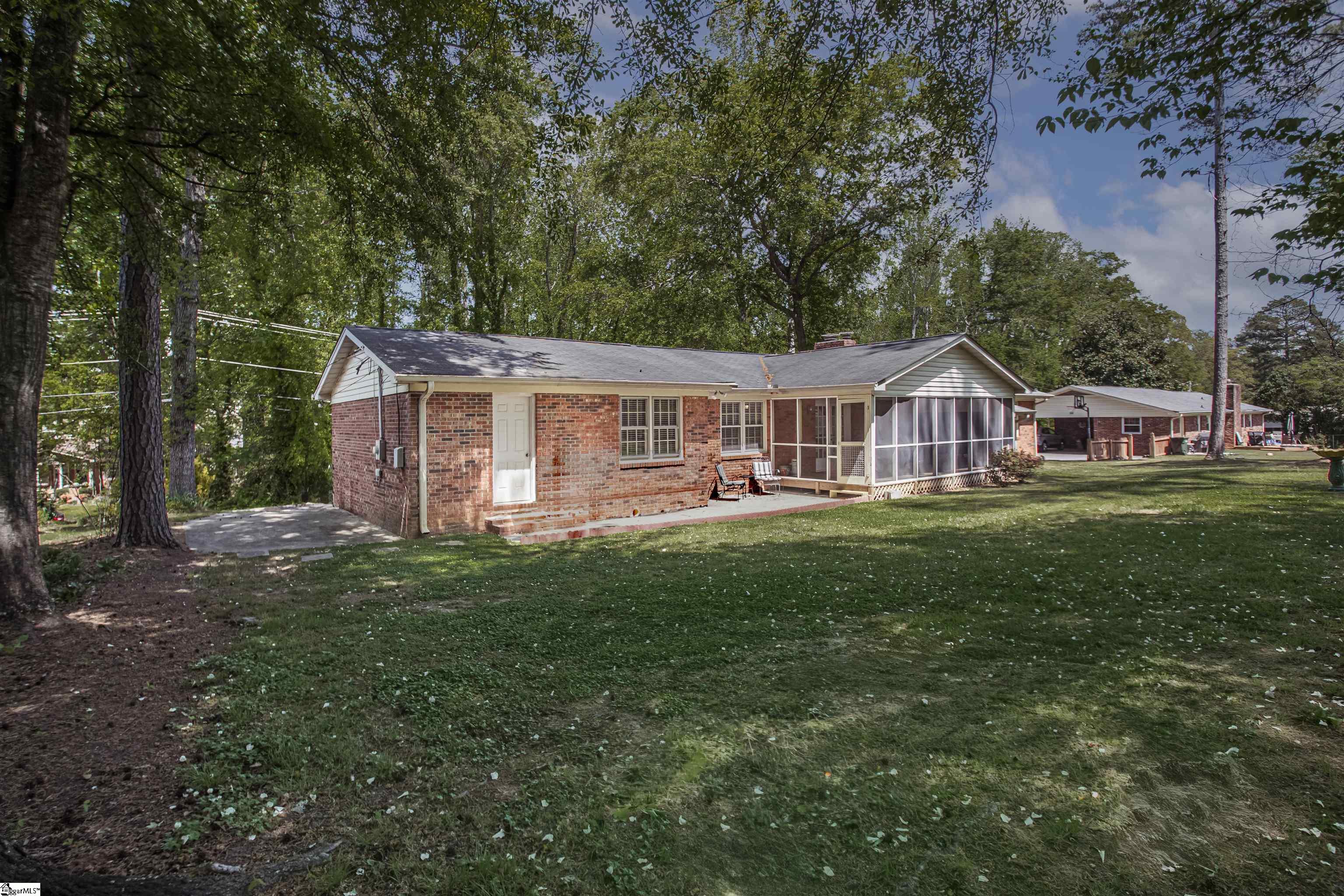 Welcome to 118 Sabra Drive in Easley—a solid brick ranch offering space, convenience, and endless potential. With approximately 1,950 square feet, this 3-bedroom, 2-bath home features a functional layout designed for everyday living. The large living room flows into both an equally spacious kitchen and the 24 x 10 screened porch, creating an inviting central hub for gatherings. Beyond the kitchen, the dining room with window bench seating and a pass through window is well-designed for more formal occasions. An all-season screened porch provides the perfect spot to relax year-round in South Carolina weather while overlooking the large, flat backyard—ideal for entertaining, gardening, or future outdoor projects. A patio beside it extends the seating area. The backyard has access to the garage and a workshop built into the back of the home near the bedrooms. On the bedroom end of the home, the primary has plenty of room for large furniture and a full attached bath with a step in shower. All three bedrooms are generously sized and make good use of the 1950 sf. The walk-in laundry room is conveniently located near the bedrooms, adding to the home’s practical appeal. Location is a standout feature—less than a mile to groceries and schools, just minutes to restaurants, shopping, and popular parks, and a short drive to downtown Easley and the Doodle Trail. Enjoy an easy 20-minute commute to both Greenville and Clemson, with quick access to lakes Jocassee, Keowee, and Hartwell, as well as incredible mountain hiking within 30 minutes. This home has great bones and a classic backyard your can’t replicate in new construction neighborhoods. It’s ready for your cosmetic updates, making it a true blank canvas for your personal style and vision. It’s just a few weekend projects away from becoming your dream space!