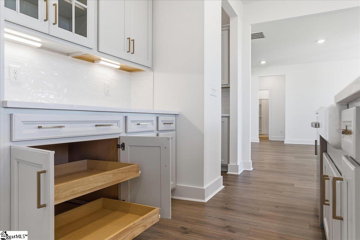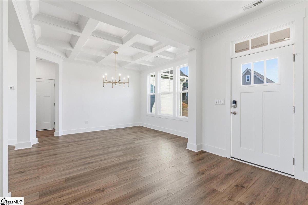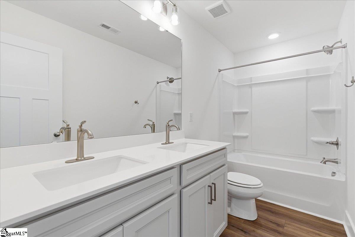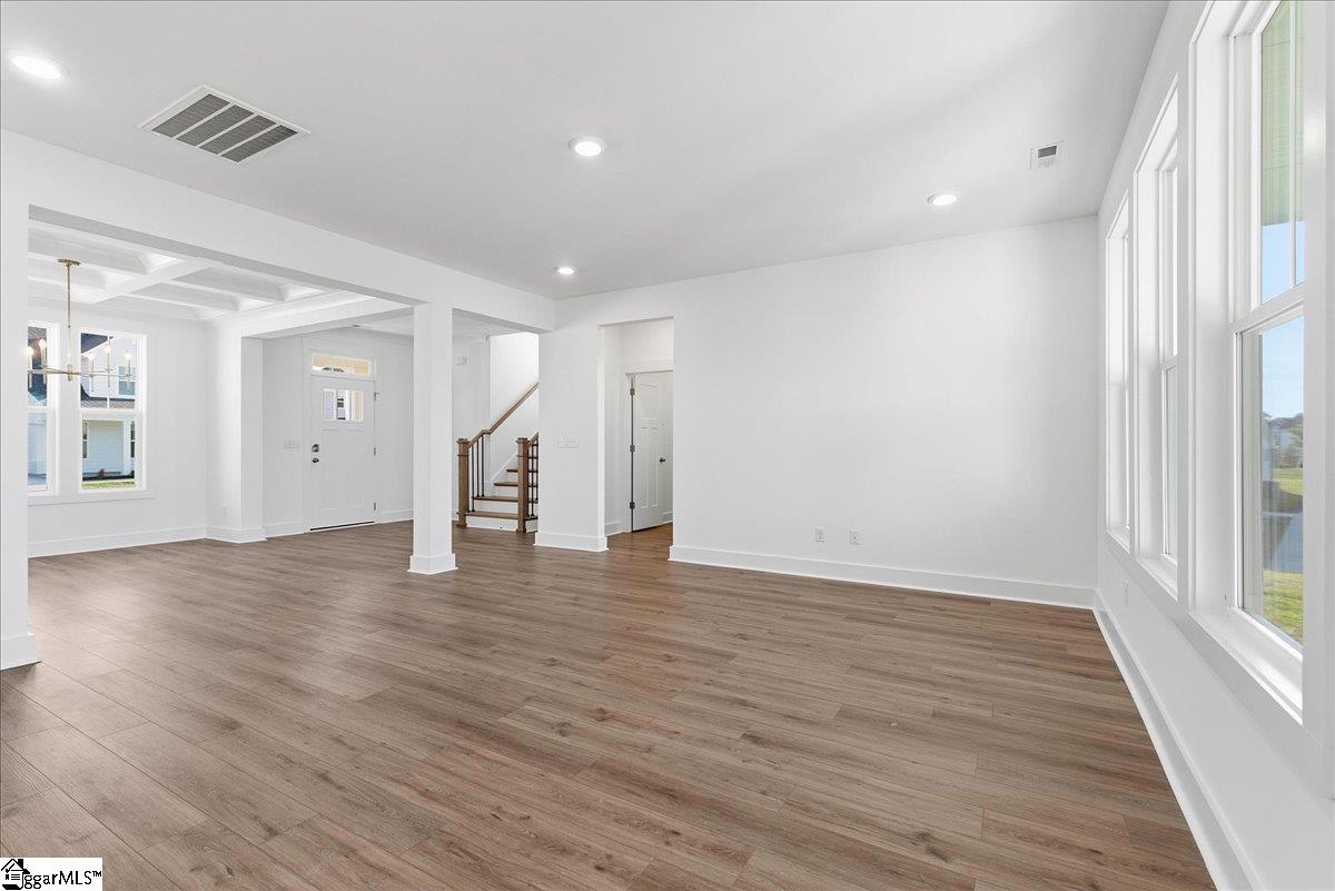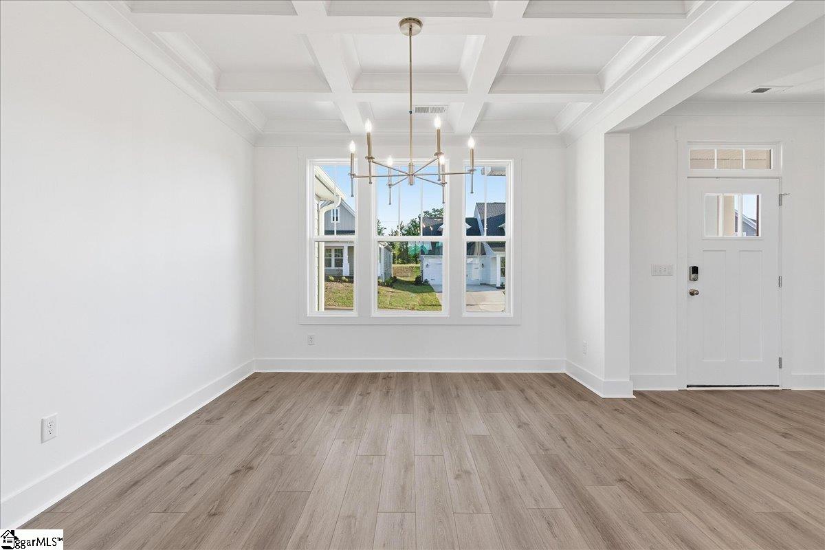 Home is Move in Ready! Discover exclusive living at Benjamin’s Grove, a desirable new single-family homes community centrally located between Greenville and Spartanburg, SC. This Craftsman-style Arlington home with James Hardie siding showcases over 2,700 square feet of expansive living space, an entertainer’s dream. The covered front porch leads into your grand entryway and adjacent formal dining room with coffered ceilings.The living room with its high ceilings and tall windows give lots of natural light and flows into the open kitchen and morning room. Features of the kitchen include an oversized island with farmhouse sink for extra prep space and additional seating, staggered soft white cabinetry and Quartz countertops, tiled backsplash, under cabinet lighting and gourmet stainless steel appliances including a gas cooktop, double wall oven and range hood. The all season morning room leads out to the covered back porch overlooking your corner yard. There is also an additional bedroom and full bath off the living room that would make a perfect home office or even a guest room. Up the Oak staircase are 3 spacious bedrooms including the Primary Suite which features trey ceilings, double sinks, walk in closet and amazing Roman tiled shower with dual showerheads, seat and frameless glass door. Two additional bedrooms, a full bath with double sinks, walk in laundry room, and generous loft space complete the second floor. Smart home technology, energy-efficient design, and a dedicated local warranty team ensure long-term comfort and convenience. Benjamins Grove features top-notch future resort style amenities, including a pool with cabana, pickleball courts, community trail and a playground! Just over 10 minutes away from both I-85 and I-26, making access to the surrounding areas of the Upstate a breeze! Ready for vacation? Take the short 15 minute drive to GSP International Airport! Enjoy convenient access to nearby activities such as Tyger River Park, Willow Creek Golf Club, and Lake Cooley Park. Vibrant shopping and dining nearby, as well as employment hubs such as BMW. Come by today and make Benjamins Grove your new home. See Sales Agent for additional pricing information.