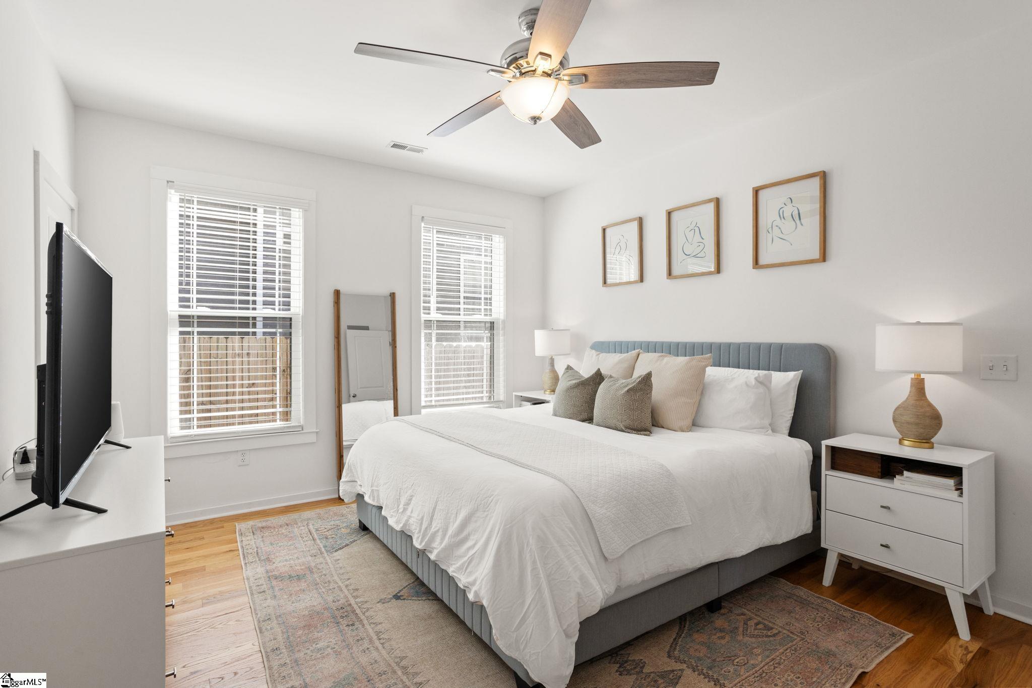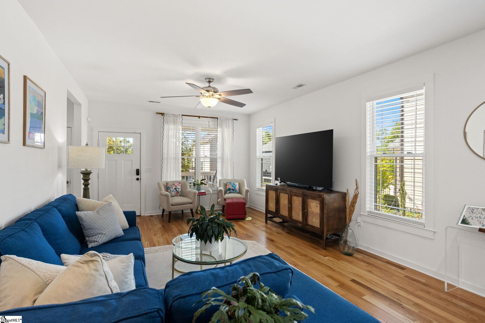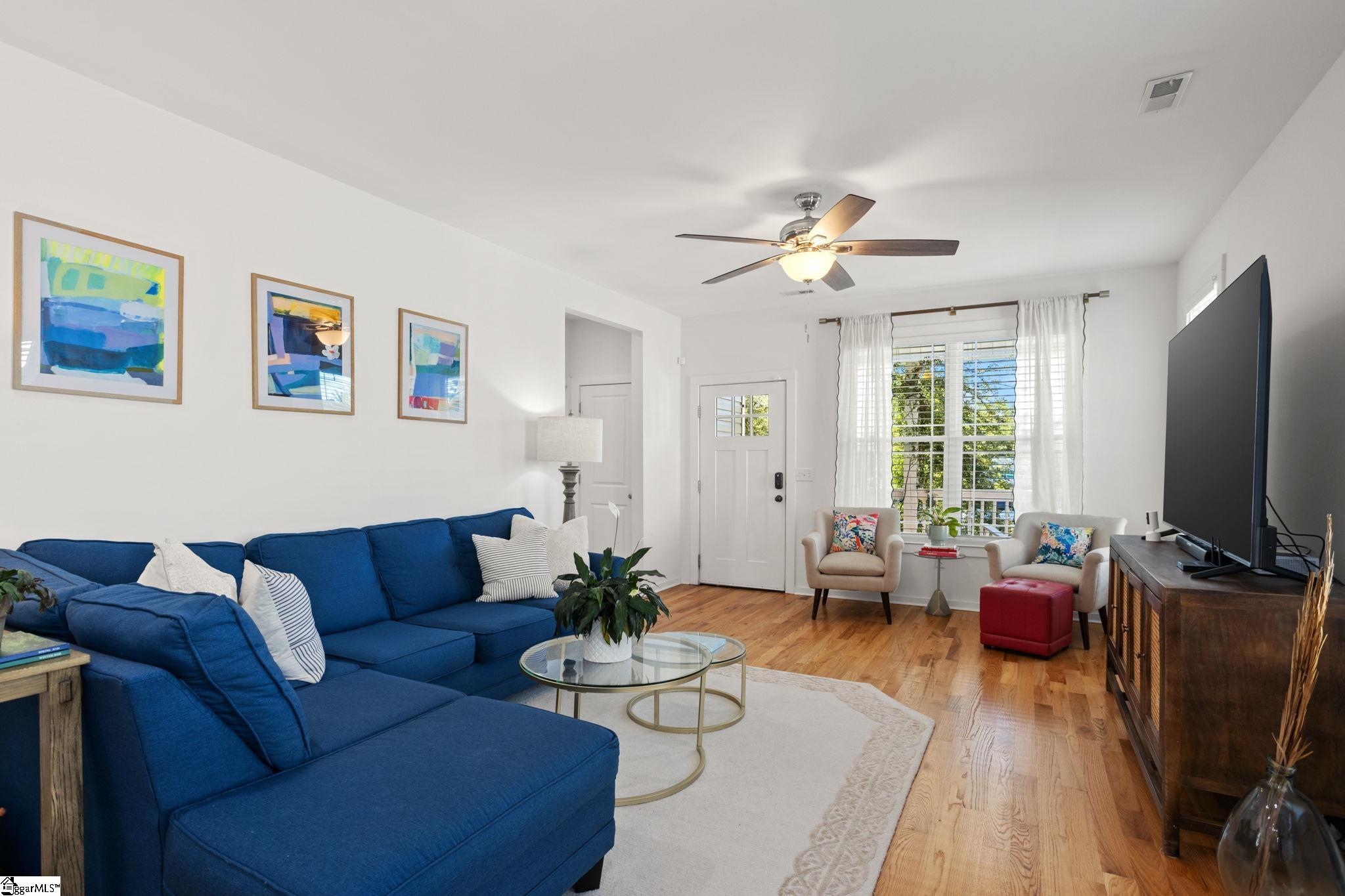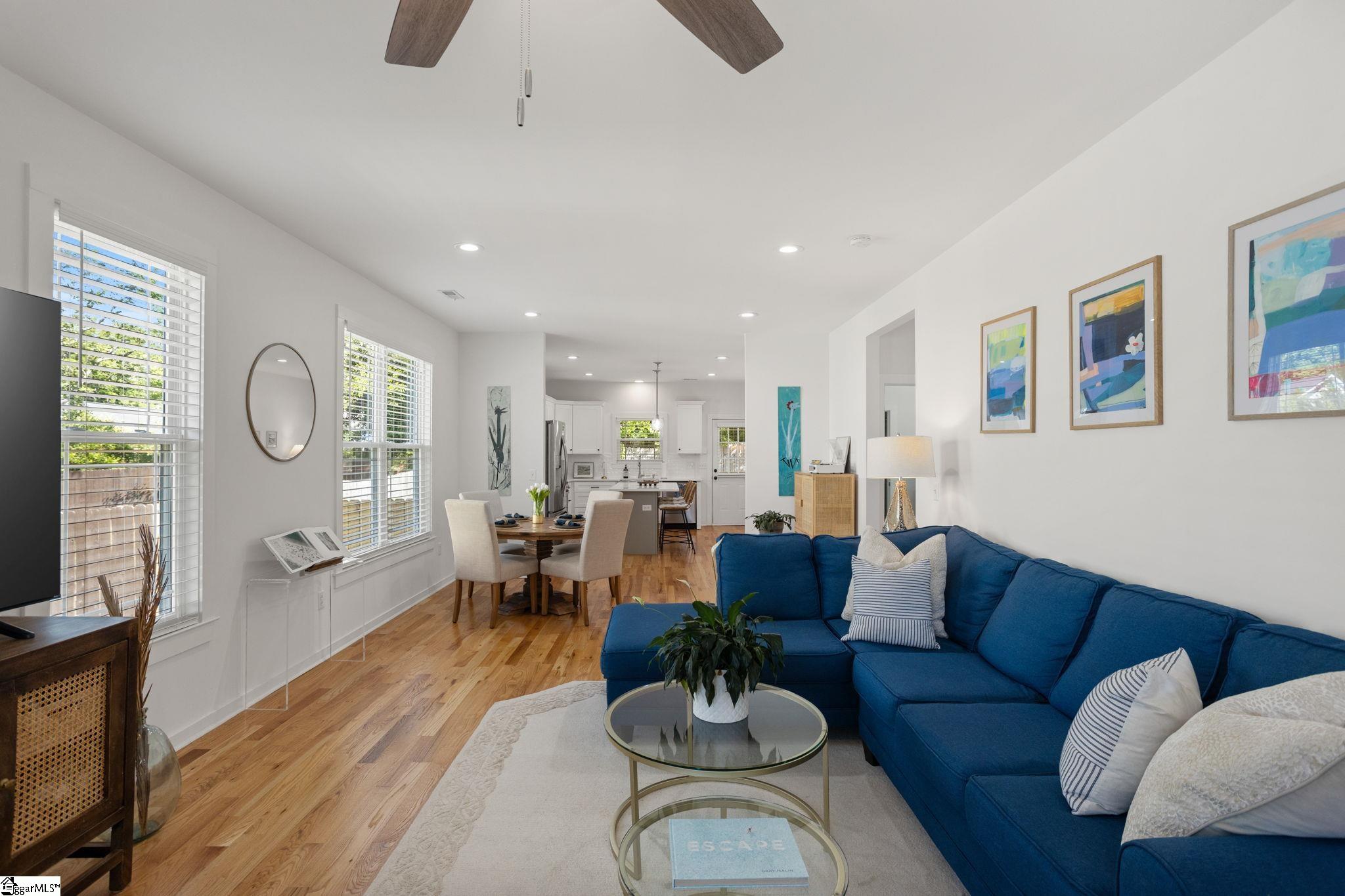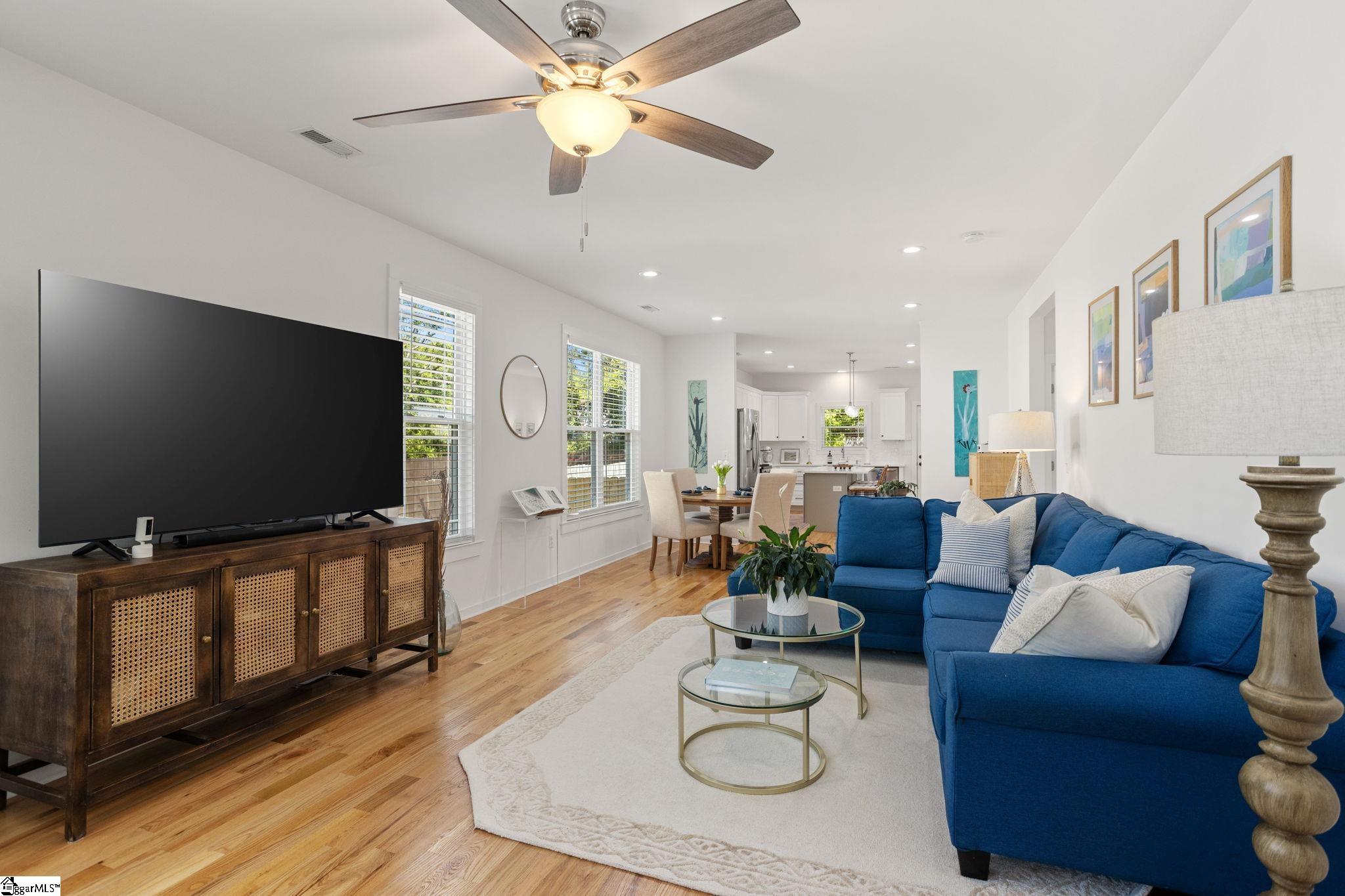 Built in 2020 and impeccably maintained, this 3 bed, 2 bath home is move-in ready. Located just 5 minutes from award-winning Downtown Greenville, Cleveland Park, the Swamp Rabbit Trail, Greenville Zoo, and premier dining and shopping. A charming covered front porch welcomes you inside to easy one-level living highlighted by 9+ foot ceilings and a seamless open-concept kitchen/living. The primary suite is a true retreat, featuring en-suite w/ dual-vanity, glass tile shower, and spacious walk-in closet. 2 additional bedrooms and a full hall bath provide comfortable accommodations for guests or a home office. Outdoors, enjoy a private, fully fenced backyard complete with a deck and low-maintenance landscaping. 12 Harris Lane delivers newer construction without compromising proximity to the heart of Downtown Greenville. Schedule your private showing today!