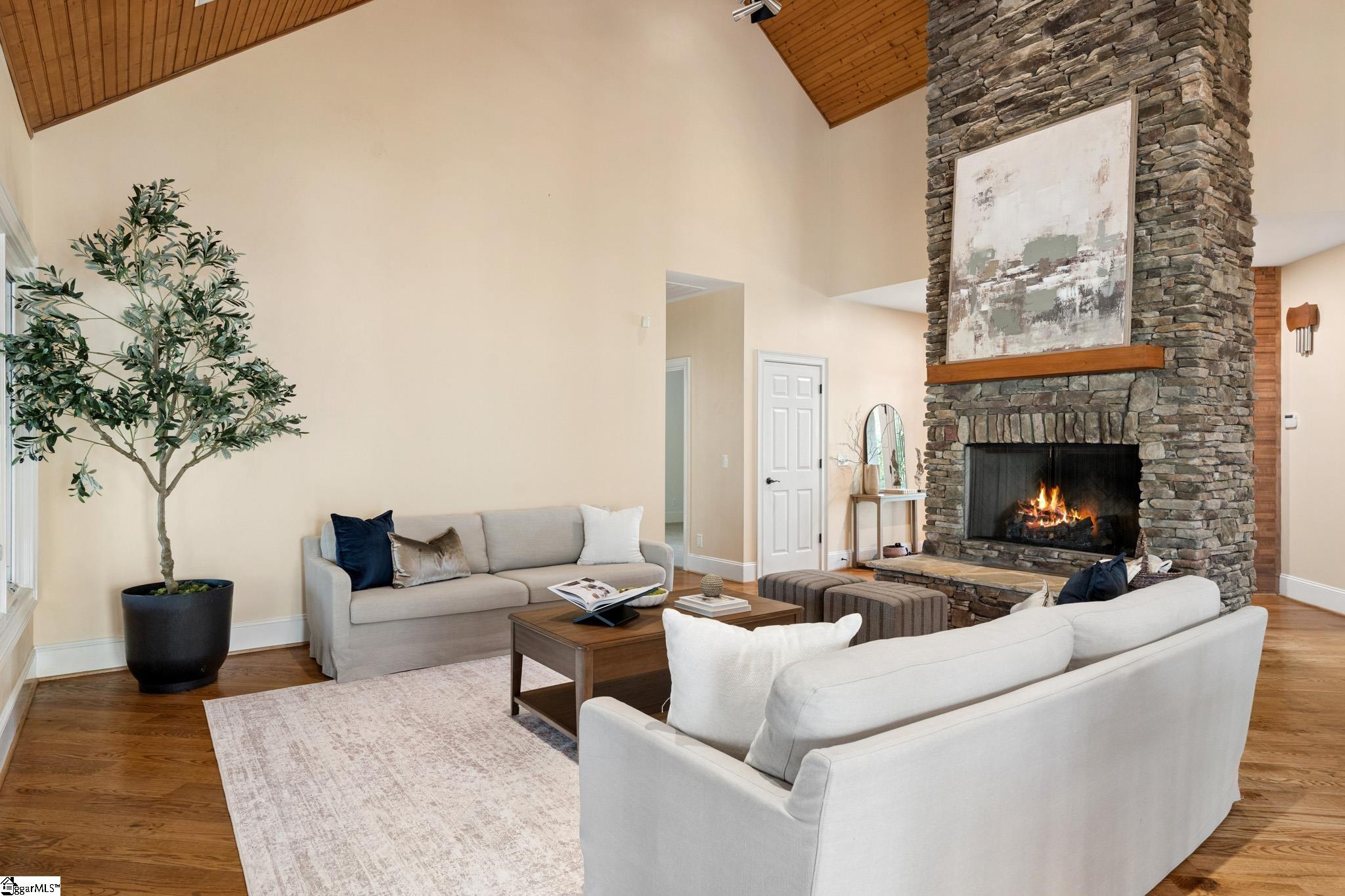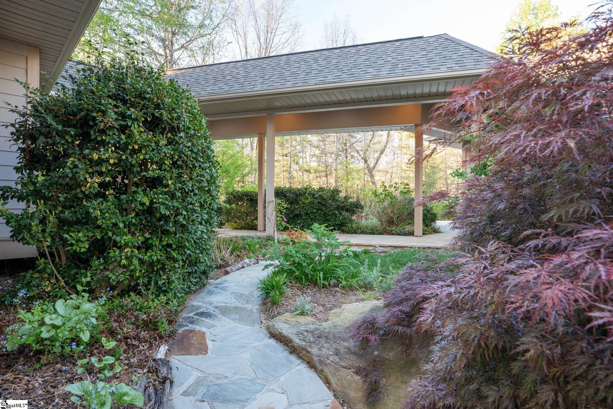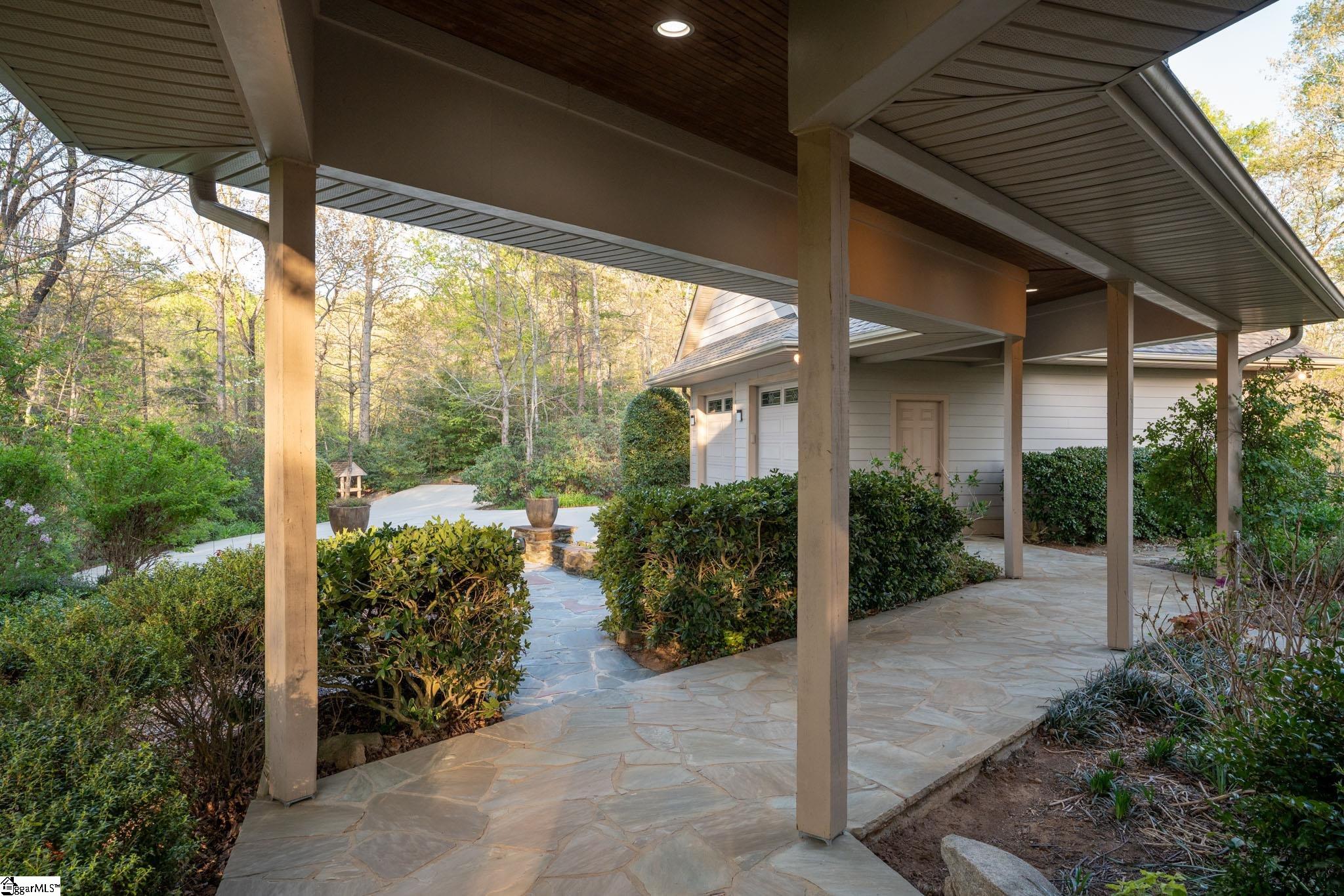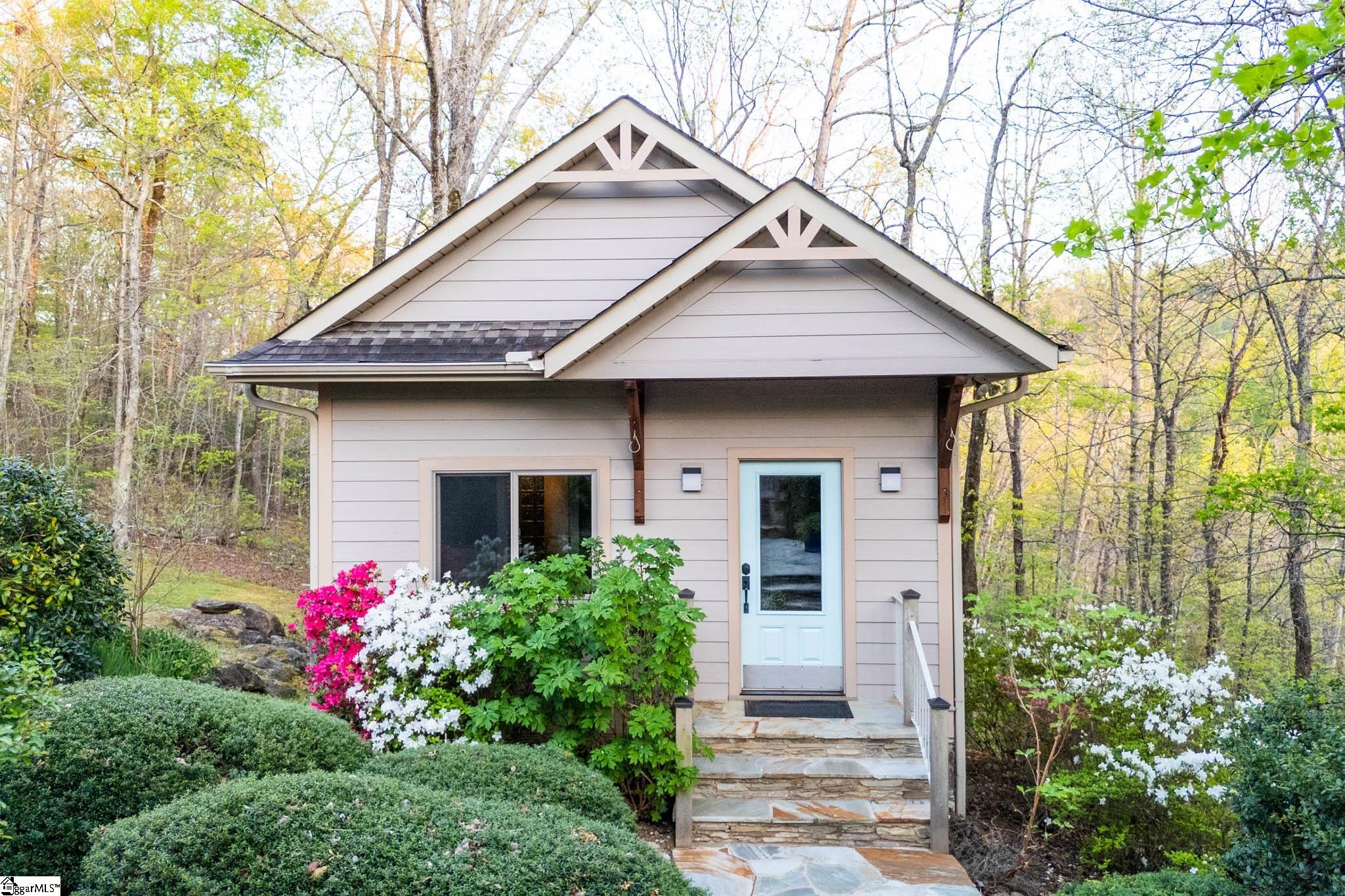 Stunning custom-built, ONE-STORY home AND SEPARATE GUEST COTTAGE/MULTI-GENERATIONAL addition, to include 3.5 acres of natural wooded land located in the Blue Ridge escarpment (Travelers Rest foothills of the Blue Ridge Mountain range)! A world away from the hustle and bustle, but less than a 20-minute drive to downtown Travelers Rest, with easy access to Asheville, NC and Greenville, SC! As you meander into the main home through the outdoor breezeway on the beautifully crafted stone paver walkway-you will be in awe of the beautiful surroundings of nature all around! Upon entering, you will be impressed by the magnificent stone, floor to ceiling gas fireplace to enjoy all year with the flip of a switch! You are certain to be impressed by the 28’ wood paneled ceiling living area! Enjoy countless hours of entertaining in the custom kitchen with large center island and ample cabinets throughout, along with a continuation of the stunning wood paneled cathedral ceiling! Large walk-in pantry is a huge plus for any extra storage needed. Primary bedroom will feel like a sanctuary with access to the back porch, allowing you to listen to the outdoor rock water fountain and quiet of nature. To add to your spa like experience-an incredibly mastered 9 1/2-foot-long shower will not disappoint! To top off the primary bedroom experience you will appreciate the expansive custom closet with built-in storage. The outdoor closed in porch off one of the bedrooms, is perfectly positioned amongst the wooded lot and will be sure to delight you and friends and family all year! Additional space for extra dining and/or a flex room with a beautiful stone, gas fireplace is a perfect addition to your living space as well. The guest cottage is as adorable as it gets with its own private entrance! Stunning Brazilian hardwood flooring throughout, living area with small gas fireplace, kitchenette, as well as its own separate bedroom area is a must have for guests (careful -they may never want to leave!) as well as its own full bathroom with beautiful walk-in stone floor shower! Extra-large driveway and added parking pad ads ease ability while driving in and out of the property. Oversized 2 car detached garage blends seamlessly into the overall feel and design of the property! An invisible fence is already installed to encompass 2 acres of the over 3 acres of land for pets as needed. Enjoy the solitude and magnificent glory of this beautiful outdoor property with many different fruit trees, bearing fruit throughout the year-to include fig, apricot, apple, pear, peach, and plum! Added benefits to this perfectly positioned property, especially for all you CYCLING ENTHUSIASTS, there are ample prime CYCLING ROUTES to enjoy all throughout the area! Additionally, HOTEL DOMESTIQUE is only minutes away, offering luxurious stays and unmatched experiences in hospitality, cuisine and adventure and will be host to the GRAN FONDO HINCAPIE-Greenville this Fall (15-year anniversary). Schedule your showing today – this unbelievable property will definitely not last long!