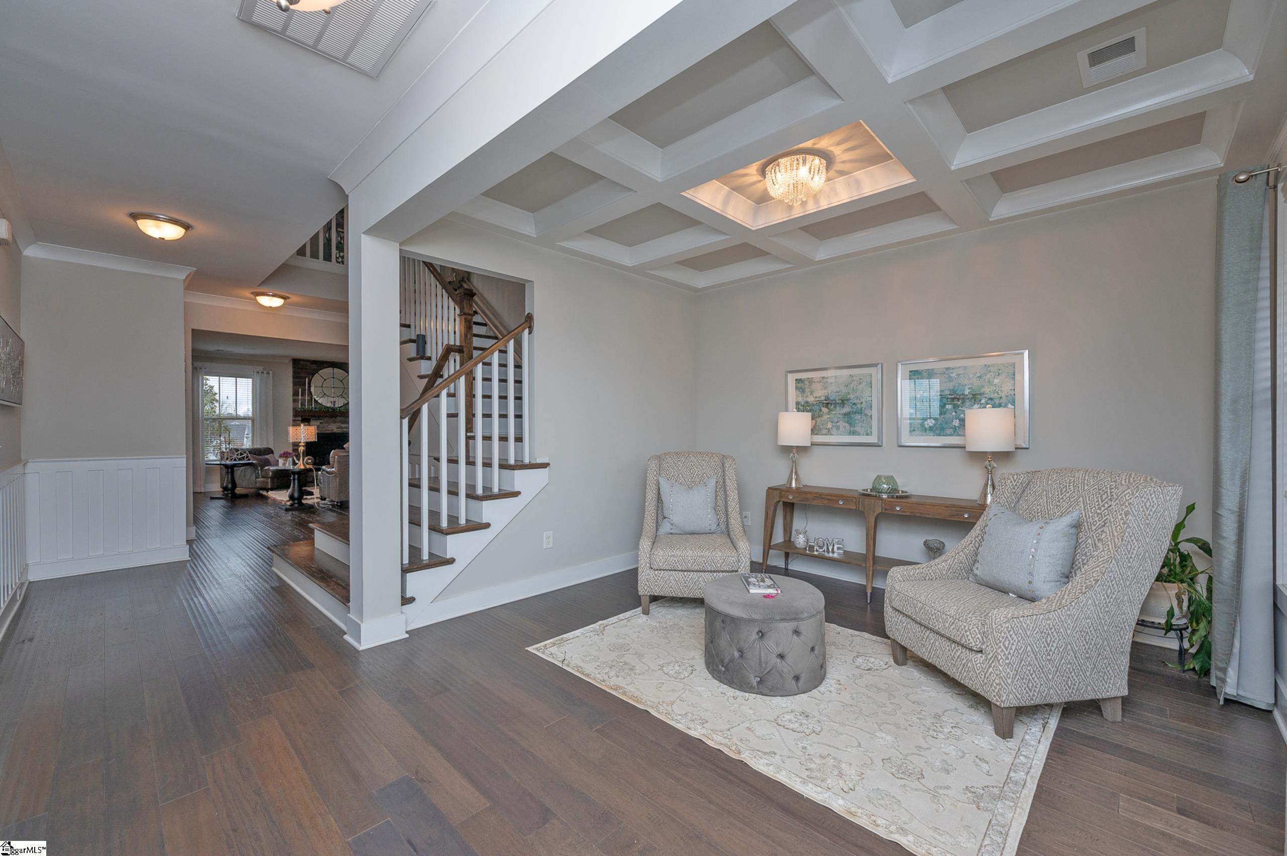 Meticulously maintained and professionally decorated, this stunning one-owner home in Coventry offers exceptional style and comfort just minutes from Downtown Simpsonville! Every detail has been thoughtfully curated, showcasing numerous upgrades and special features throughout. Engineered hardwood flooring flows seamlessly through the main living areas, while ceramic tile enhances the bathrooms, laundry room, and mudroom. Even the garage reflects the home’s pristine condition with its immaculate epoxy floor. Upstairs, you’ll find four spacious bedrooms, three full bathrooms, and a large loft area—perfect for a media space, playroom, or additional living area. The main level is designed for both everyday living and elegant entertaining, featuring a formal living/sitting room and dining room, plus a beautiful and functional butler’s pantry. The gourmet kitchen is truly the heart of the home, complete with double ovens, a large center island, breakfast area, and open sightlines to the inviting Great Room with a gorgeous stacked stone gas fireplace. Step outside to enjoy the comfortable screened porch and expansive patio—ideal for grilling, relaxing, and entertaining guests year-round. All new designer light fixtures add a fresh, upscale touch and perfectly complement the home’s professional décor. This is truly a beautiful place to call HOME!