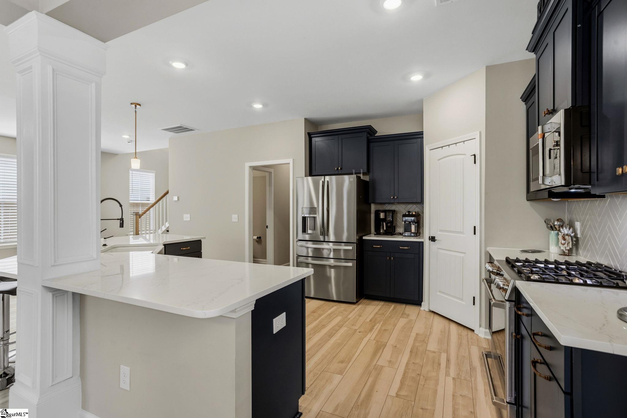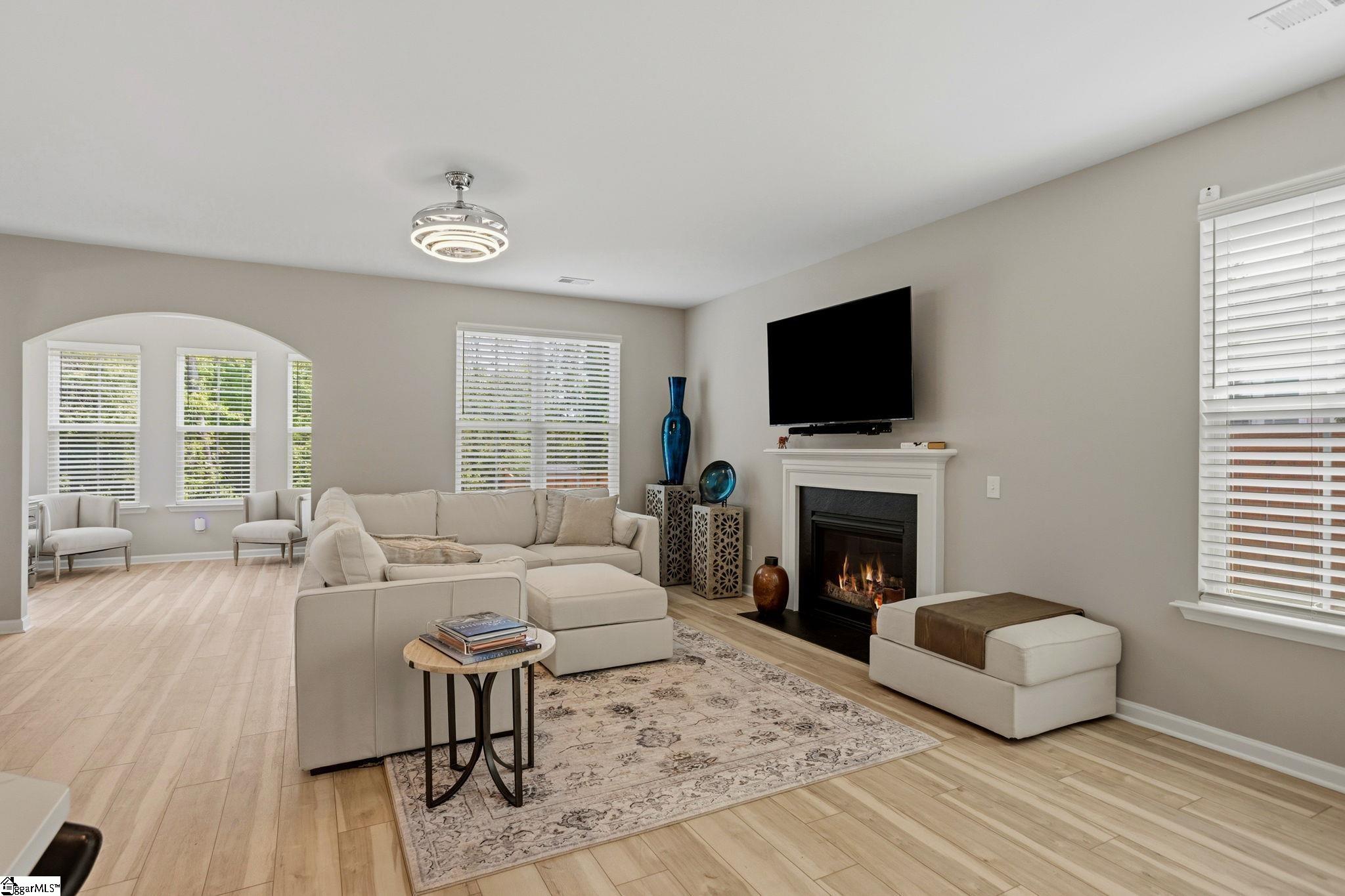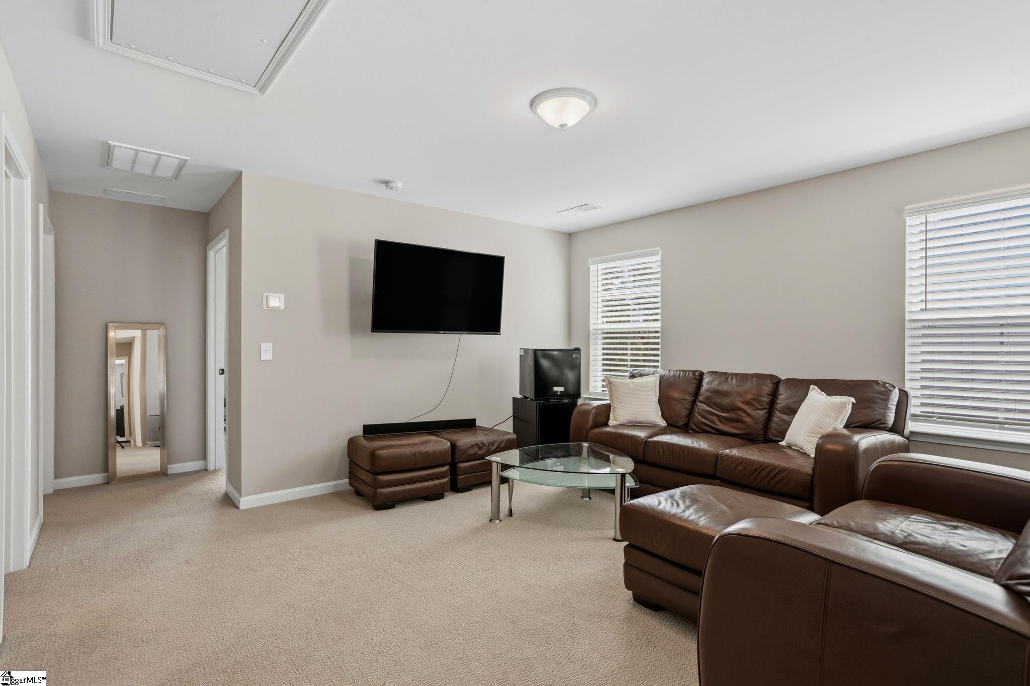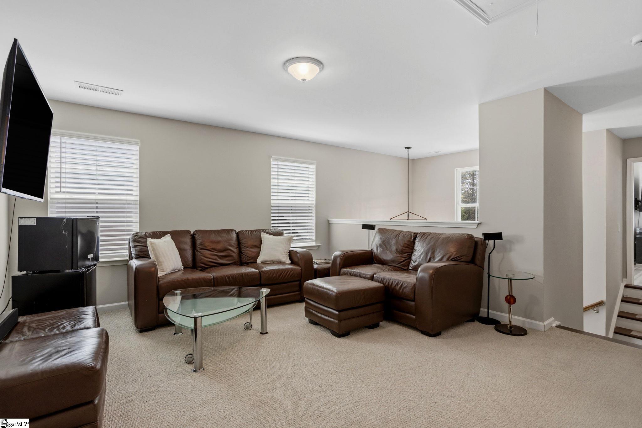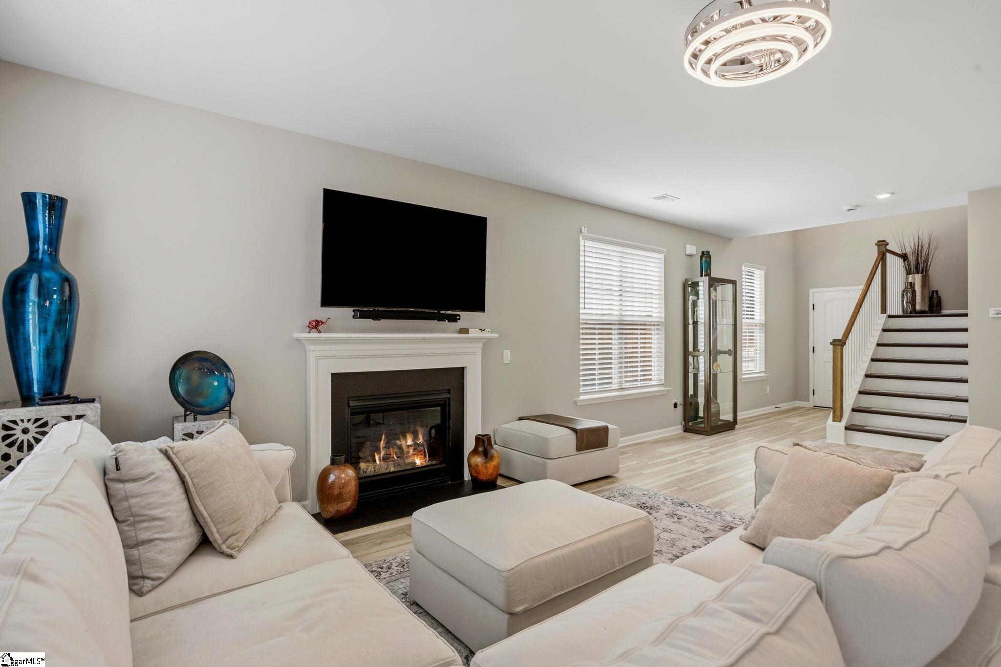Welcome to 121 Hyssop Court, a beautifully residence in Greenville’s desirable Indigo Pointe community. Offering a thoughtfully designed open-concept layout, this home combines modern elegance with everyday functionality to meet the needs of today’s professional lifestyle. The main level showcases a spacious living area centered around a fireplace, seamlessly connecting to a bright sunroom and a well-appointed kitchen. The kitchen features a large island with bar seating, quartz countertops, premium appliances, and a six-burner gas range, ideal for both everyday use and entertaining. The adjacent dining area offers a natural space for hosting gatherings. A versatile flex room on the main level can serve as a flex space, private office or butler’s pantry, complemented by a convenient half bath and direct access to the garage. Upstairs, the expansive primary suite serves as a private retreat, complete with a sitting area, dual walk-in closets, and a luxurious en-suite bath. Two additional bedrooms, a full bath, a generously sized loft/Bonus room—ideal for a media or secondary living space—and a walk-in laundry room complete the upper level. Additional upgrades include designer lighting and ceiling fans throughout, enhancing the home’s polished aesthetic. The outdoor space features a fenced, private backyard with direct access to the community walking trail, providing both convenience, privacy and walking path to the community pool. Strategically located just minutes from Verdae Boulevard, Woodruff Road, and I-85/385, this home offers exceptional access to Greenville’s premier business districts, shopping, dining, and recreation, including proximity to the Swamp Rabbit Trail and neighborhood amenities. This is an outstanding opportunity for buyers seeking a move-in ready home that balances comfort, style, and location.