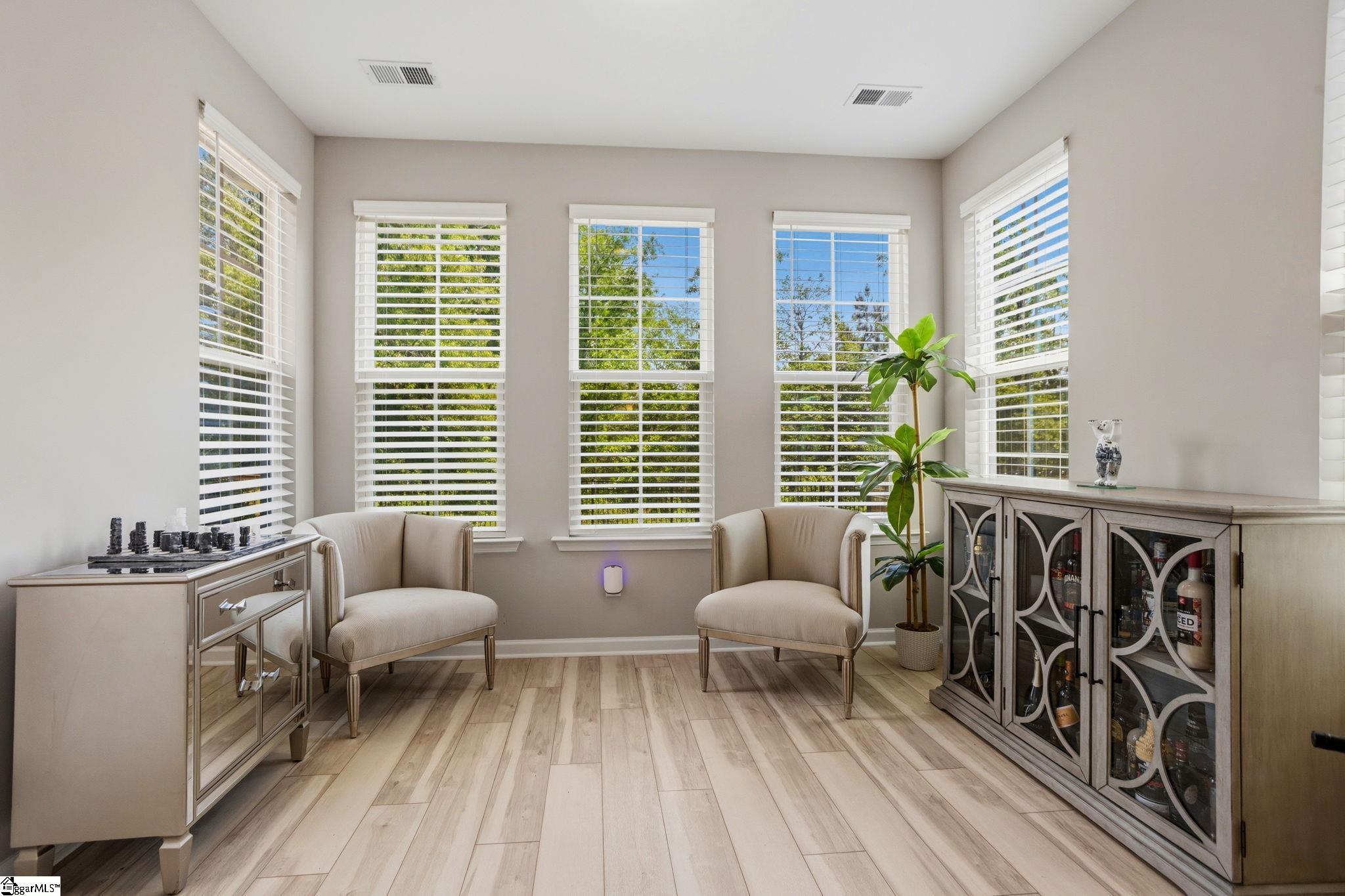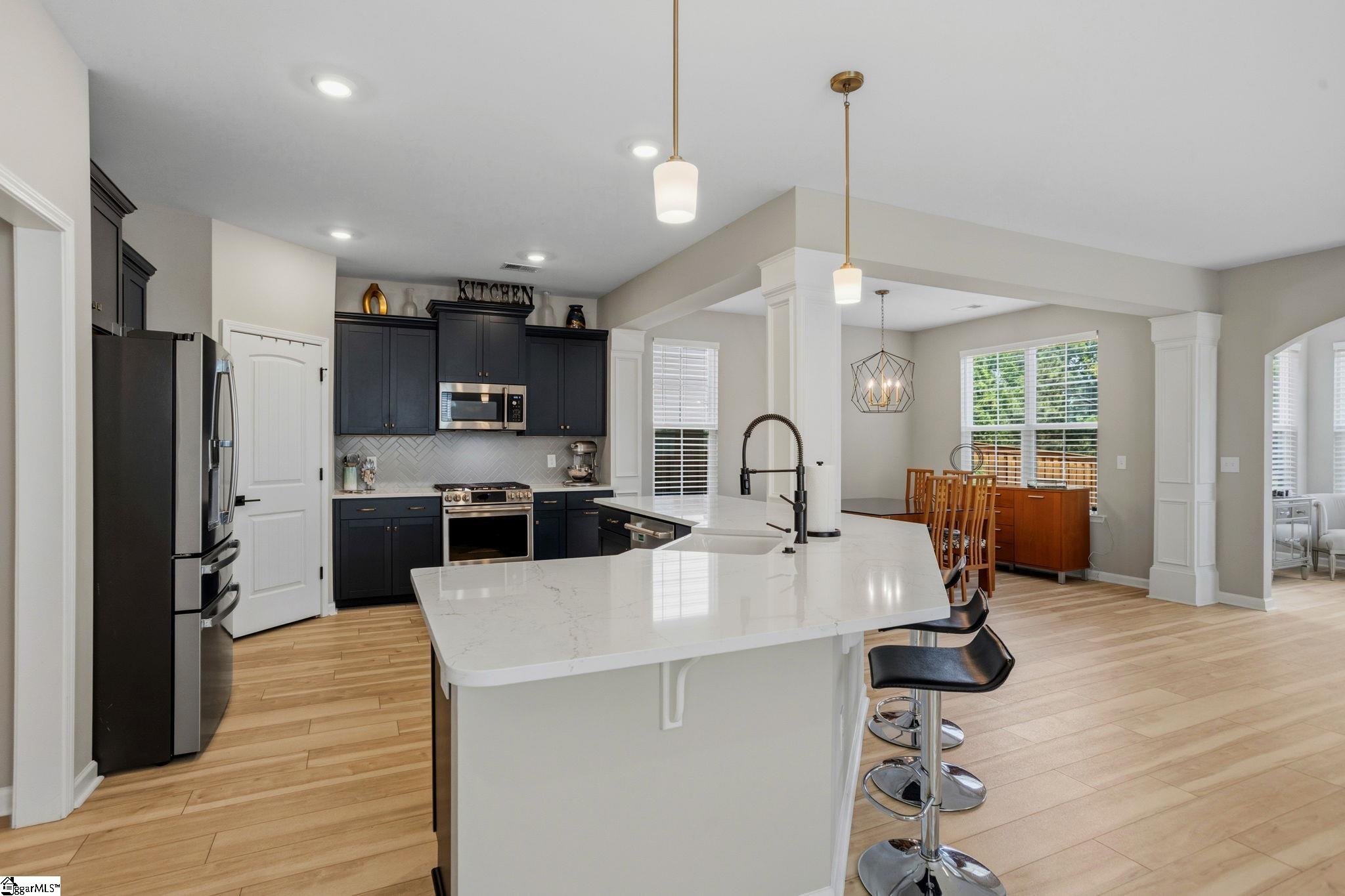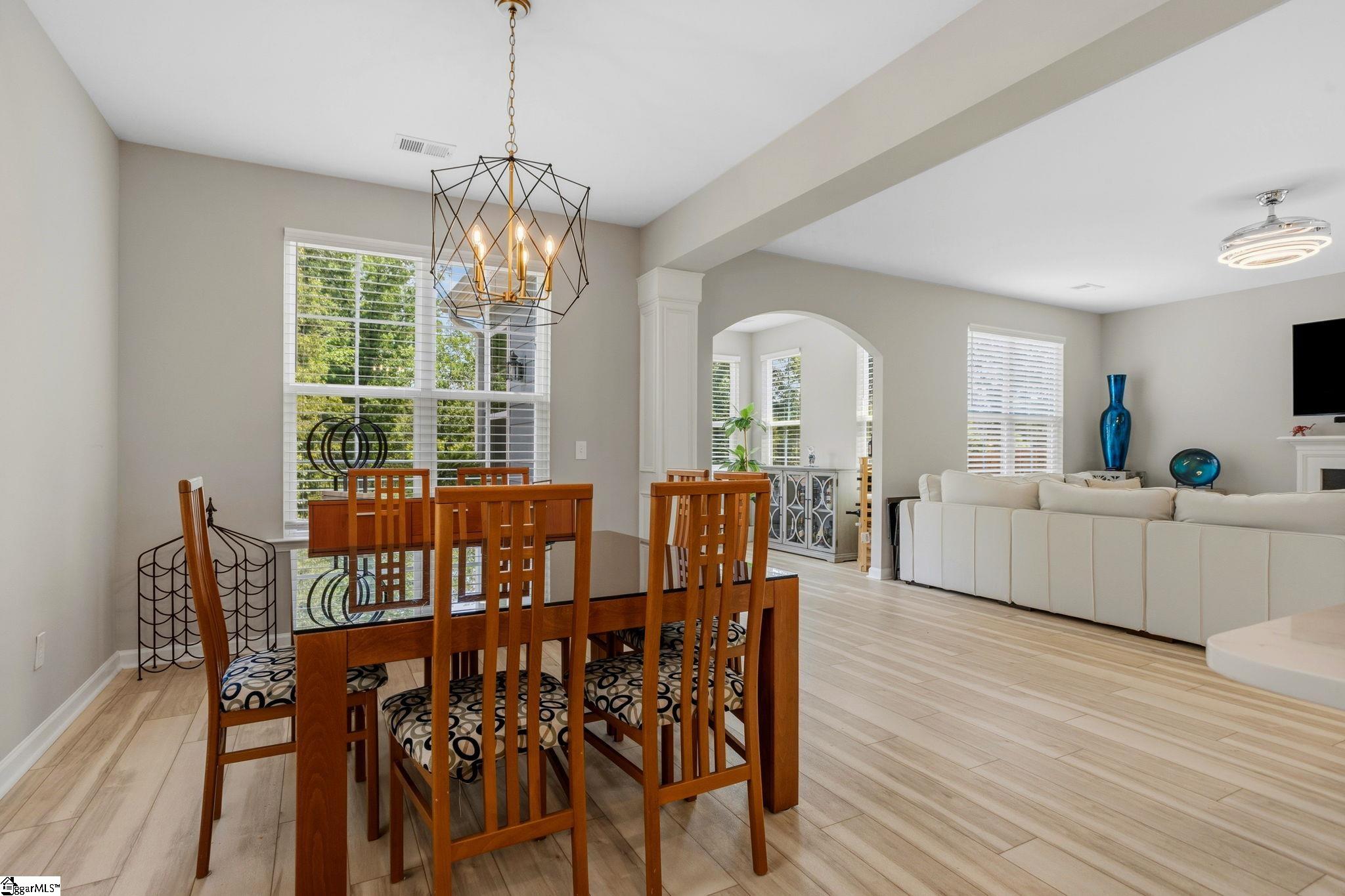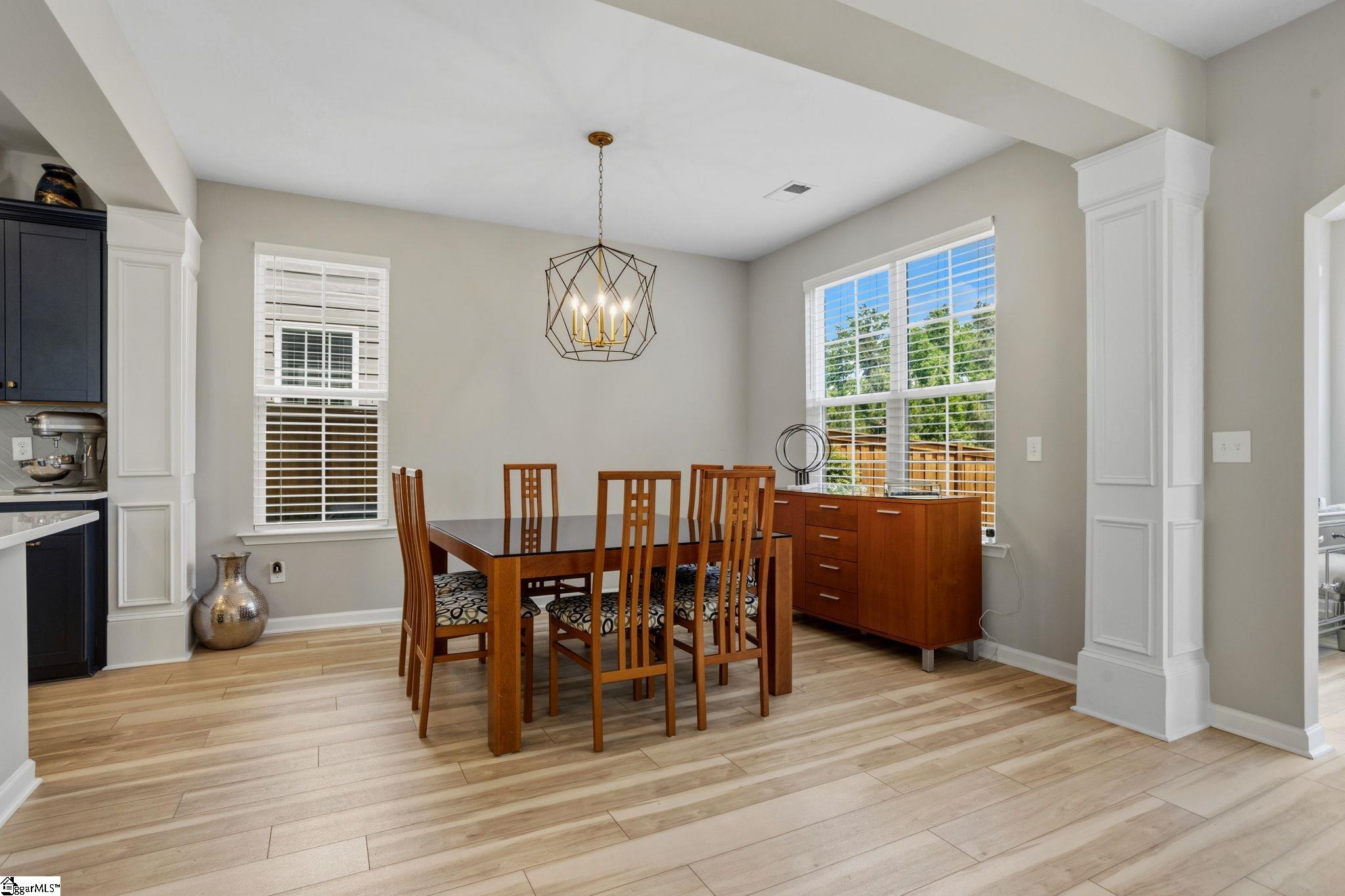 Welcome to 121 Hyssop Court, a beautifully residence in Greenville’s desirable Indigo Pointe community. Offering a thoughtfully designed open-concept layout, this home combines modern elegance with everyday functionality to meet the needs of today’s professional lifestyle. The main level showcases a spacious living area centered around a fireplace, seamlessly connecting to a bright sunroom and a well-appointed kitchen. The kitchen features a large island with bar seating, quartz countertops, premium appliances, and a six-burner gas range, ideal for both everyday use and entertaining. The adjacent dining area offers a natural space for hosting gatherings. A versatile flex room on the main level can serve as a flex space, private office or butler’s pantry, complemented by a convenient half bath and direct access to the garage. Upstairs, the expansive primary suite serves as a private retreat, complete with a sitting area, dual walk-in closets, and a luxurious en-suite bath. Two additional bedrooms, a full bath, a generously sized loft/Bonus room—ideal for a media or secondary living space—and a walk-in laundry room complete the upper level. Additional upgrades include designer lighting and ceiling fans throughout, enhancing the home’s polished aesthetic. The outdoor space features a fenced, private backyard with direct access to the community walking trail, providing both convenience, privacy and walking path to the community pool. Strategically located just minutes from Verdae Boulevard, Woodruff Road, and I-85/385, this home offers exceptional access to Greenville’s premier business districts, shopping, dining, and recreation, including proximity to the Swamp Rabbit Trail and neighborhood amenities. This is an outstanding opportunity for buyers seeking a move-in ready home that balances comfort, style, and location.