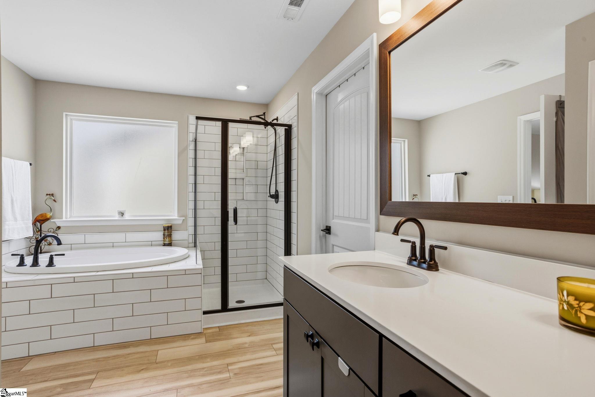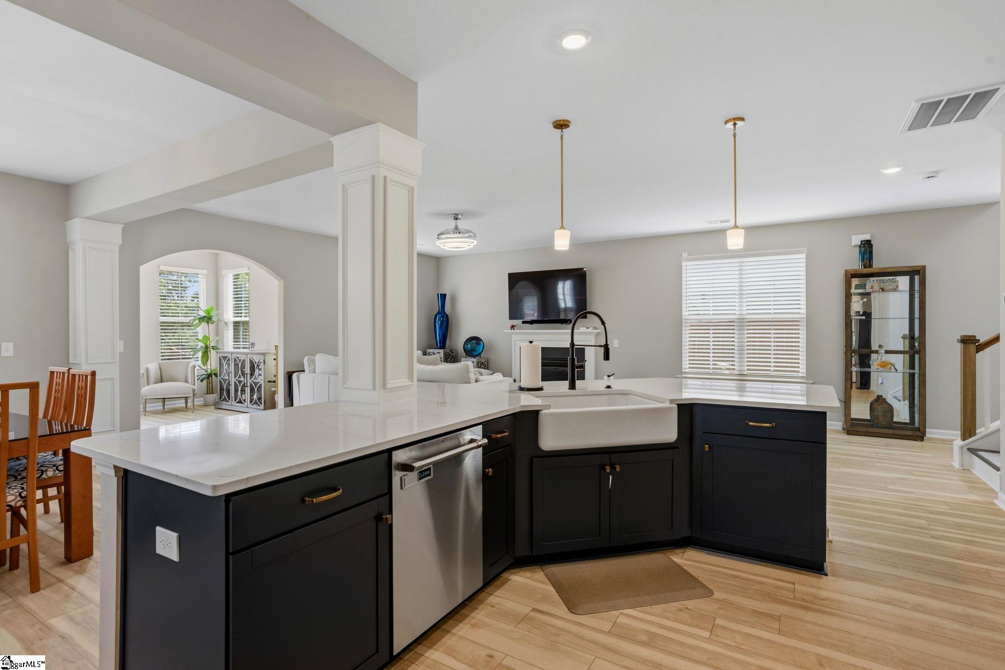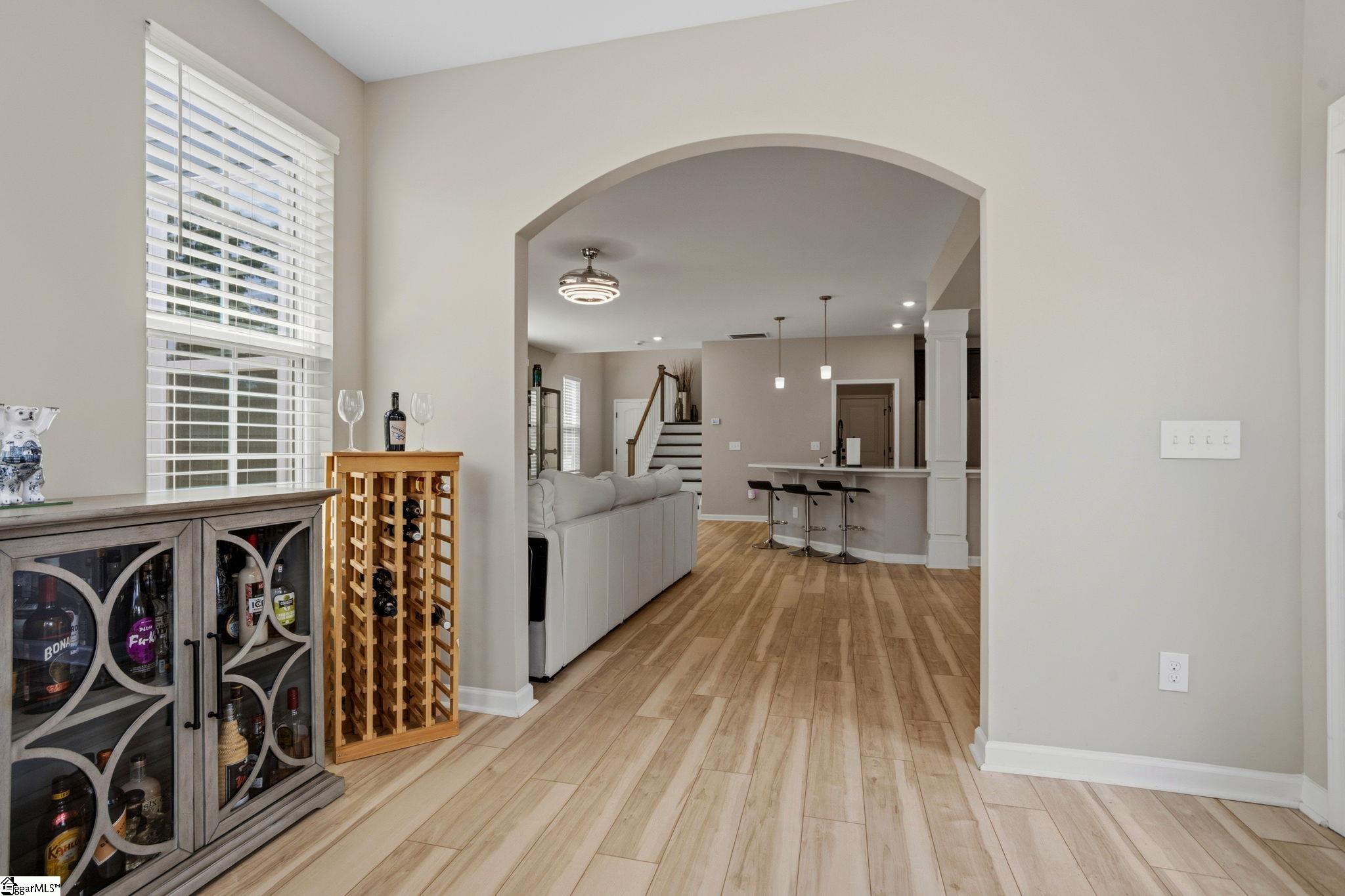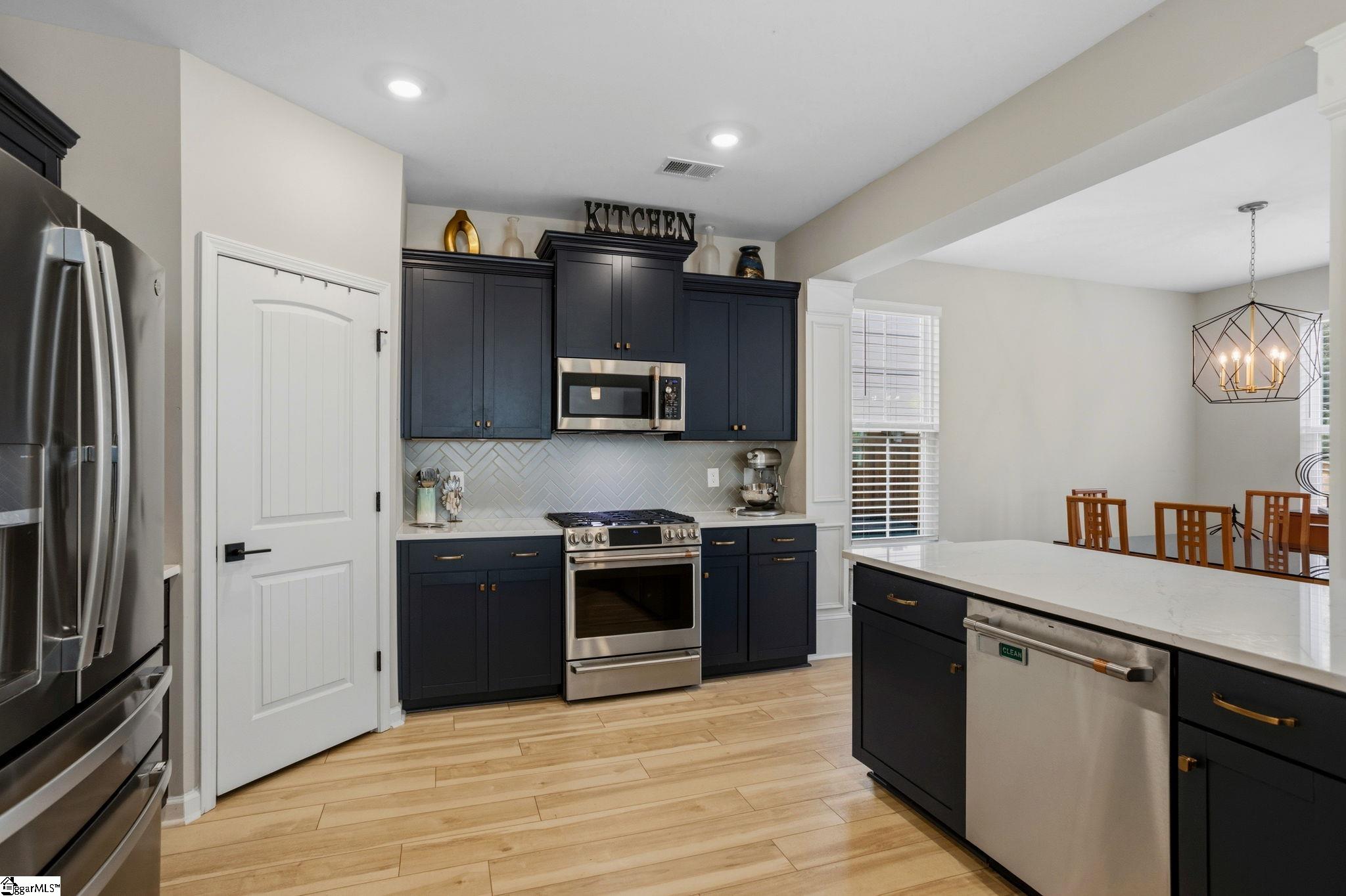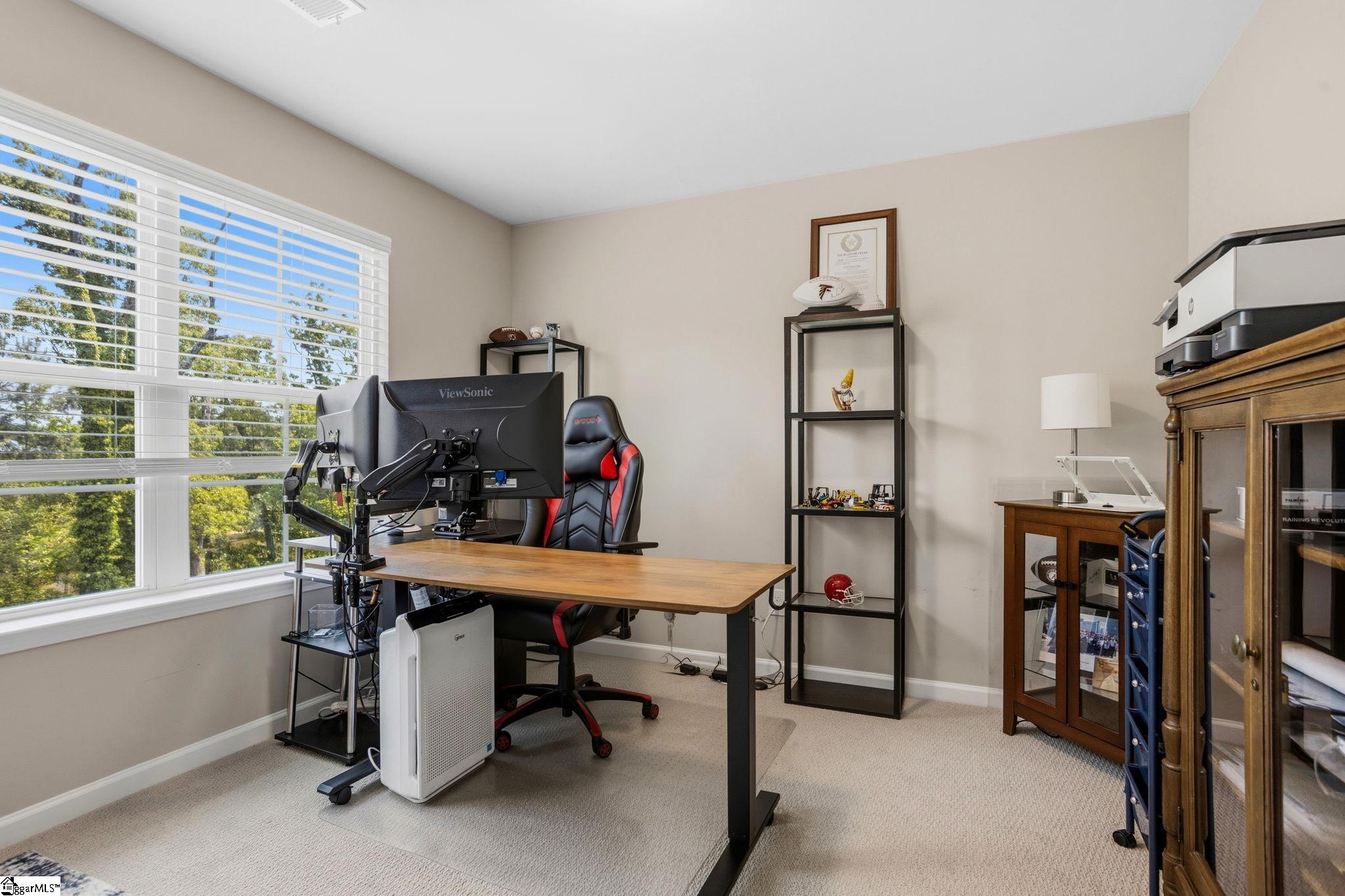 Welcome to 121 Hyssop Court, a beautifully residence in Greenville’s desirable Indigo Pointe community. Offering a thoughtfully designed open-concept layout, this home combines modern elegance with everyday functionality to meet the needs of today’s professional lifestyle. The main level showcases a spacious living area centered around a fireplace, seamlessly connecting to a bright sunroom and a well-appointed kitchen. The kitchen features a large island with bar seating, quartz countertops, premium appliances, and a six-burner gas range, ideal for both everyday use and entertaining. The adjacent dining area offers a natural space for hosting gatherings. A versatile flex room on the main level can serve as a flex space, private office or butler’s pantry, complemented by a convenient half bath and direct access to the garage. Upstairs, the expansive primary suite serves as a private retreat, complete with a sitting area, dual walk-in closets, and a luxurious en-suite bath. Two additional bedrooms, a full bath, a generously sized loft/Bonus room—ideal for a media or secondary living space—and a walk-in laundry room complete the upper level. Additional upgrades include designer lighting and ceiling fans throughout, enhancing the home’s polished aesthetic. The outdoor space features a fenced, private backyard with direct access to the community walking trail, providing both convenience, privacy and walking path to the community pool. Strategically located just minutes from Verdae Boulevard, Woodruff Road, and I-85/385, this home offers exceptional access to Greenville’s premier business districts, shopping, dining, and recreation, including proximity to the Swamp Rabbit Trail and neighborhood amenities. This is an outstanding opportunity for buyers seeking a move-in ready home that balances comfort, style, and location.