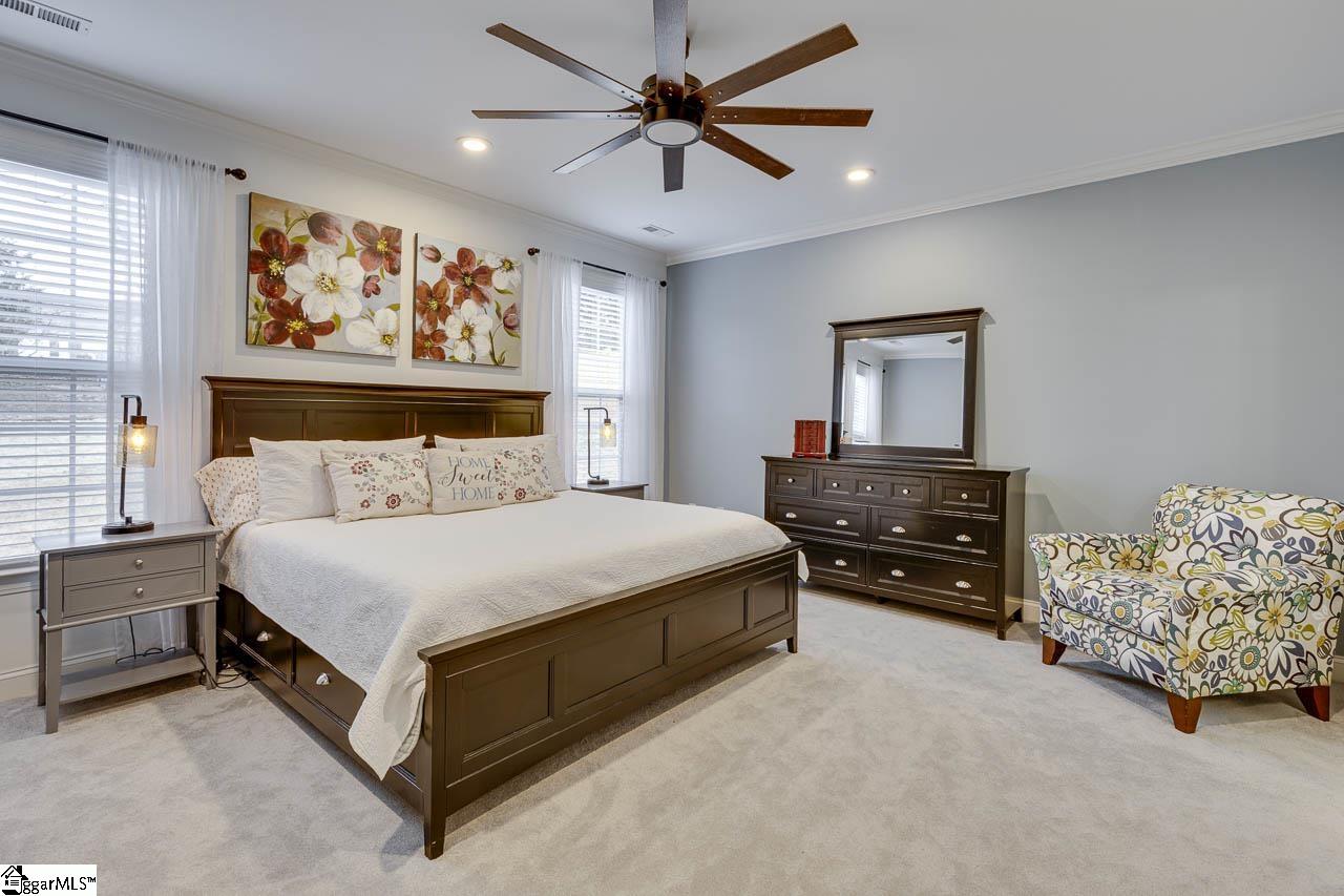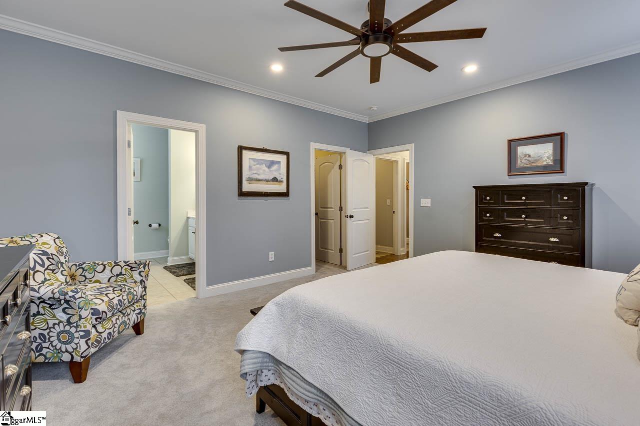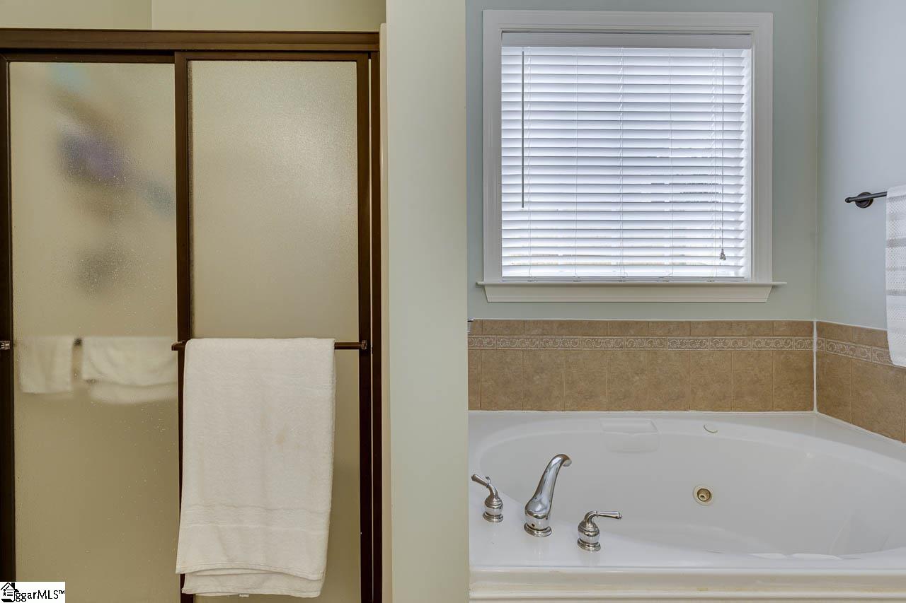 Welcome to this beautifully maintained home in the desirable Blue Ridge Plantation community in Taylors. Spacious 4-bedroom, 3.5-bath home offers an ideal layout with the primary suite conveniently located on the main level. Step inside to a dramatic two-story entry and living room featuring a stunning two-sided gas log fireplace that creates warmth and character between the living and dining rooms. The freshly painted interior and newly painted kitchen cabinets give the home a bright, refreshed feel, while granite countertops add timeless appeal to the kitchen. A large island for entertaining has been added, newer stainless steel appliances, subway tile backsplash, and a walk-in pantry. Upstairs, you’ll find a private guest suite with its own en-suite bath, two additional bedrooms, a full hall bath, and a versatile bonus room perfect for a media room, playroom, or home office. Outdoor living truly shines with a 40×16 rear patio designed for entertaining—complete with a covered pergola, dedicated grilling space, and hot tub area—all surrounded by new privacy fencing. A 2.5-car garage provides extra storage and functionality. This home blends space, style, and outdoor enjoyment in one exceptional package—don’t miss your opportunity to make it yours!