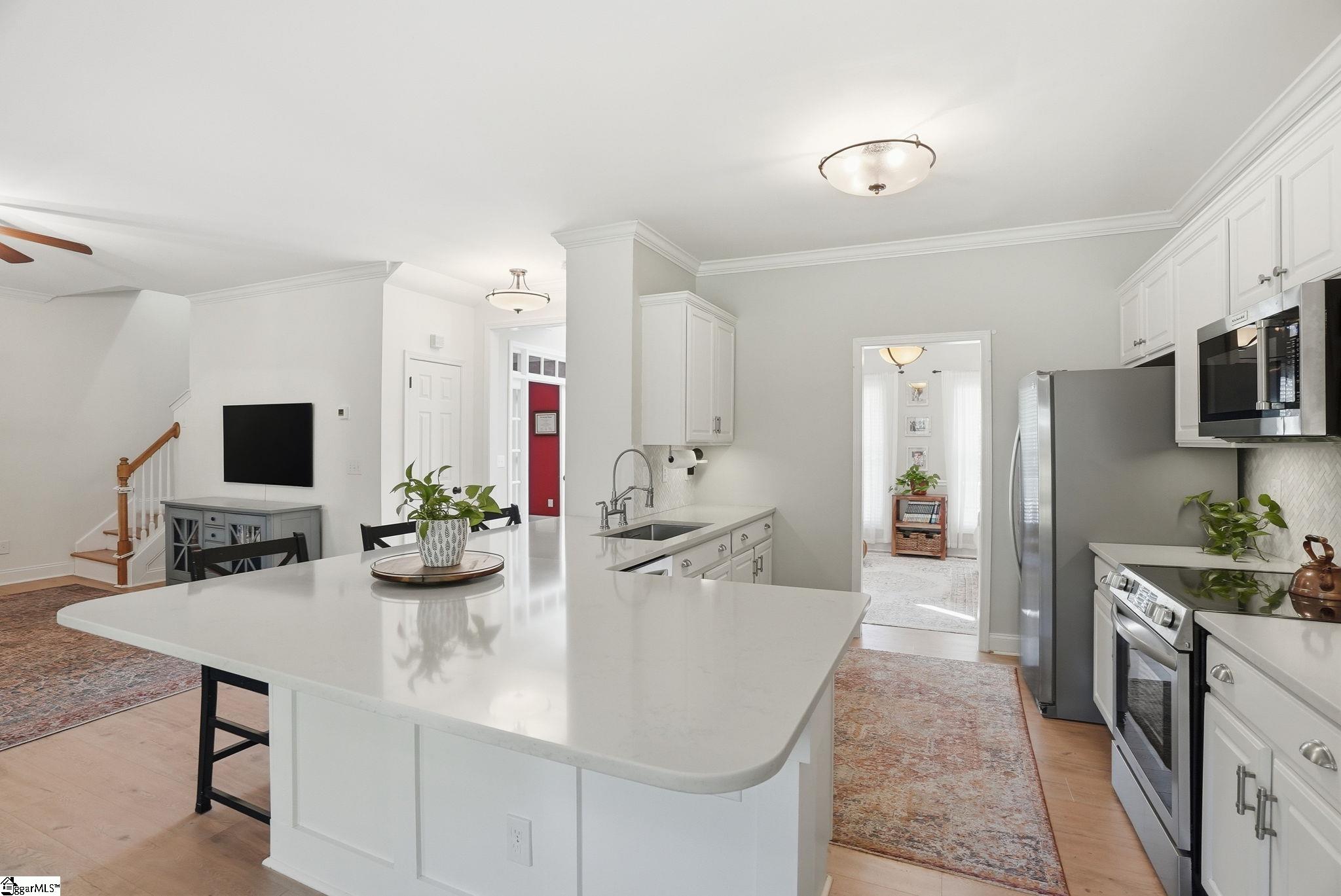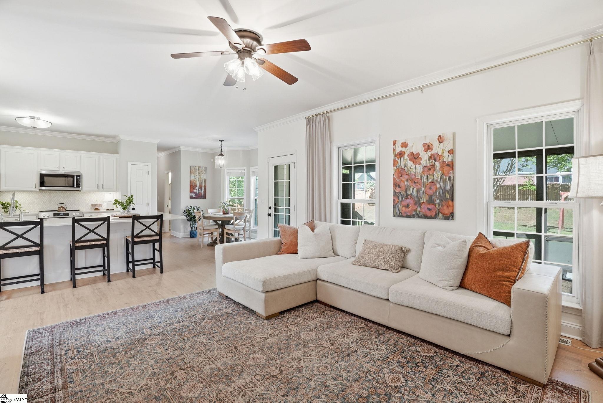 Immediately upon entering this home you will notice how warm and welcoming it feels. A front porch beckons you to set up some rocking chairs and enjoy your morning coffee. Beautiful LVP flooring flows throughout the main floor. The updated kitchen will wow you with quartz countertops, herringbone tile backsplash and modern stainless steel appliances. Off of the kitchen is a breakfast nook with bay window overlooking the backyard. Entertaining is easy with a seamless flow from the kitchen to the living room. The main level also offers an office with french doors and a formal dining room (currently being used as a sitting room). This floorplan offers flexibility for today’s family lifestyle, whether you need a home office, playroom or home school space. Entering the primary suite, the tray ceiling adds a luxurious feel. The primary bathroom has double sinks, a jetted tub and separate shower. Four additional bedrooms offer plenty of space for family and visitors. Head out to the backyard where you can relax on the screened-in porch with Eze-Breeze windows for year-round comfort. The large fenced-in backyard is ideal for kids, pets or the avid gardener. Enjoy the convenience of a storage shed for your outdoor toys and tools. This home offers peace of mind with a new roof and fence (2025), a newer tankless water heater with comfort system (2021), newer downstairs HVAC (2021) and a termite bond. Located just minutes from Five Forks and close to Bridgeway Station, downtown Simpsonville, a library, YMCA, restaurants, Publix, Lowe’s Foods and more. Summerwalk has amenities including a pool, playground and active swim team.