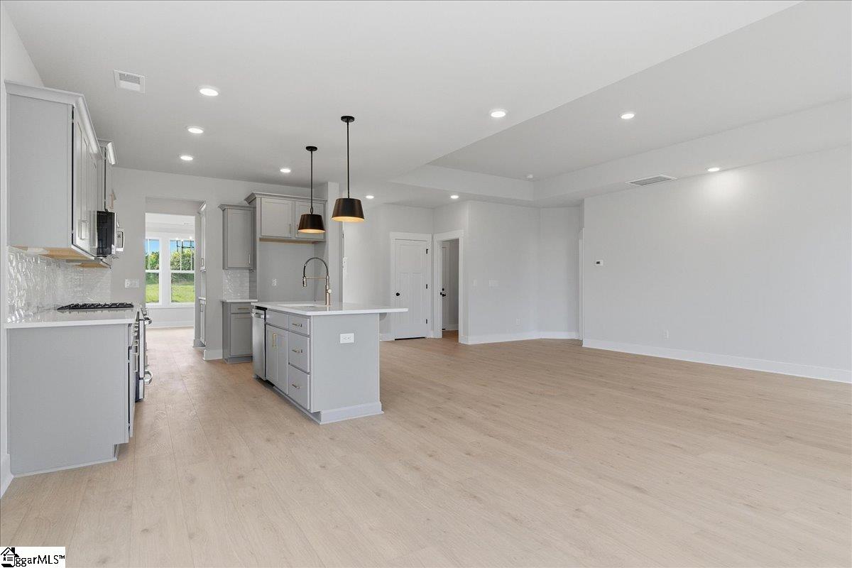 Home is Move in Ready! Welcome to Foxbank! The only award-winning homes in Gray Court, SC with personalization from the 200s. The Middleton Design offers craftsman-style architecture at its finest with large windows allowing the sun to glisten throughout the home. When you enter your home you will be greeted by the 2 story foyer and adjacent dining room which leads into your butlers pantry for extra storage space. Continuing into your open kitchen and living room, you will be wowed by the beautiful light grey cabinetry, white Quartz countertops, tiled backsplash, center island with sink for additional prep space and seating, under cabinet lighting, and upgraded stainless steel gas appliances. The high ceilings and tall windows in the living room give the area lots of natural light along with a cozy gas fireplace with stone surround.The breakfast room leads out to the covered back porch which overlooks your large backyard. The Primary Suite is situated on the main level and features an expansive walk in closet, double vanities and amazing Roman tiled shower with dual showerheads, seat and frameless glass door. As you go up the Oak staircase off the foyer, you have three additional bedrooms, one with an en suite bath, an additional hall bath with double sinks and a large multi use room that is perfect for a game room or even a home office. Home also includes underground irrigation. Smart home technology, energy-efficient construction, and a dedicated local warranty team ensure lasting convenience and comfort. Foxbank is conveniently located to I-385 with easy access to I-26, allowing for easy travel to nearby areas such as Greenville just 30 minutes away. Gray Court blends peaceful, surroundings with everyday convenience, minutes from shopping, dining, and major employers. It’s a place where life moves at a comfortable pace, yet everything you need is within easy reach. Nearby, enjoy the quickly growing Downtown Fountain Inn area, boasting new restaurants, shopping, and activities! Plus, Foxbank is just 8 miles from the nearest Swamp Rabbit Trail Head in Fountain Inn. Connecting you to the entirety of the Upstate! Come by today for your personal tour and make Foxbank your new home. See Sales Agent for additional pricing information.