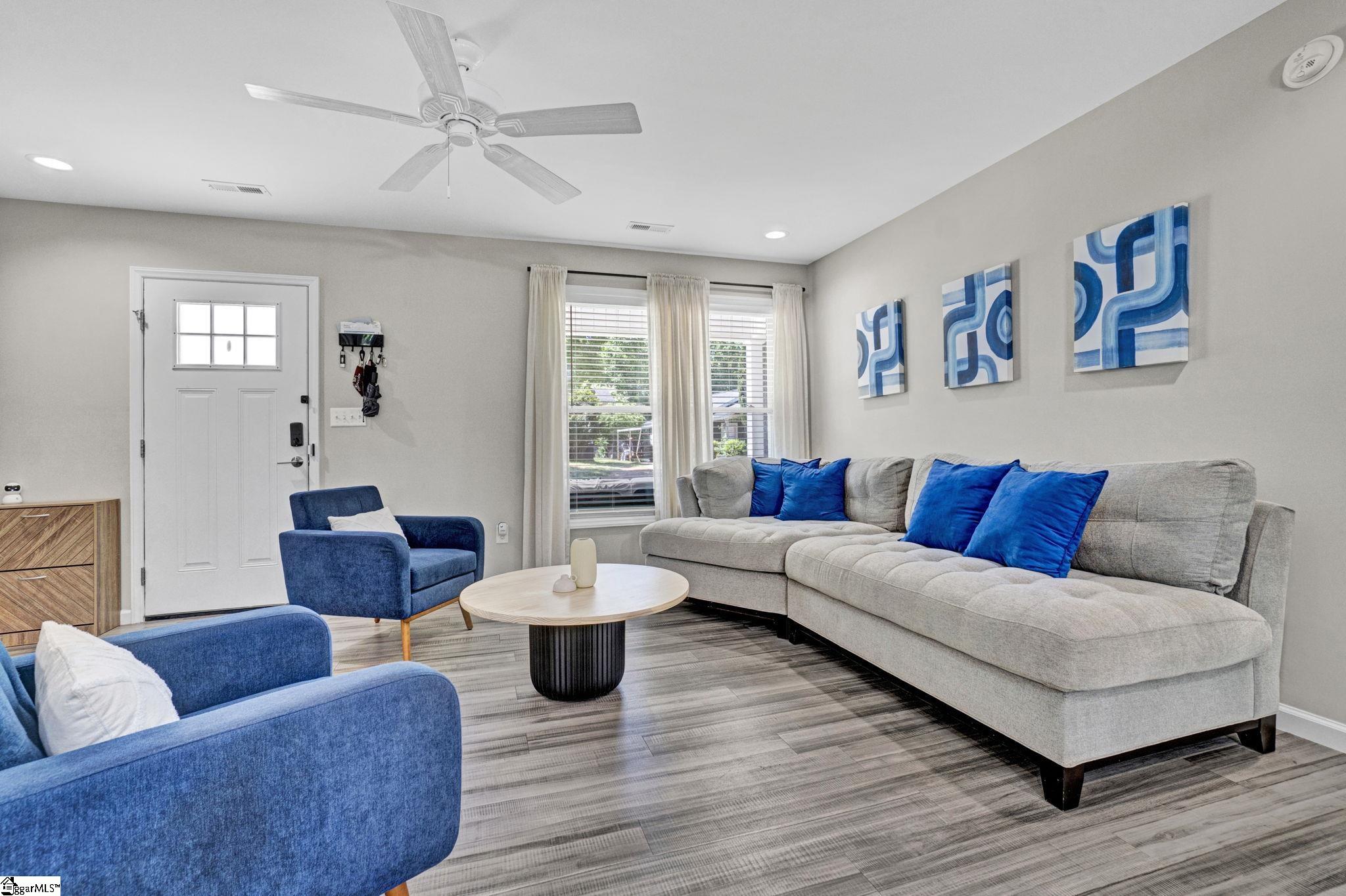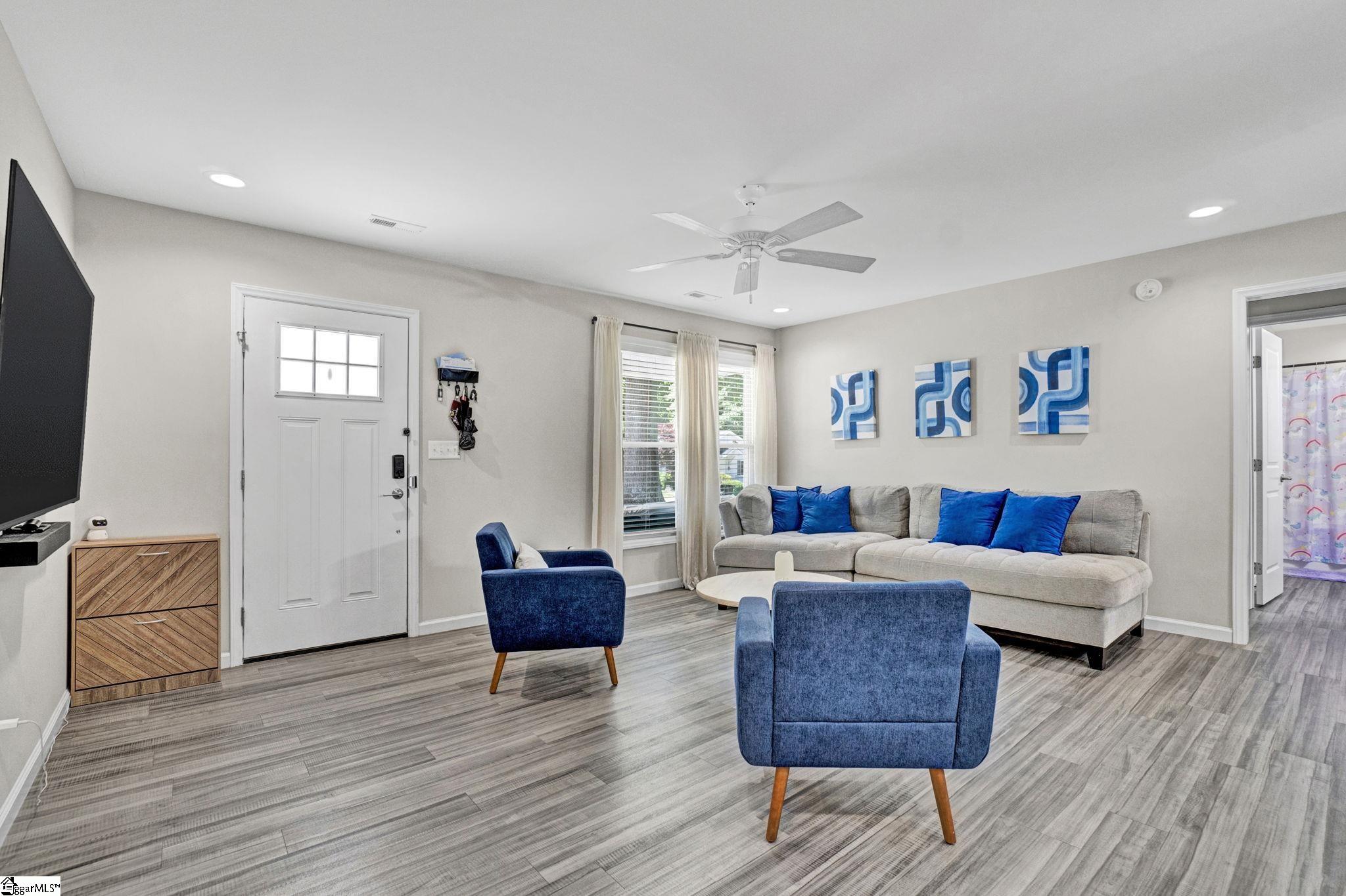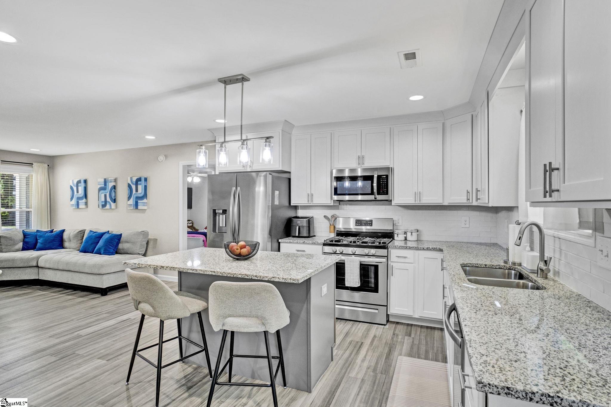 Welcome home to this stunning newer construction single family residence in the heart of Easley, SC, ideally located just 5 minutes from downtown and all the shopping, dining, and charm the area has to offer. Built in 2024, this beautifully designed home offers the perfect blend of modern style, comfort, and convenience. Step inside to discover luxury style appliances, upscale finishes, and elegant flooring throughout, creating a refined yet welcoming atmosphere. Every detail has been thoughtfully curated, including a beautiful newly added backsplash that elevates the kitchen with a custom touch. Outside, enjoy a spacious fenced in backyard, perfect for pets, entertaining, or simply relaxing in your own private outdoor retreat. The seller has also added an extra storage building in the backyard, providing excellent space for tools, hobbies, or seasonal storage. An expanded driveway offers additional parking, adding both functionality and convenience for guests and multiple vehicles. This nearly new home is truly move in ready and offers the rare opportunity to enjoy modern construction with thoughtful upgrades already in place.