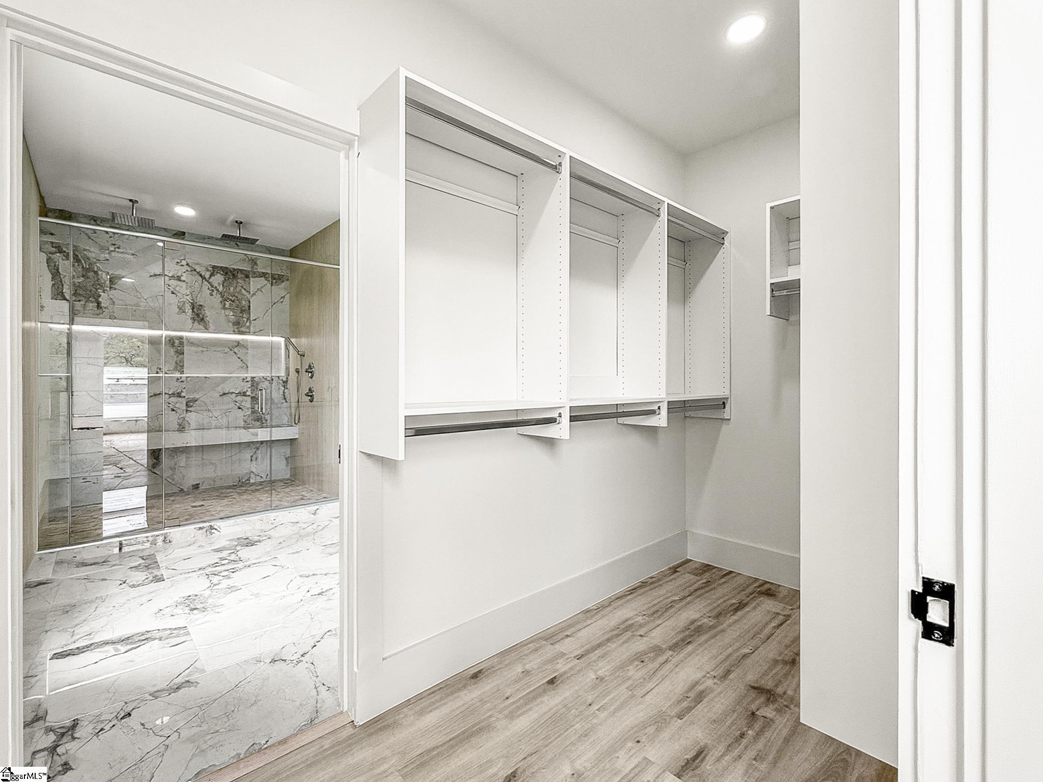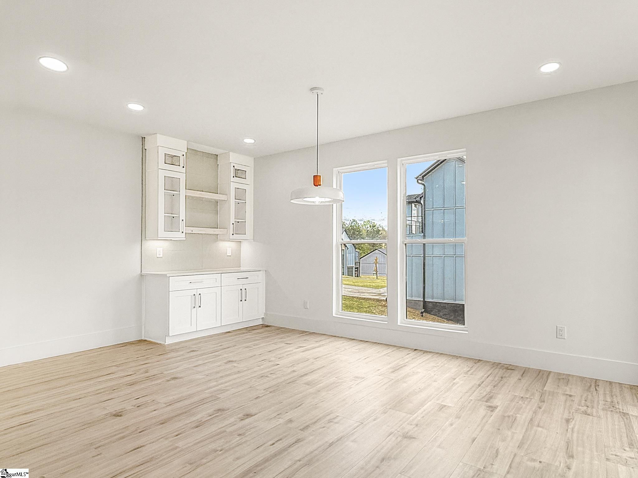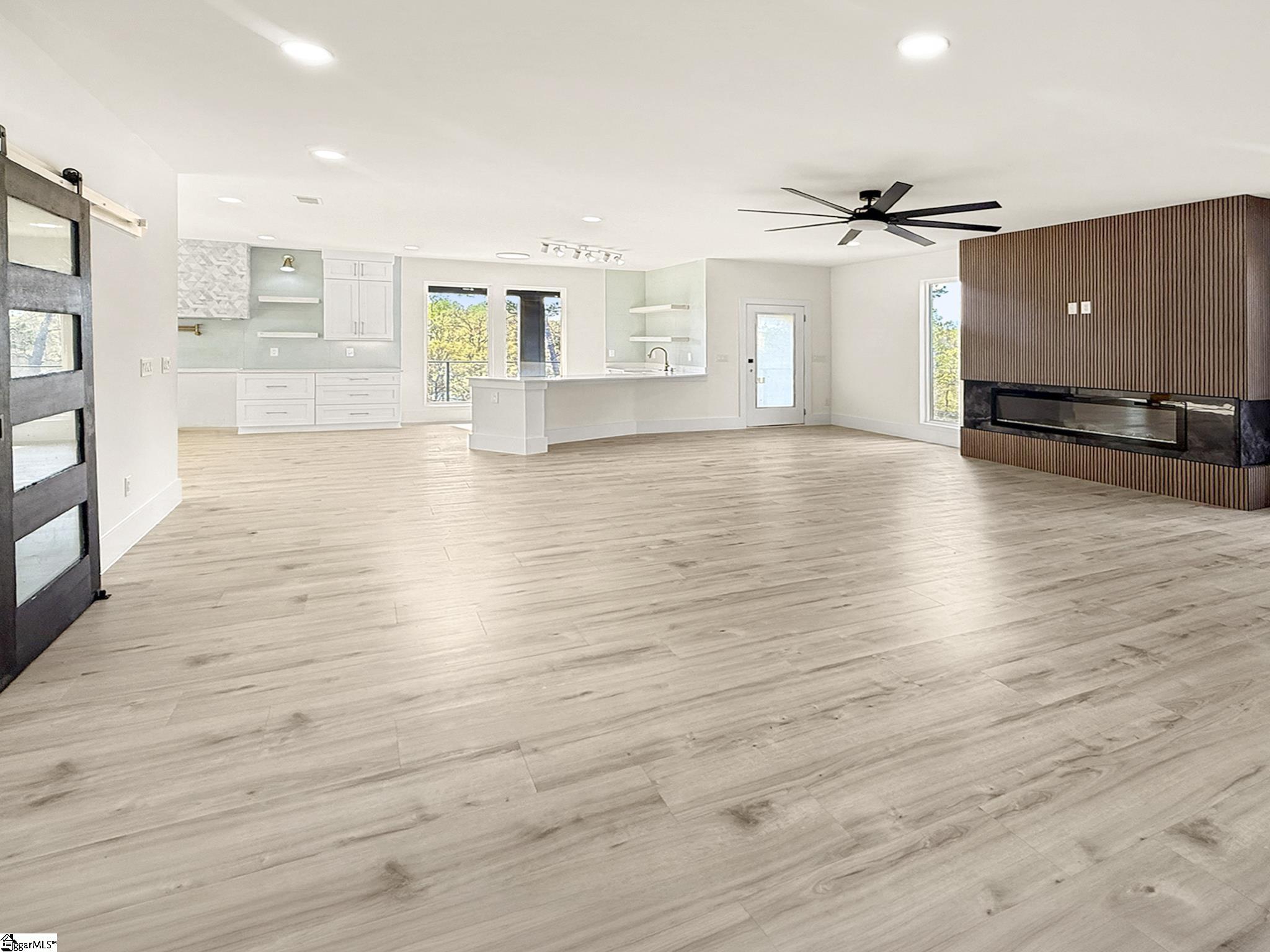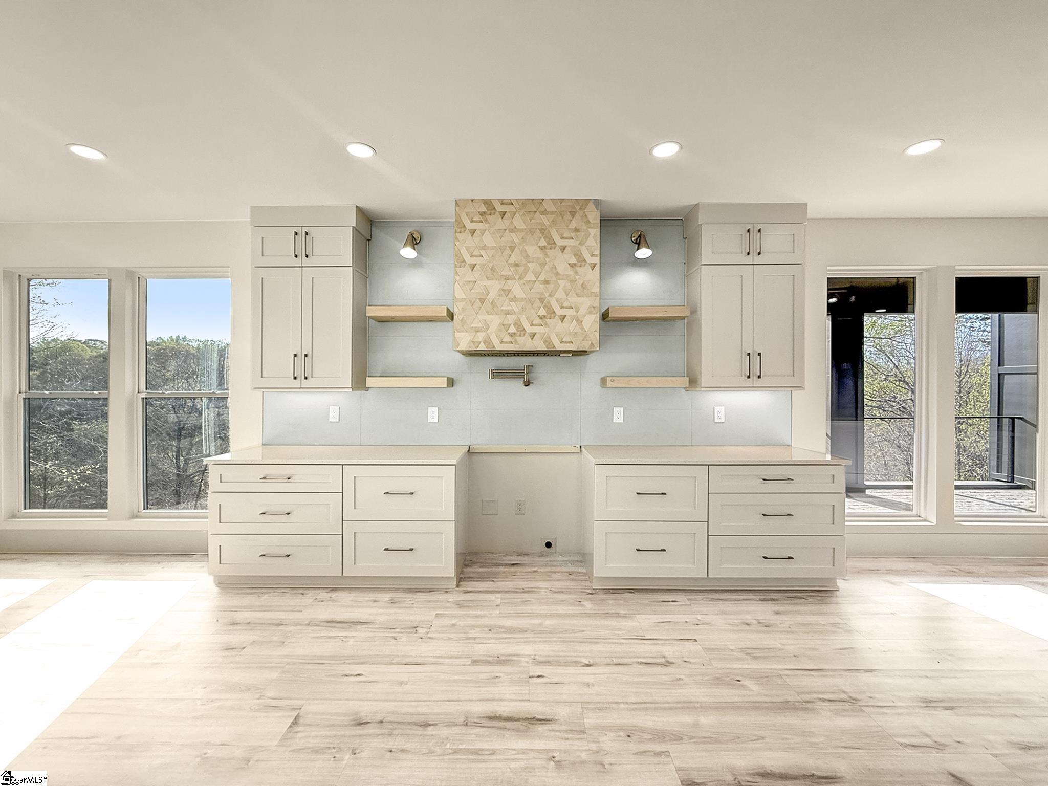 Modern design meets natural beauty in this architecturally striking home offering nearly 3,000 square feet of thoughtfully designed living space. This custom-built residence features an open-concept layout with soaring ceilings, oversized windows, and a statement fireplace wall that anchors the main living area. Natural light fills the space, creating a bright yet warm atmosphere throughout. The kitchen is designed with intention, featuring a unique layout that separates prep, cooking, and gathering zones, centered around a large island that functions as both workspace and social hub. The primary suite offers a spa-inspired bathroom complete with a walk-in shower and custom closet. Additional flexible spaces include an upstairs loft/reading nook and well-appointed secondary bedrooms. Enjoy outdoor living with a covered back porch and patio overlooking peaceful wooded surroundings with nearby water access and views. Conveniently located just 8 minutes from Unity Park and 13 minutes to Downtown Greenville, providing quick access to dining, shopping, and entertainment while maintaining a more private setting. Appliance package (range, dishwasher, microwave, refrigerator) to be installed prior to closing.