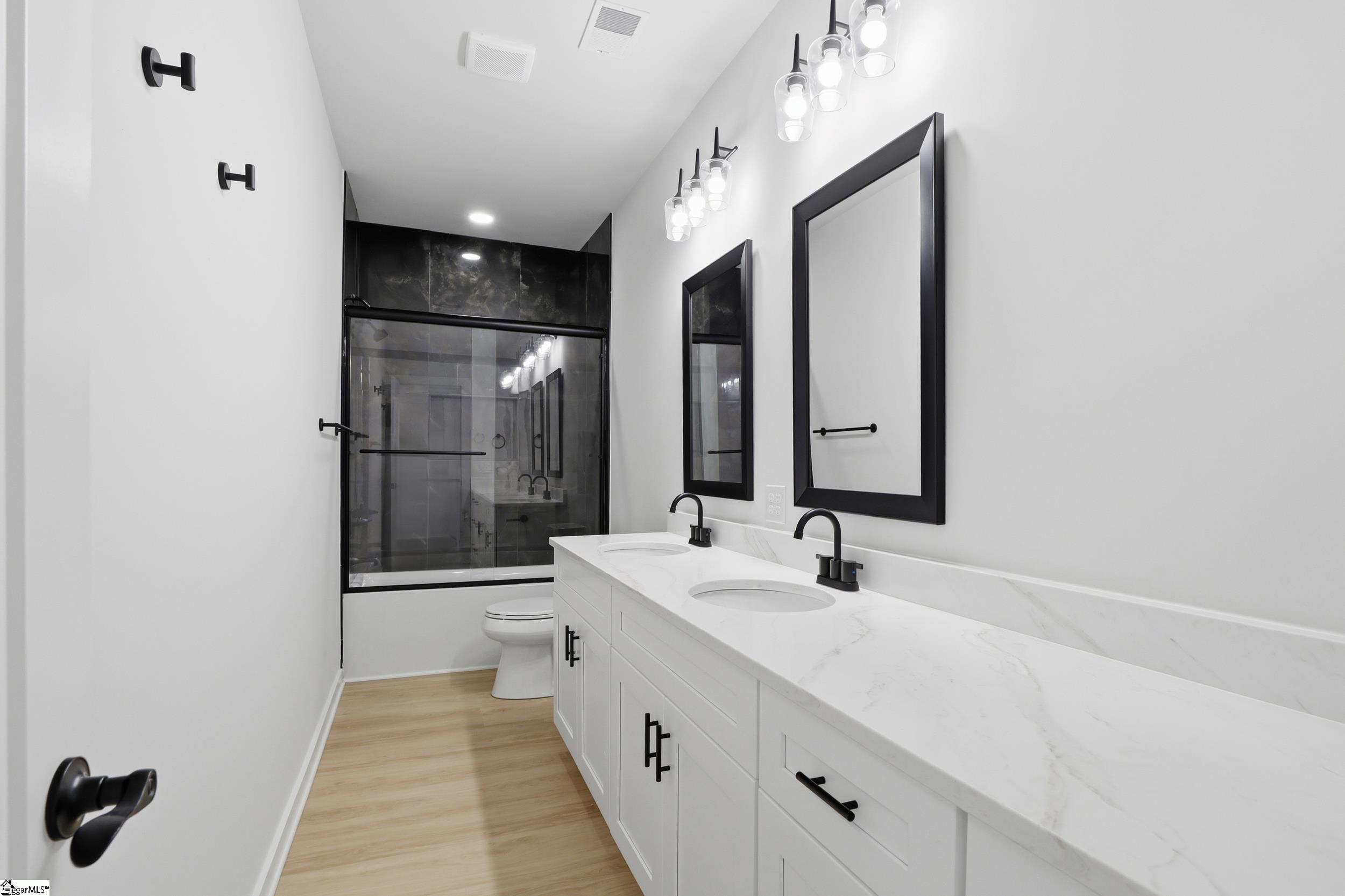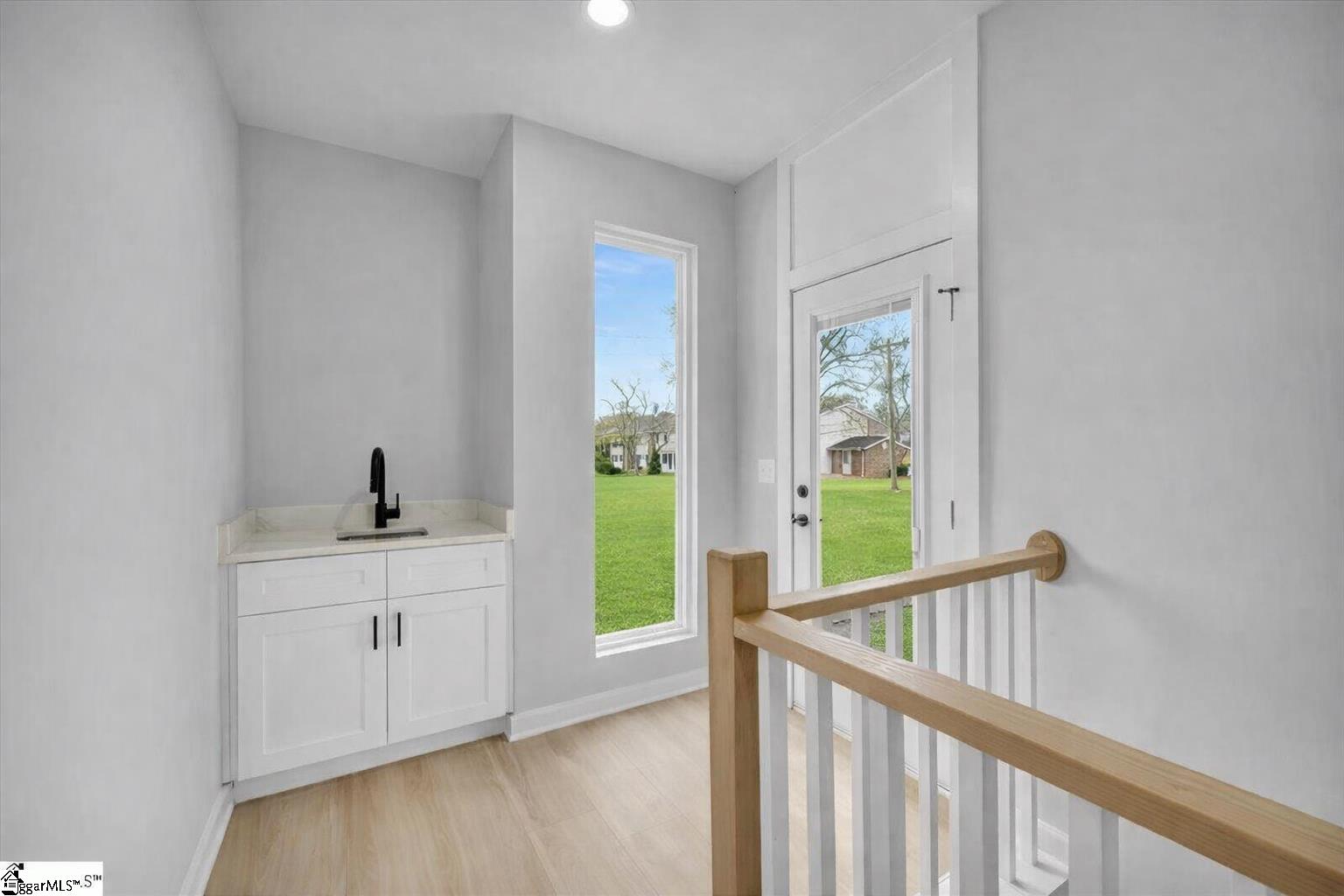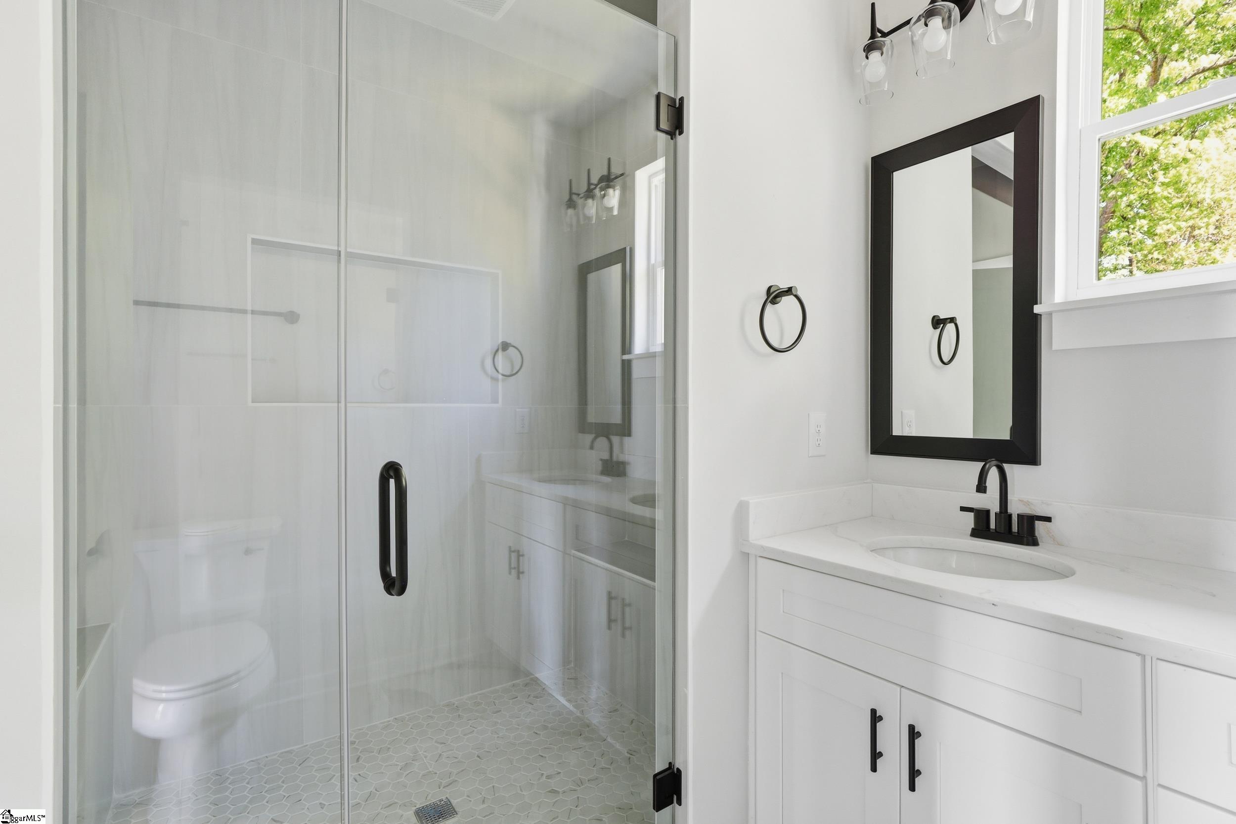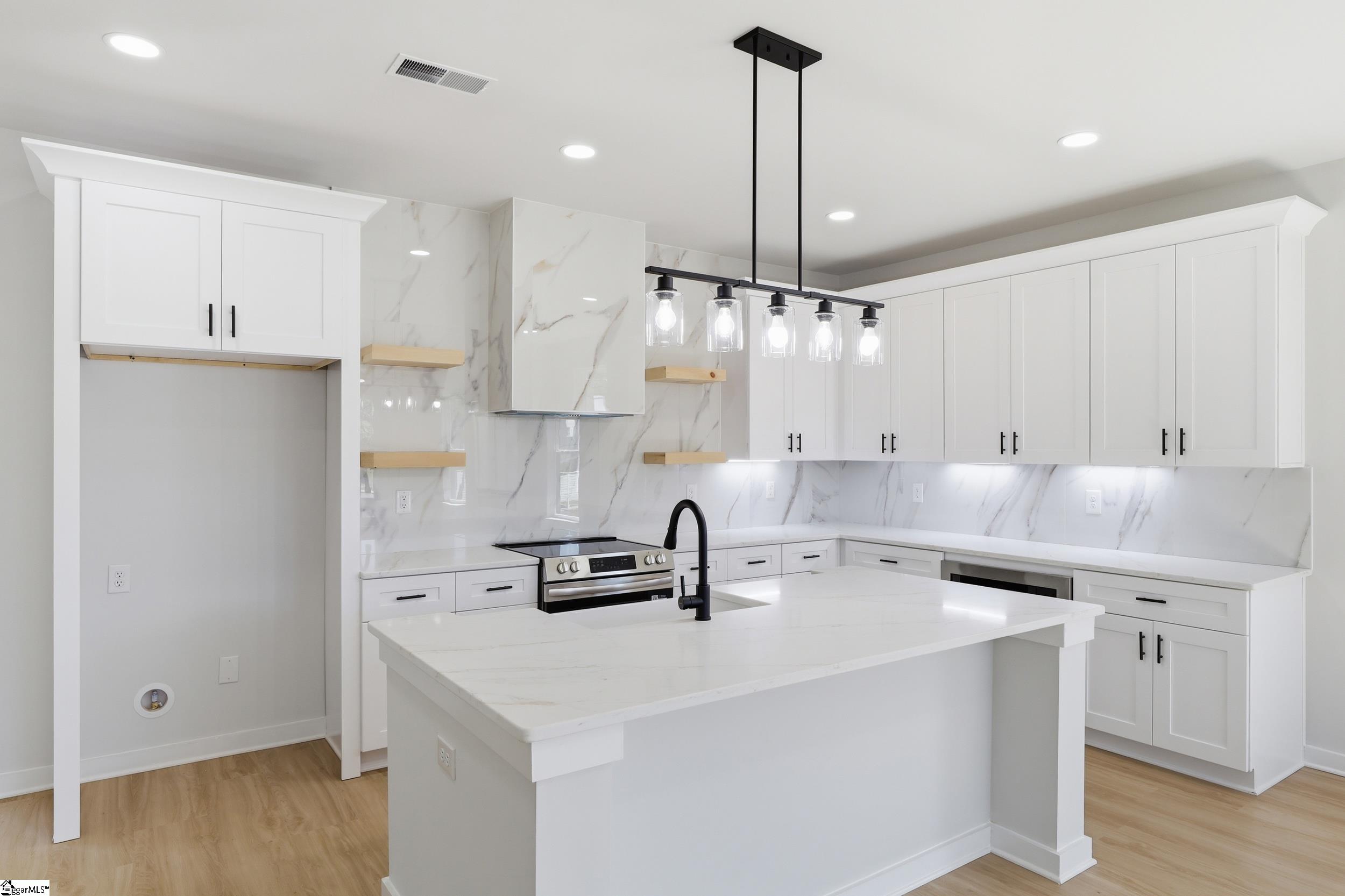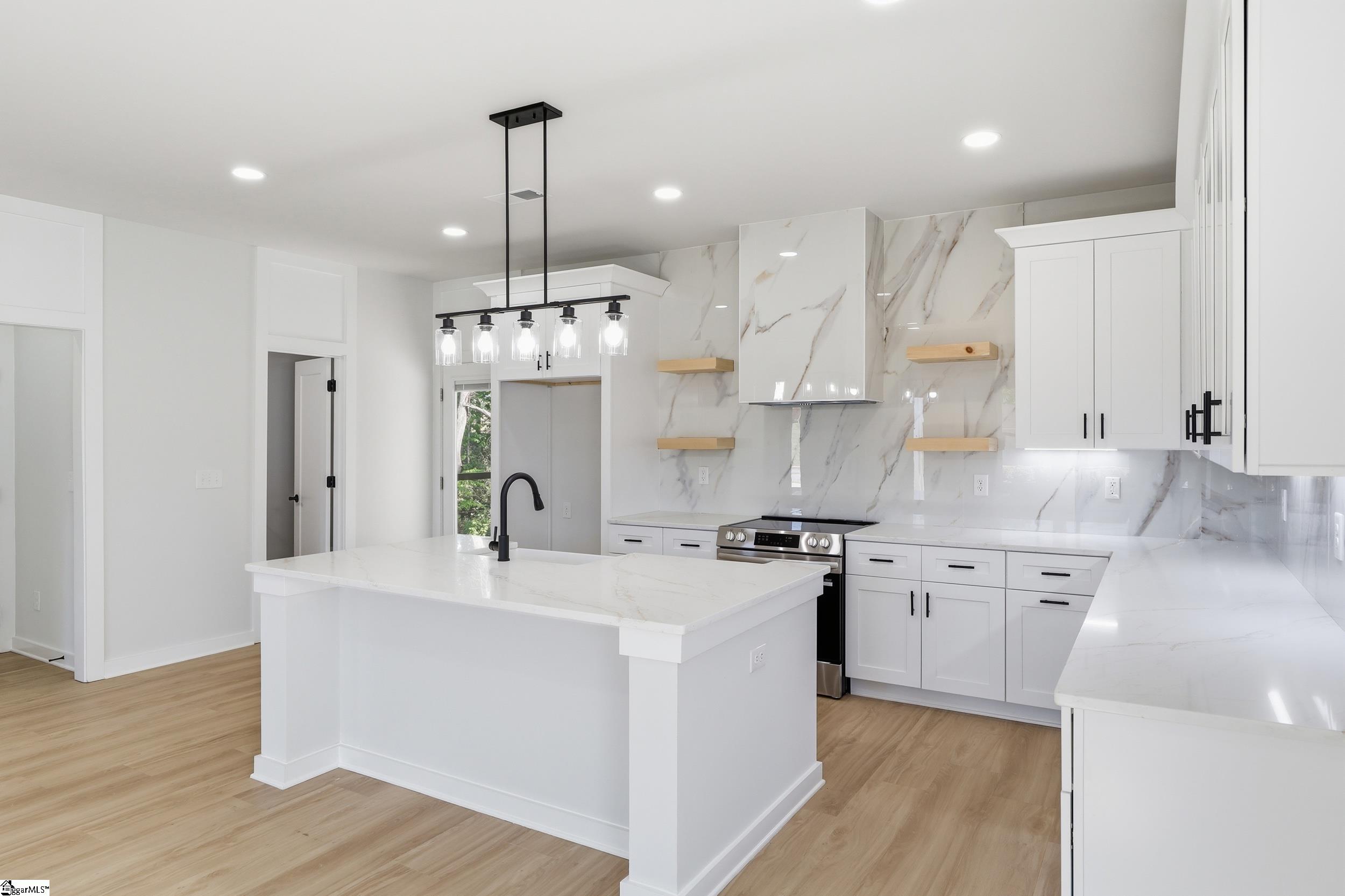 Perfectly positioned between Greenville and Spartanburg, 124 Lyman Avenue offers a rare blend of refined living and everyday convenience—without the congestion. Nestled on a quiet street within walking distance to local schools and just minutes from I-85, Greenville-Spartanburg International Airport, and Downtown Greer, this home delivers both accessibility and privacy. Step inside to discover nearly 2,000 square feet of thoughtfully designed living space, where modern elegance meets effortless comfort. The heart of the home is a beautifully appointed kitchen featuring sleek quartz countertops, a full-height designer tile backsplash, and ample space for both everyday living and entertaining. Wide-plank luxury vinyl flooring flows seamlessly throughout, complemented by tile in all baths for a polished, cohesive aesthetic. Upstairs, the owner’s suite is a true retreat—complete with a private balcony, spacious walk-in closet, and a spa-inspired bath showcasing dual vanities and a stunning tiled rainfall shower. Just beyond, a stylish upstairs landing with a built-in wet bar creates the perfect transition to the balcony—ideal for morning coffee or evening cocktails. Two additional bedrooms and a well-appointed full bath provide flexibility for guests, family, or a home office. Outdoor living is equally impressive, with an expansive covered back porch designed for year-round enjoyment. Built with energy-efficient Low-E windows and durable concrete plank siding, this home offers both beauty and long-term peace of mind. A one-car garage adds everyday convenience to this exceptional property.