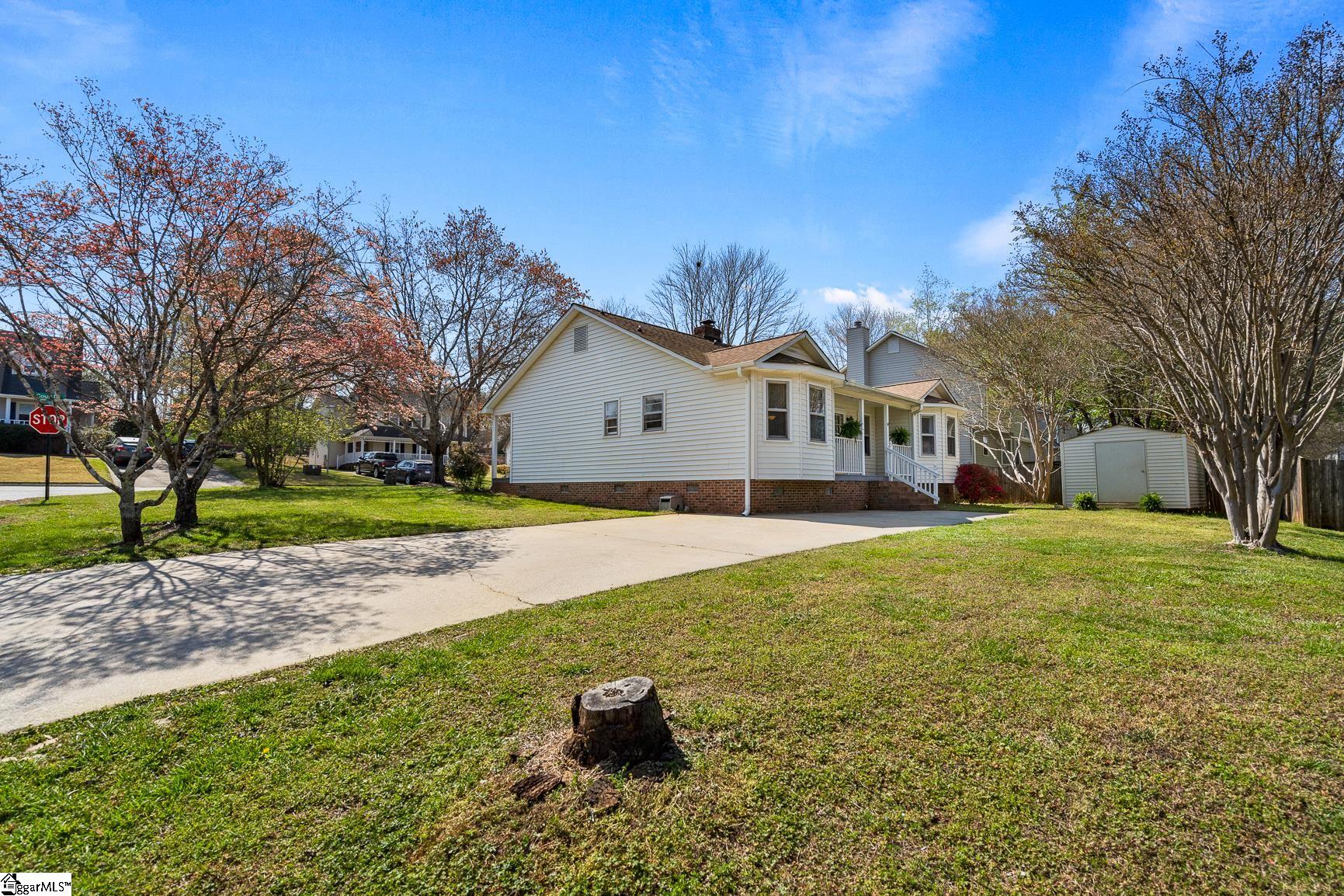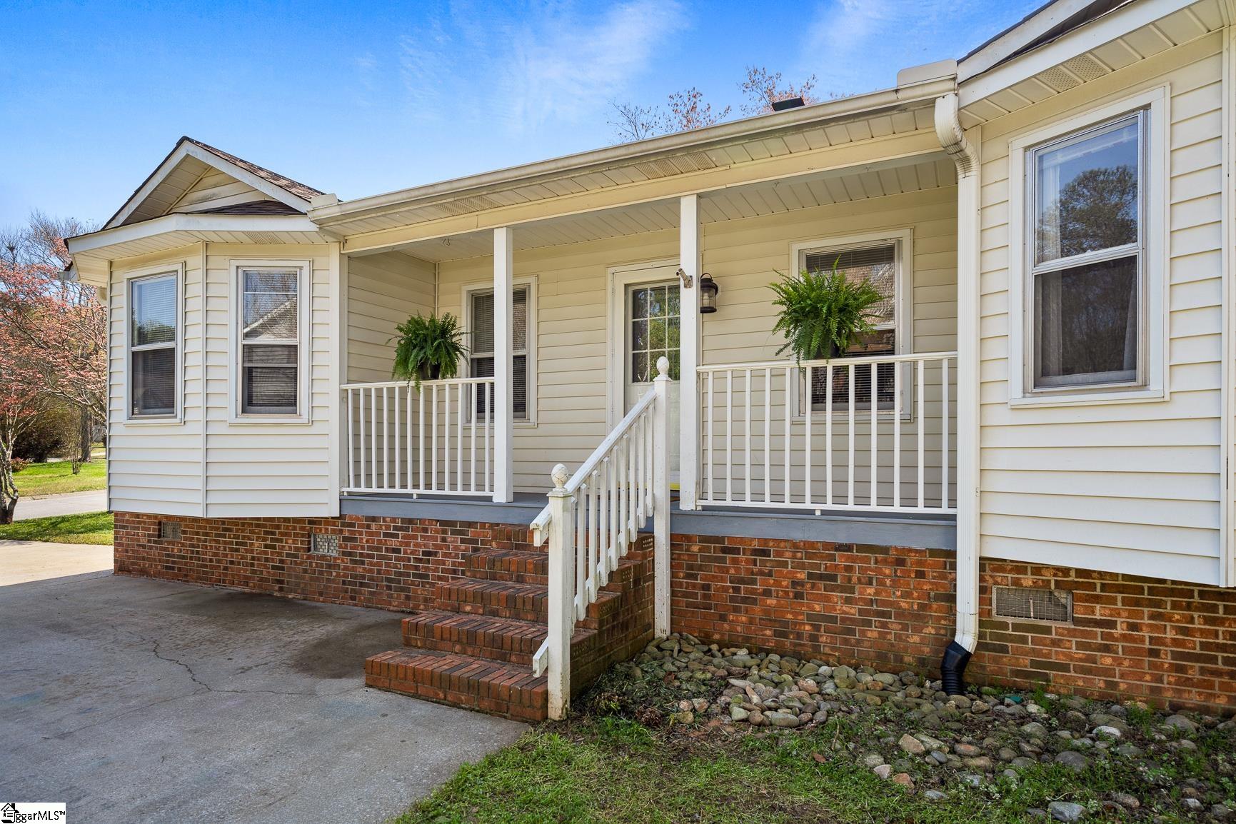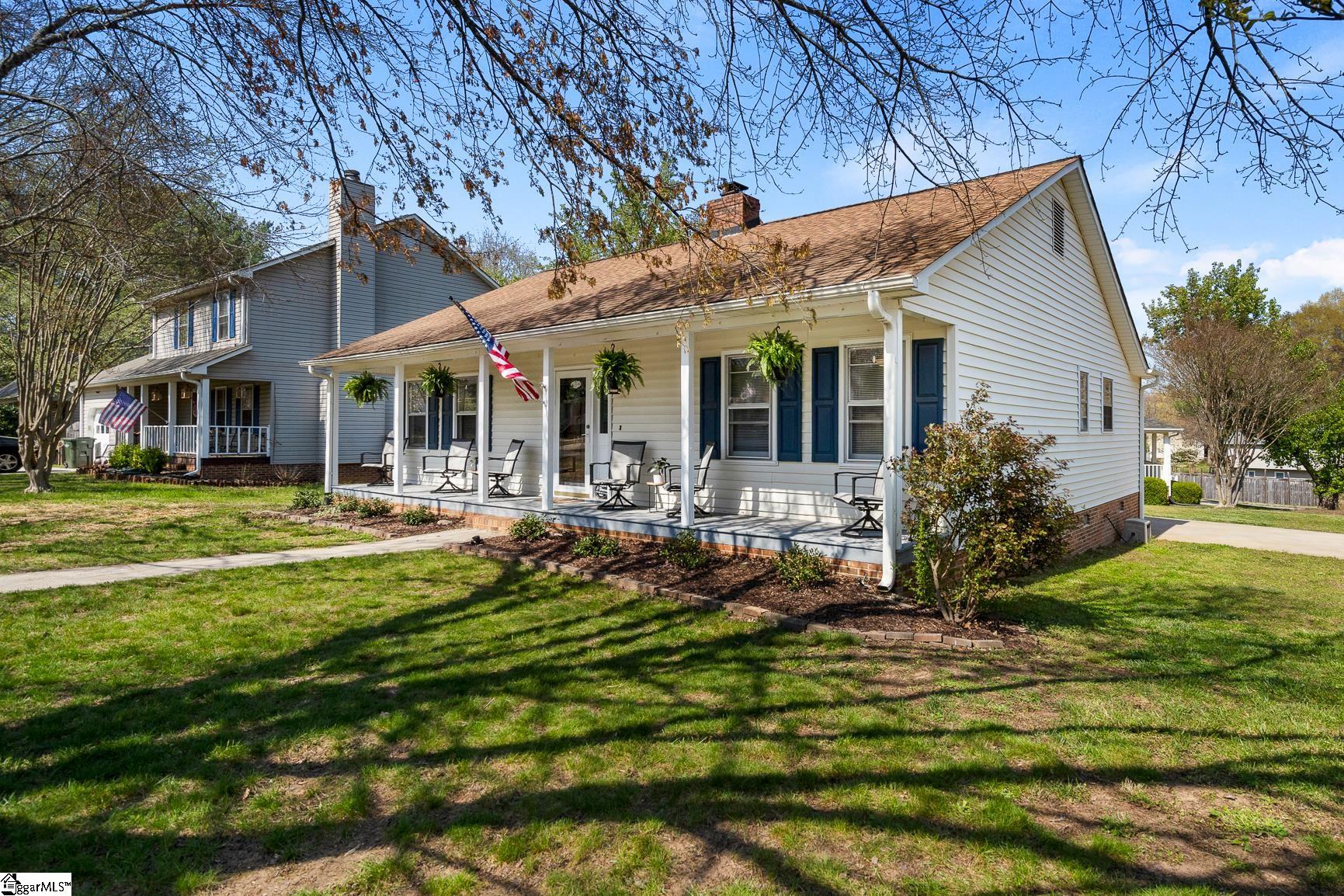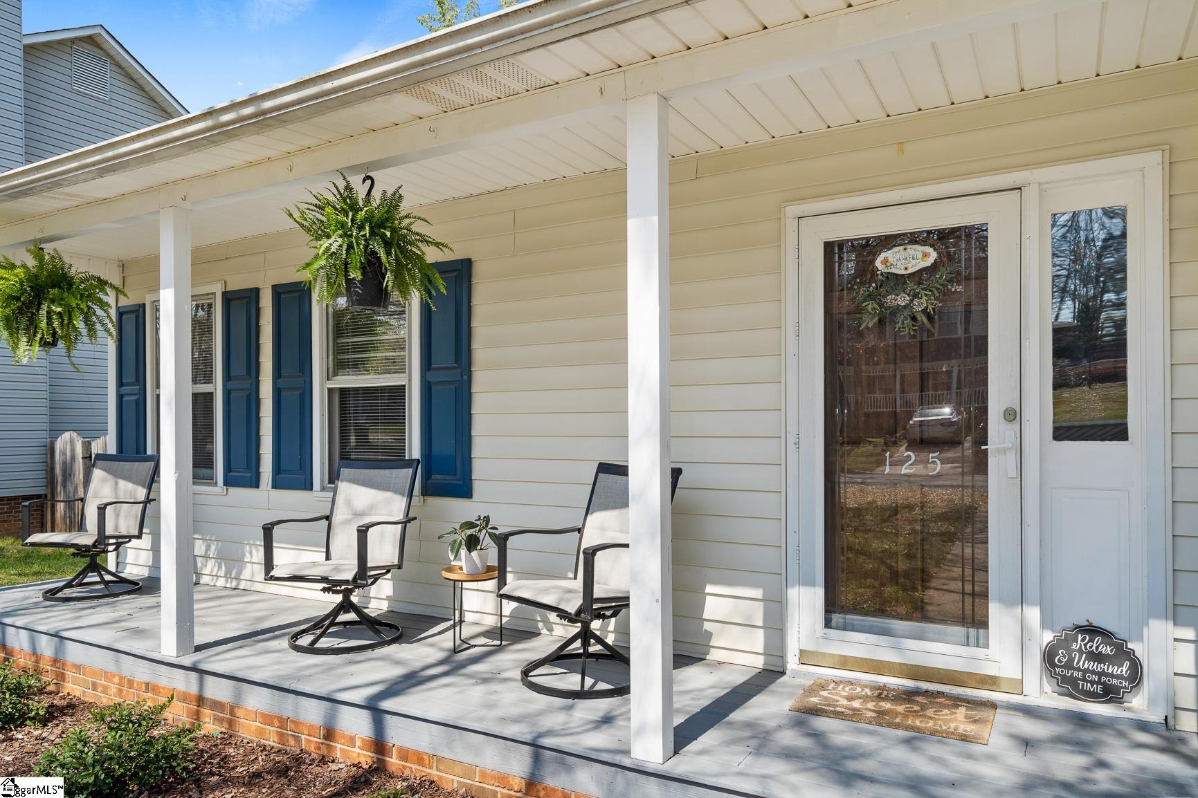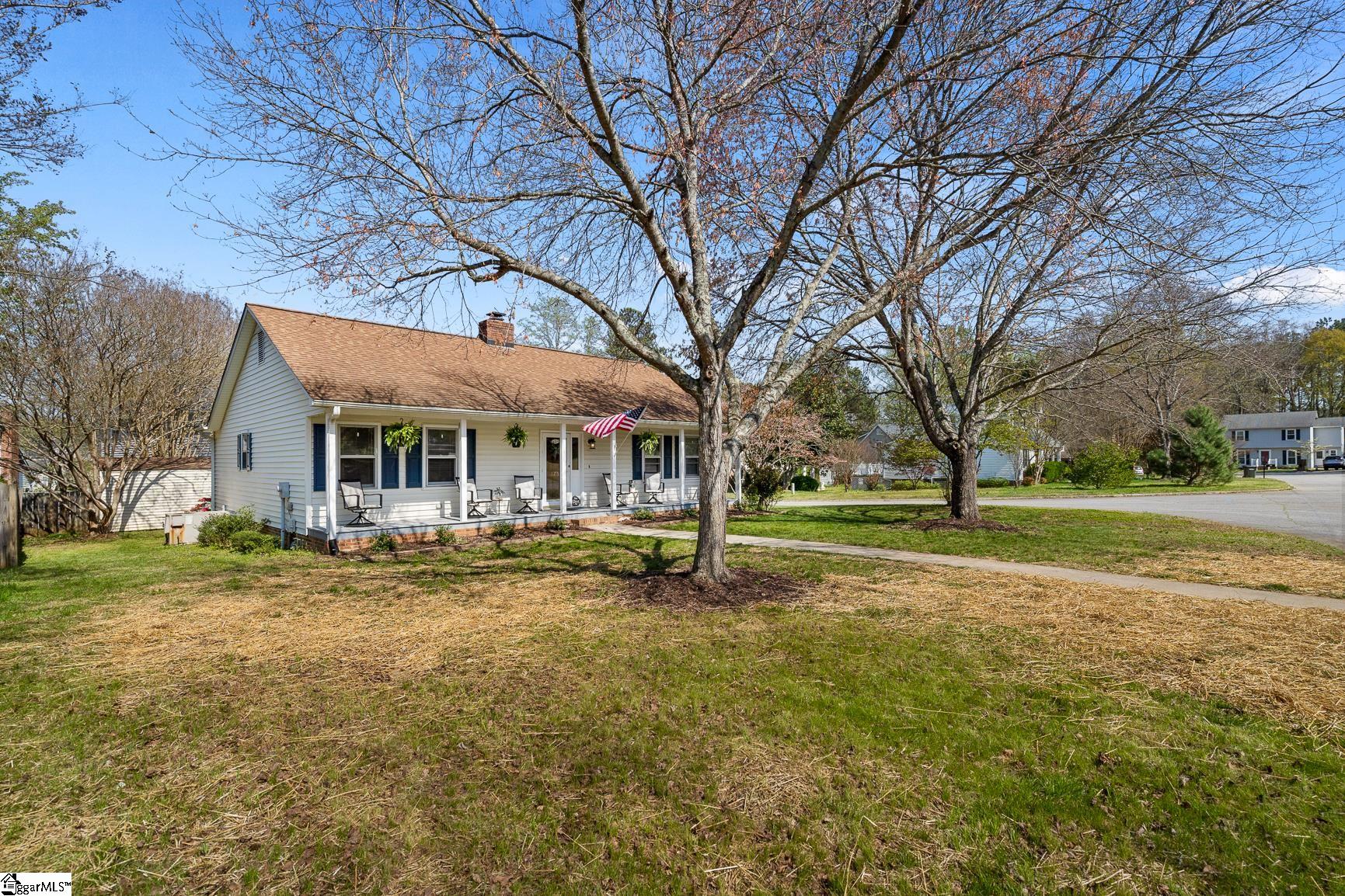 There are multiple offers on this home. The deadline to submit your highest and best offer is Monday, April 20th at 11:00A.M. EST. 125 Court Drive with the sweetest southern covered front porch that welcomes you inside! Framed by mature trees and blue shutters on a corner lot, this single story home delivers the kind of unhurried, come-home-and-exhale living that’s hard to find at this price point. Inside, the living room pulls you into the heart of the home — a generous 17×21 space with hardwood floors, a full brick fireplace with wood mantel, and natural light quickly attracts you to this space. The layout flows naturally into the kitchen and dining area, where butcher block countertops, white cabinetry with matte black hardware, and all-new stainless steel appliances give the space a beautiful finish that feels considered rather than overly trendy. A peninsula island adds prep space and a casual place to land, and the dining nook tucked into the corner windows makes this feel more like a home than a house. The primary suite sits on its own side of the floor plan with a walk-in closet. The two additional bedrooms — both with solid square footage for a home this size — share the opposite wing with a full bath. A dedicated foyer creates a real entry rather than walking straight into the living space, which is a detail that matters more than most buyers expect until they live without it. Out back, a deck off the main living area and a separate storage building give you functional outdoor space that homes in this range routinely skip. The corner lot means more yard on two sides with a bit more space between neighbors.Location works hard here. Court Drive puts you minutes from Easley’s main retail corridor, a short drive to I-85 for commuters heading toward Greenville or Anderson, and within easy reach of Clemson. Major medical is nearby for your healthcare needs and the area’s largest lakes are nearby for your fun! And if you’re a “no HOA” person…you’ll love that this home is NOT in a restricted community with fees!