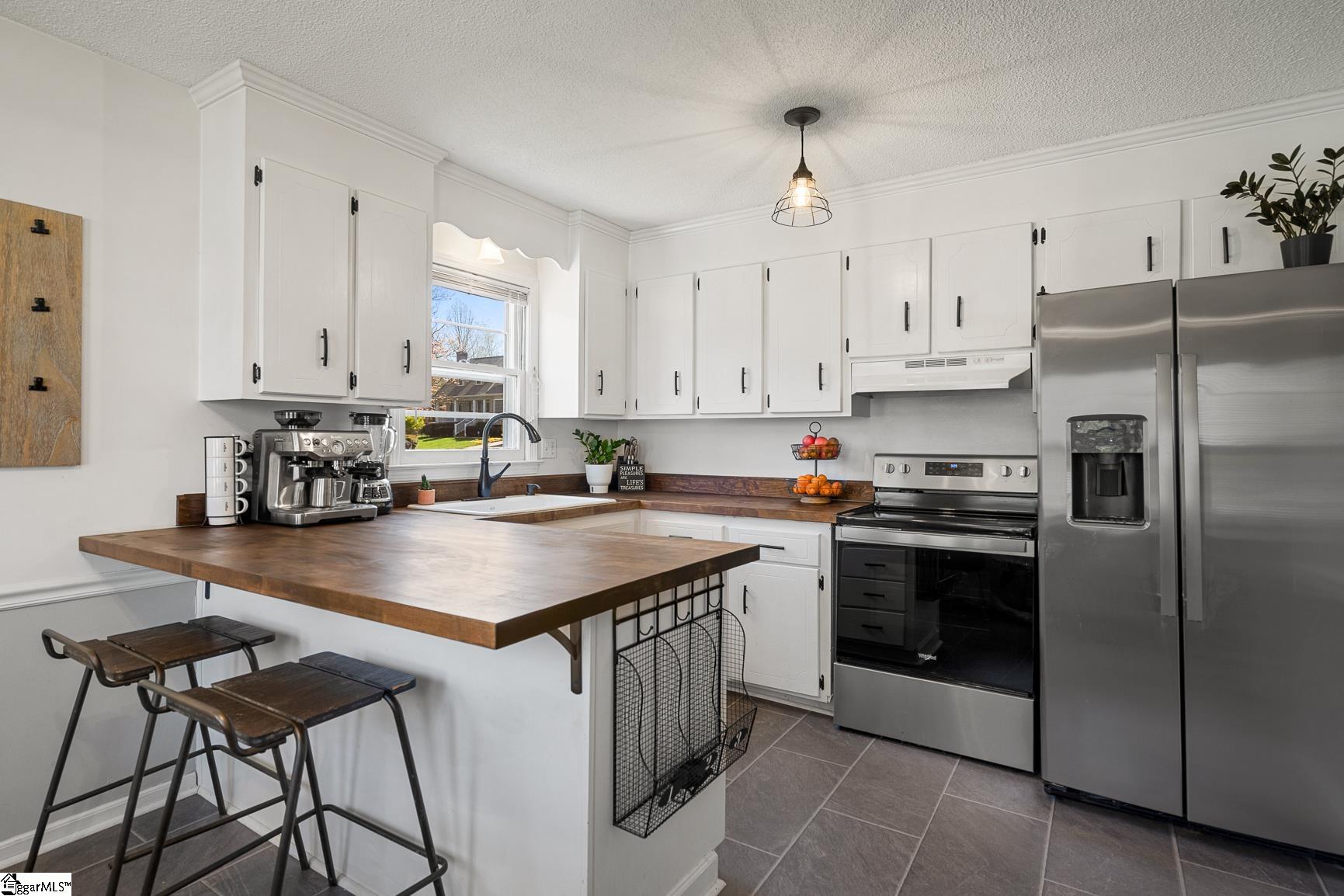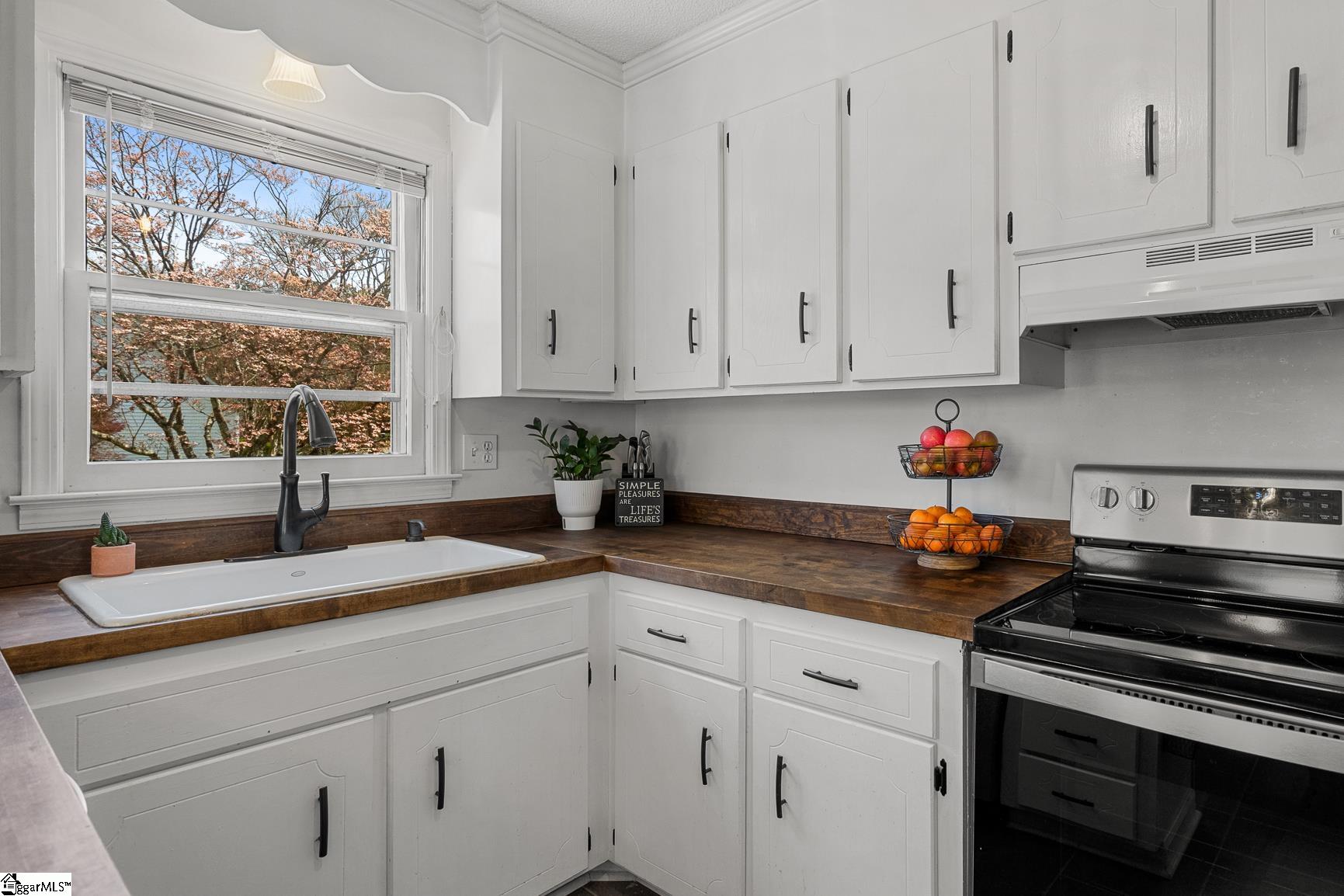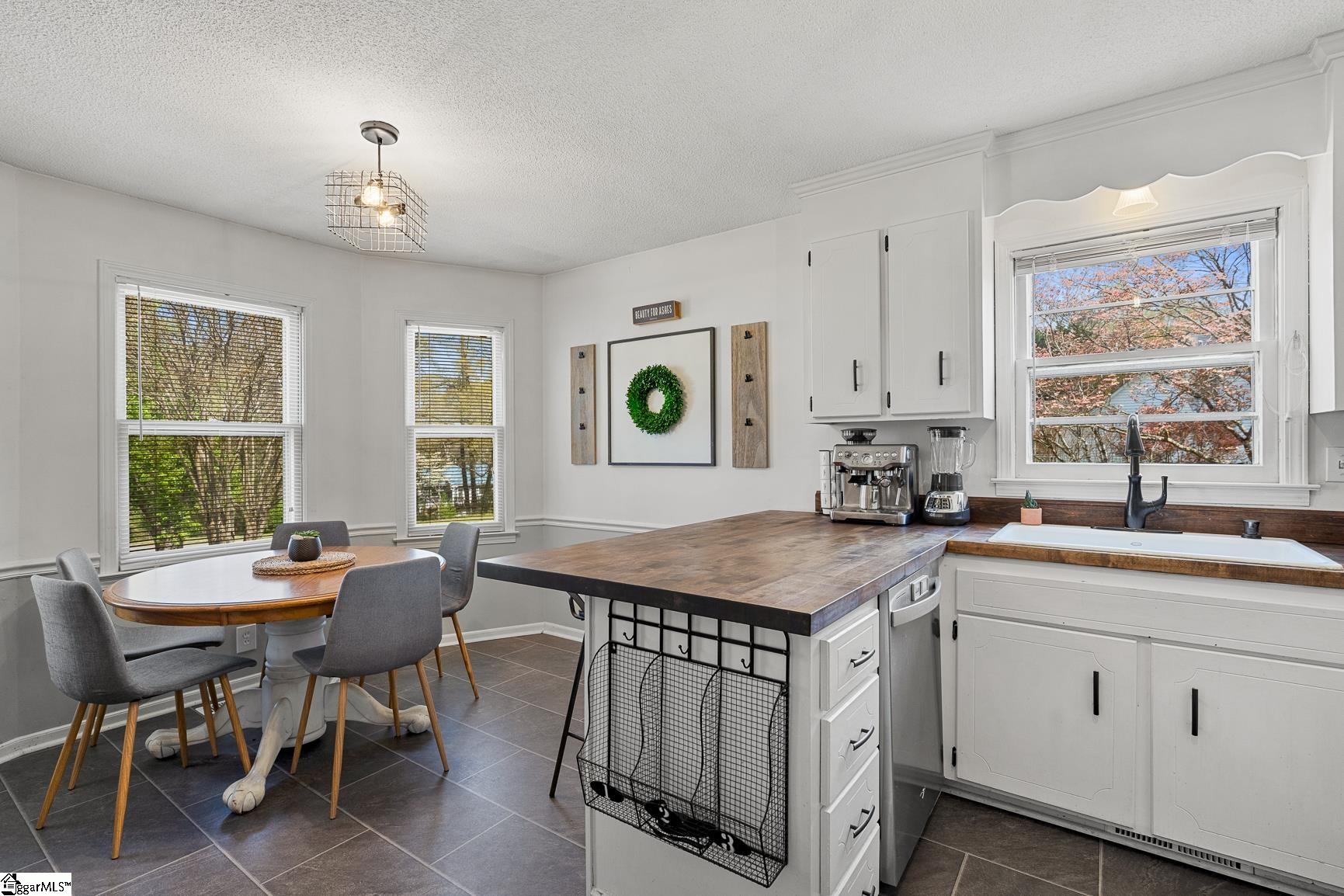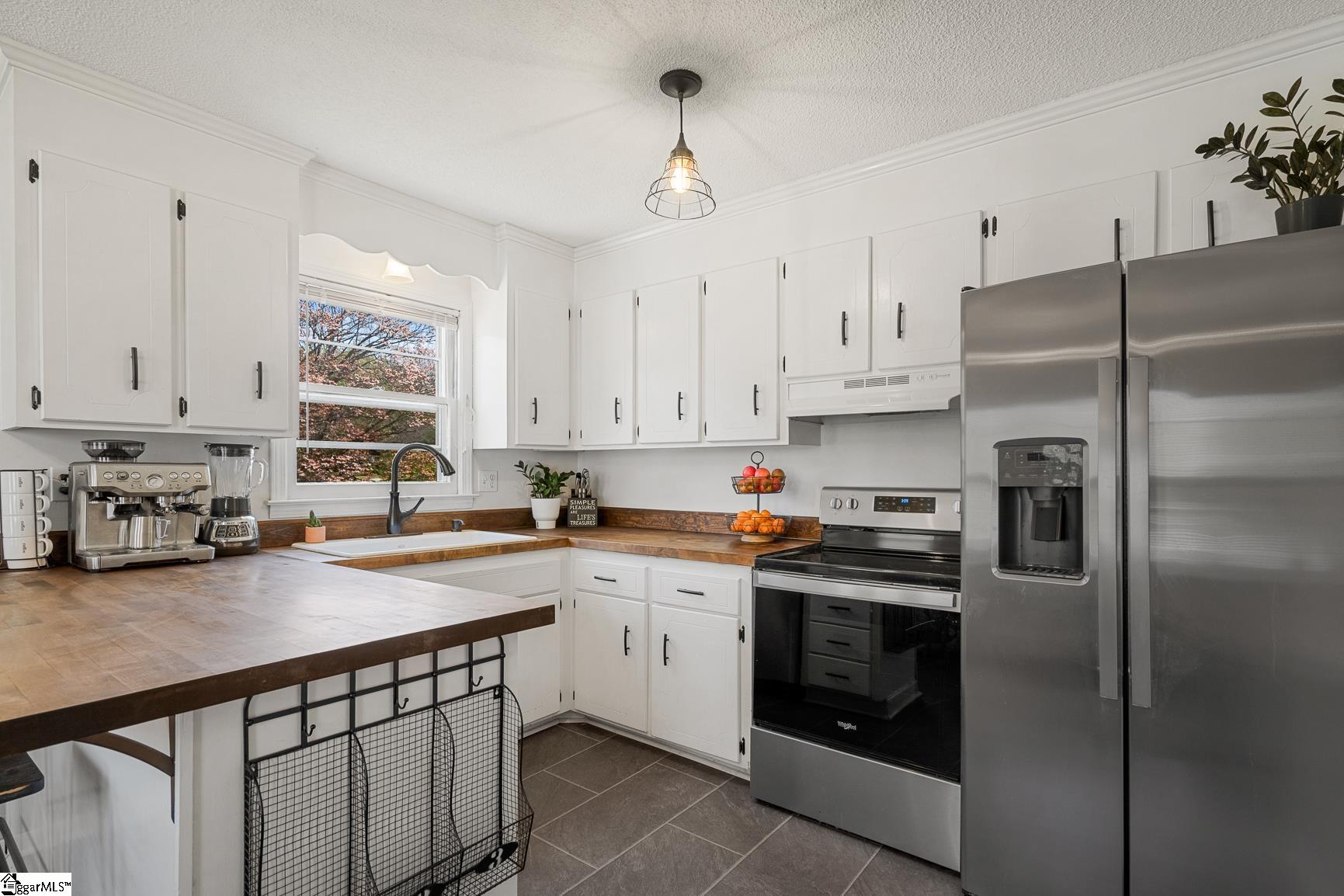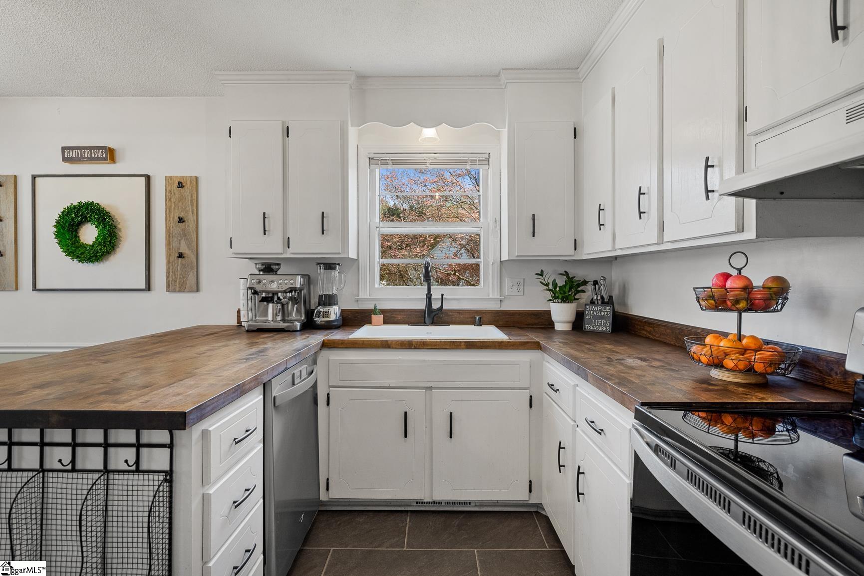 There are multiple offers on this home. The deadline to submit your highest and best offer is Monday, April 20th at 11:00A.M. EST. 125 Court Drive with the sweetest southern covered front porch that welcomes you inside! Framed by mature trees and blue shutters on a corner lot, this single story home delivers the kind of unhurried, come-home-and-exhale living that’s hard to find at this price point. Inside, the living room pulls you into the heart of the home — a generous 17×21 space with hardwood floors, a full brick fireplace with wood mantel, and natural light quickly attracts you to this space. The layout flows naturally into the kitchen and dining area, where butcher block countertops, white cabinetry with matte black hardware, and all-new stainless steel appliances give the space a beautiful finish that feels considered rather than overly trendy. A peninsula island adds prep space and a casual place to land, and the dining nook tucked into the corner windows makes this feel more like a home than a house. The primary suite sits on its own side of the floor plan with a walk-in closet. The two additional bedrooms — both with solid square footage for a home this size — share the opposite wing with a full bath. A dedicated foyer creates a real entry rather than walking straight into the living space, which is a detail that matters more than most buyers expect until they live without it. Out back, a deck off the main living area and a separate storage building give you functional outdoor space that homes in this range routinely skip. The corner lot means more yard on two sides with a bit more space between neighbors.Location works hard here. Court Drive puts you minutes from Easley’s main retail corridor, a short drive to I-85 for commuters heading toward Greenville or Anderson, and within easy reach of Clemson. Major medical is nearby for your healthcare needs and the area’s largest lakes are nearby for your fun! And if you’re a “no HOA” person…you’ll love that this home is NOT in a restricted community with fees!