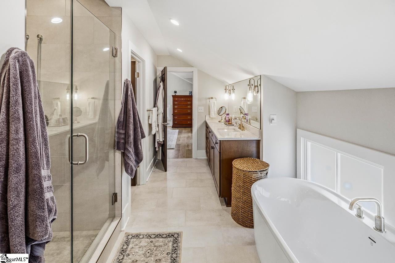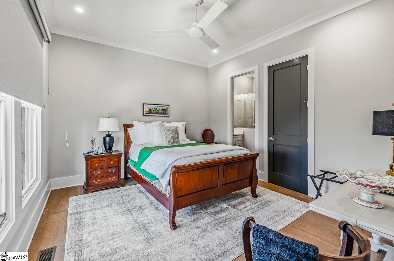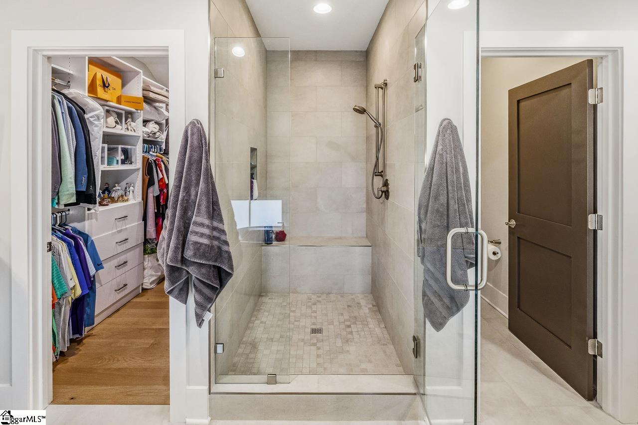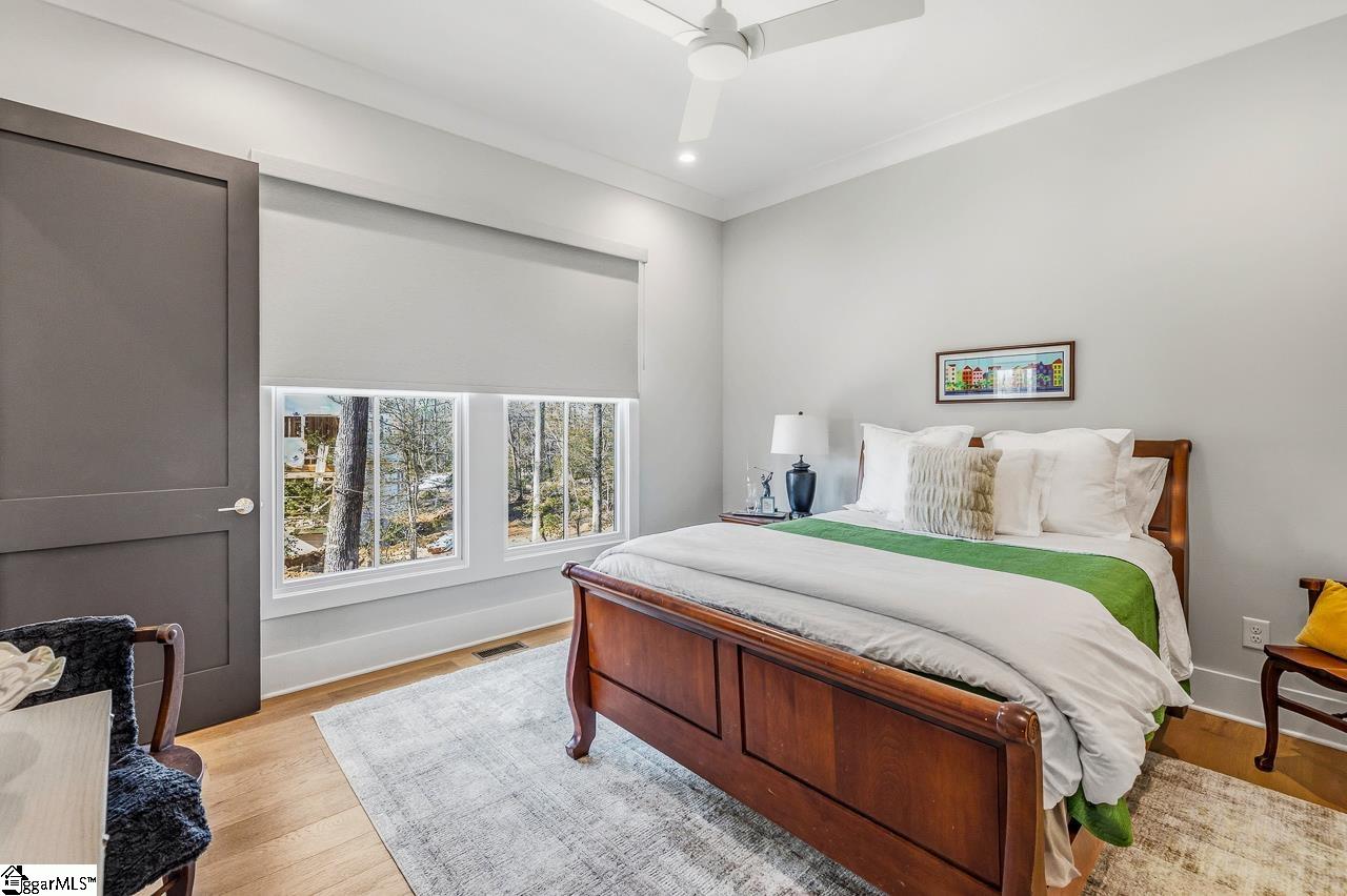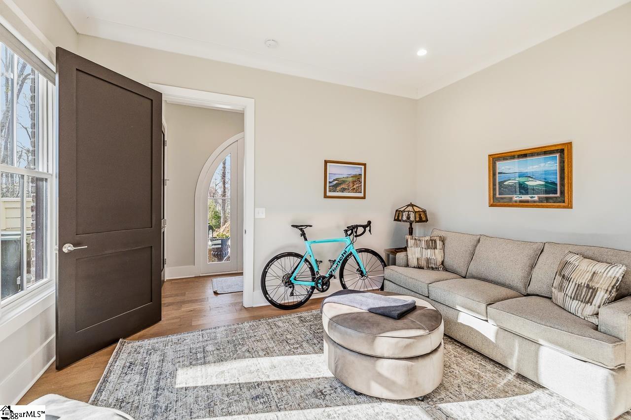 Tucked within the private Woodland Retreat enclave of Hartness, this distinctive 3-story home offers a rare blend of modern design and natural surroundings. Set among nearly seven acres of preserved woodlands filled with mature American holly and beech trees, the setting provides a peaceful escape while still being part of one of the area’s most sought-after communities. The exterior showcases a striking combination of brick and fiber cement siding, complemented by a cedar shake roof that enhances both durability and architectural appeal. Inside, the home is thoughtfully designed across three levels to maximize both comfort and functionality. The ground level features a private bedroom with a full en-suite bath, ideal for guests, along with a convenient one-car carport. The main living level is bright and open, centered around a spacious living area with a direct vent fireplace and slate hearth. The kitchen is designed for both everyday living and entertaining, featuring a large island with built-in microwave, custom cabinetry, a wood hood with Broan insert, and a GE Profile stainless steel appliance package. A dining area, powder room, and additional bedroom with en-suite bath complete this level, along with access to a generous deck overlooking the natural surroundings. The top level is dedicated to the primary suite, offering a true retreat with a large walk-in closet, dual vanities, a garden tub, and a separate shower. A private terrace off the suite provides the perfect place to unwind and take in the serene wooded views. With its unique setting, thoughtful layout, and high-end finishes, this home offers a one-of-a-kind opportunity to enjoy modern living immersed in nature.