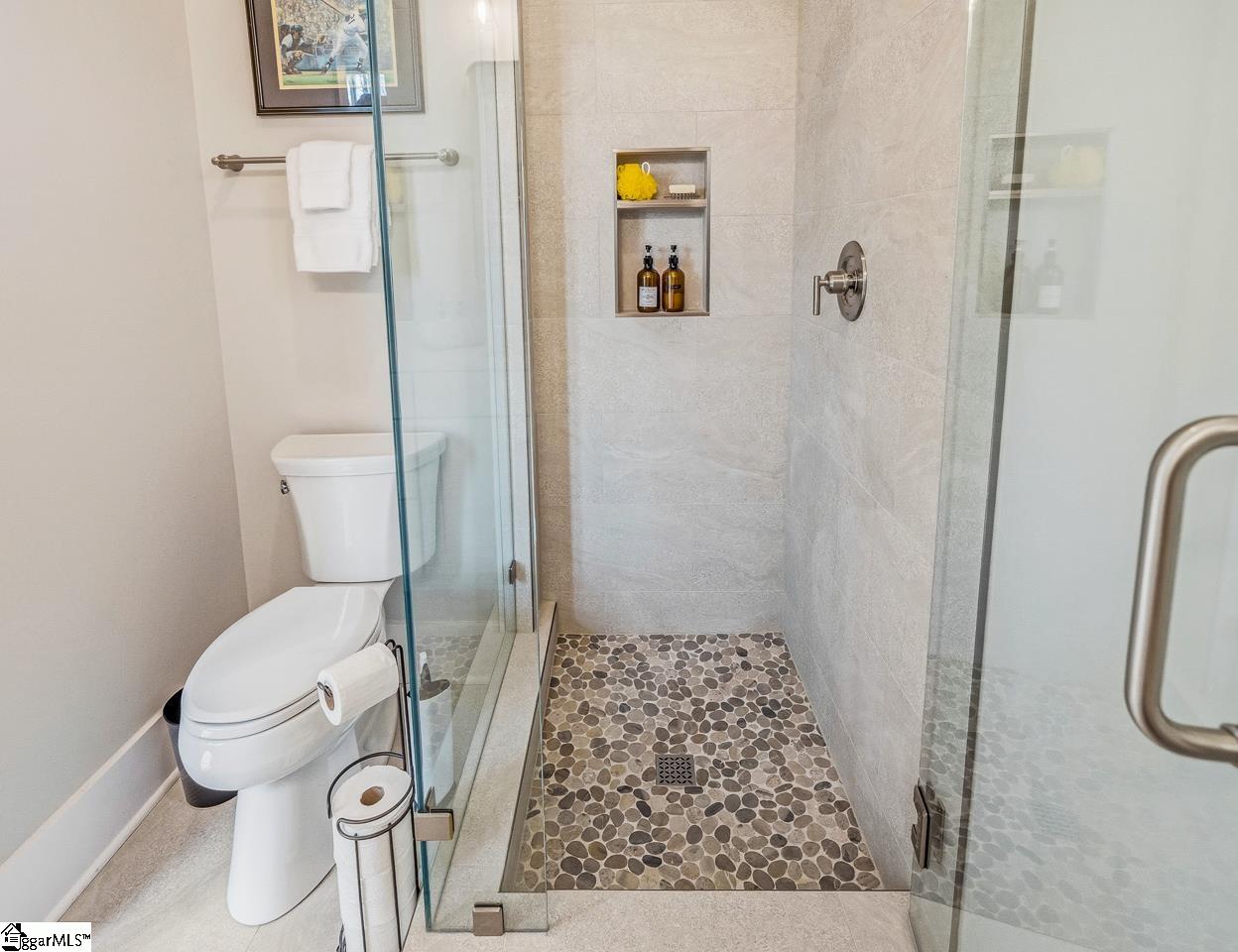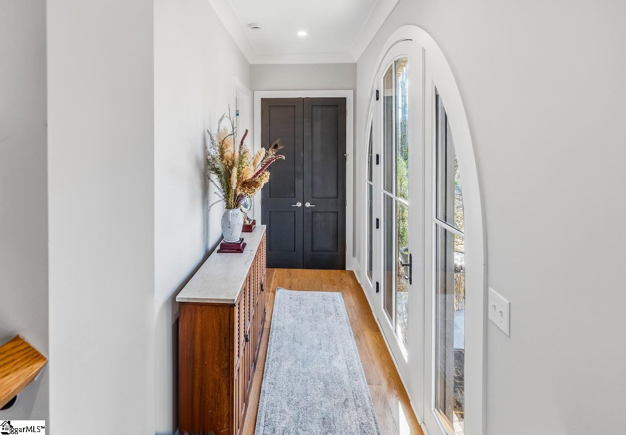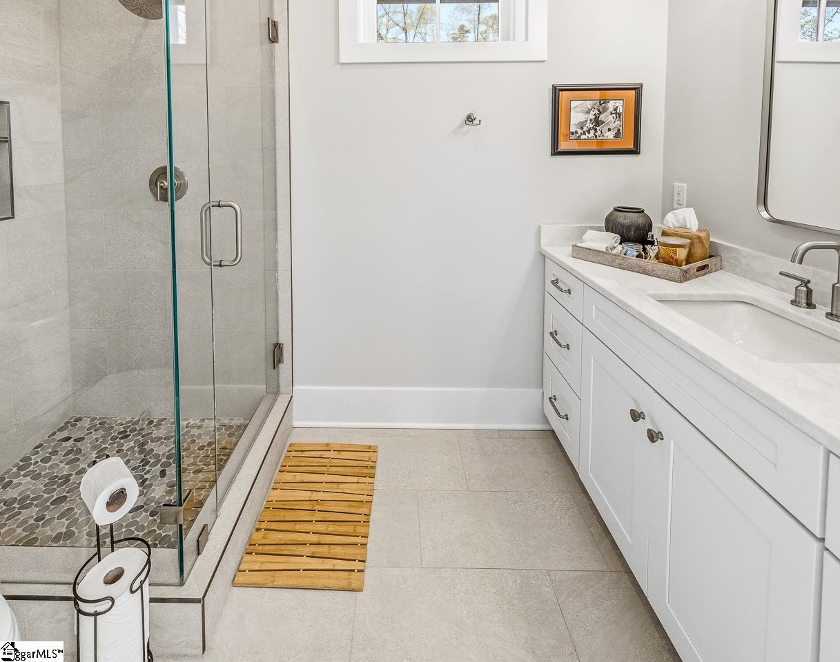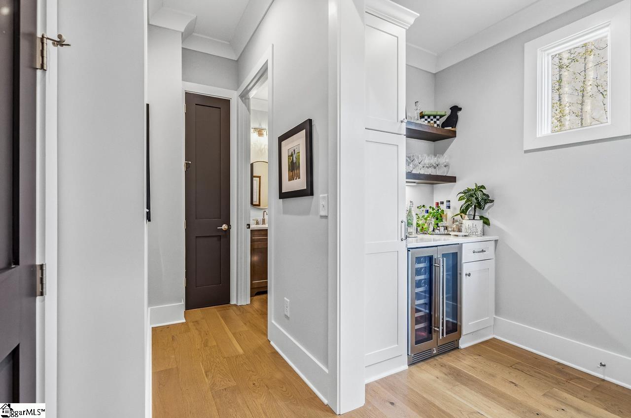 Tucked within the private Woodland Retreat enclave of Hartness, this distinctive 3-story home offers a rare blend of modern design and natural surroundings. Set among nearly seven acres of preserved woodlands filled with mature American holly and beech trees, the setting provides a peaceful escape while still being part of one of the area’s most sought-after communities. The exterior showcases a striking combination of brick and fiber cement siding, complemented by a cedar shake roof that enhances both durability and architectural appeal. Inside, the home is thoughtfully designed across three levels to maximize both comfort and functionality. The ground level features a private bedroom with a full en-suite bath, ideal for guests, along with a convenient one-car carport. The main living level is bright and open, centered around a spacious living area with a direct vent fireplace and slate hearth. The kitchen is designed for both everyday living and entertaining, featuring a large island with built-in microwave, custom cabinetry, a wood hood with Broan insert, and a GE Profile stainless steel appliance package. A dining area, powder room, and additional bedroom with en-suite bath complete this level, along with access to a generous deck overlooking the natural surroundings. The top level is dedicated to the primary suite, offering a true retreat with a large walk-in closet, dual vanities, a garden tub, and a separate shower. A private terrace off the suite provides the perfect place to unwind and take in the serene wooded views. With its unique setting, thoughtful layout, and high-end finishes, this home offers a one-of-a-kind opportunity to enjoy modern living immersed in nature.