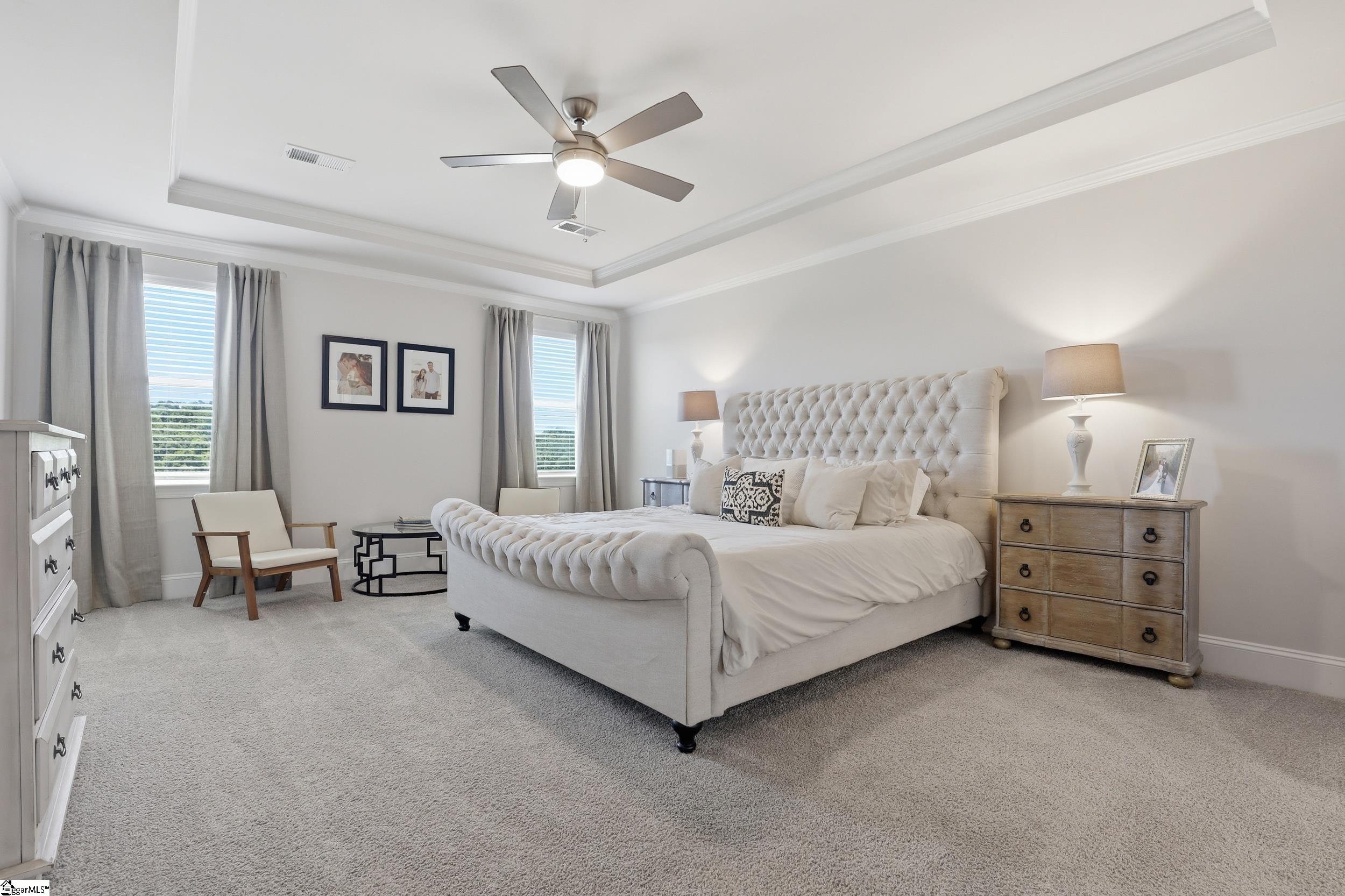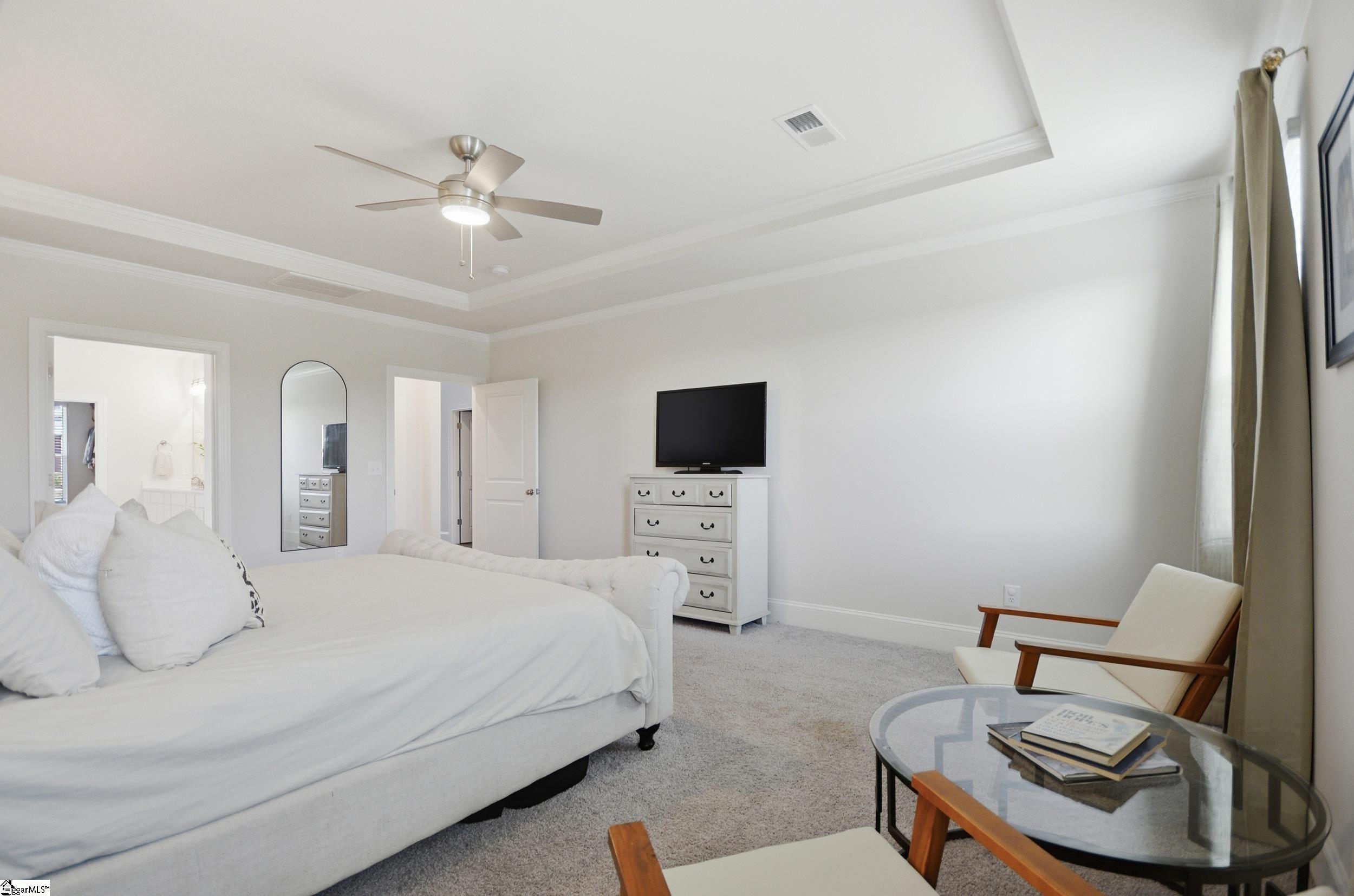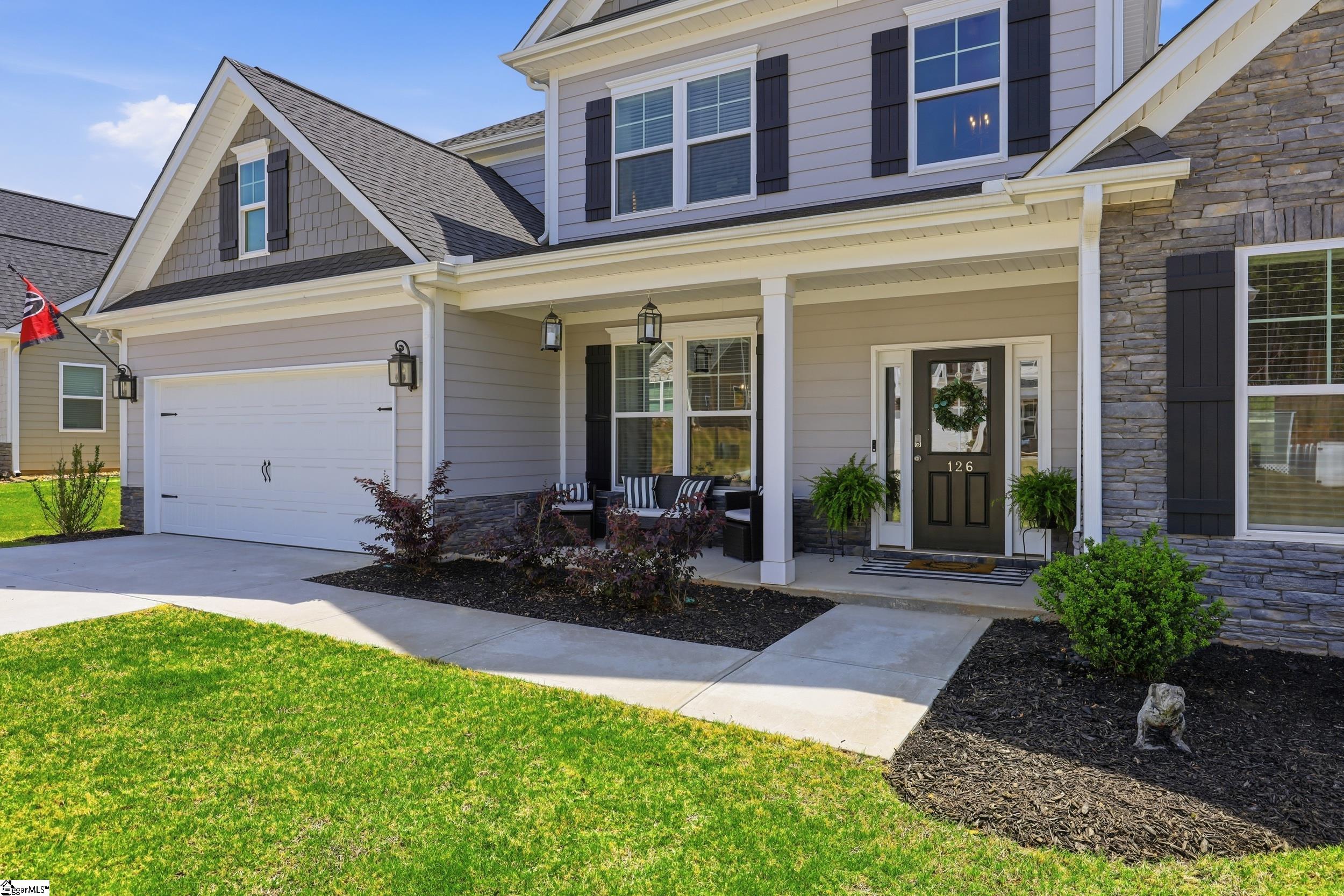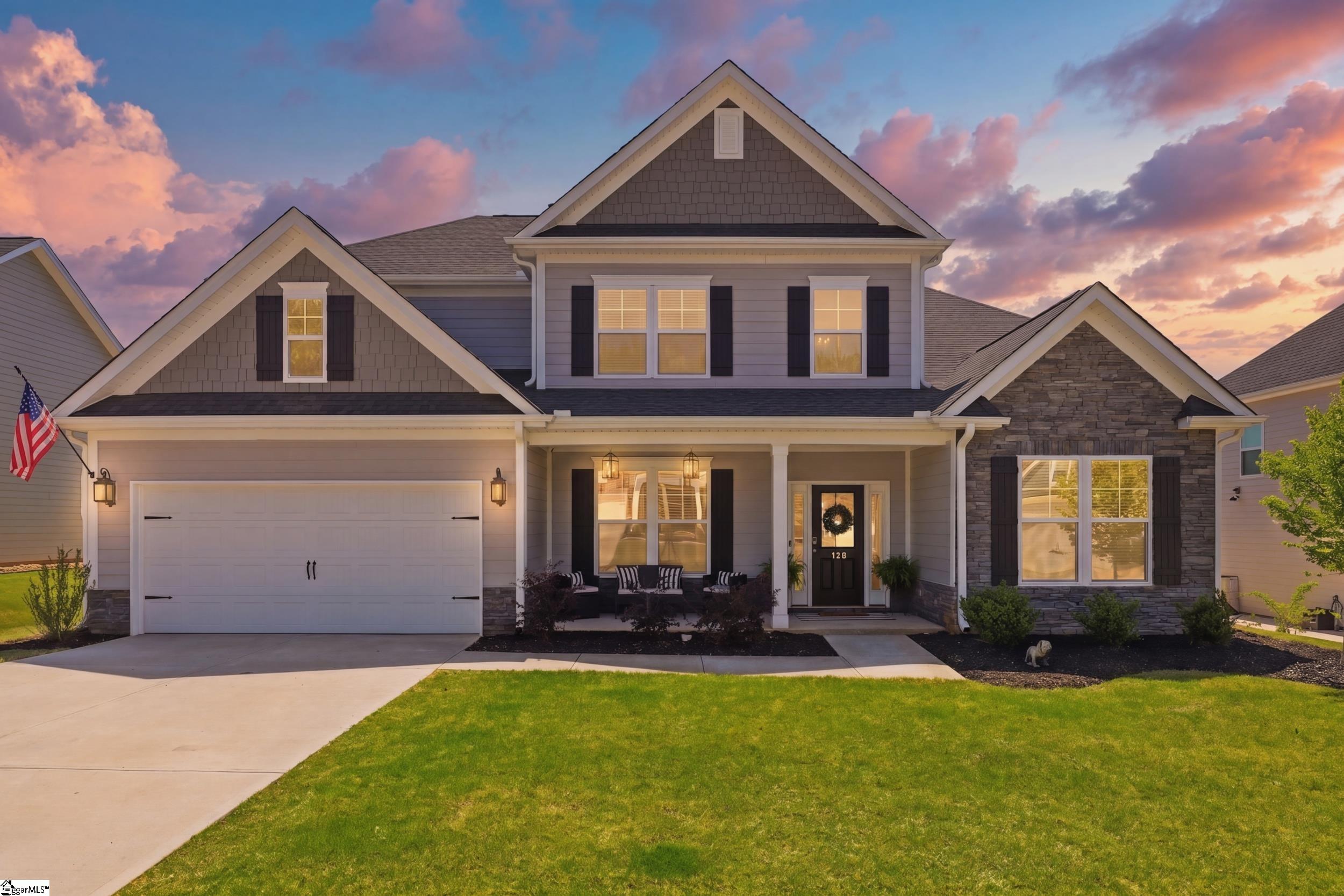 Welcome home! Where space, design, and everyday living come together effortlessly. From the moment you arrive, you’ll feel the difference; a warm, welcoming community, stunning surrounding views, and a home designed to elevate both quiet evenings and lively gatherings. Inside, the modern open-concept layout creates a natural flow ideal for today’s lifestyle. At the heart of the home is a true gourmet kitchen, thoughtfully designed with abundant space, upscale finishes; and a butler’s pantry that adds both function and elegance, perfect for entertaining or keeping everyday life beautifully organized. The main-level primary suite creates a private retreat you’ll never want to leave, complete with tray ceilings and an expansive layout. The en-suite bath feels like a personal spa, featuring gorgeous tile work, a soaking garden tub, a separate shower with built-in bench seating, and a massive walk-in wardrobe comparable in size to an additional bedroom. Upstairs, a stunning wrought-iron staircase leads to a spacious media room, ideal for movie nights, game days, or a second living area. You’ll also find four generously sized bedrooms and two full baths, providing flexibility and comfort for family, guests, or work-from-home needs. Step outside and take in the breathtaking views, where sunsets become part of your daily routine and the backyard becomes your own peaceful escape. Located just 20 minutes from downtown Greenville and 15 minutes to downtown Easley, this home delivers the perfect balance of convenience and tranquility, all within an award-winning school district and a community known for its welcoming atmosphere and desirable amenities. This is more than just a place to live, it’s where your next chapter begins.