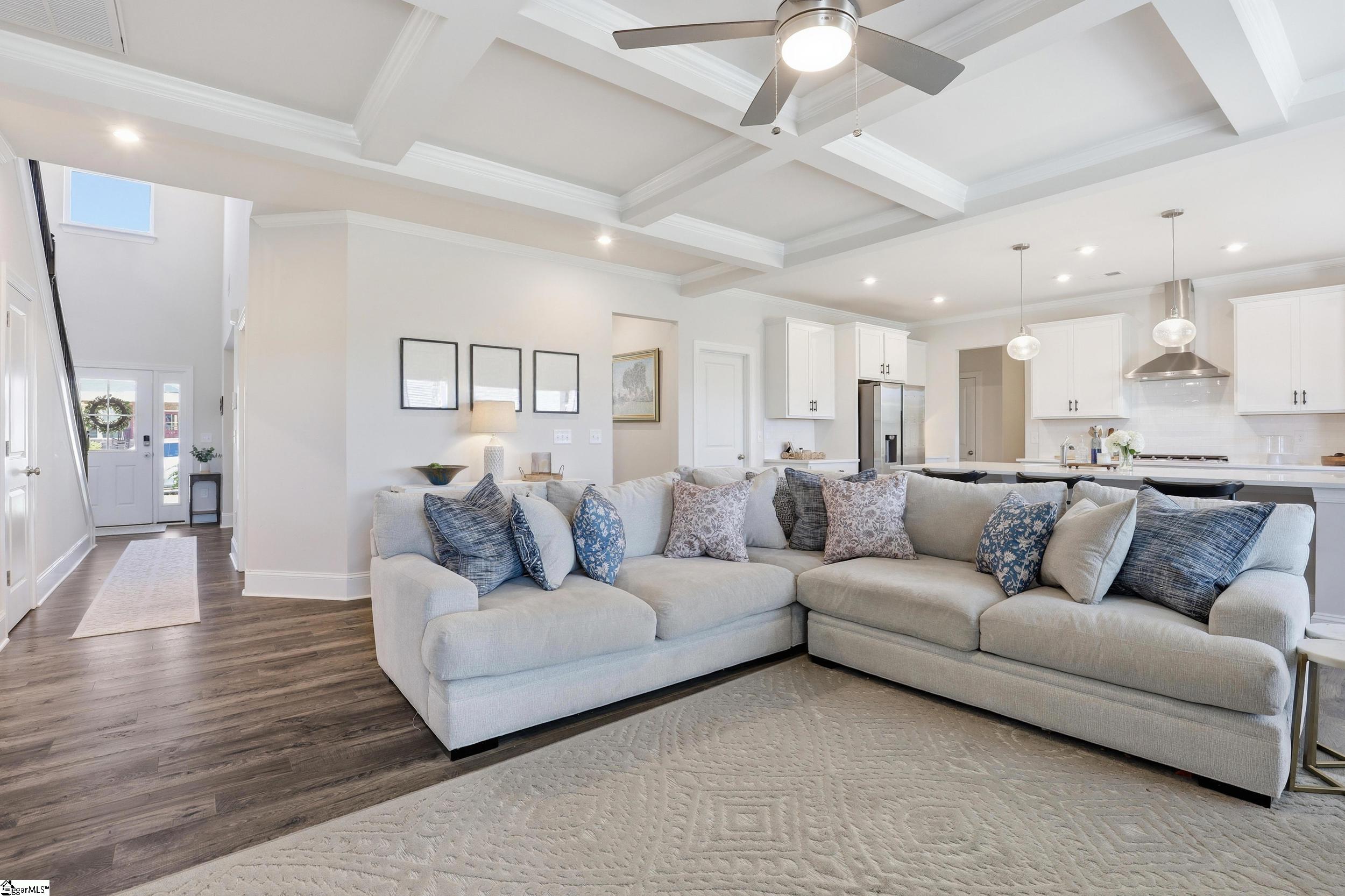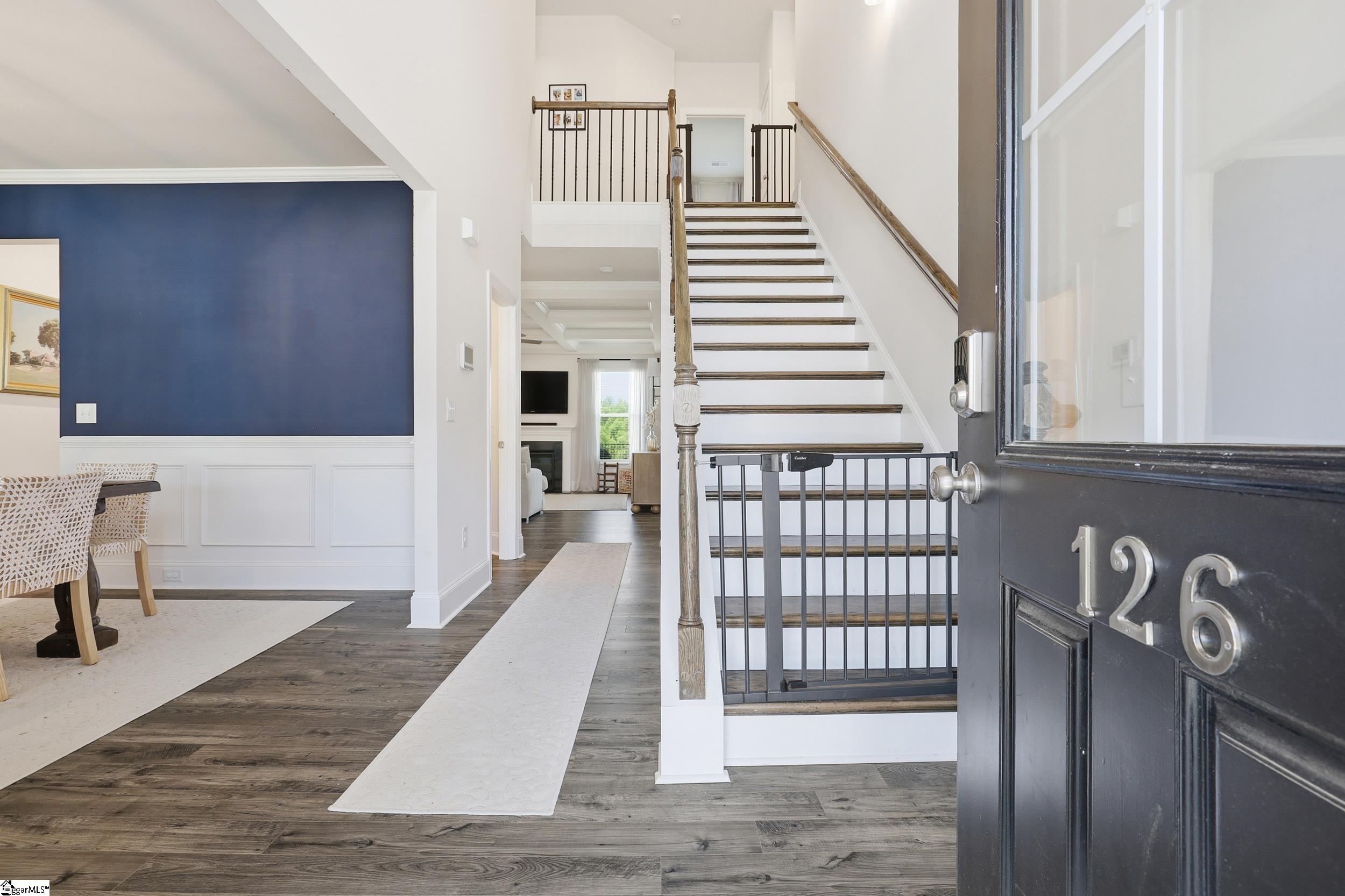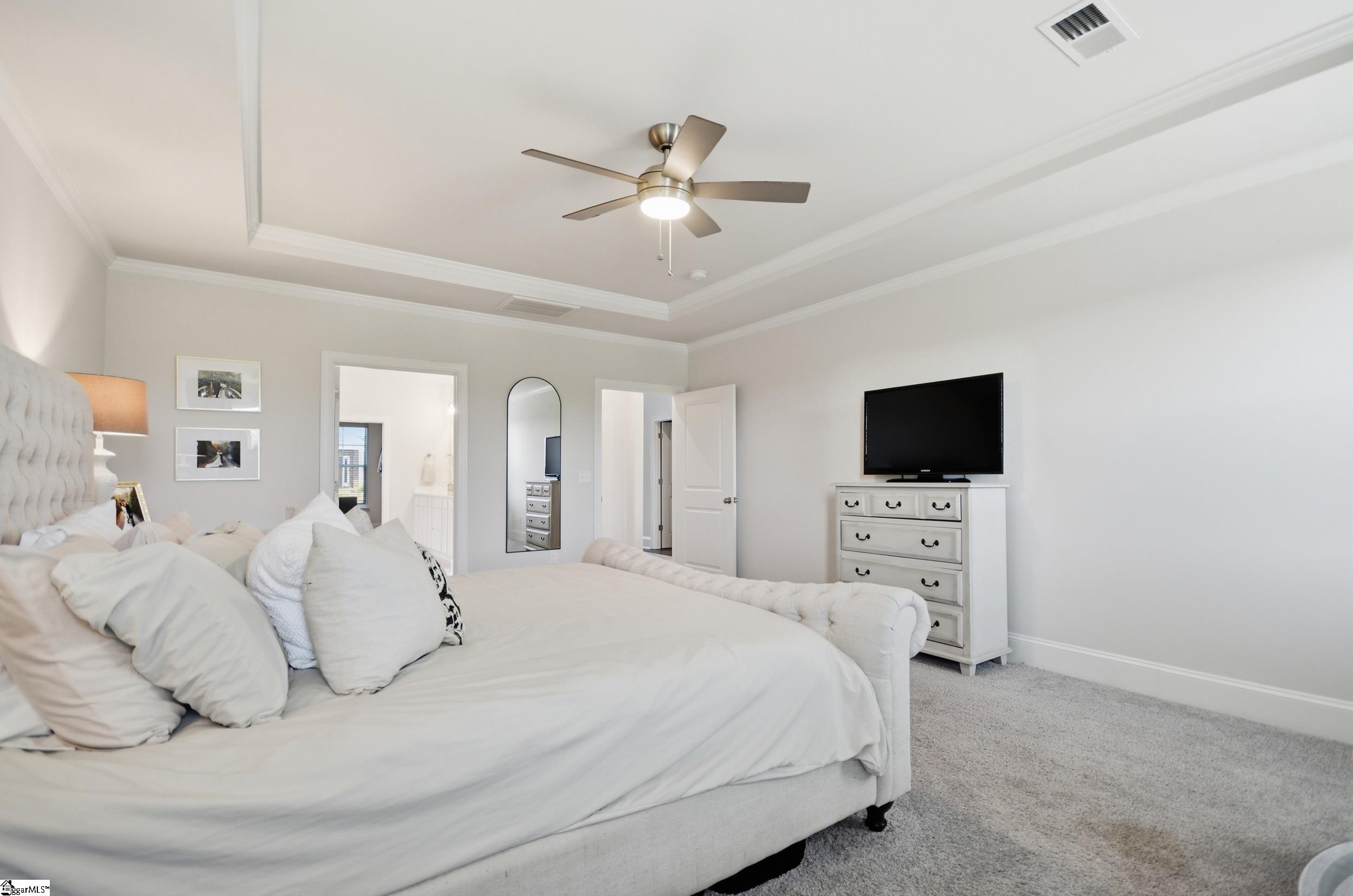 Welcome home! Where space, design, and everyday living come together effortlessly. From the moment you arrive, you’ll feel the difference; a warm, welcoming community, stunning surrounding views, and a home designed to elevate both quiet evenings and lively gatherings. Inside, the modern open-concept layout creates a natural flow ideal for today’s lifestyle. At the heart of the home is a true gourmet kitchen, thoughtfully designed with abundant space, upscale finishes; and a butler’s pantry that adds both function and elegance, perfect for entertaining or keeping everyday life beautifully organized. The main-level primary suite creates a private retreat you’ll never want to leave, complete with tray ceilings and an expansive layout. The en-suite bath feels like a personal spa, featuring gorgeous tile work, a soaking garden tub, a separate shower with built-in bench seating, and a massive walk-in wardrobe comparable in size to an additional bedroom. Upstairs, a stunning wrought-iron staircase leads to a spacious media room, ideal for movie nights, game days, or a second living area. You’ll also find four generously sized bedrooms and two full baths, providing flexibility and comfort for family, guests, or work-from-home needs. Step outside and take in the breathtaking views, where sunsets become part of your daily routine and the backyard becomes your own peaceful escape. Located just 20 minutes from downtown Greenville and 15 minutes to downtown Easley, this home delivers the perfect balance of convenience and tranquility, all within an award-winning school district and a community known for its welcoming atmosphere and desirable amenities. This is more than just a place to live, it’s where your next chapter begins.