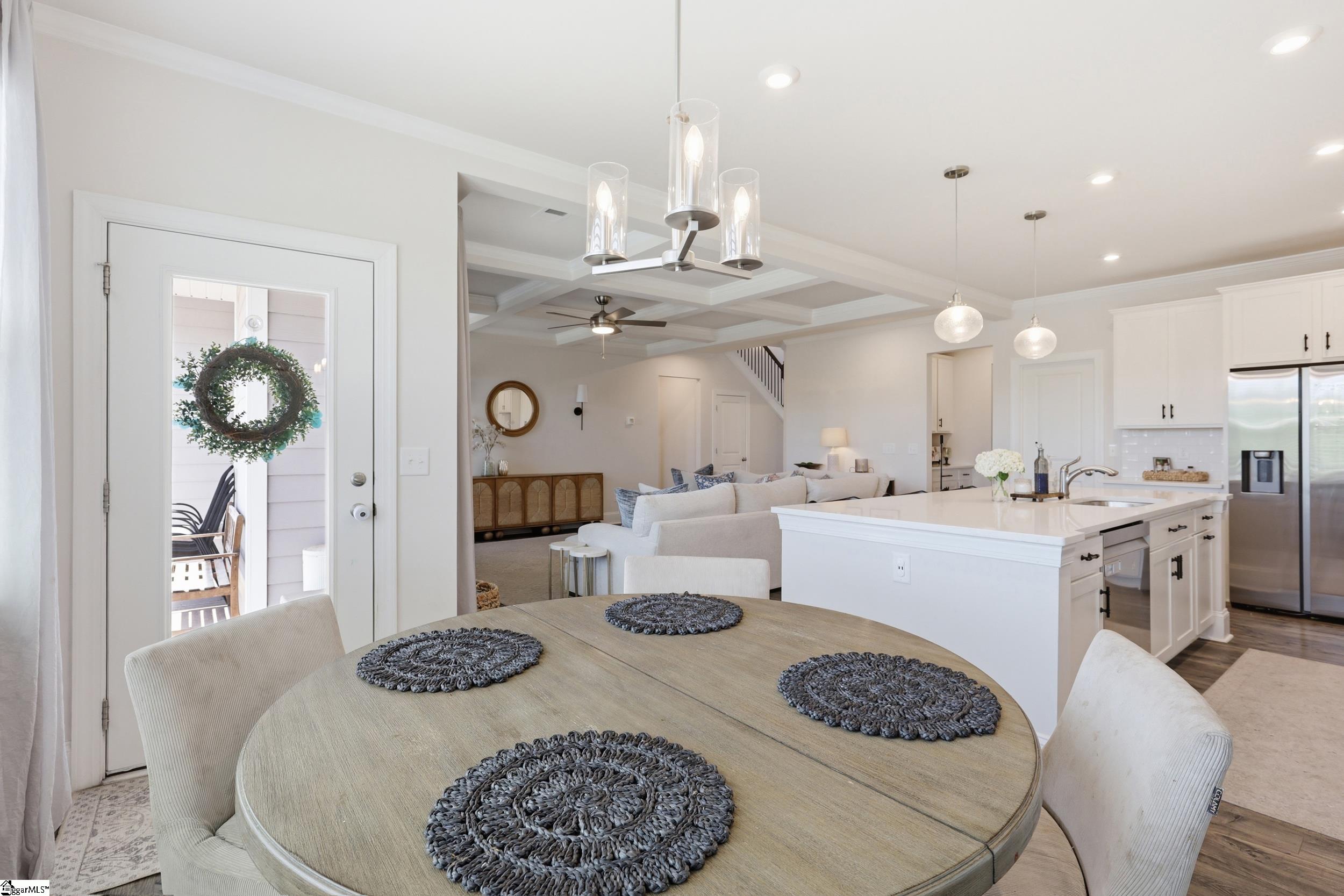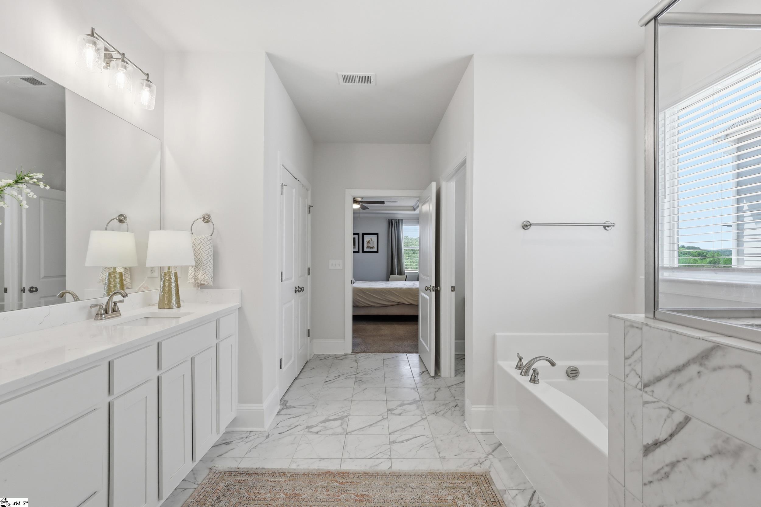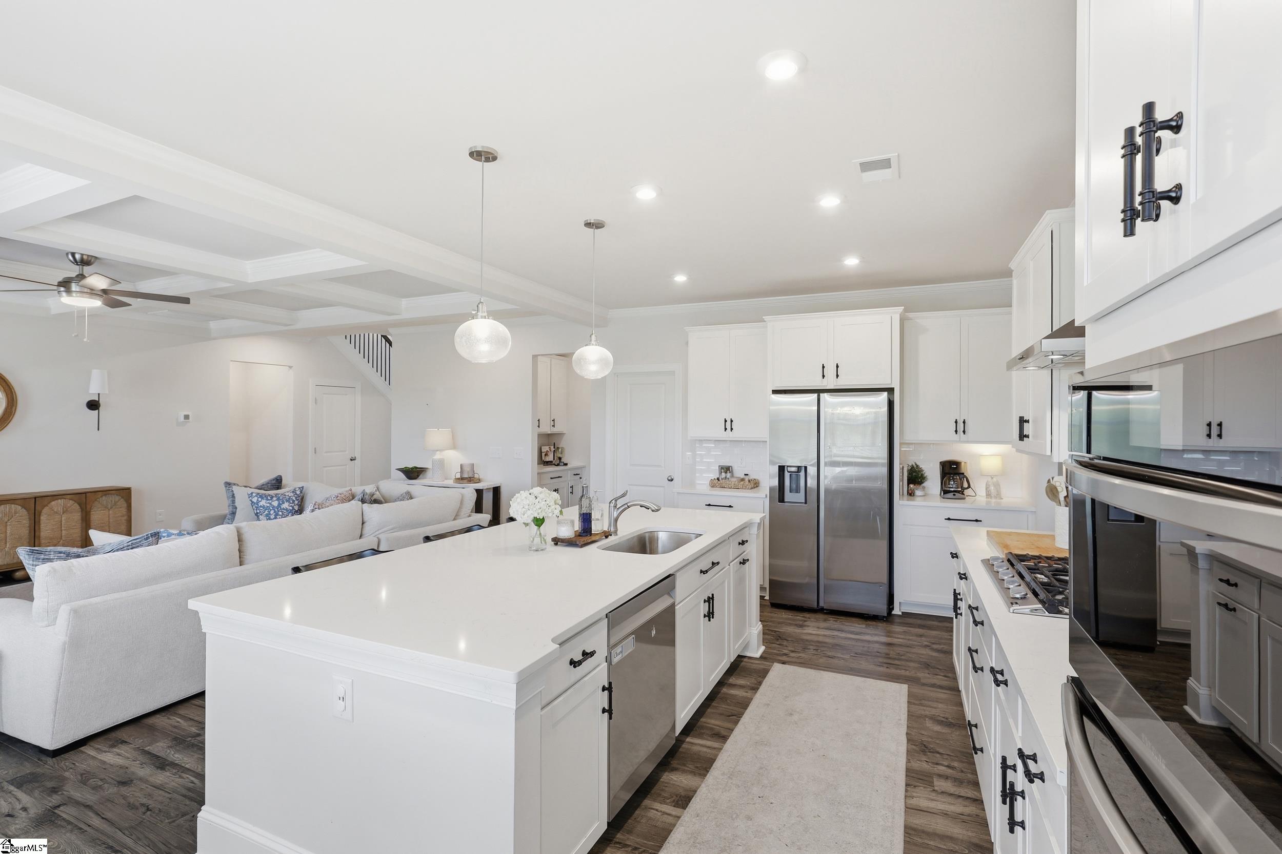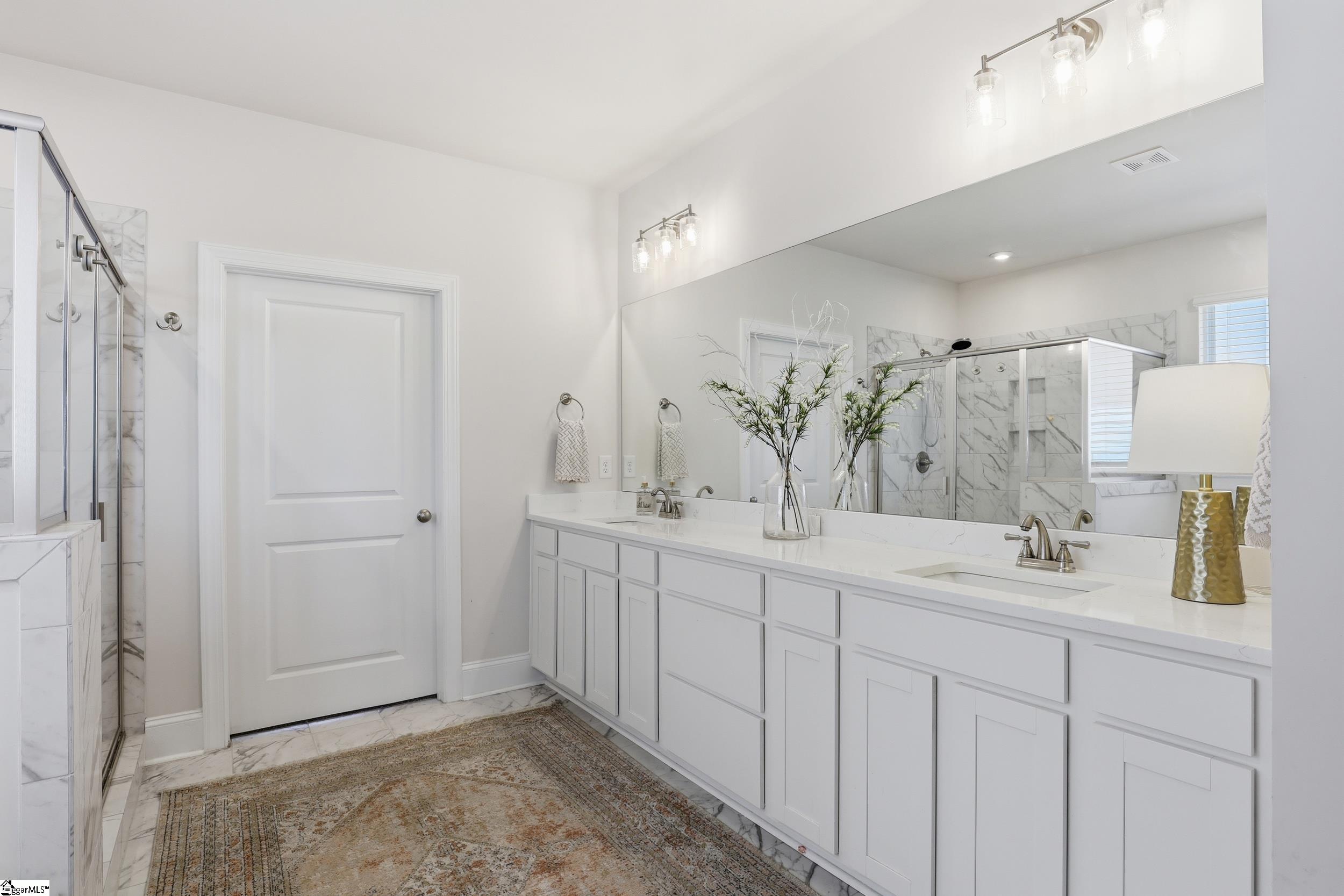 Welcome home! Where space, design, and everyday living come together effortlessly. From the moment you arrive, you’ll feel the difference; a warm, welcoming community, stunning surrounding views, and a home designed to elevate both quiet evenings and lively gatherings. Inside, the modern open-concept layout creates a natural flow ideal for today’s lifestyle. At the heart of the home is a true gourmet kitchen, thoughtfully designed with abundant space, upscale finishes; and a butler’s pantry that adds both function and elegance, perfect for entertaining or keeping everyday life beautifully organized. The main-level primary suite creates a private retreat you’ll never want to leave, complete with tray ceilings and an expansive layout. The en-suite bath feels like a personal spa, featuring gorgeous tile work, a soaking garden tub, a separate shower with built-in bench seating, and a massive walk-in wardrobe comparable in size to an additional bedroom. Upstairs, a stunning wrought-iron staircase leads to a spacious media room, ideal for movie nights, game days, or a second living area. You’ll also find four generously sized bedrooms and two full baths, providing flexibility and comfort for family, guests, or work-from-home needs. Step outside and take in the breathtaking views, where sunsets become part of your daily routine and the backyard becomes your own peaceful escape. Located just 20 minutes from downtown Greenville and 15 minutes to downtown Easley, this home delivers the perfect balance of convenience and tranquility, all within an award-winning school district and a community known for its welcoming atmosphere and desirable amenities. This is more than just a place to live, it’s where your next chapter begins.