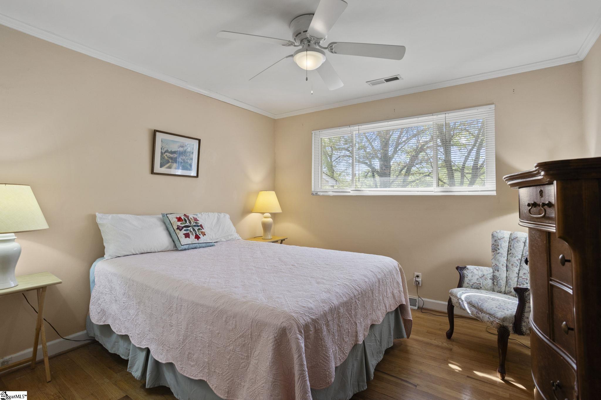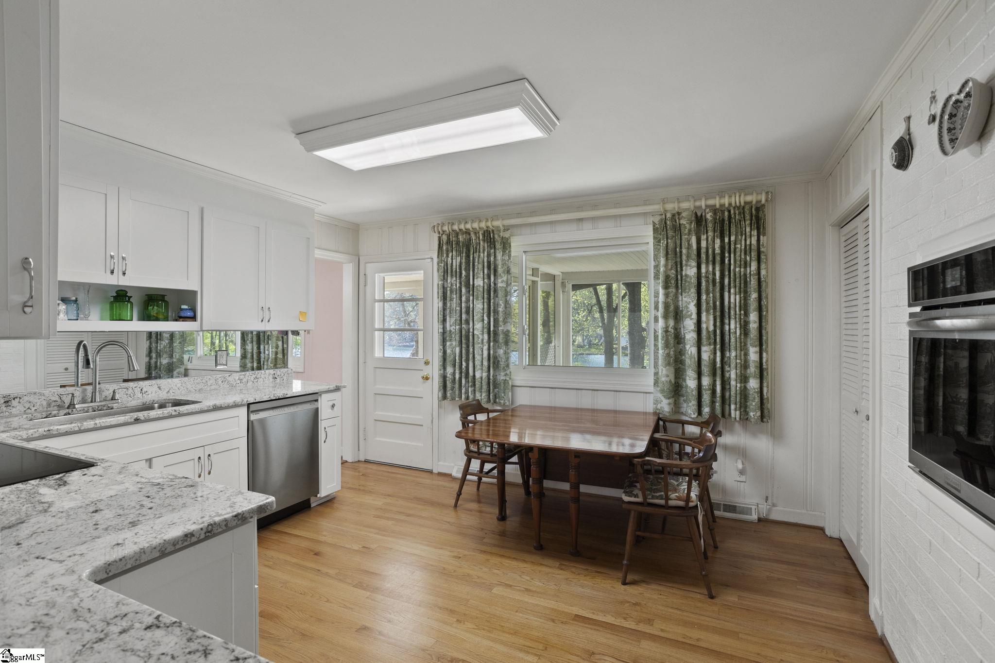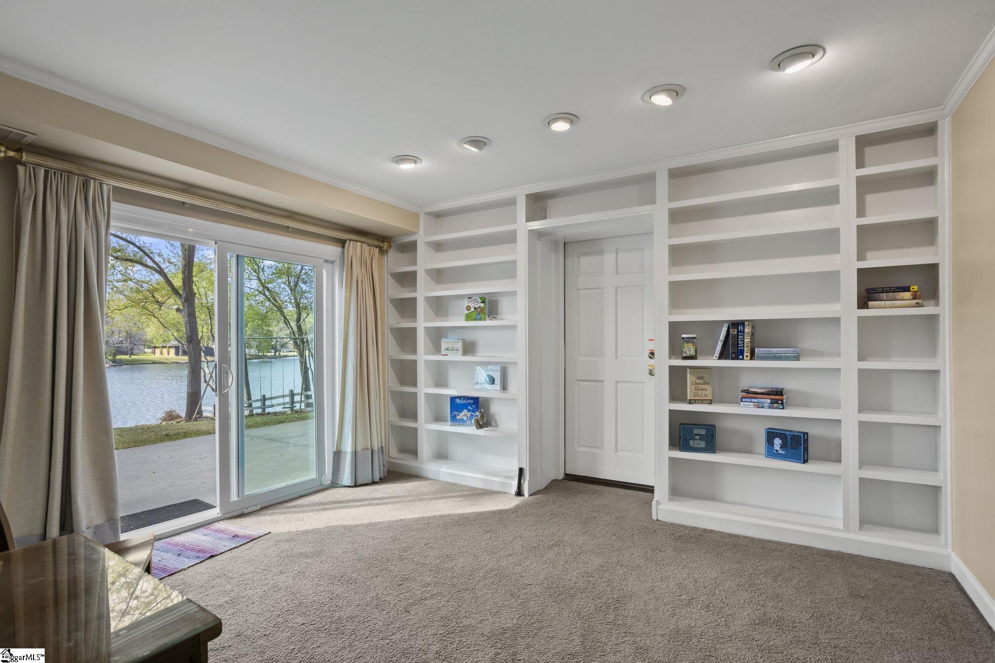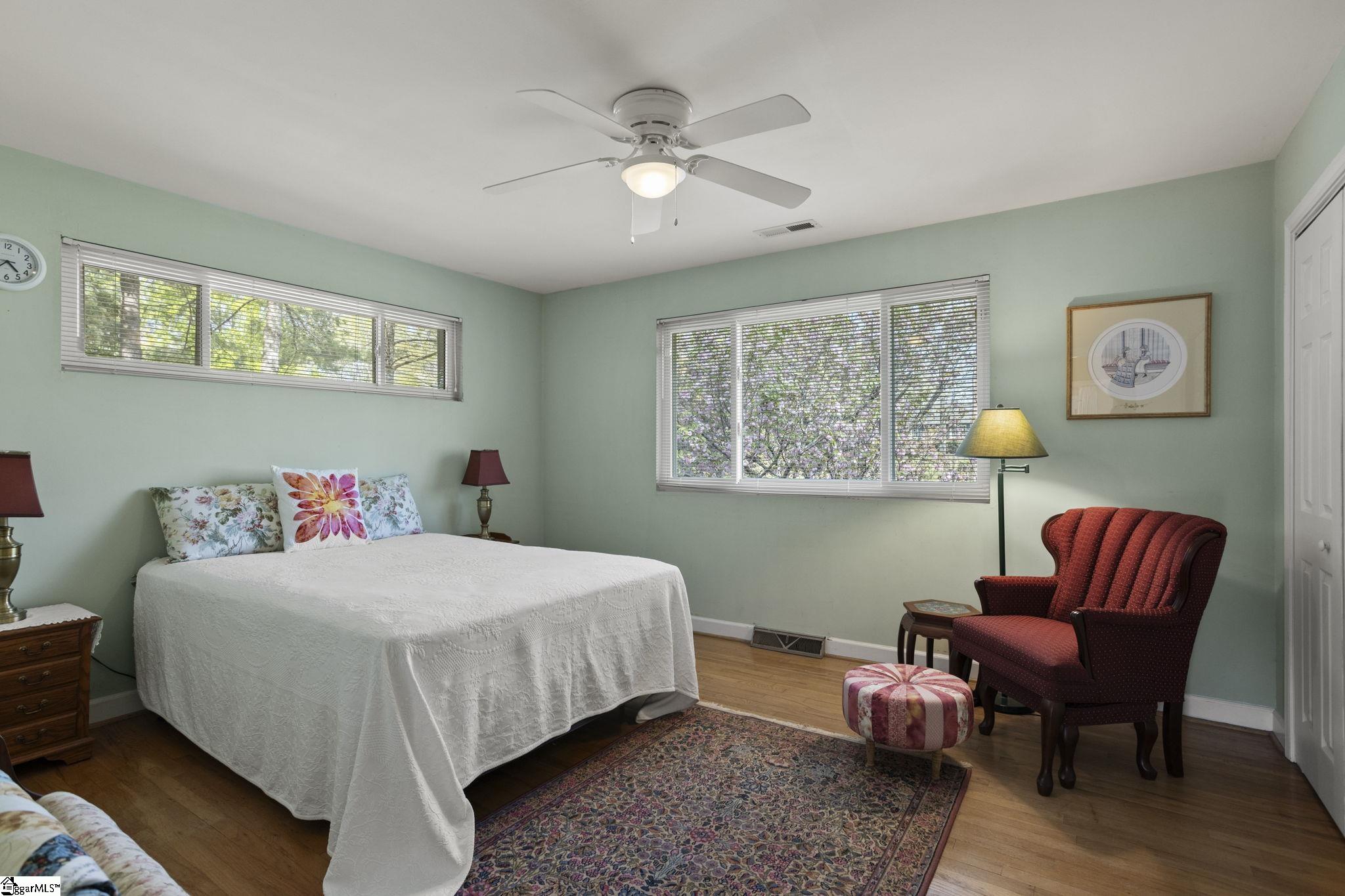 How would you like to live on a lake where you can swim or get in your canoe, paddleboard, or boat, but be minutes to downtown Greenville? Come see this little bit of paradise on Shannon Lake with over half an acre lot. Sit on your dock and fish, have a picnic by the lake on the stone terrace or just enjoy the ripple of the water as you enjoy a nap or read. This charming home has an updated kitchen and windows, has beautiful hardwood floors, 4 bedrooms plus an office or a 5th bedroom, 3 full baths, and over 3500 square feet heated and finished area. The primary suite has all the bells and whistles with a sitting area, built-in bookshelves that flank a fireplace, and has 2 sets of double doors that open to the lake. You will not believe the primary bath and dressing room that is the size of a bedroom. The multiple hanging and shelf space, including a second laundry area, a folding table, and a built-in ironing board. The primary bath is fit for a king for sure, a shower so large you can walk through without doors, an oversized whirl tub, double vanities, and a makeup vanity. One of the best features is the covered back porch to enjoy a full view of the lake and entertain year-round. After you work in the yard, go jump in the lake and cool off, or just sit on the dock and dangle your feet in the water. There is an in-law suite downstairs with a full kitchen, family room, bedroom, full bath, and second laundry area. There is also a huge unfinished basement for a workshop and storage.