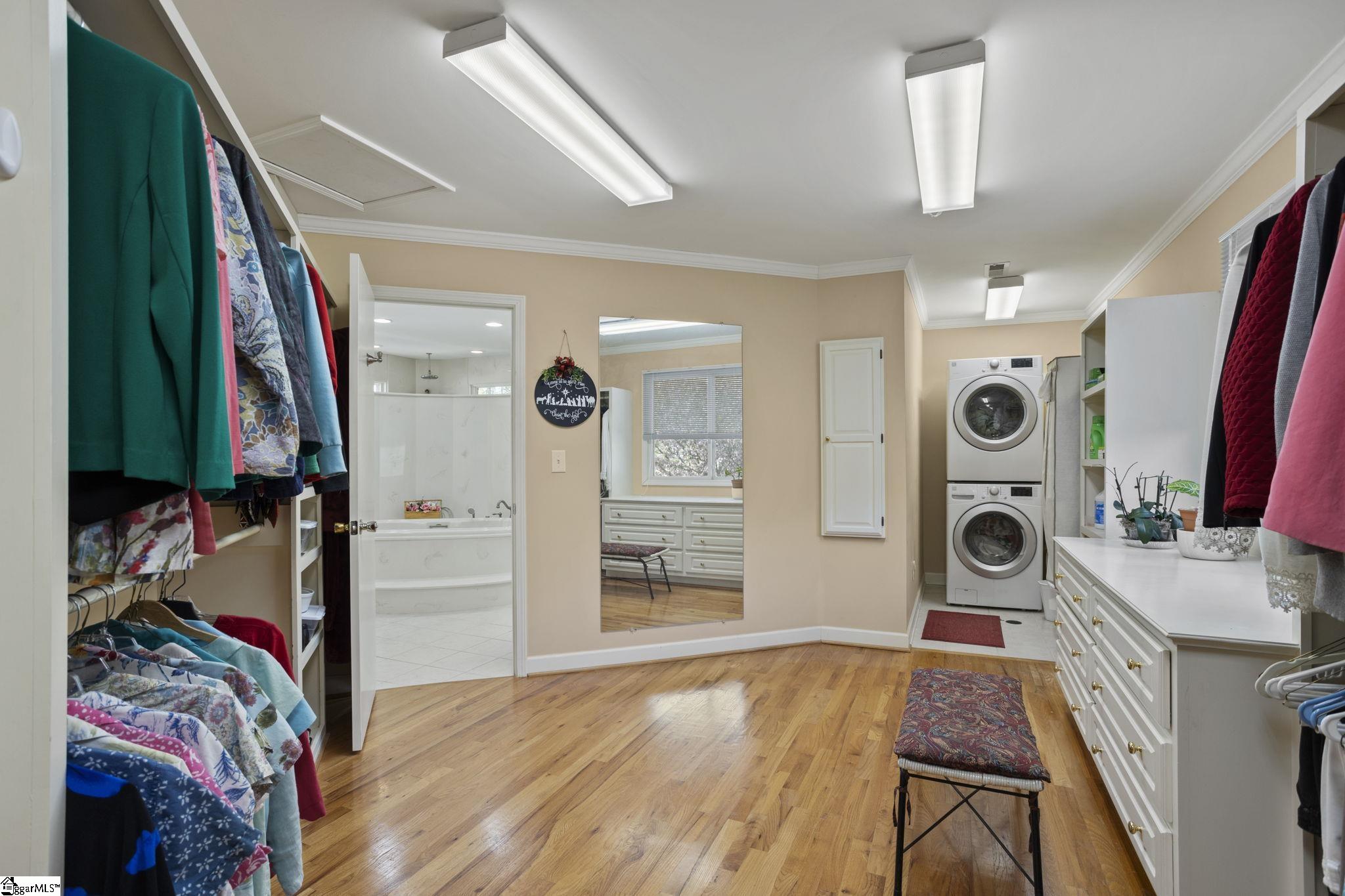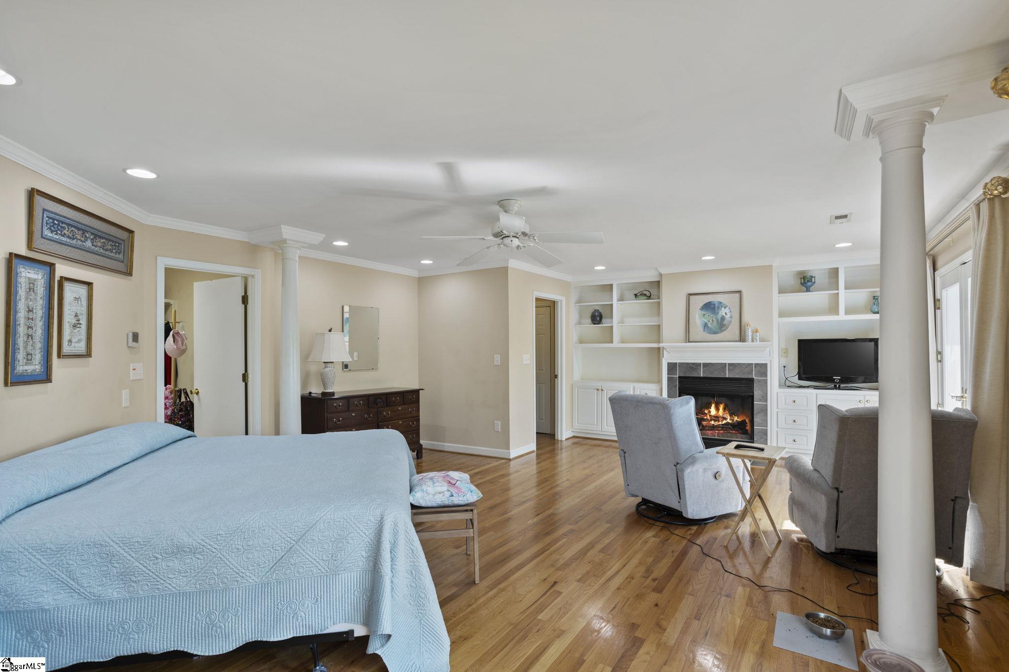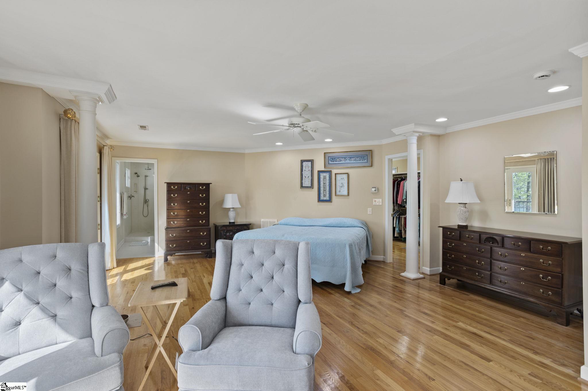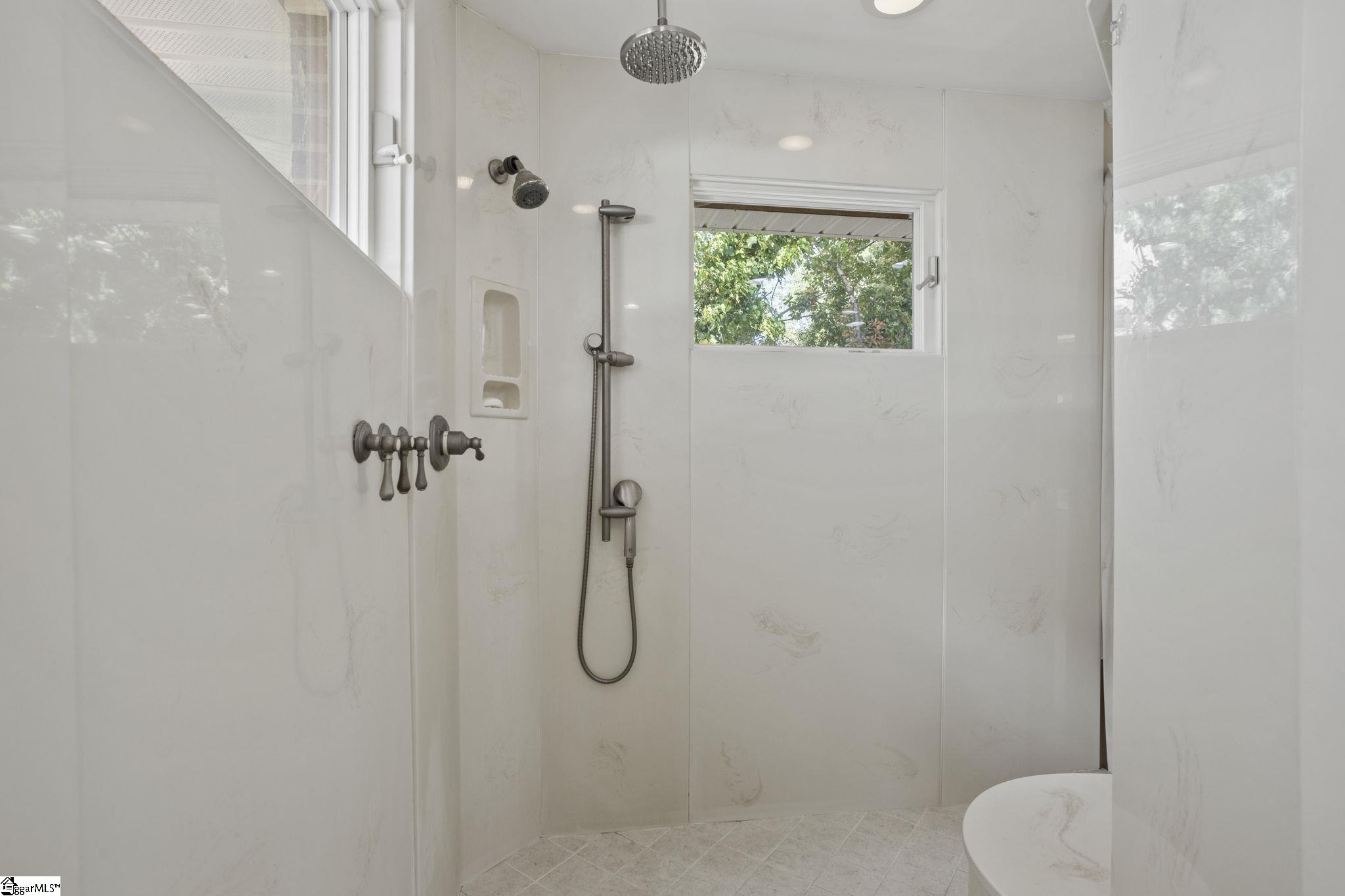 How would you like to live on a lake where you can swim or get in your canoe, paddleboard, or boat, but be minutes to downtown Greenville? Come see this little bit of paradise on Shannon Lake with over half an acre lot. Sit on your dock and fish, have a picnic by the lake on the stone terrace or just enjoy the ripple of the water as you enjoy a nap or read. This charming home has an updated kitchen and windows, has beautiful hardwood floors, 4 bedrooms plus an office or a 5th bedroom, 3 full baths, and over 3500 square feet heated and finished area. The primary suite has all the bells and whistles with a sitting area, built-in bookshelves that flank a fireplace, and has 2 sets of double doors that open to the lake. You will not believe the primary bath and dressing room that is the size of a bedroom. The multiple hanging and shelf space, including a second laundry area, a folding table, and a built-in ironing board. The primary bath is fit for a king for sure, a shower so large you can walk through without doors, an oversized whirl tub, double vanities, and a makeup vanity. One of the best features is the covered back porch to enjoy a full view of the lake and entertain year-round. After you work in the yard, go jump in the lake and cool off, or just sit on the dock and dangle your feet in the water. There is an in-law suite downstairs with a full kitchen, family room, bedroom, full bath, and second laundry area. There is also a huge unfinished basement for a workshop and storage.