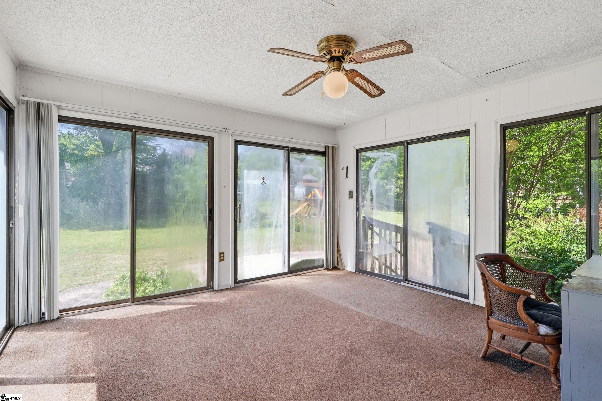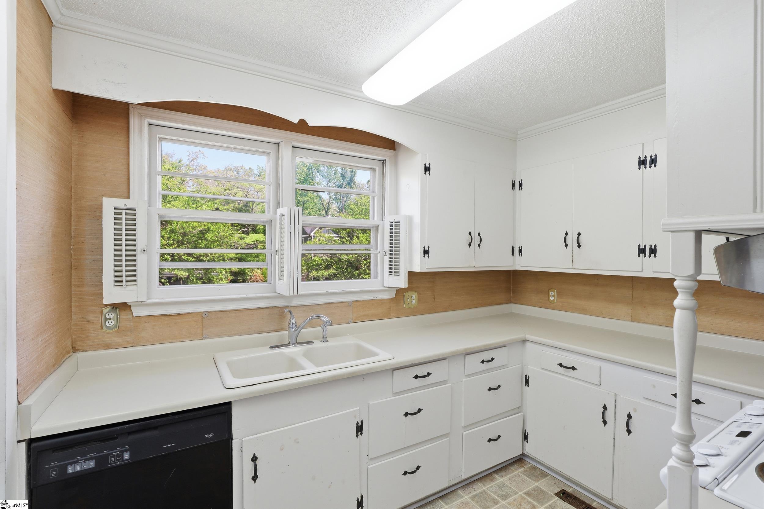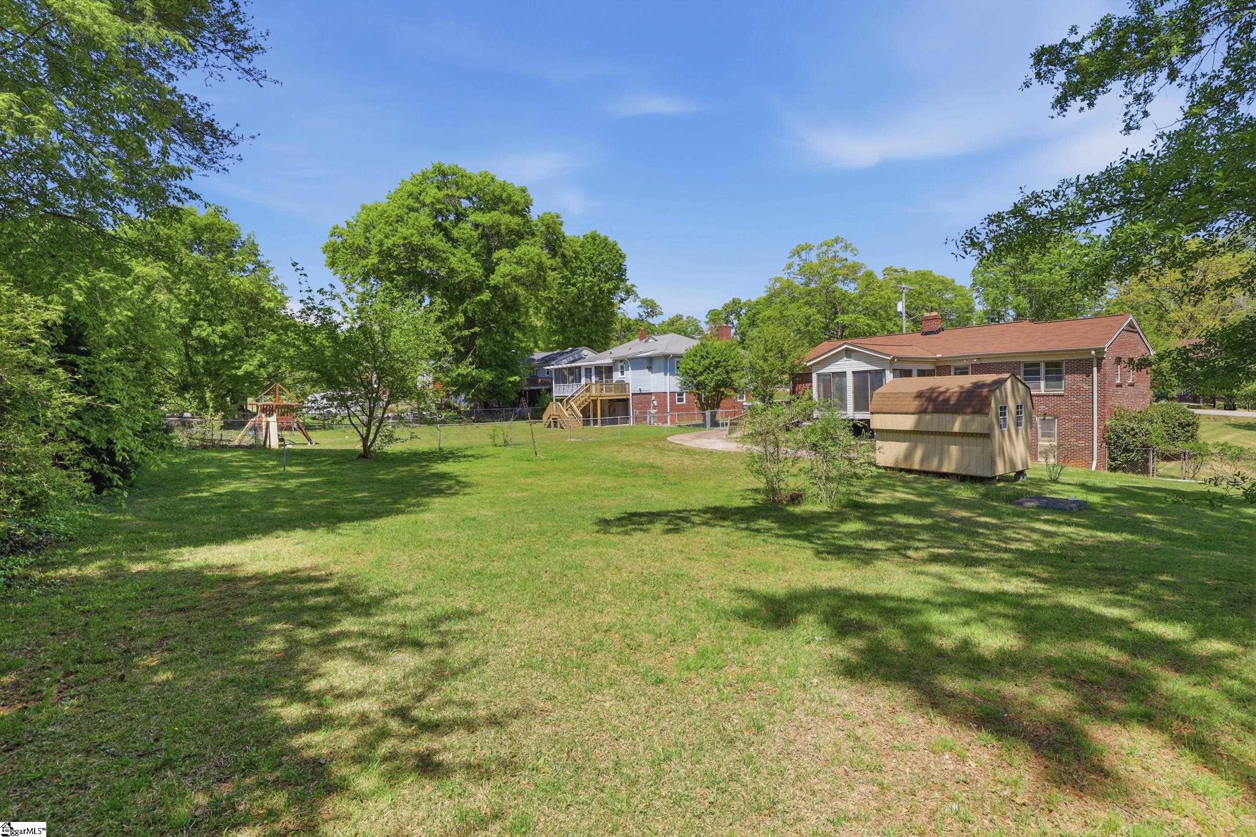 Looking to be close to the excitement of downtown Greenville while still living in a quiet established community? Look no further! This 2-bedroom, 2-bathroom brick ranch home is located just 5 minutes from the expanding Bon Secours Wellness Arena and the entrance to Downtown Greenville offering incredible potential. The home sits on a spacious double lot making up nearly a half acre with a fully fenced backyard. As you enter the home, you’ll find the living room with wood burning fireplace and built in bookshelves – a great place to curl up and read during a rainy day as you enjoy the view out the expansive front window letting in natural light. The dining area flows into a breakfast corner with space for both your formal and informal meals while the kitchen provides plenty of cabinet and counter space for your culinary needs. The primary bedroom features double closets and is connected to a huge bathroom with double sink and shower. As you head to the back of the home, you’ll find the spacious sunroom with glass sliding doors overlooking the backyard. The driveway offers an additional parking pad in the front of the home but also wraps around to the basement garage in the back. Besides providing storage for your vehicle, the full walkout unfinished basement offers tons of potential for a workshop, hobby space, exercise area, or man cave. The basement also includes an additional semi-finished room that could be converted into an office or other hobby room. Not only is the home located just minutes from downtown, but Timmons Park, Greenville Middle Academy, and Bob Jones University are all within walking distance. While some updates may be in order, this home could provide huge benefits and rewards for the right buyer looking to take advantage of the the superb location, spacious double lot, and all of the potential that can be found in the home and basement. Don’t just imagine what you could do; schedule your showing today, and let’s make it happen!