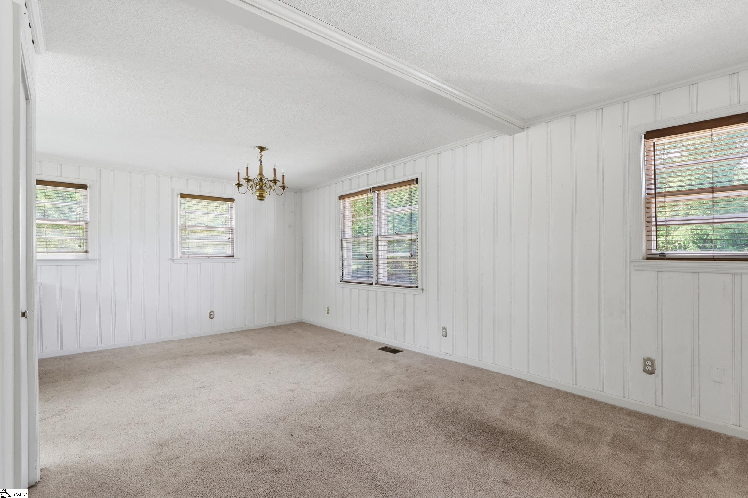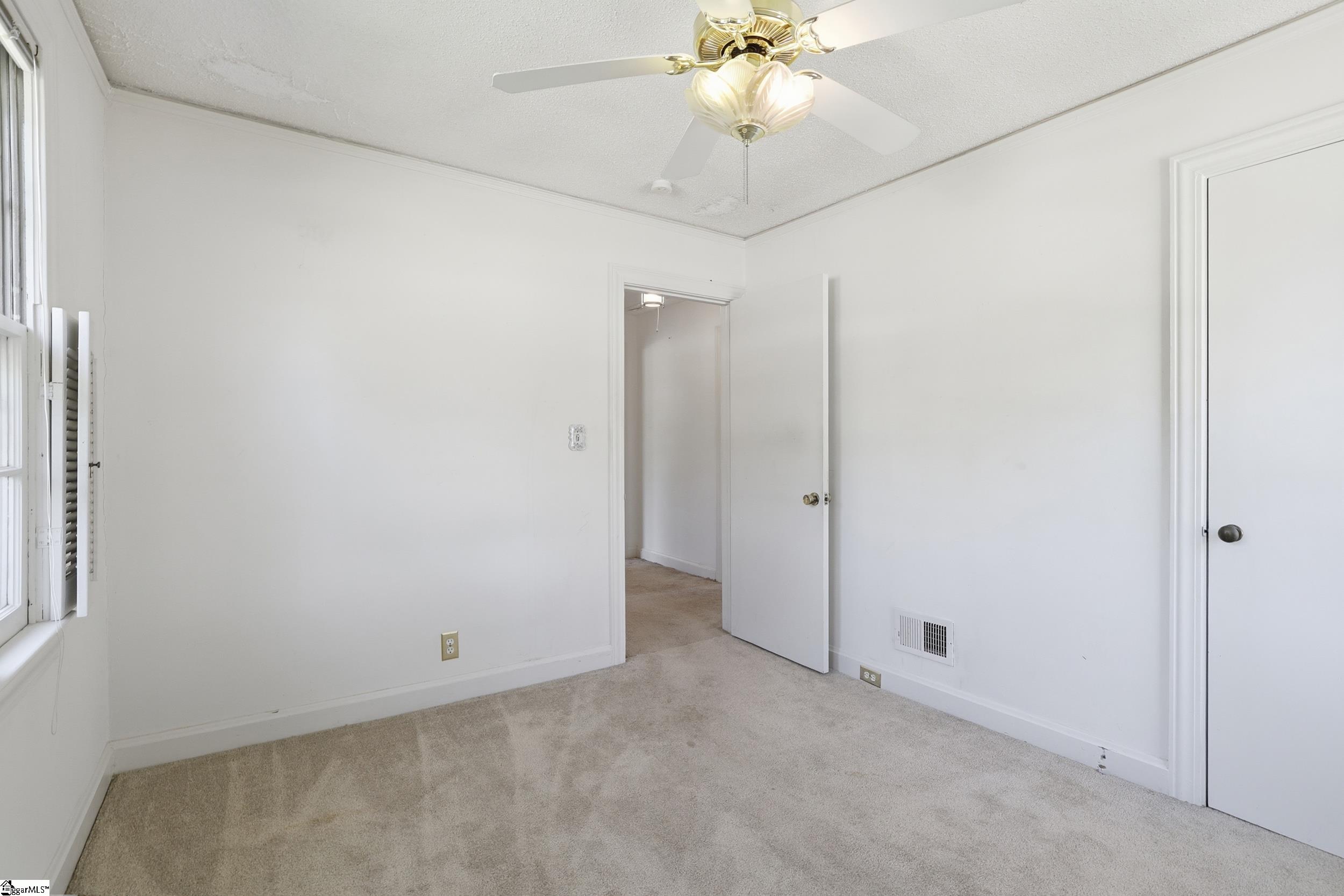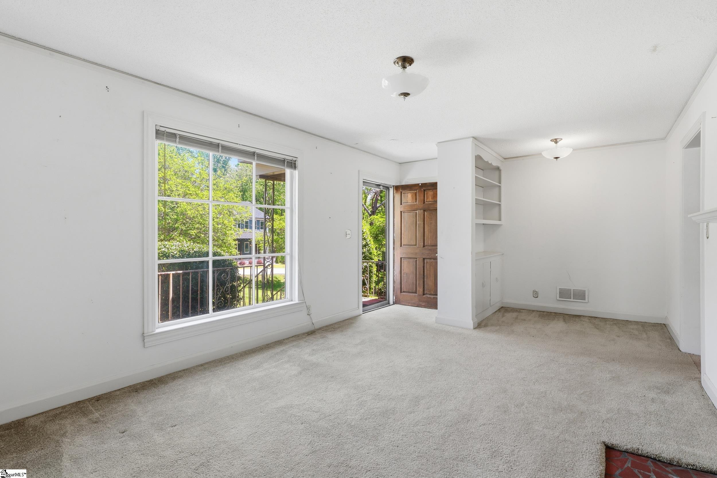 Looking to be close to the excitement of downtown Greenville while still living in a quiet established community? Look no further! This 2-bedroom, 2-bathroom brick ranch home is located just 5 minutes from the expanding Bon Secours Wellness Arena and the entrance to Downtown Greenville offering incredible potential. The home sits on a spacious double lot making up nearly a half acre with a fully fenced backyard. As you enter the home, you’ll find the living room with wood burning fireplace and built in bookshelves – a great place to curl up and read during a rainy day as you enjoy the view out the expansive front window letting in natural light. The dining area flows into a breakfast corner with space for both your formal and informal meals while the kitchen provides plenty of cabinet and counter space for your culinary needs. The primary bedroom features double closets and is connected to a huge bathroom with double sink and shower. As you head to the back of the home, you’ll find the spacious sunroom with glass sliding doors overlooking the backyard. The driveway offers an additional parking pad in the front of the home but also wraps around to the basement garage in the back. Besides providing storage for your vehicle, the full walkout unfinished basement offers tons of potential for a workshop, hobby space, exercise area, or man cave. The basement also includes an additional semi-finished room that could be converted into an office or other hobby room. Not only is the home located just minutes from downtown, but Timmons Park, Greenville Middle Academy, and Bob Jones University are all within walking distance. While some updates may be in order, this home could provide huge benefits and rewards for the right buyer looking to take advantage of the the superb location, spacious double lot, and all of the potential that can be found in the home and basement. Don’t just imagine what you could do; schedule your showing today, and let’s make it happen!