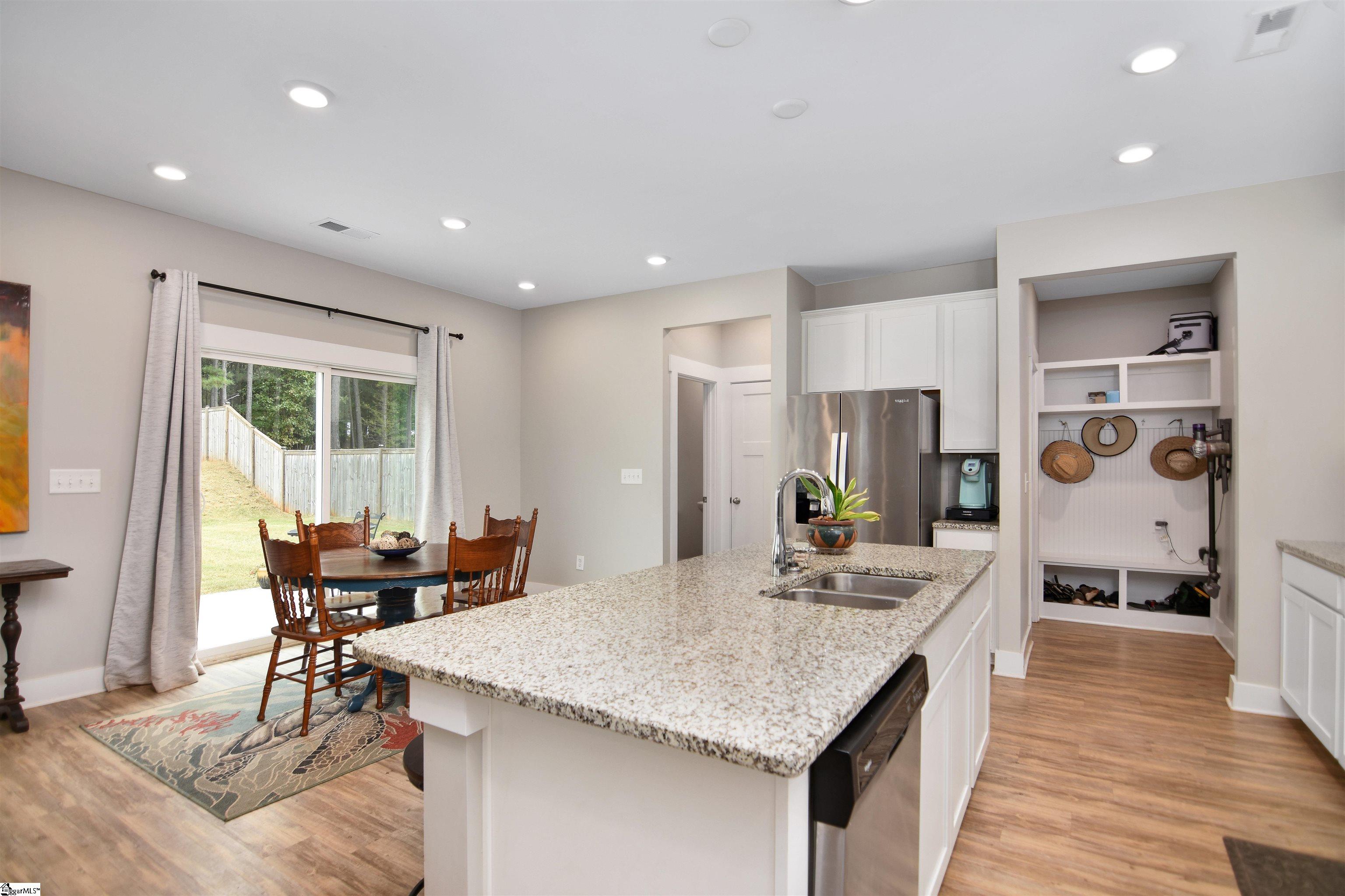 Welcome home to 126 Walking Stick Way! A WONDERFUL choice in Parkview Glen conveniently located LESS THAN 5 MINUTES OFF I-85 between Greenville and Anderson, SC! This quiet community provides the ideal get away while still accessible to nearby needed conveniences! With FOUR spacious bedrooms and 2.5 baths, this Brooklyn floor plan provides ample spaces for everyone including a large open loft area and a flex room that works well as a remote office or a formal dining room. From the covered rocking chair front porch, step into the wide foyer with this flex room to the left and luxury vinyl plank flooring spanning the main level. The open kitchen/breakfast/great room allows for easy entertaining! This kitchen boasts an eat-at center island, granite countertops, tile backsplash, and stainless steel appliances including a gas stove and frig! Plus, a walk-in pantry and great drop zone! The breakfast area overlooks the oversized fully fenced backyard with private patio. Enjoy movie nights centered around the gas log fireplace in this wonderful great room! Upstairs you will appreciated SPACIOUS bedrooms with fantastic closet spaces. The primary suite has a trey ceiling, private bath with dual sinks, oversized tile shower, tile flooring, AND an enormous walk-in closet! The center loft area gives that EXTRA entertaining area you will love! Additional features in this beauty include energy-efficient traits such as 14 SEER hvac, conditioned attic space with spray foam insulation sealing out particulates and noises, LED lighting, low E windows, and more including extra govee outdoor lighting whereby you can change the colors to the season! SO many wonderful upgrades in this home! And, do not miss the open spaces and playground within this well maintained community offering one of the best values in the upstate! Come home to 126 Walking Stick Way in this highly desired, easy Pelzer, SC area! P.S. ASK ABOUT SPECIAL FINANCING!
