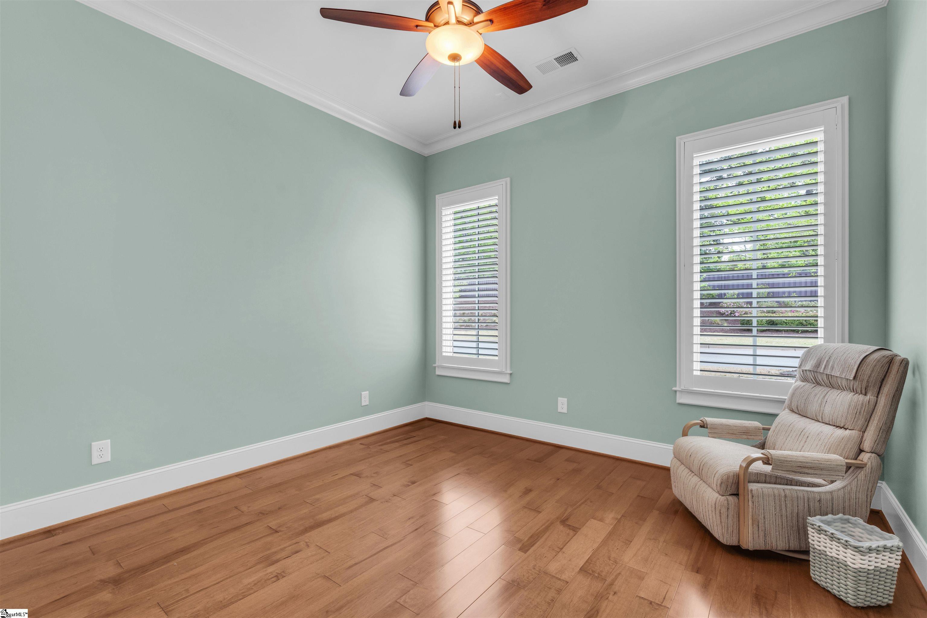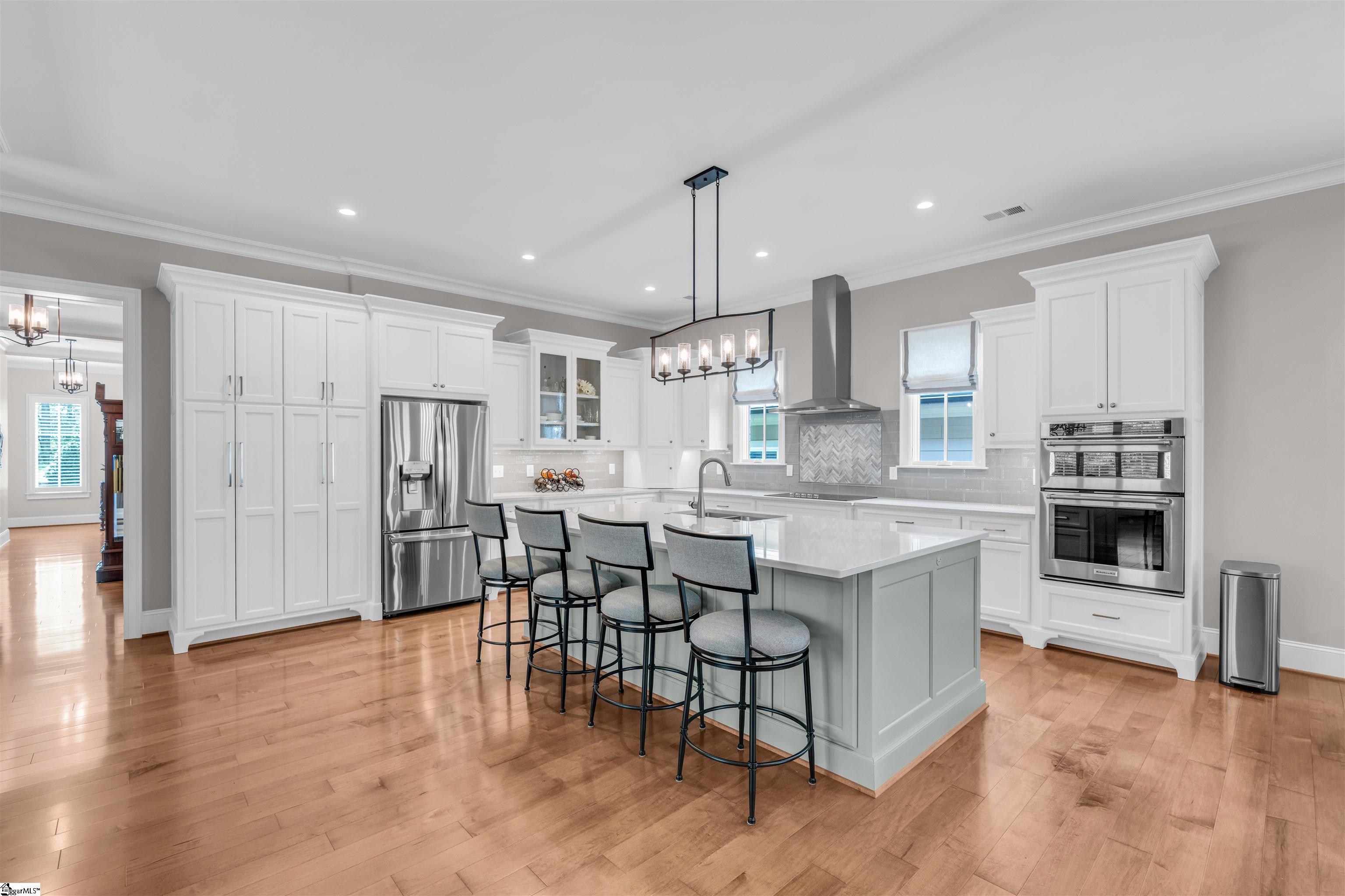 Welcome to refined living in the highly sought-after Bella Grove neighborhood. This exceptional custom-built residence by Peery Homes offers timeless design, quality craftsmanship, and effortless main-level living. The all-brick exterior provides classic curb appeal for this 3-bedroom, 3.5-bath home with a versatile flex space blends elegance and functionality in every detail. The thoughtfully designed floor plan features all primary living areas and bedrooms on the main level, with an upstairs retreat that includes a spacious flex room, full bathroom, and an oversized walk-in closet, perfect for guests, a private office, or media space. The walk-in attic is enhanced with blown insulation for added efficiency. Inside, you’ll find hardwood floors throughout the main living spaces, complemented by plush carpeting in the flex room. The spacious primary suite boasts dual walk-in closets, offering both luxury and convenience. Ten-foot ceilings and detailed finishes, including a coffered ceiling in the dining room, create a bright and sophisticated atmosphere. Plantation shutters throughout the home add both charm and privacy. The chef’s kitchen is a true showpiece, designed to impress even the most discerning buyer. Anchored by a large center island with seating, this space features gleaming quartz countertops, extensive custom cabinetry, and thoughtfully designed storage throughout. A striking herringbone tile backsplash serves as a focal point beneath the sleek vent hood, while high-end stainless appliances elevate both form and function. Glass-front cabinetry adds a touch of elegance, and the expansive layout offers exceptional prep and entertaining space. A stunning sunroom filled with natural light offers a cozy fireplace and walls of windows, creating the perfect year-round retreat. Step outside to enjoy the beautifully designed bluestone patio or relax on the covered front porch. This is a rare opportunity to own a meticulously crafted home in one of the most desirable communities.