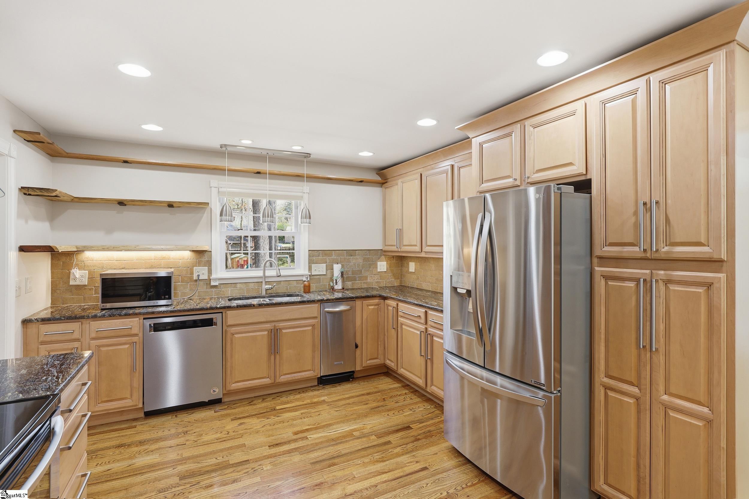 A spacious one-story brick ranch on Greenville’s east side is a must see! Welcome to this beautiful one-story 3 bed 2.5 bath, over 2,500 sg ft Full Brick ranch on almost half of an acre lot in the highly sought-after Devenger Place neighborhood. House features beautiful hardwood floors throughout the house, updated main bath with gorgeous tiled bath and heated floors, multiple living spaces including a formal living room, dining room and a spacious family room with fireplace, vaulted ceilings and skylights. The kitchen features quarts countertops, custom cabinets with pull-out drawers and soft-close features, a custom vent hood, stainless steel appliances, trash compactor, and a large pantry with sliding double doors. A huge bonus room with gas logs fireplace and its own split AC unit could be your den, theater, media room, playroom — endless possibilities. A bright and spacious sunroom overlooking backyard could be used as office, fitness room or as a sitting room where you could enjoy a cup of coffee in the morning, read a book on a peaceful afternoon and watch wild birds coming to your bird feeder that can be installed on a deck adjacent to the sunroom. Oversized 2-car garage with walls covered with pegboards comes with a stand-alone cabinet and a shelf offering plenty of storage and is spacious enough to be used as workshop. Peaceful fenced-in backyard with storage shed and plenty of space for gardening. Devenger Place is a great neighborhood with just $60 annual HOA. Amenities include pool, tennis courts, basketball court, playground. Pool membership is optional. Strategically located for easy access to I-385, I-85, GSP, St Francis Hospital, just minutes to Downtown Greenville. Don’t miss the opportunity to own this house! Call to schedule the showing today and claim it yours!