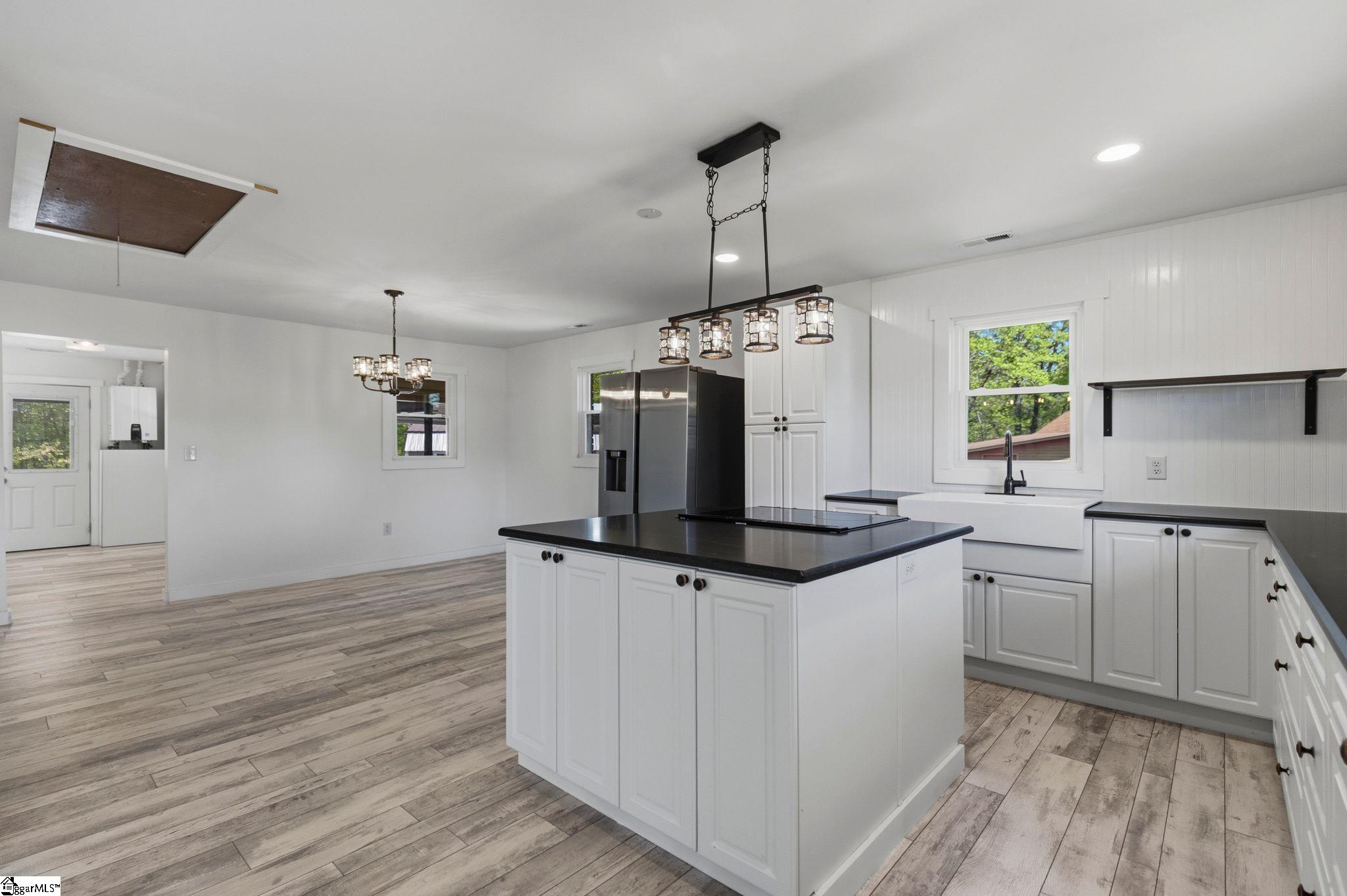 Here’s your chance to own a slice of Heaven 1055 above sea level in heart of scenic Pickens, SC! This low-maintenance single-story home has everything you need and nothing that you don’t. Recent renovations include new insulation throughout, footers in the crawl space, plumbing, wiring/panel, roof/gutters, HVAC, tankless (gas) water heater, windows/screens… and more! Inside, you’ll discover a sensible floorplan that flows perfectly for today’s lifestyle. The kitchen and breakfast room are open to the living area with lots of natural light pouring in with views of the beautiful acreage. You’ll love the kitchen island with brand new granite countertops, pendant lights and beadboard accents. The primary bedroom will not disappoint either when you lay your eyes on the bathroom that boasts a modern dual sink vanity, soaking tub and glass surround tiled walk-in shower. Upon entering the back of the home, you are greeted by a huge laundry/mudroom perfect for storing items out of sight. Outdoors is a dream with a canopy of mature oak trees lining the property (professionally pruned in 2026), a huge carport and TWO outbuildings. The first building sits on a 29×35 concrete pad, was purchased in 2024 at Legacy Sheds, is 24×12, has electricity and a mini-split system. This makes for a great hobby space, home office/business, homeschool lab, or… add water and convert it into a guesthouse or STR. The second building/barn is approximately 40×40 and includes a paved pad in the rear suitable for storing a boat, RV, tractor or side-by-side. Whether you’re looking for some peace and quiet, a place to homestead, a home you could add on to, no HOA/restrictions, or income producing opportunities, this is your solution!