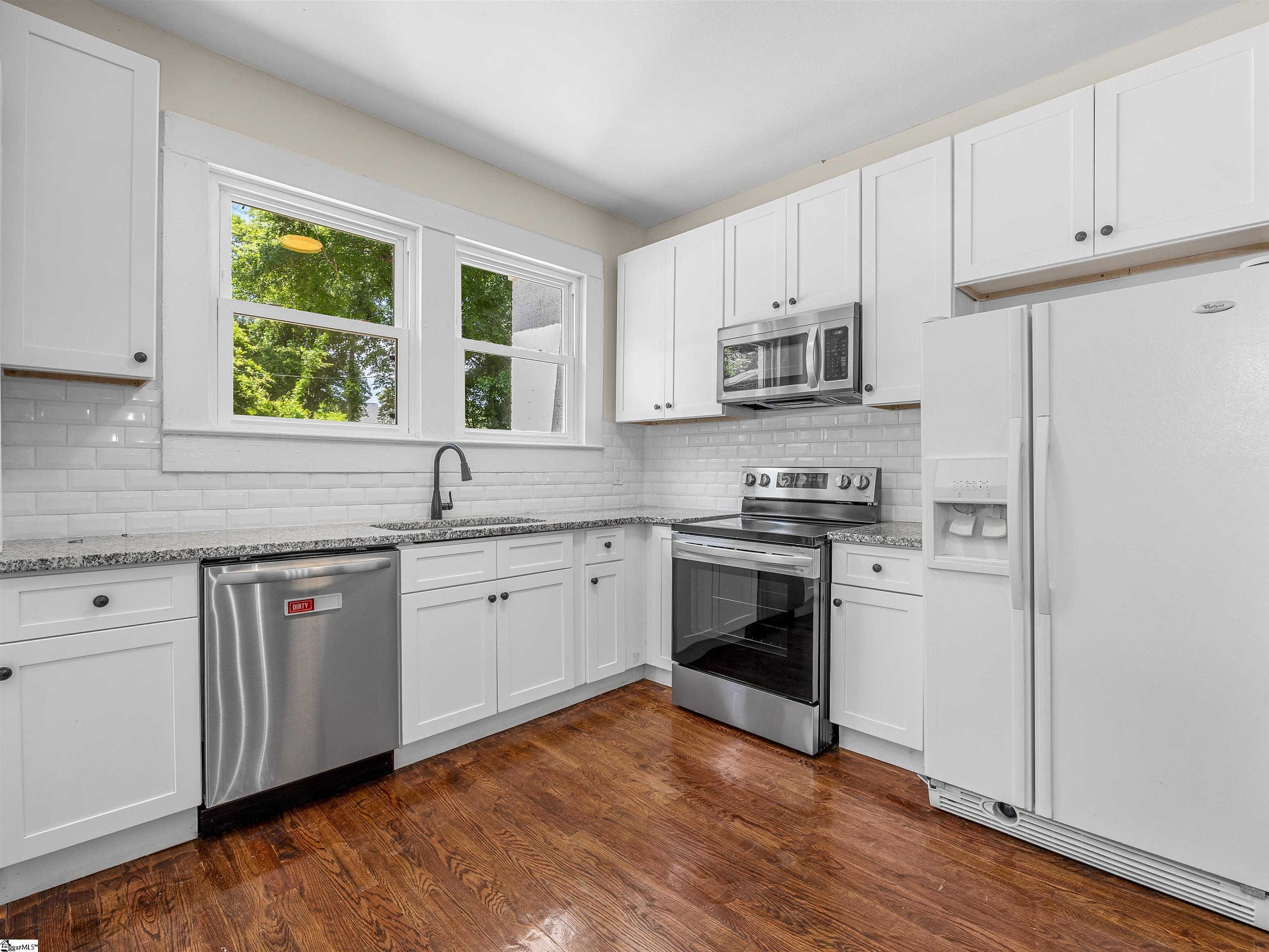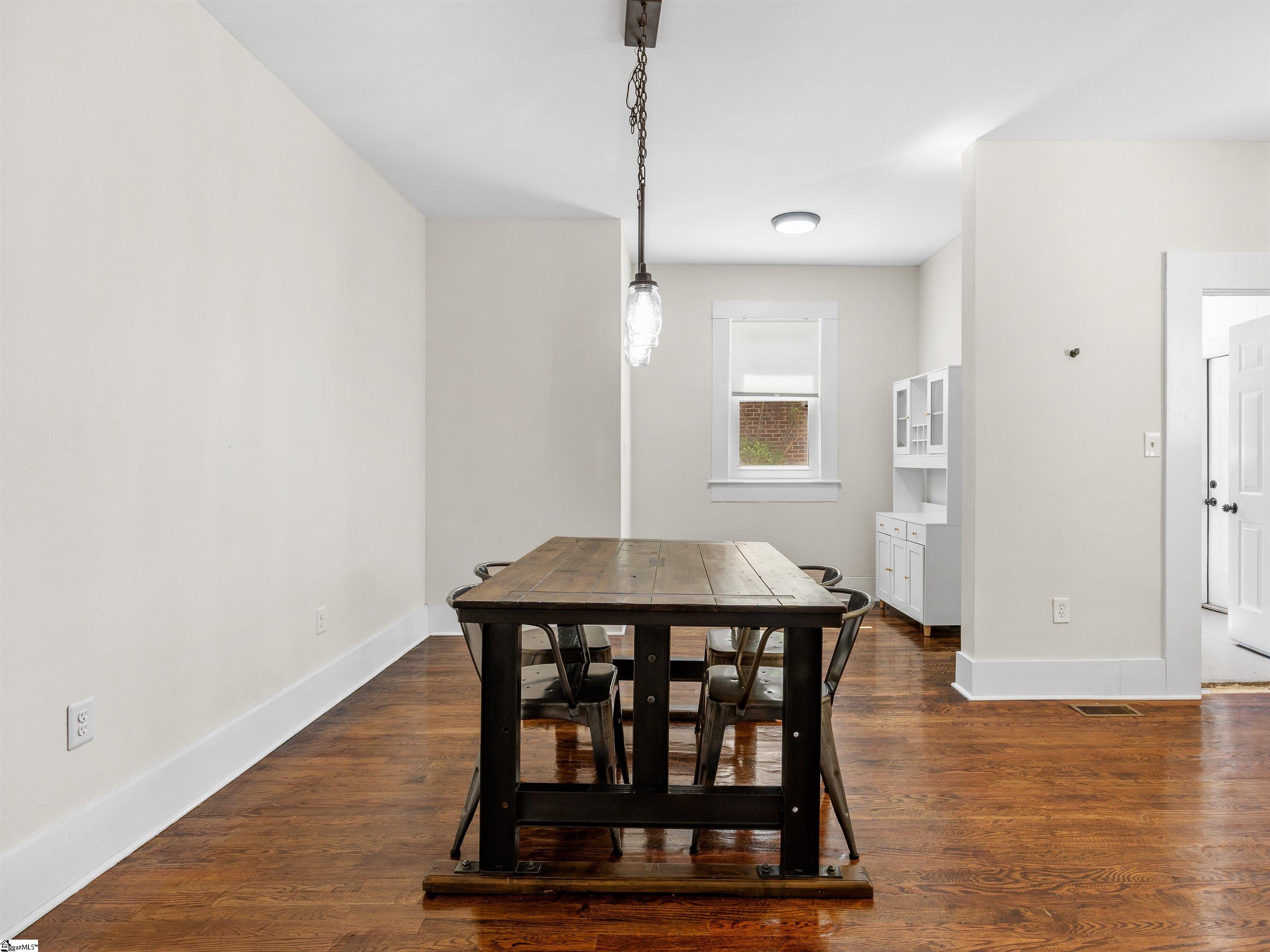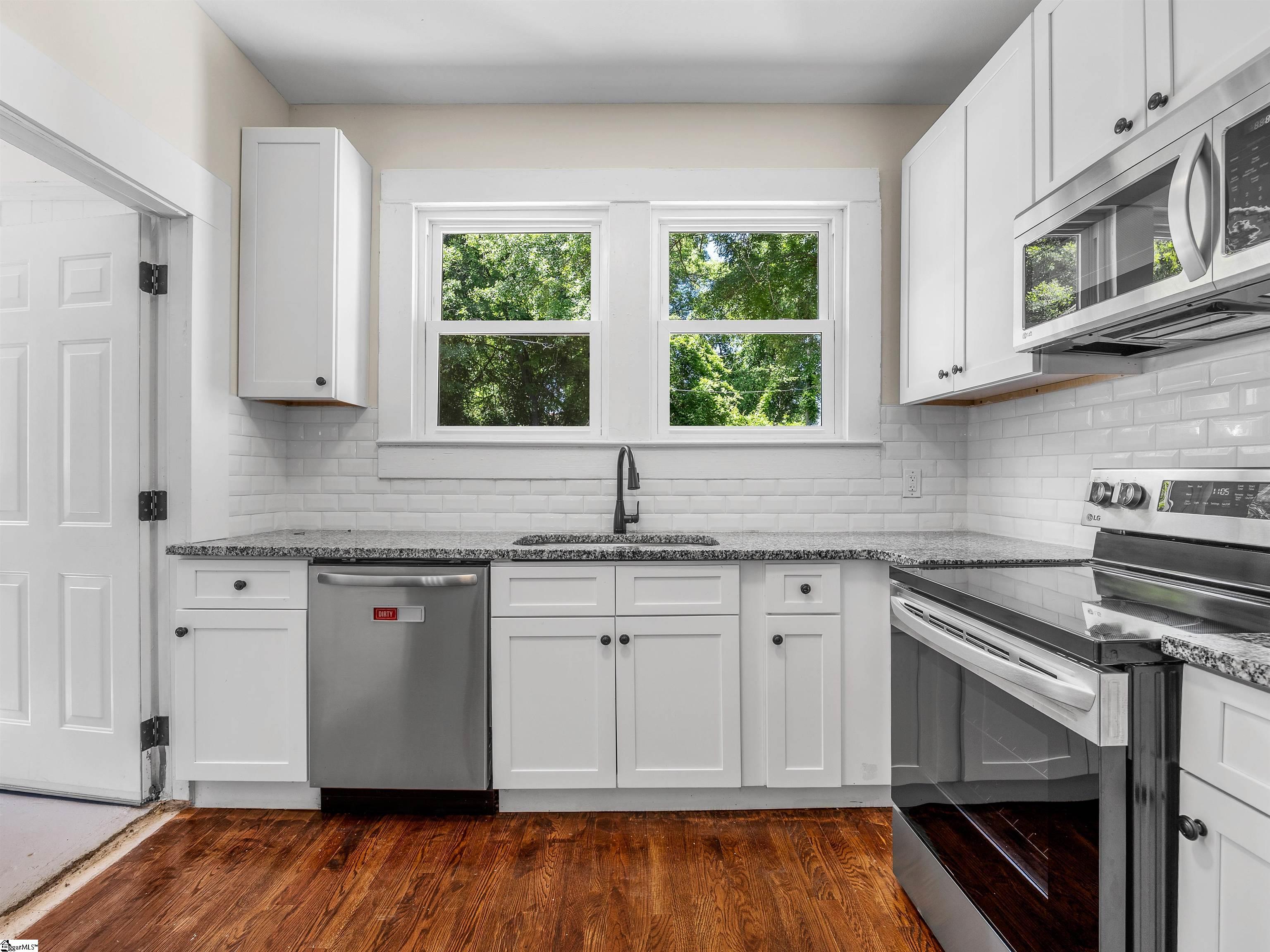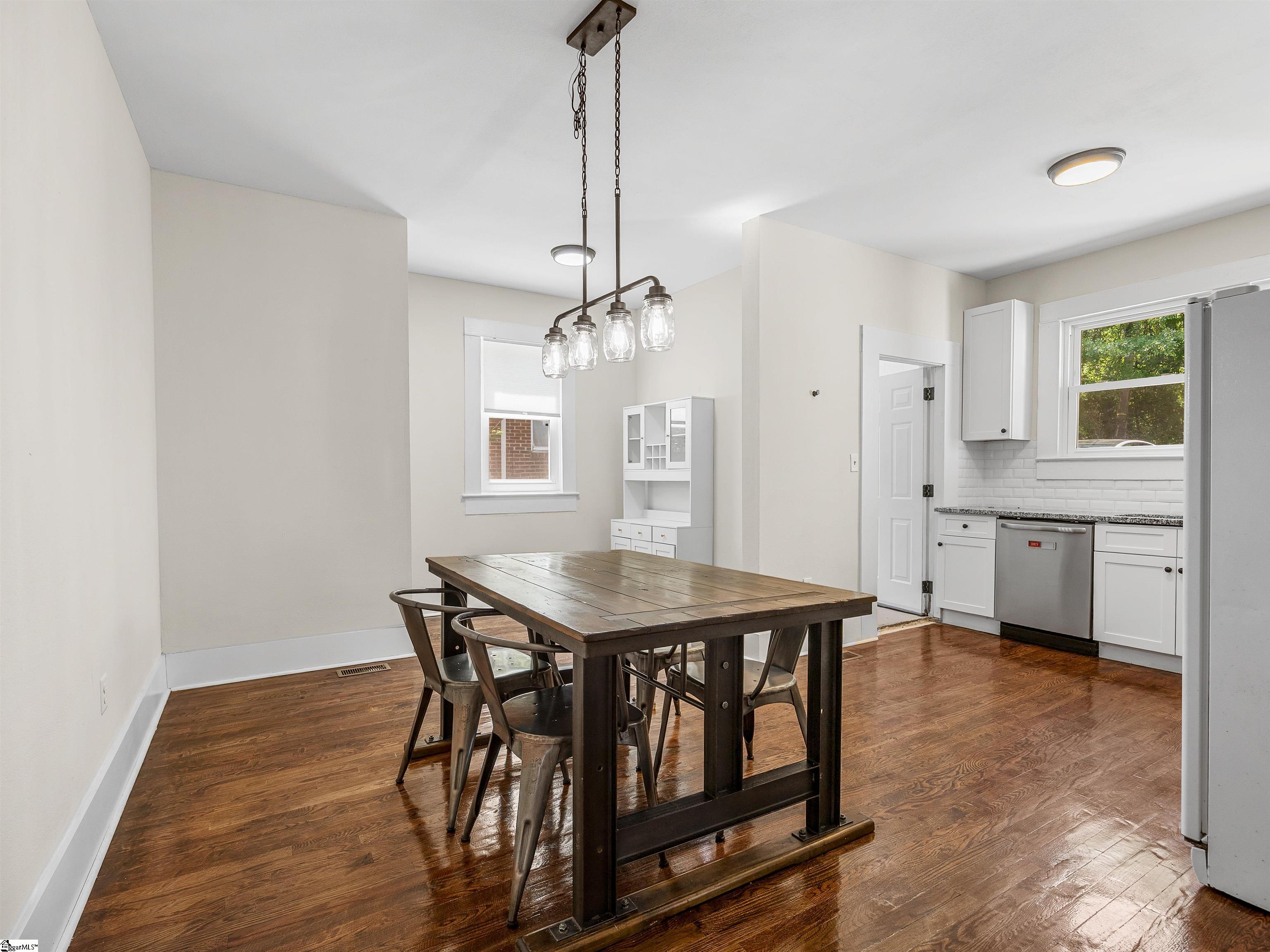 Welcome home to timeless charm and modern peace of mind in the heart of Spartanburg. This beautifully renovated 3-bedroom, 2-bath, brick ranch offers the perfect blend of character and convenience—truly move-in ready with all the big-ticket updates already done for you. Step inside and you’ll immediately notice the warmth of refinished real hardwood floors, tall ceilings, and spacious bedrooms that create an inviting and comfortable flow throughout the home. The living room is a standout, featuring a one-of-a-kind fireplace framed by custom built-in shelving—perfect for cozy evenings or hosting guests. Seller never used the fireplace, it conveys as is. The kitchen is both stylish and functional with granite countertops, new cabinetry, and updated appliances, seamlessly connecting to a breakfast nook and formal dining space—ideal for everyday living and entertaining alike. Enjoy peace of mind with major upgrades including a newer roof (2019), HVAC and ductwork (2022), tankless water heater, updated plumbing and electrical, new windows, fresh interior and exterior paint, and all new fixtures. Both bathrooms have been thoughtfully updated, highlighted by a beautiful tiled walk-in shower you’ll love. Outside, relax on the welcoming covered front porch or unwind on the side porch—perfect for morning coffee or evening gatherings. The partially fenced, level backyard offers space to play, garden, or simply enjoy. Located in an established neighborhood just minutes from shopping, dining, and only minutes to I-26 and I-85, this home delivers convenience without sacrificing charm. Serving others & Selling Real Estate—schedule your private tour today and come experience all this home has to offer.